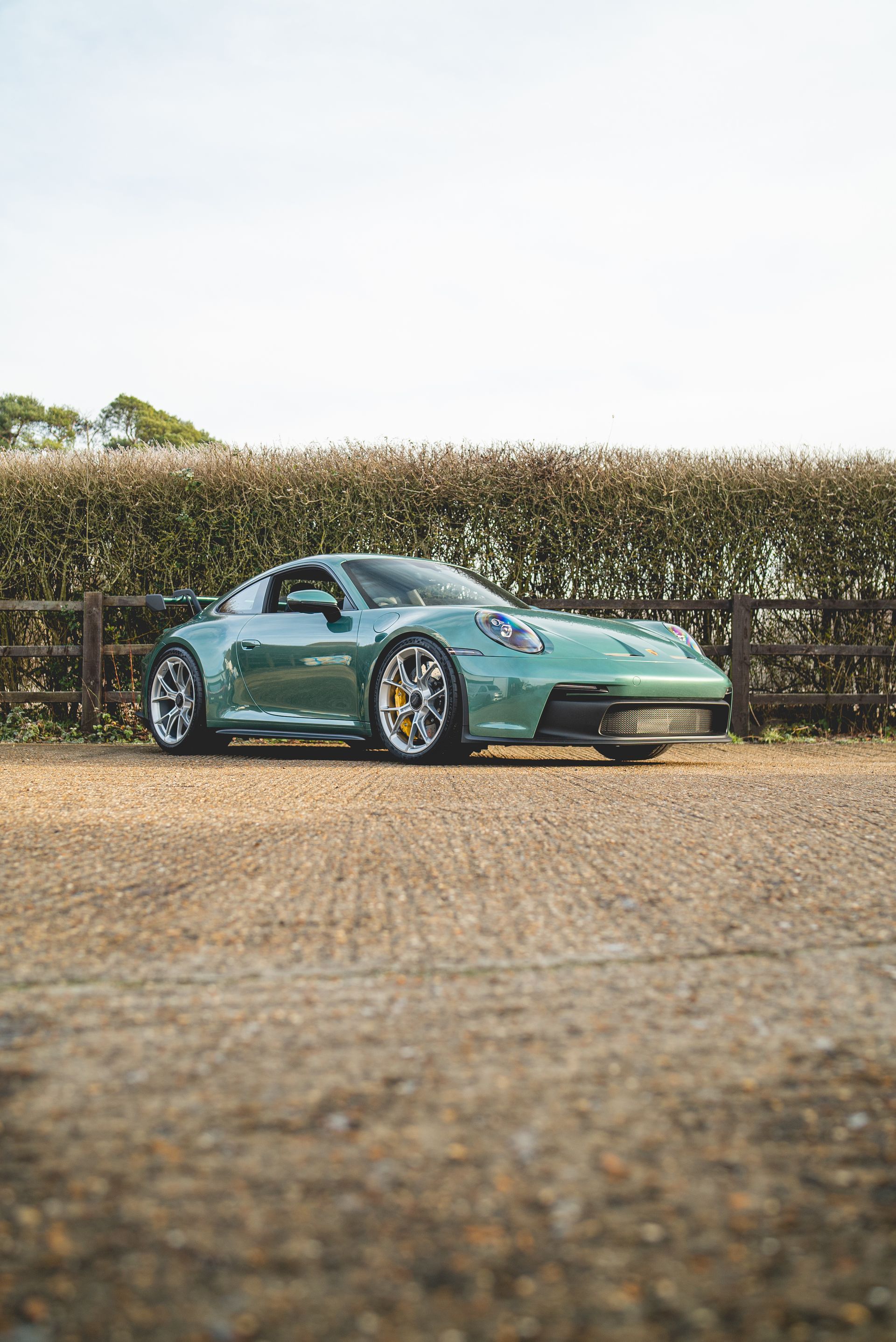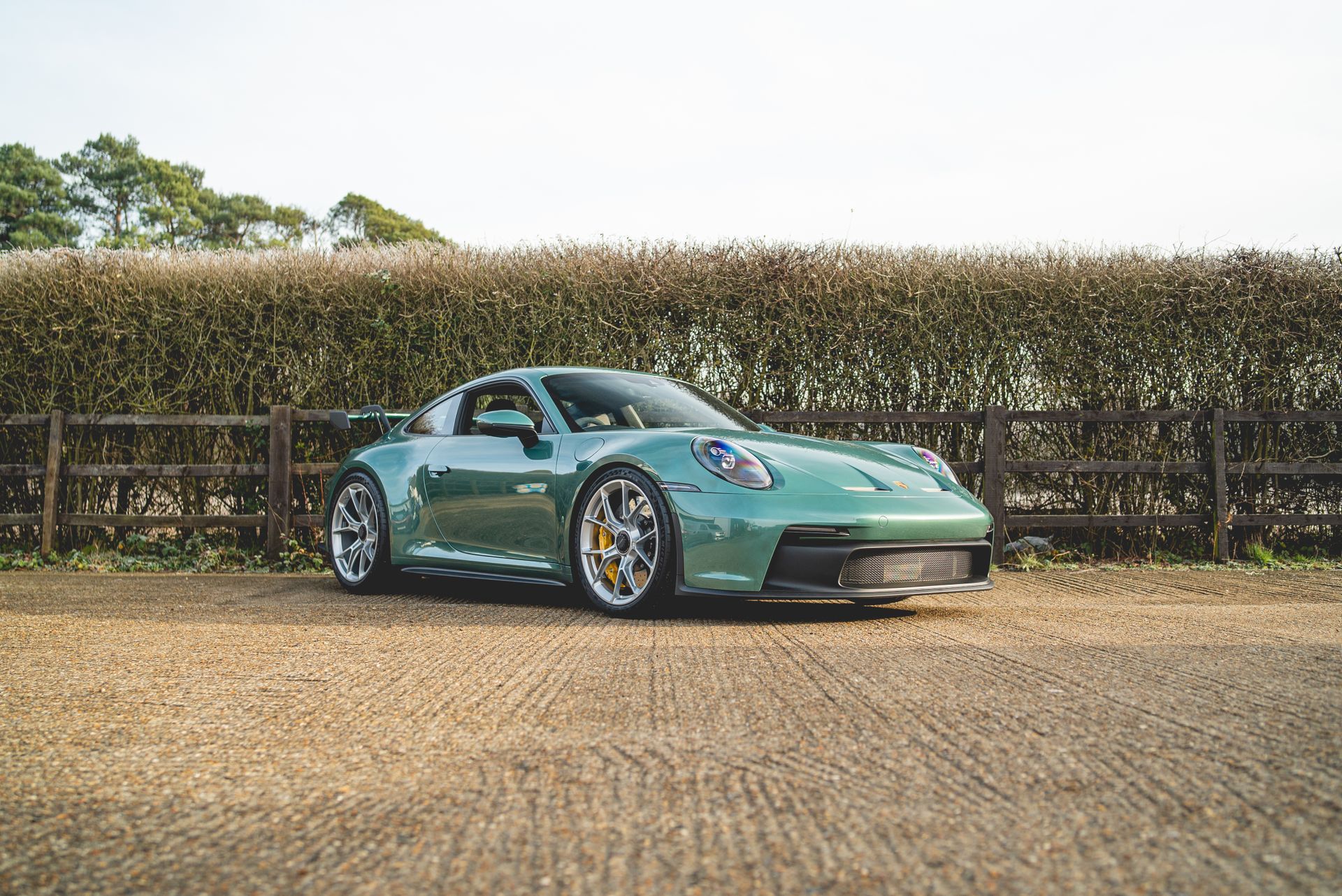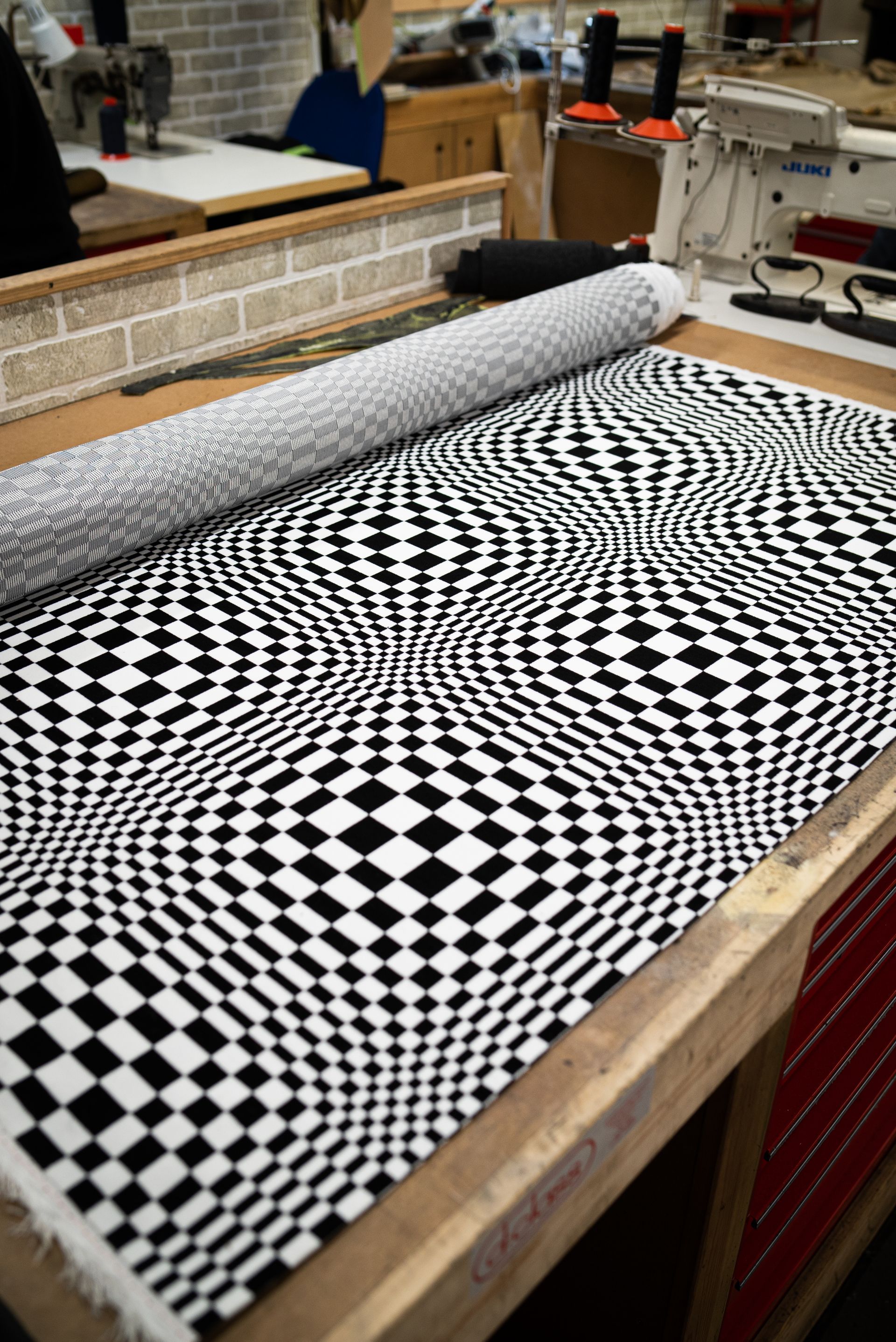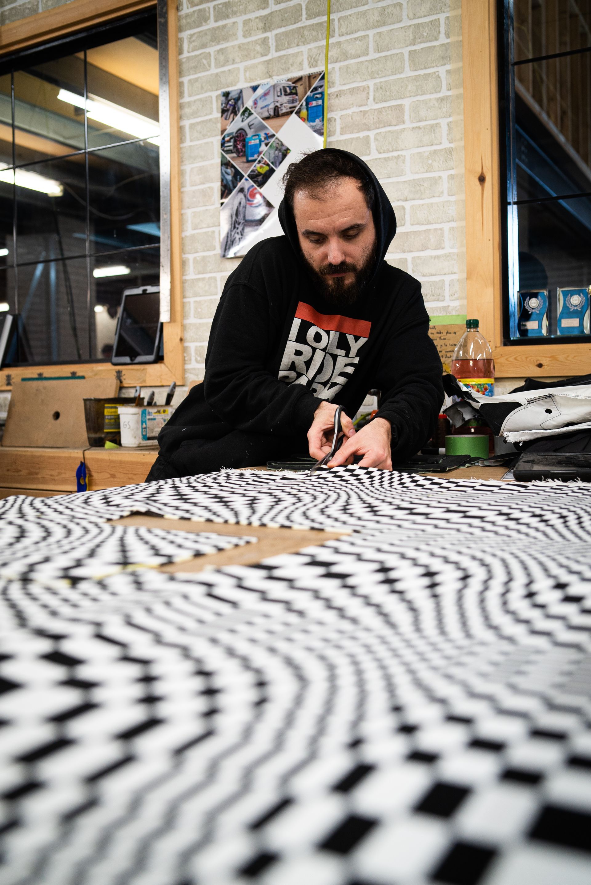 Sam is a frequent customer of d:class and is also popularly known on YouTube as Seen Through Glass. Sam recently brought his Ferrari 360 in for some minor repairs and came down to d:class HQ. Prior to that, we retrimmed the 360's steering wheel. This time, we developed Sam's brand-new Porsche 911 GT3 as a fresh project. After exchanging messages, we realised Sam desired a vintage Porsche fabric, such as the houndstooth pattern that is once again becoming quite popular among Porsche enthusiasts. Pascha in black and white was ultimately chosen, and it was promptly delivered in time for the GT3's arrival.