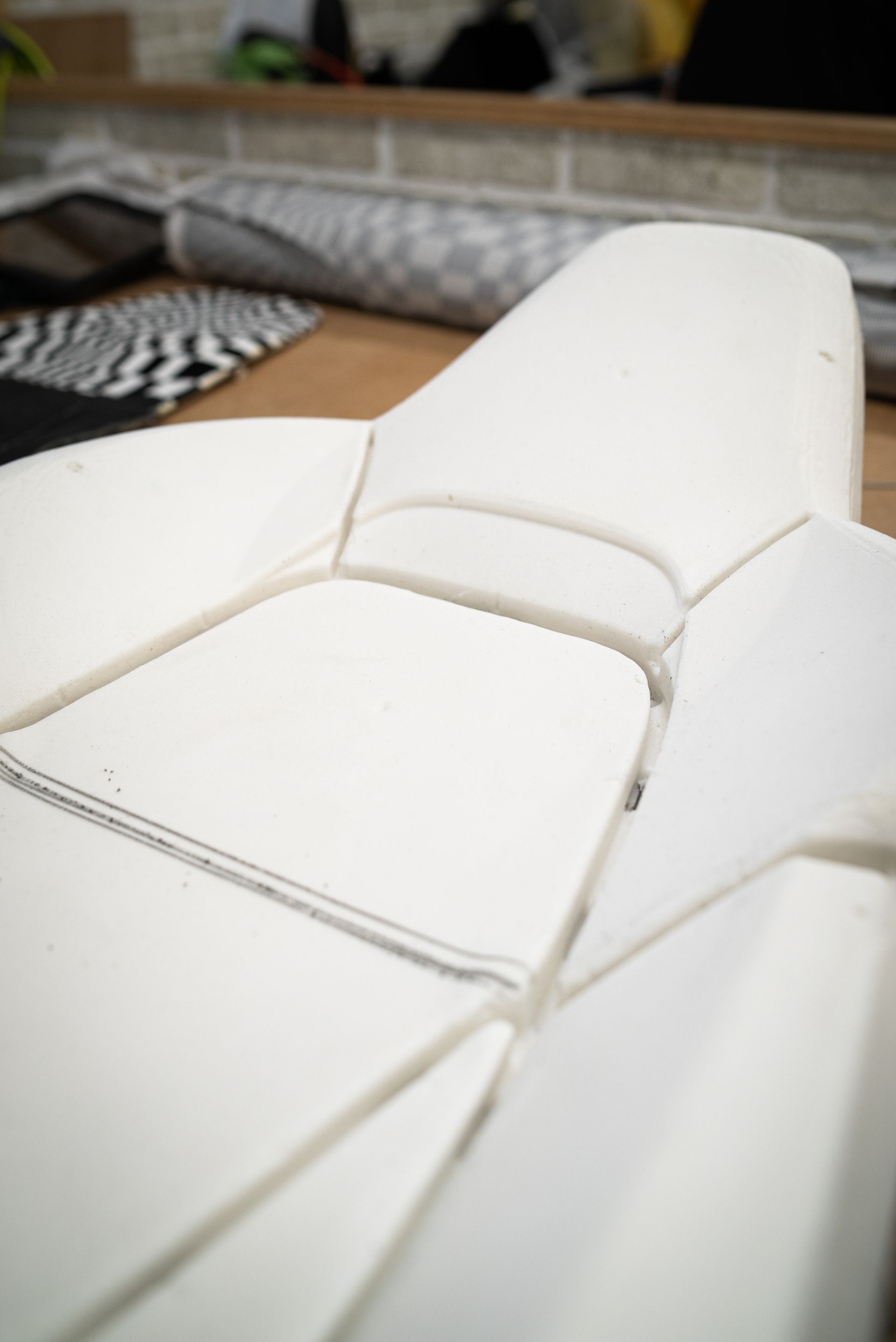 Unfortunately, because of the Pasha's design, it becomes incredibly inefficient because the pattern only appears about four times over its breadth. To ensure that all of the panels matched, we had to use the pasha's thinner sections as a foundation for the seats and door cards. In the near future, hopefully, we can make something from the waste.