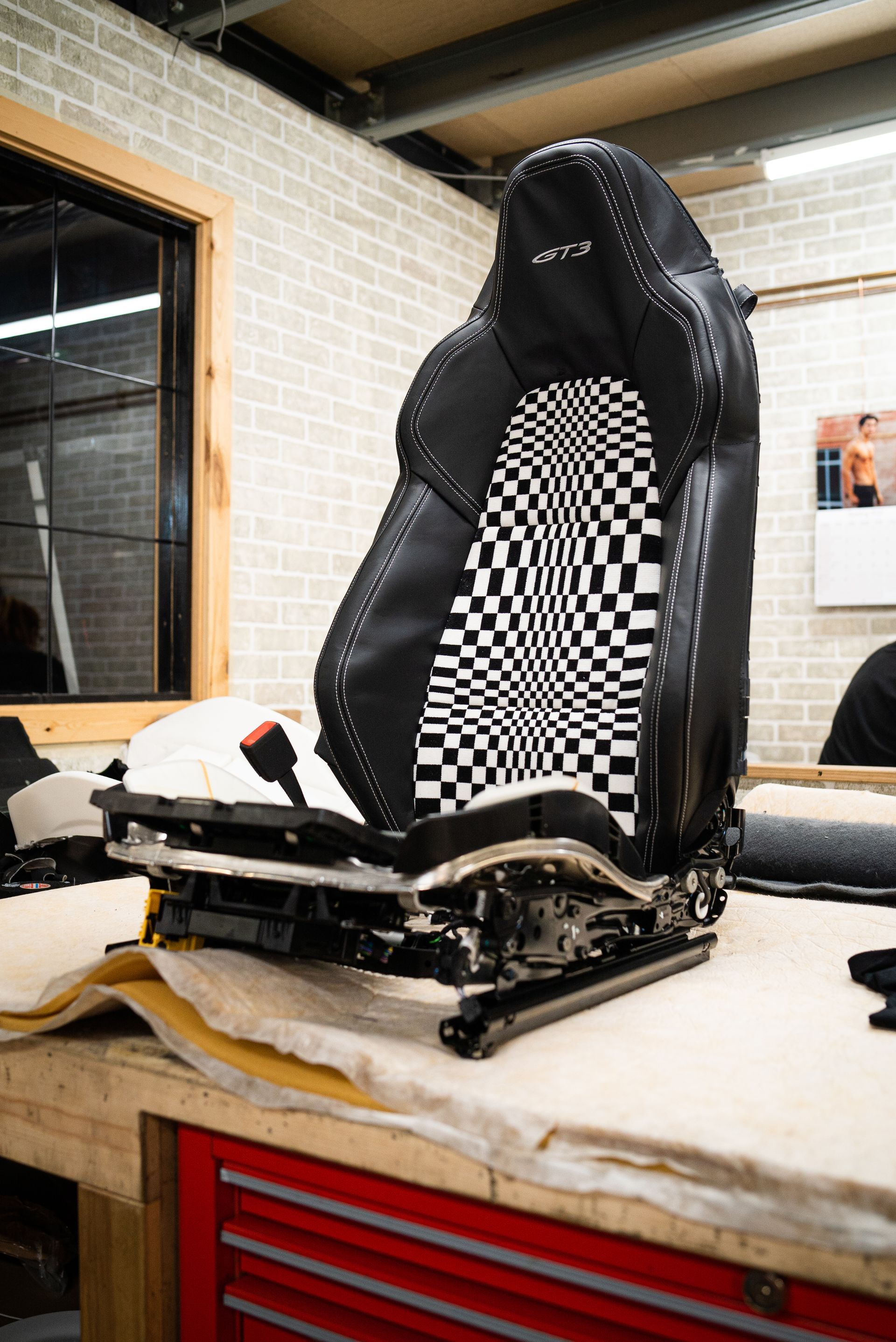 STG's brand-new Porsche GT3 seat and door card retrim.