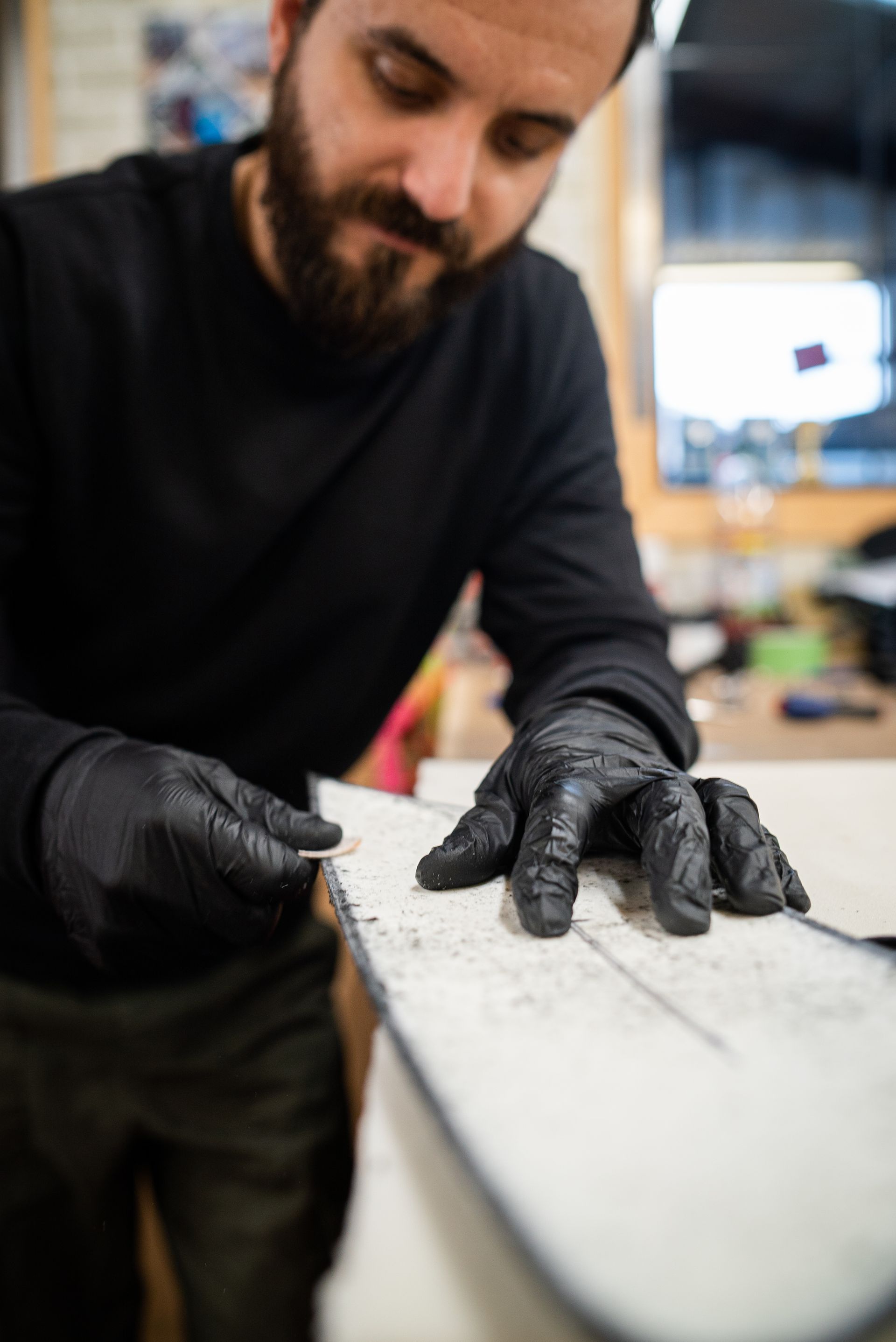 After the panels had been cut out, it was time to attach them to the original leather Porsche seat covers after applying some foam backing.
