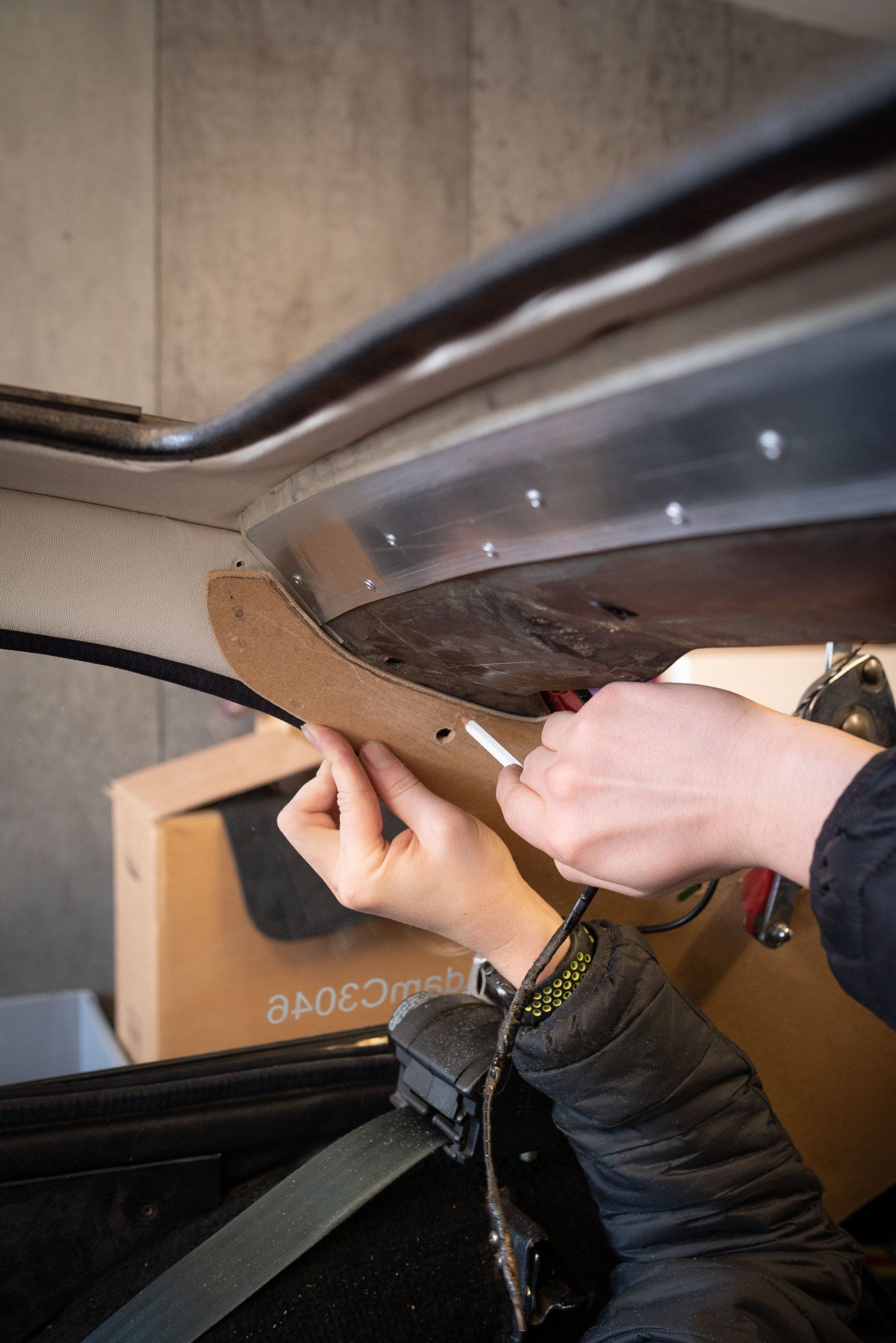 When Adam arrived at d:class HQ with his MGB GT, David was shown around the vehicle and the key areas Adam desired changing were pointed out. These included the rear boot carpet, C-pillars, A-pillars, rear quarter tops, both front seat foams, Webasto sunroof and carpet.