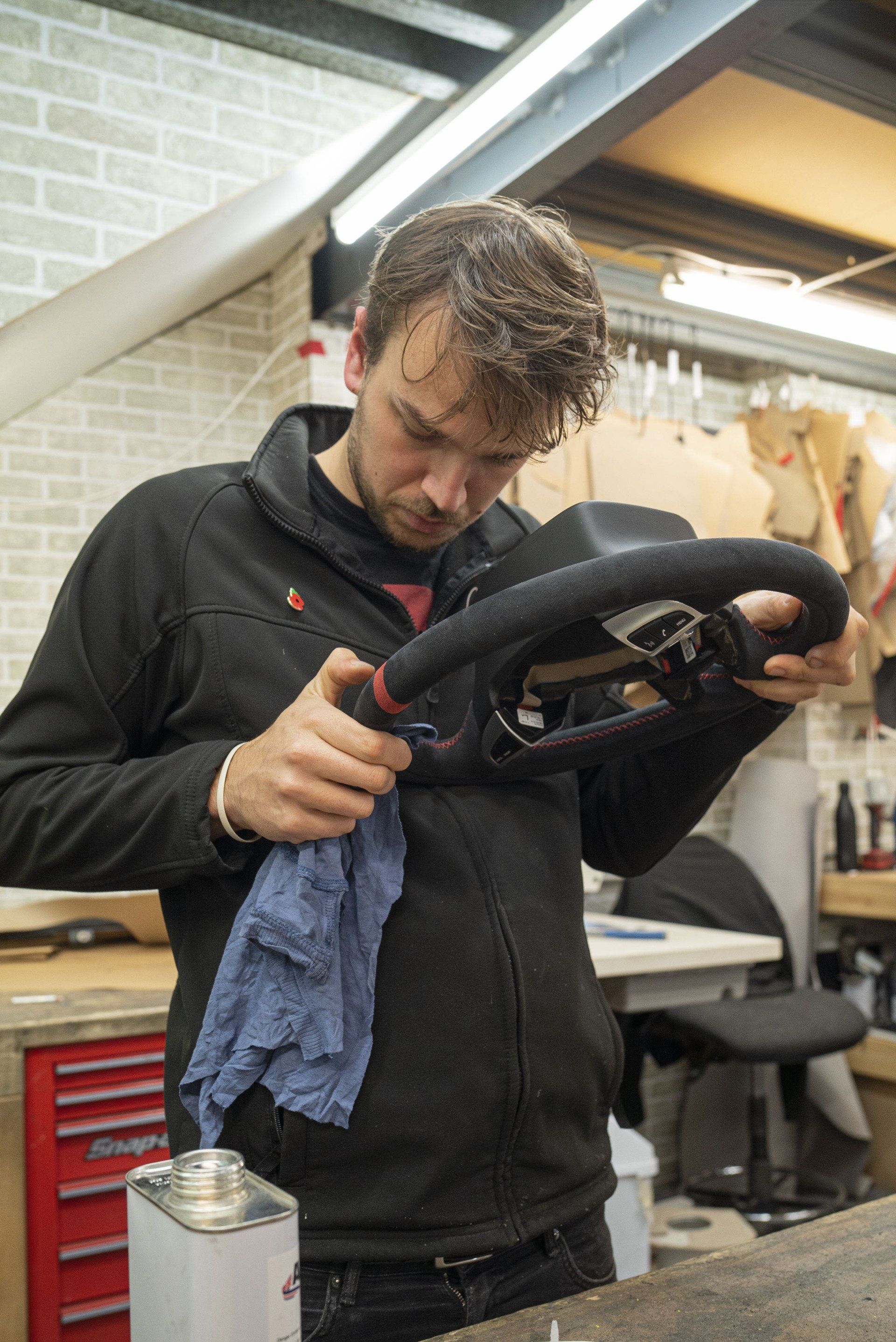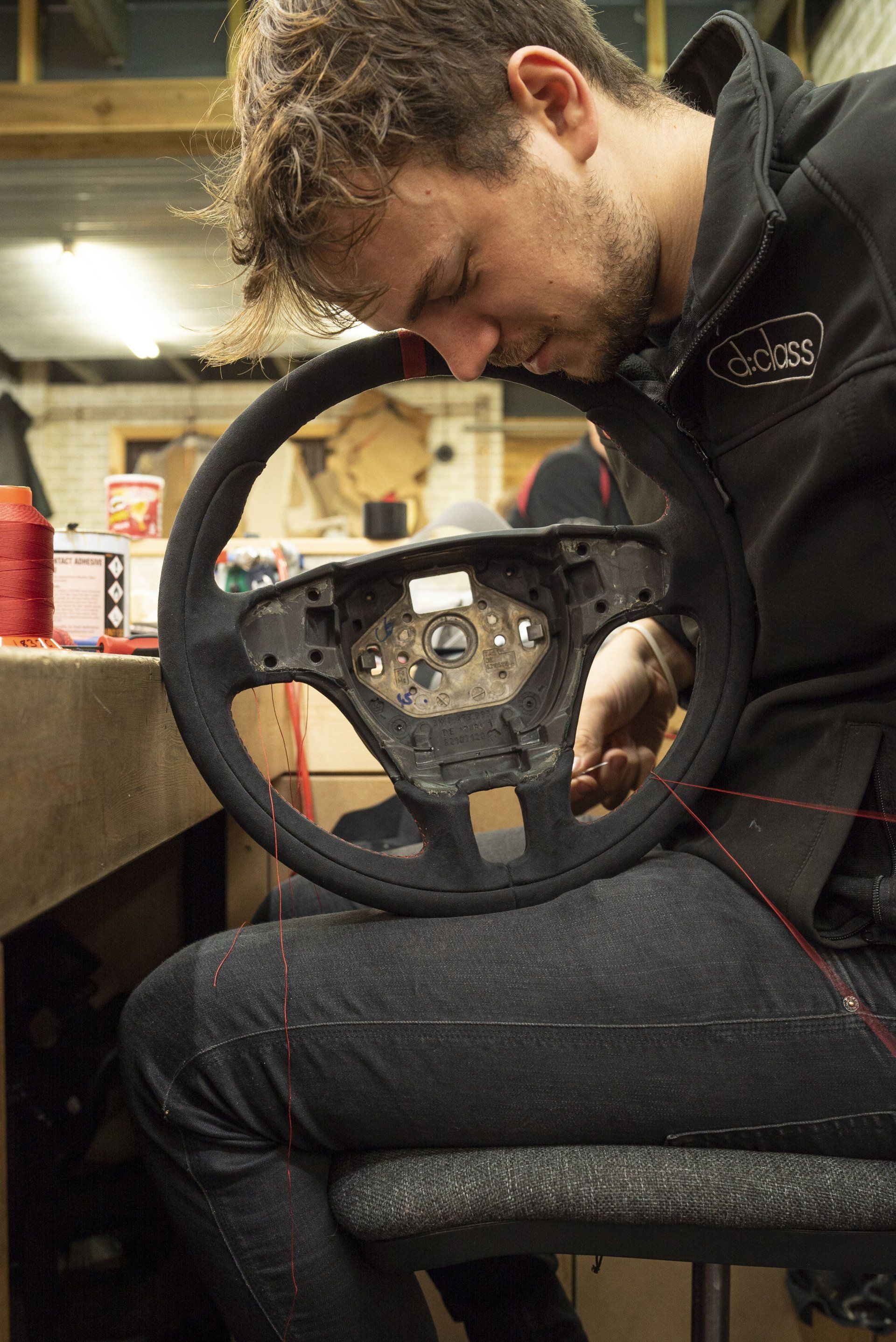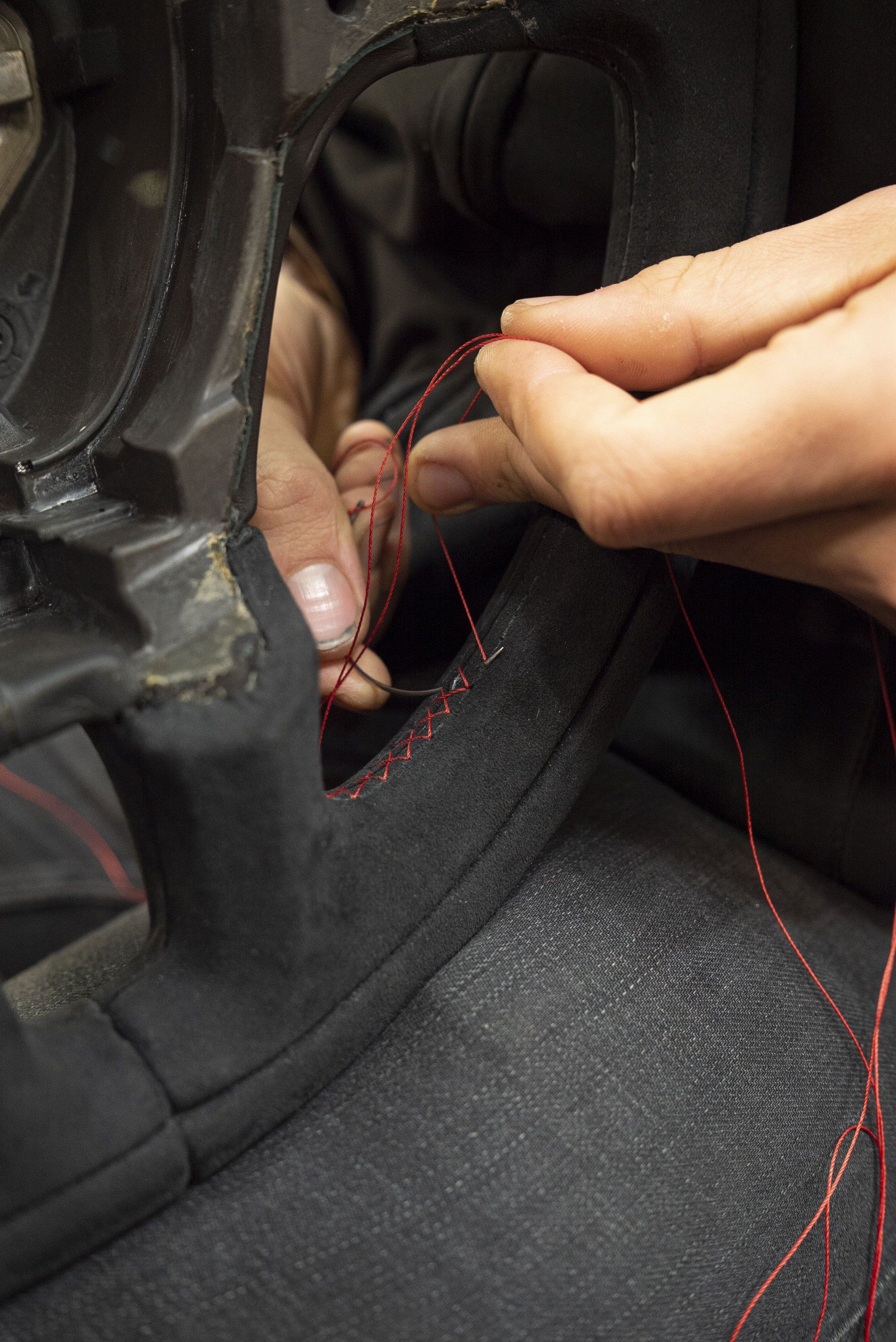Our first post of #2022 and we have a Bentely #wheelswednesday to kick things off. This Bentley Continental Super Sport has been retrimmed in black Alcantara to replace the original leather. A red alcantara racing band has been added and red stitching. The Alcantara and red accents now tie in with the rest of the interior. Swipe through for before and after images.