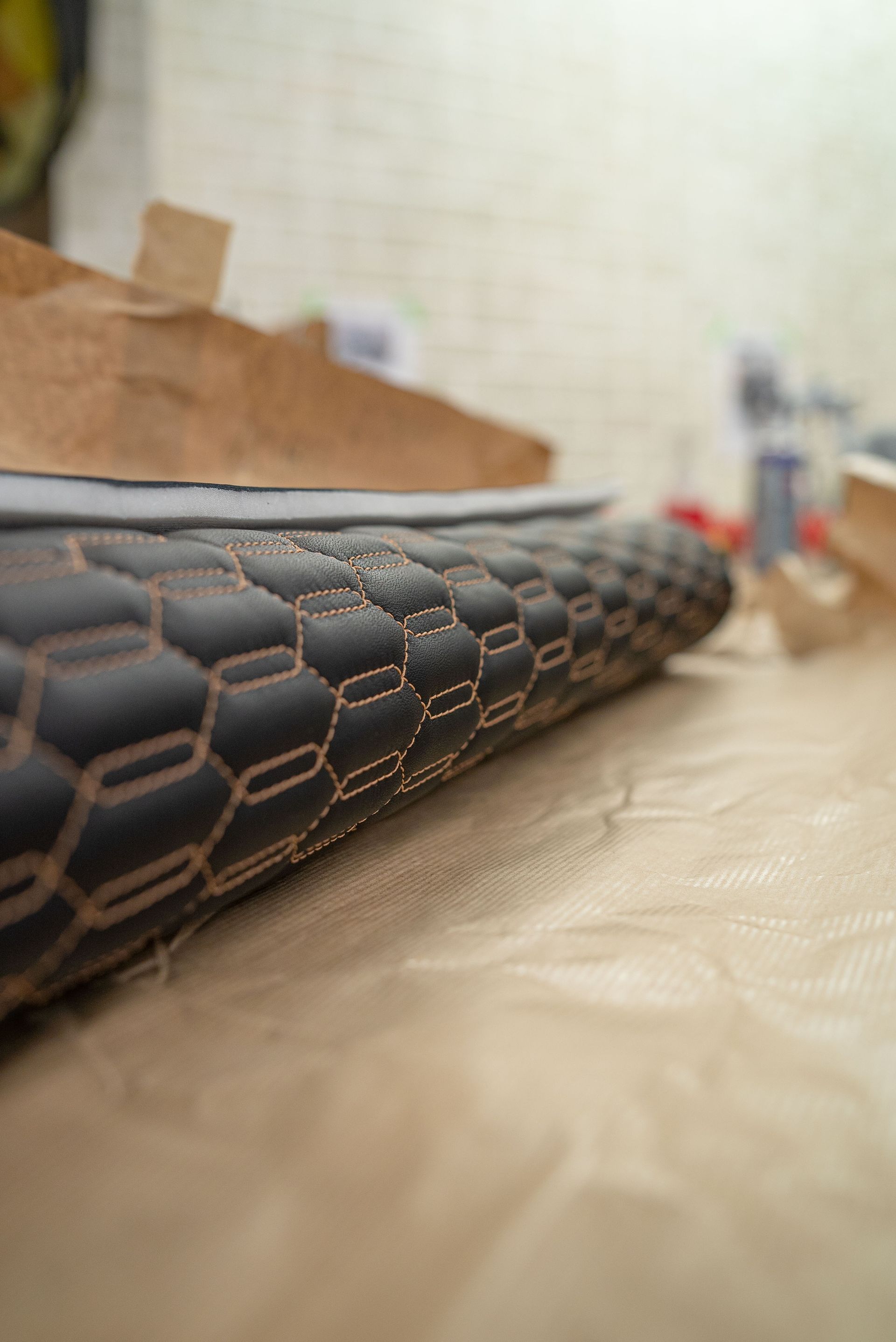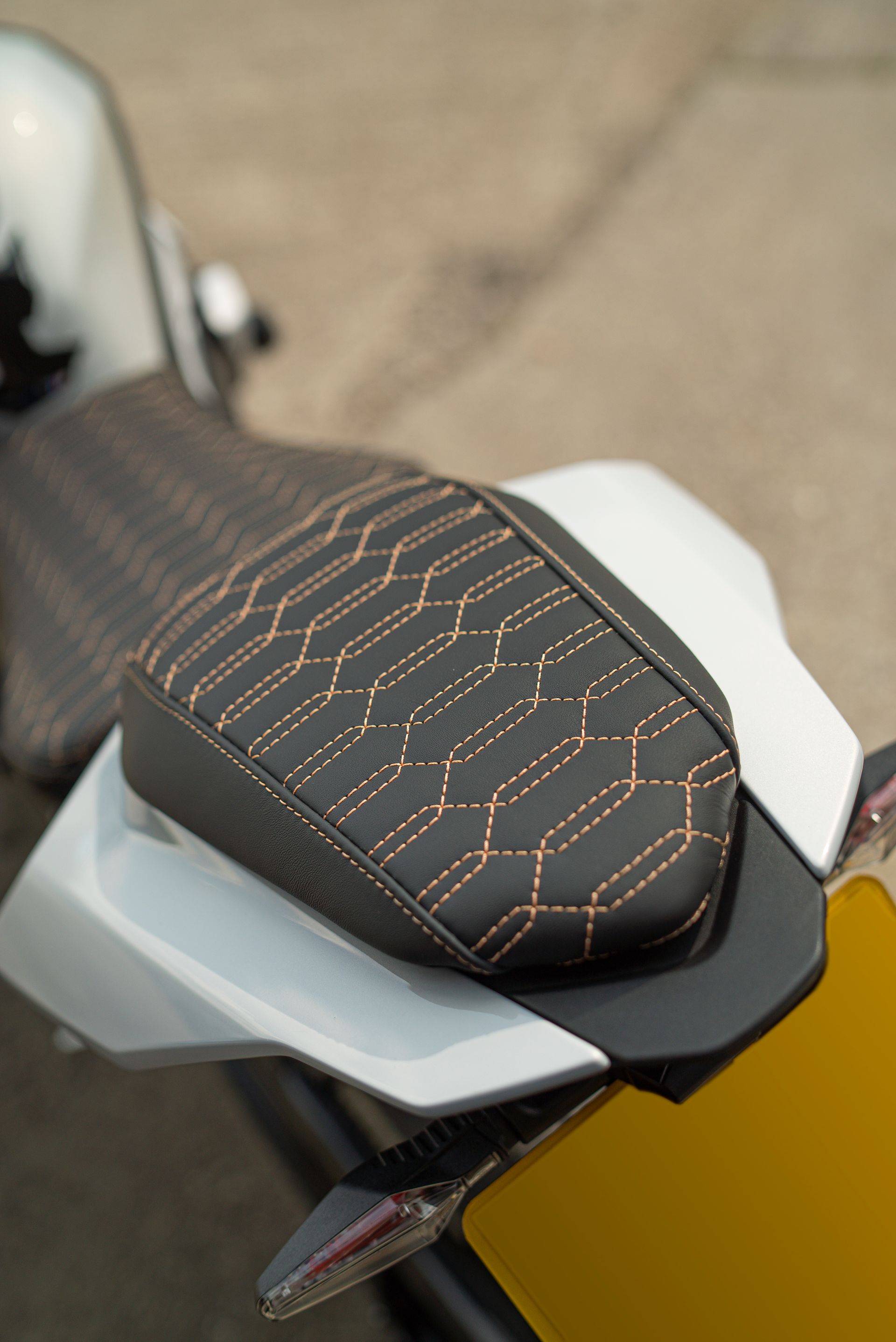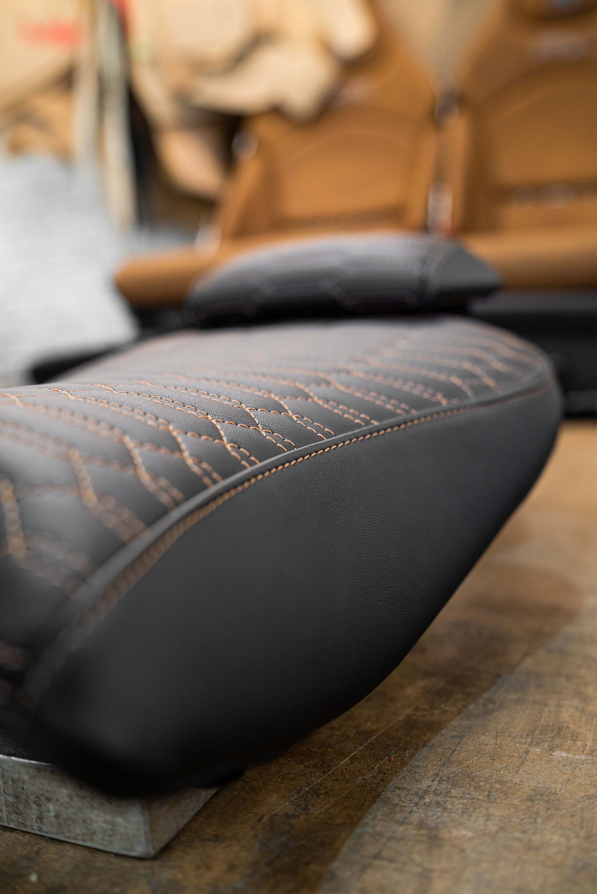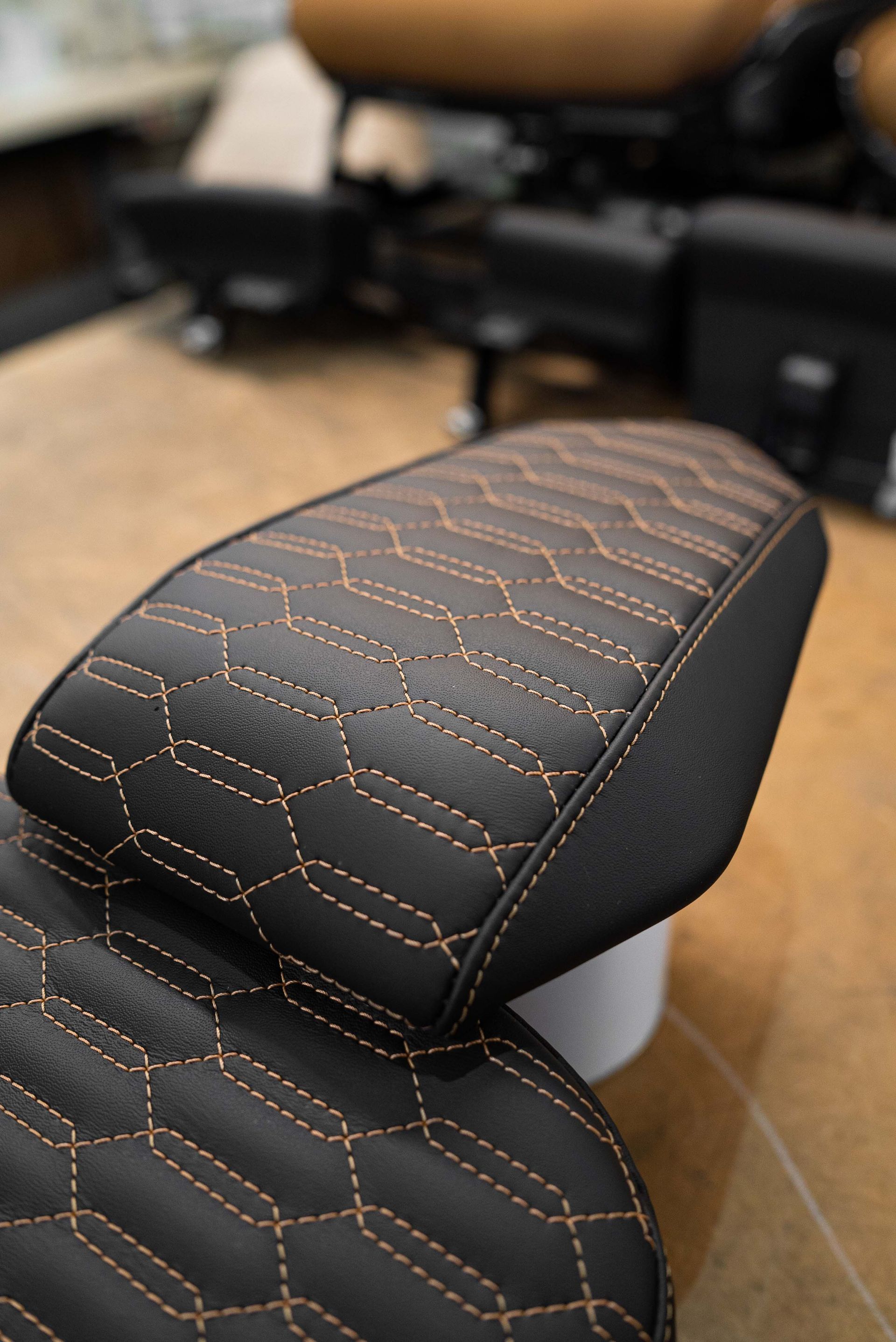 For this seat, we received a small list of requirements from our customer; make the seat comfier than the OEM spec, use black nappa leather, a copper stitch to match the bike frame, and create a modern CNC stitch pattern seat centre.
