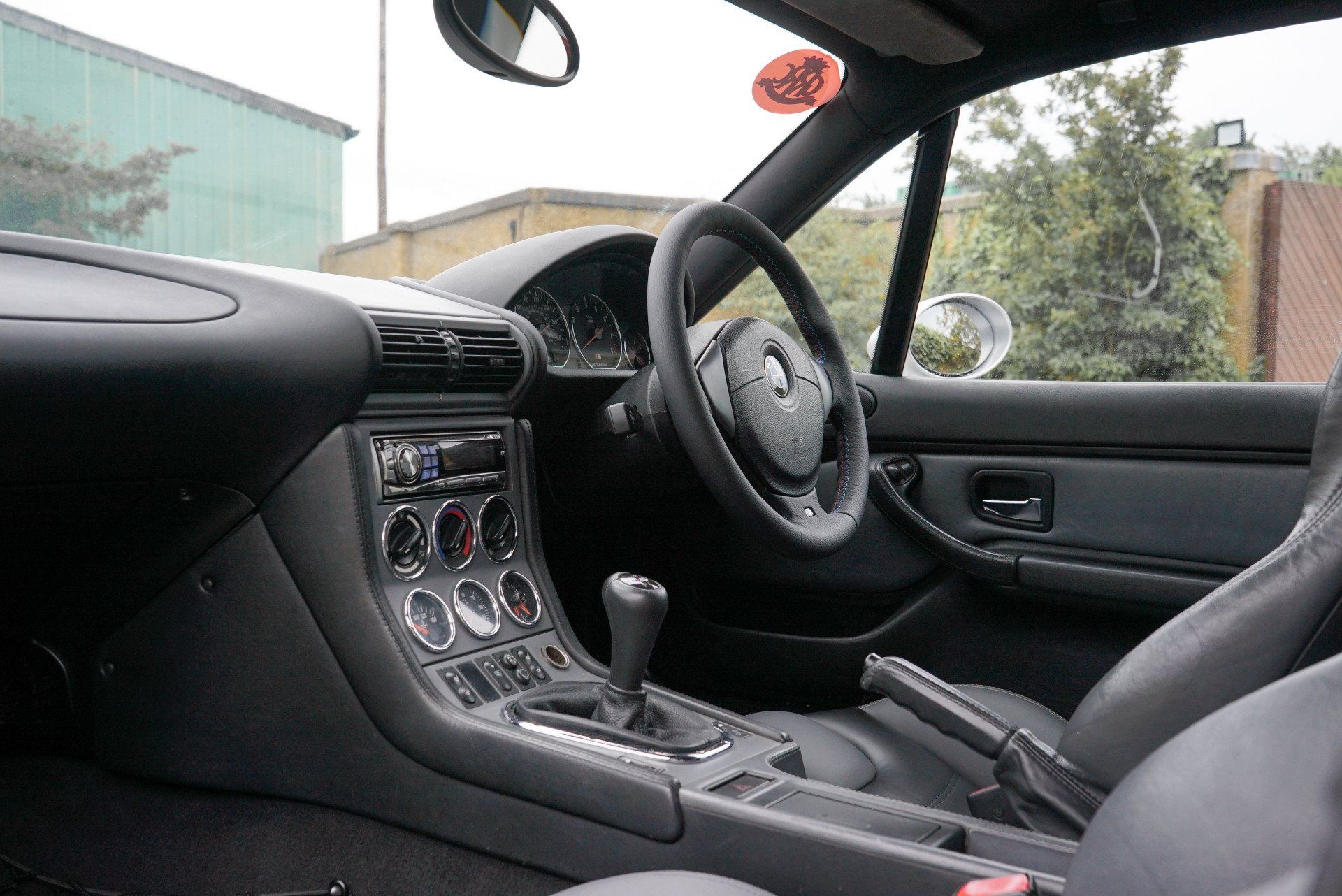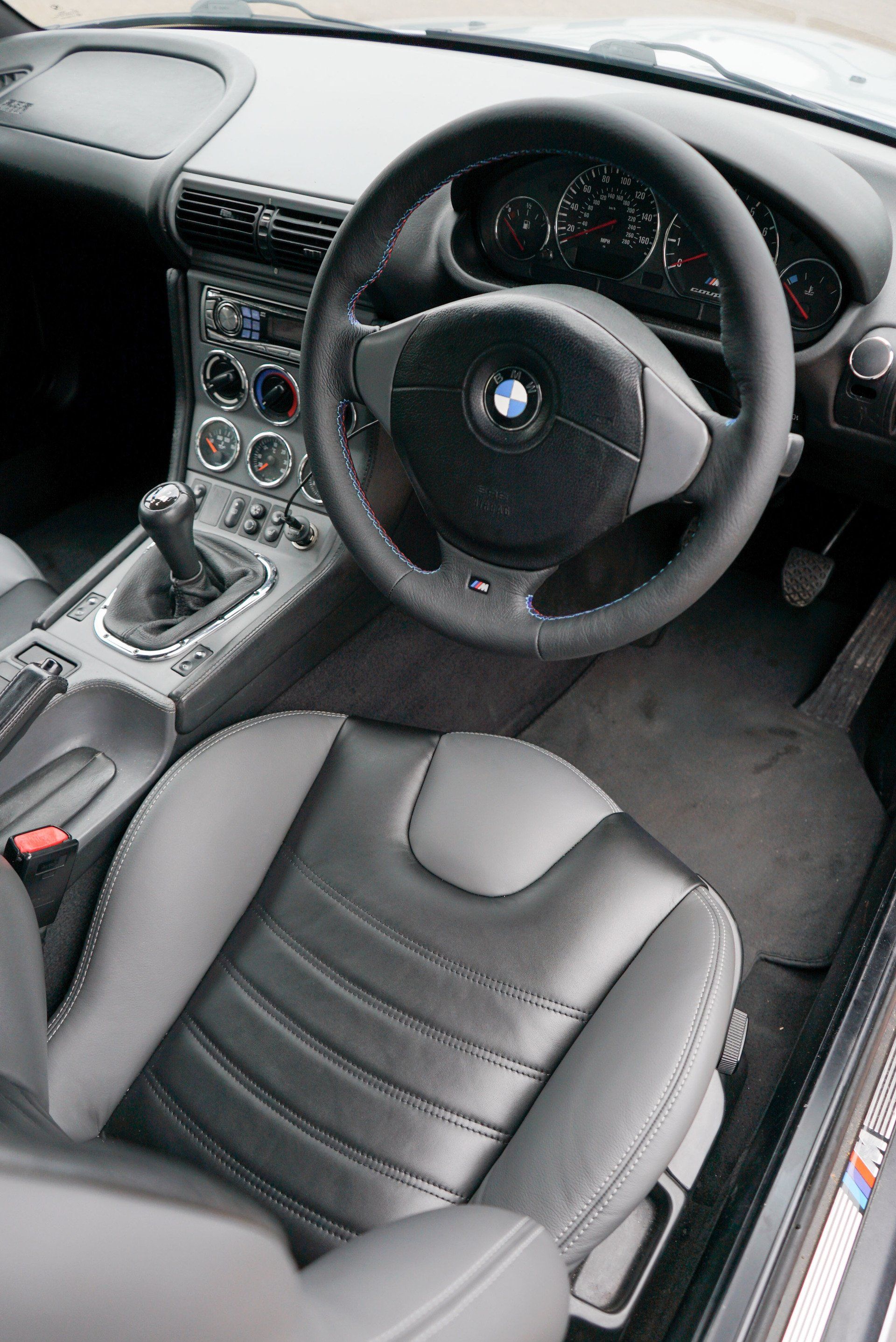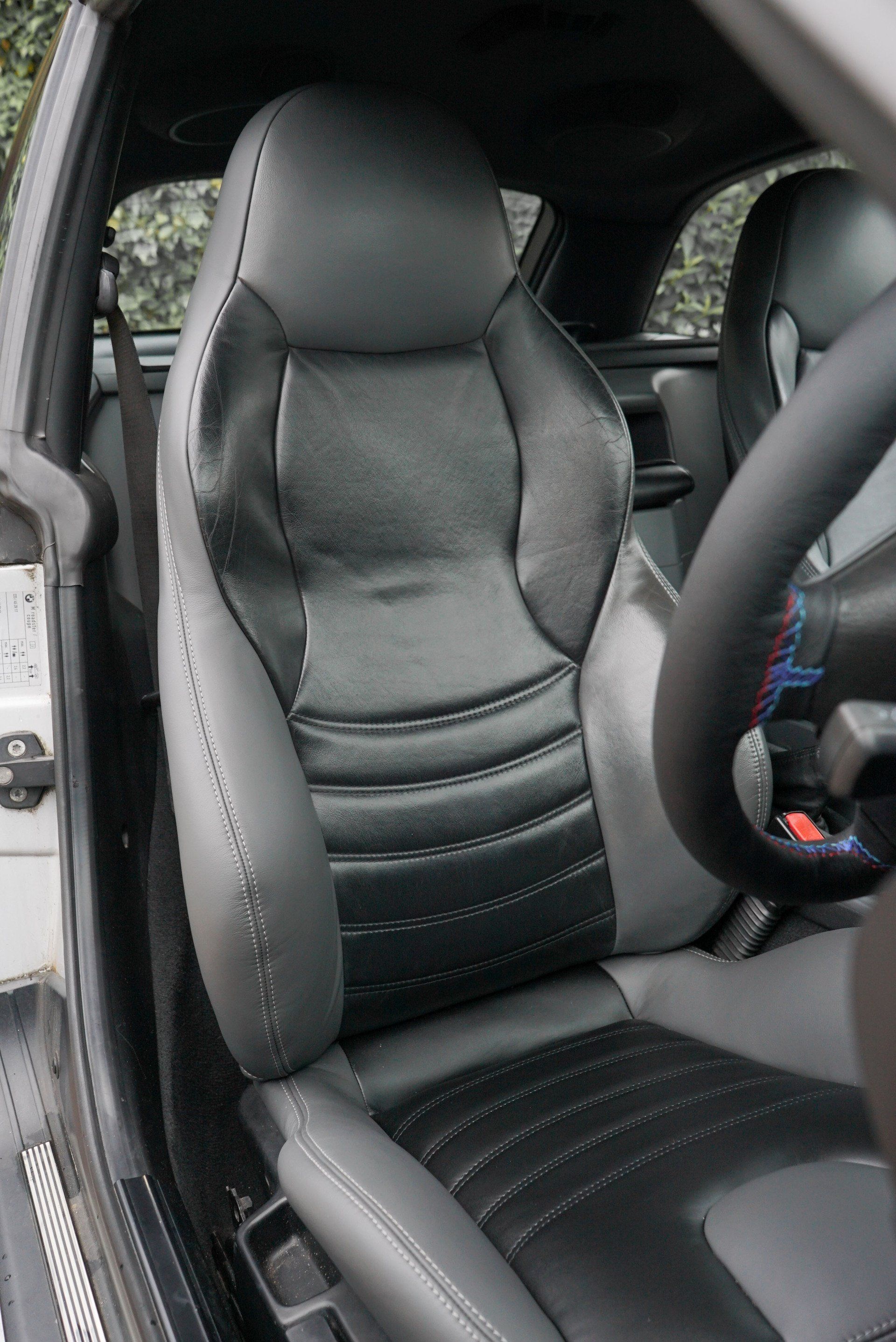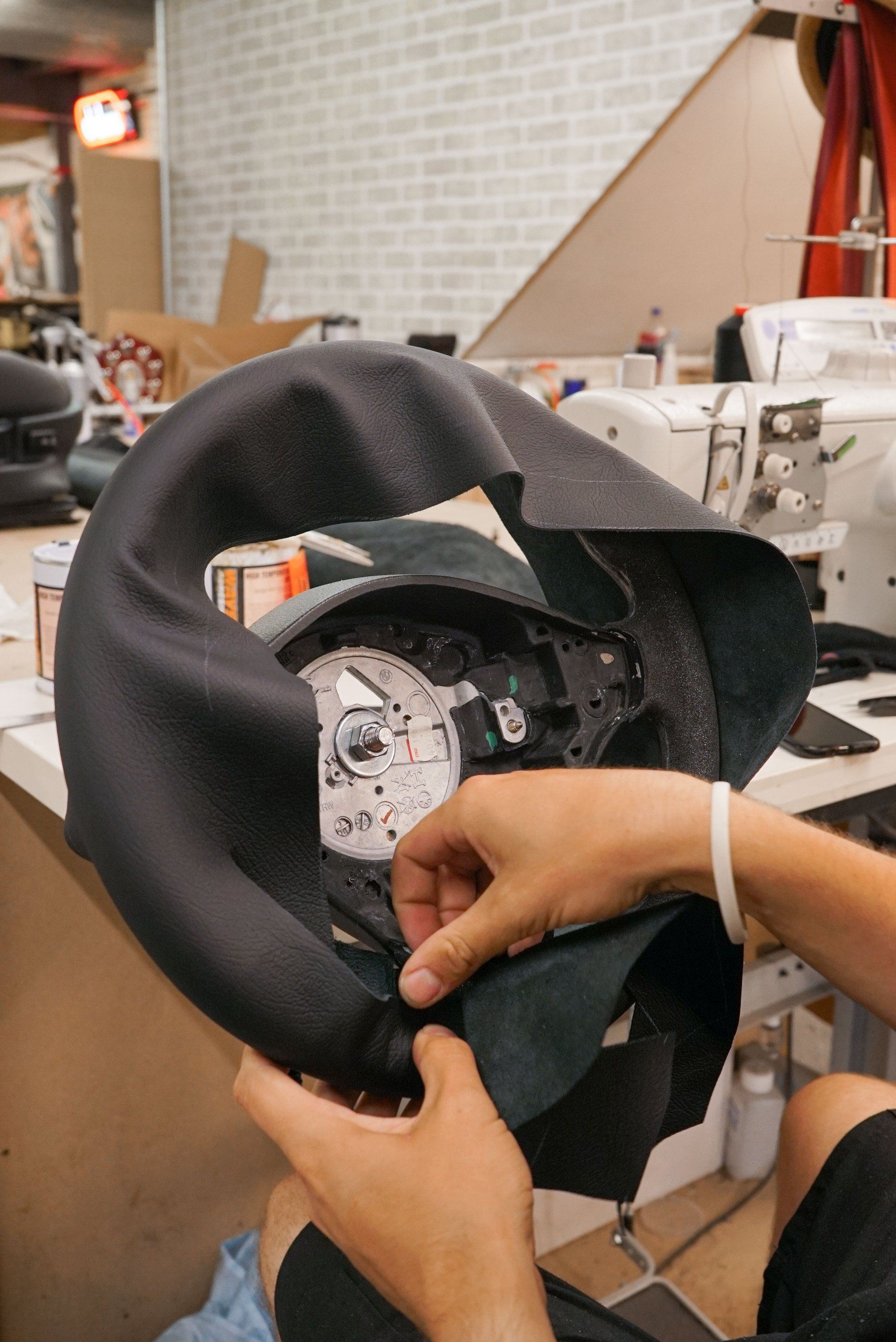 BMW Z3M Coupe which had it's steering wheel retrimmed in black grained leather. The original leather had been completely worn down by years of use and as a result had become shiny and flat. The original wheel also had tri-coloured M stitching which lost all it's colouring from use. The freshly retrimmed wheel now has brand new stitching bringing the interior on this modern classic back up to date.