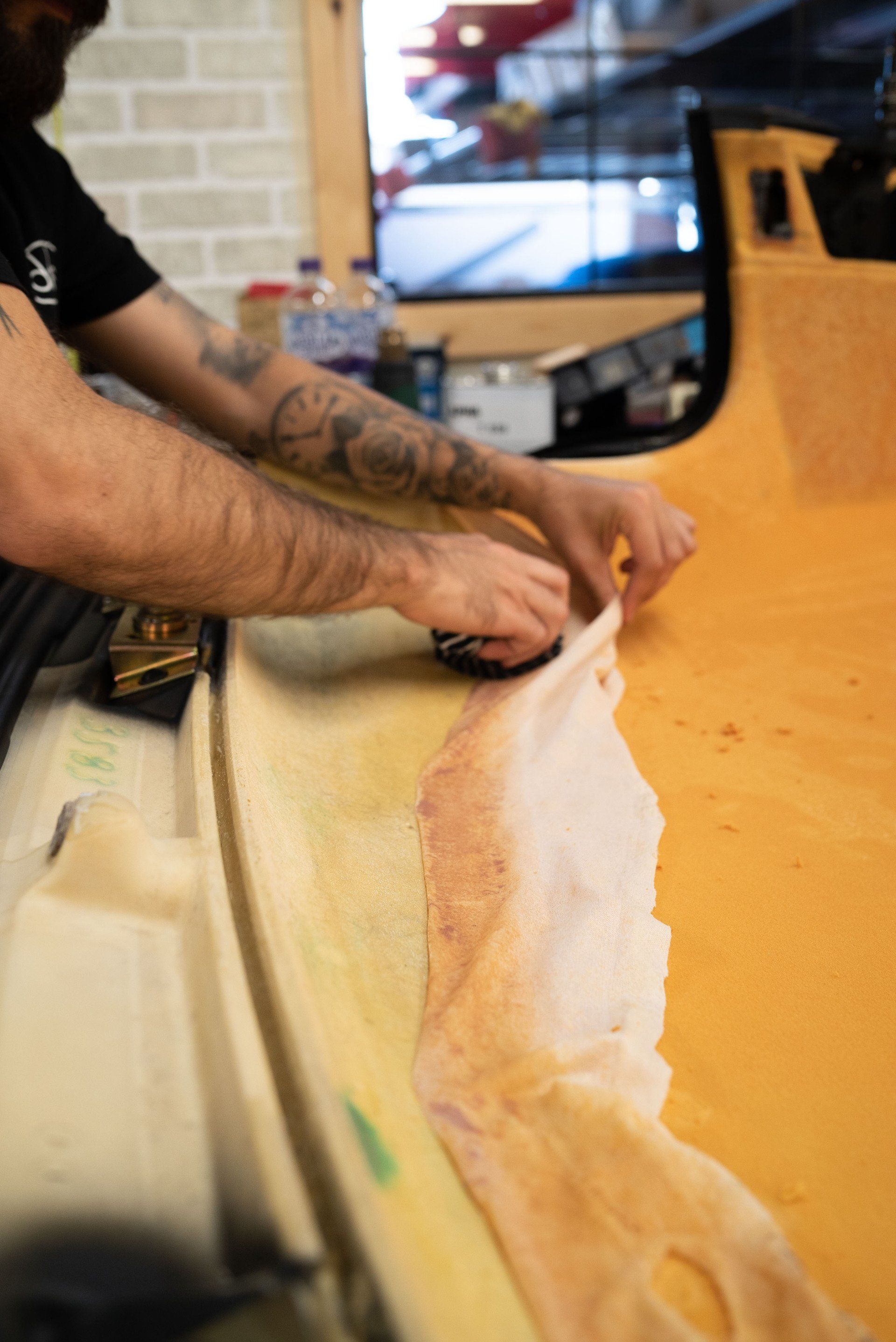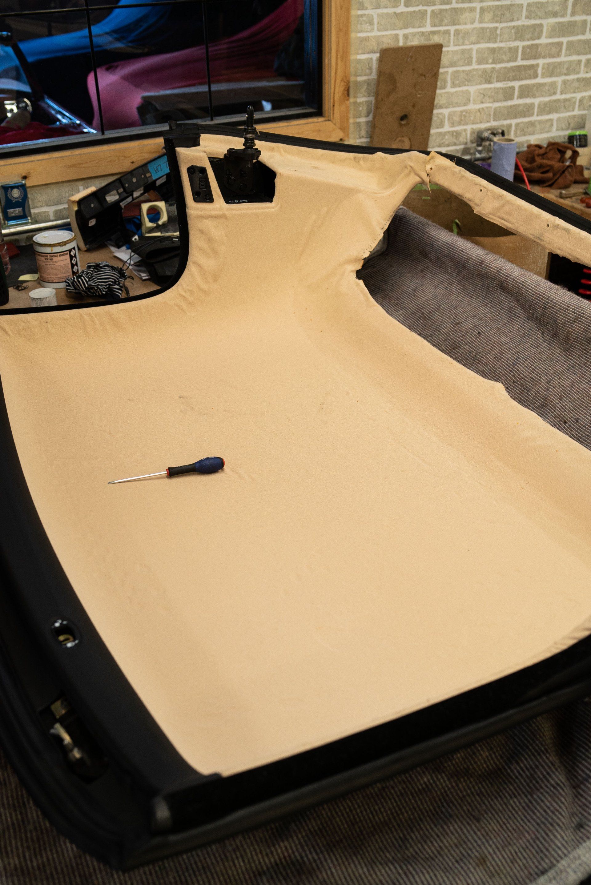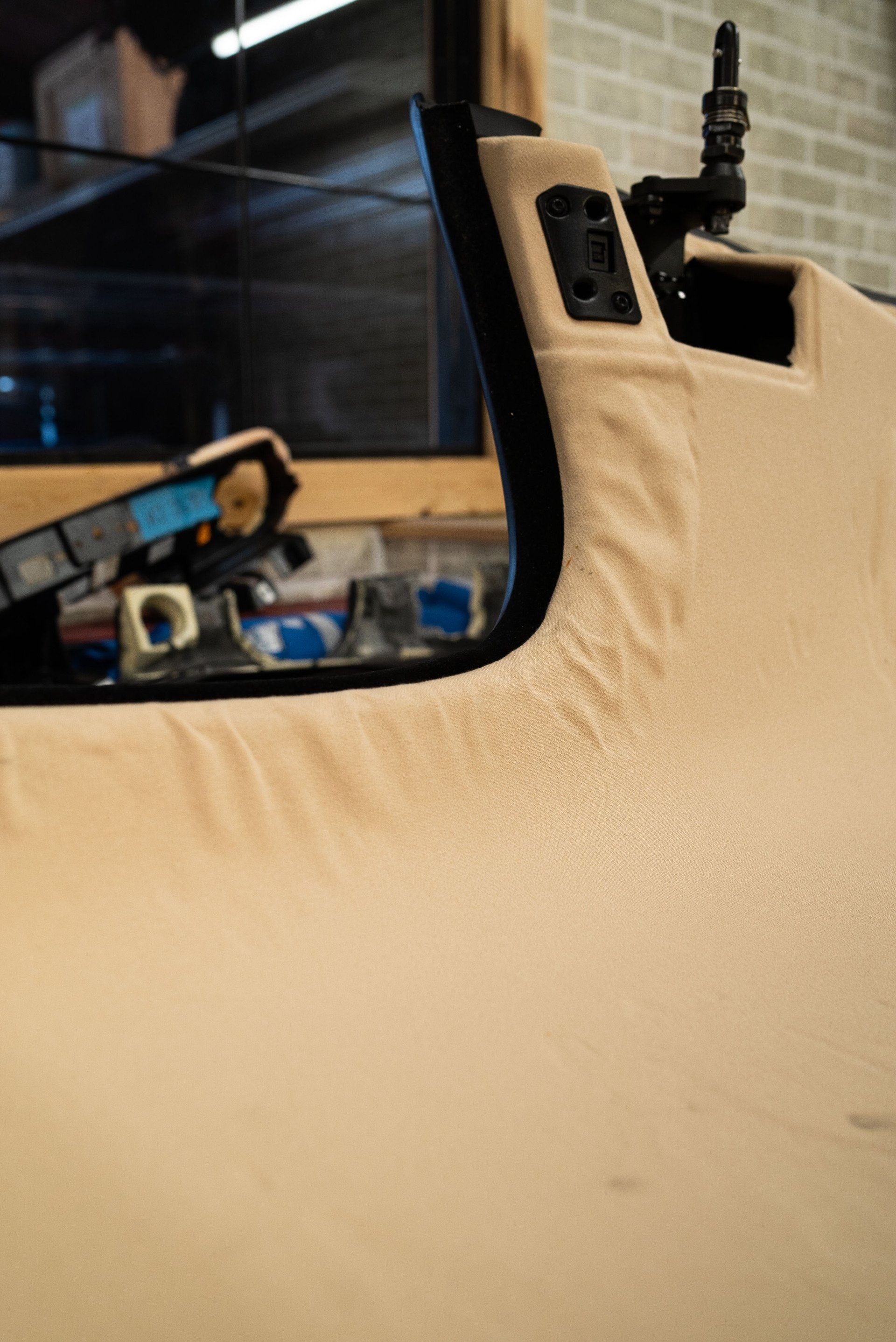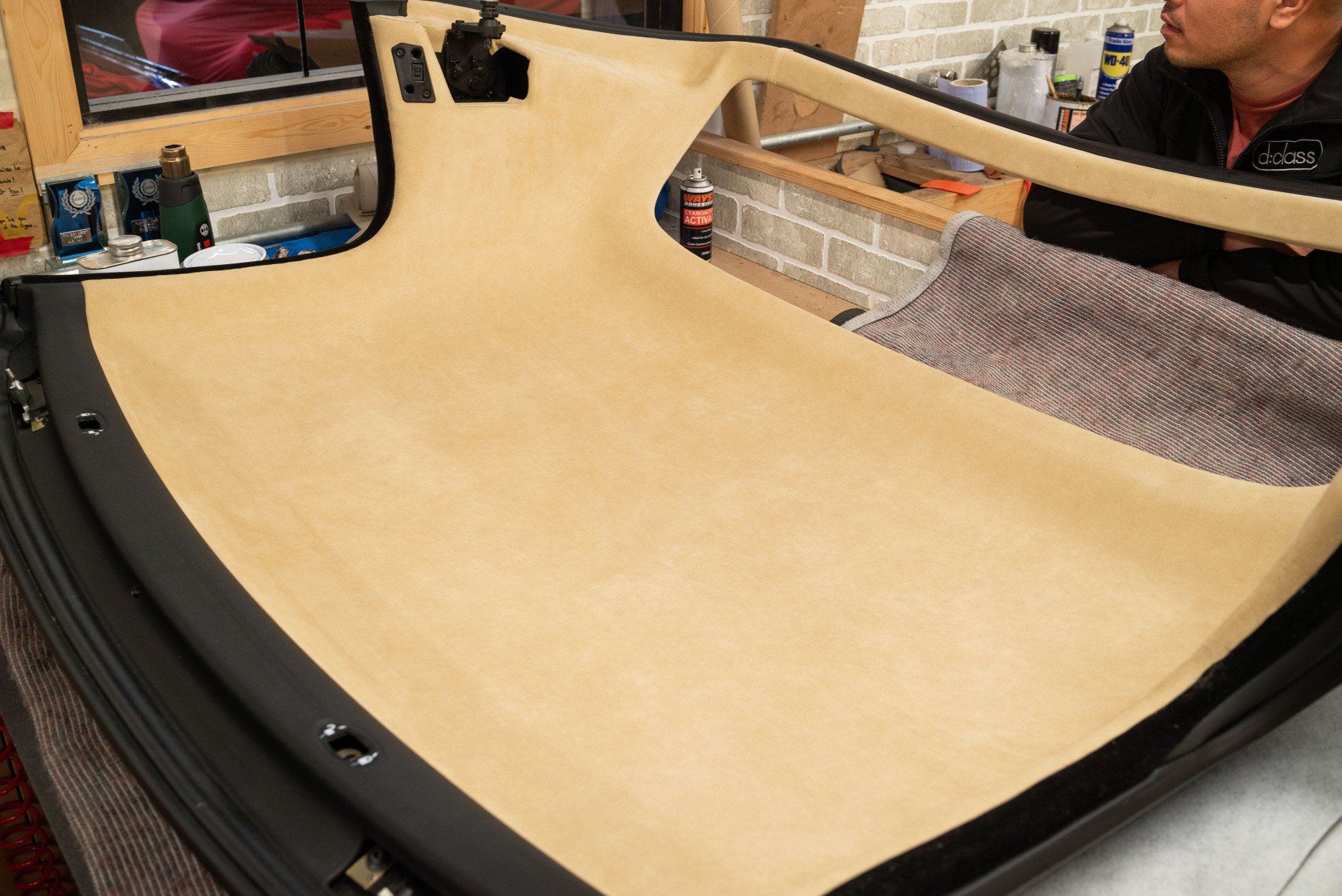 BMW Z8 Hardtop we had in for a retrim due to the original material becoming worn and saggy. Amber Glow Alcantara was selected as a replacement to the original material, This is more durable and easier to work with than the OEM product. The glass had to be removed to access those hard to reach areas, ensuring the best possible finish for the vehicles now refreshed hardtop.
