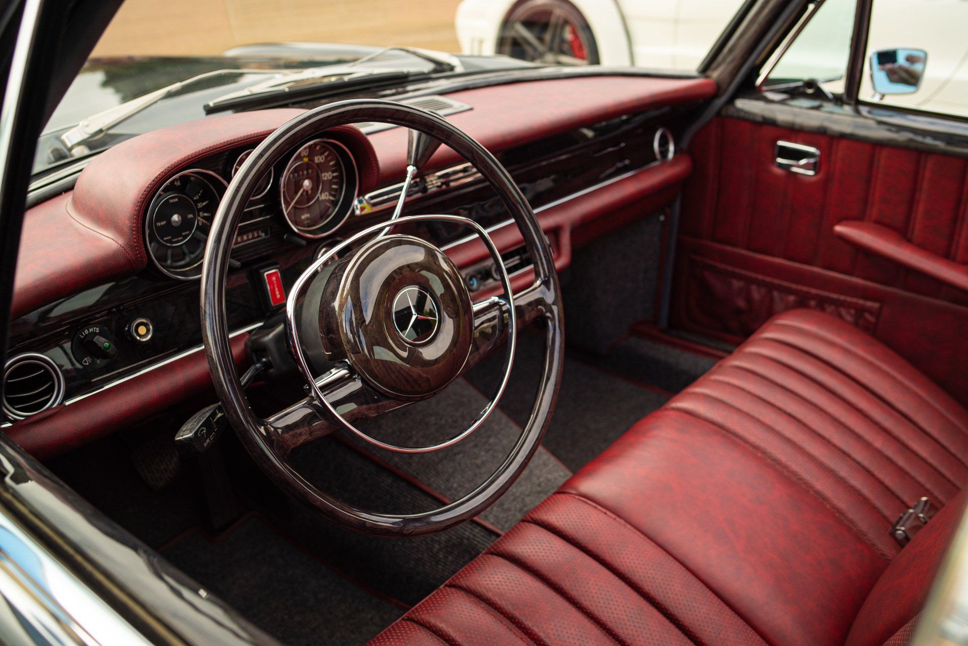 Last but not least is the bespoke door cards featured in this W108. The original door card woods were totally warped and damaged, this is totally normal for Mercedes of this era and age. We keep an archive of original door card templates from all types of Mercedes-Benz.