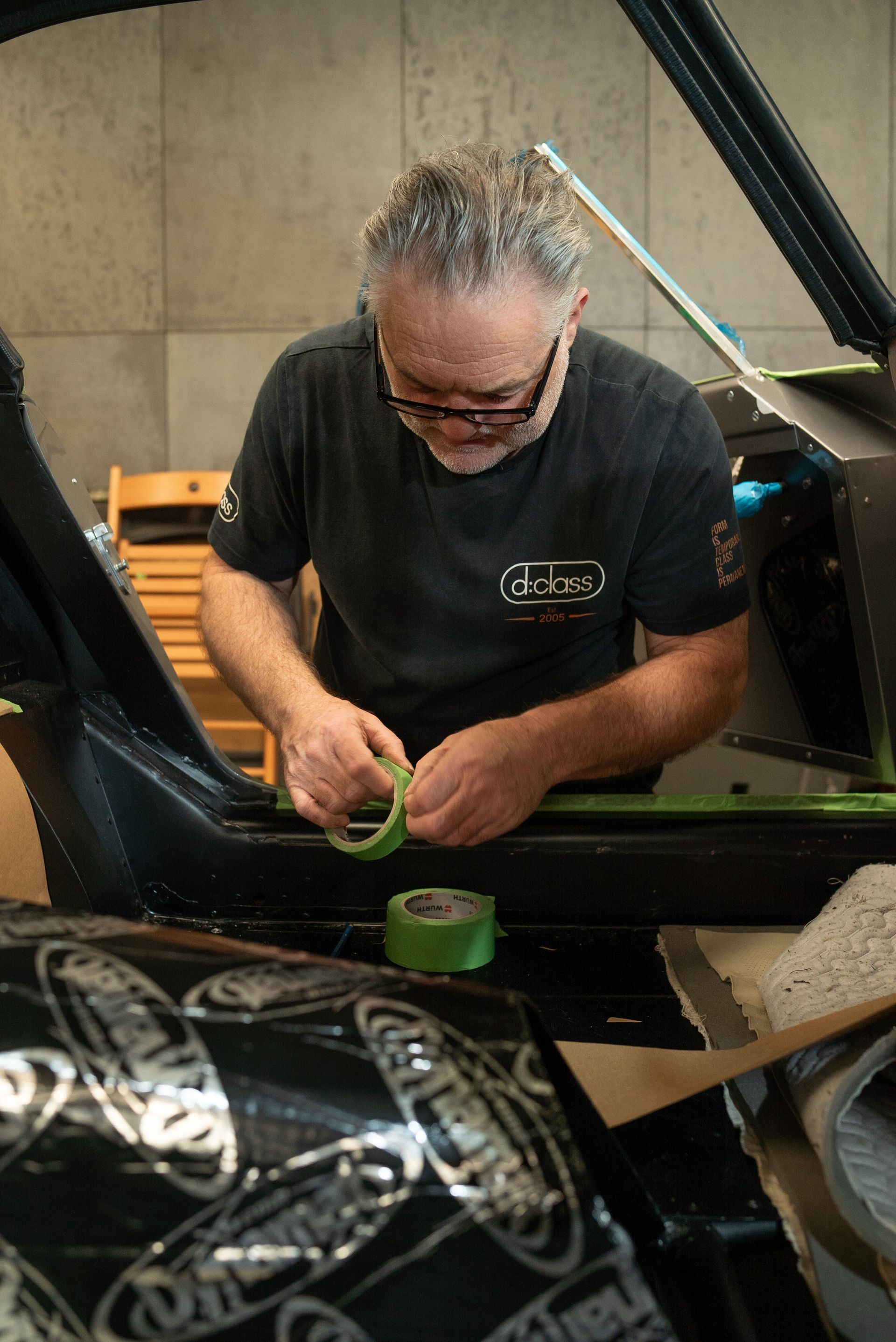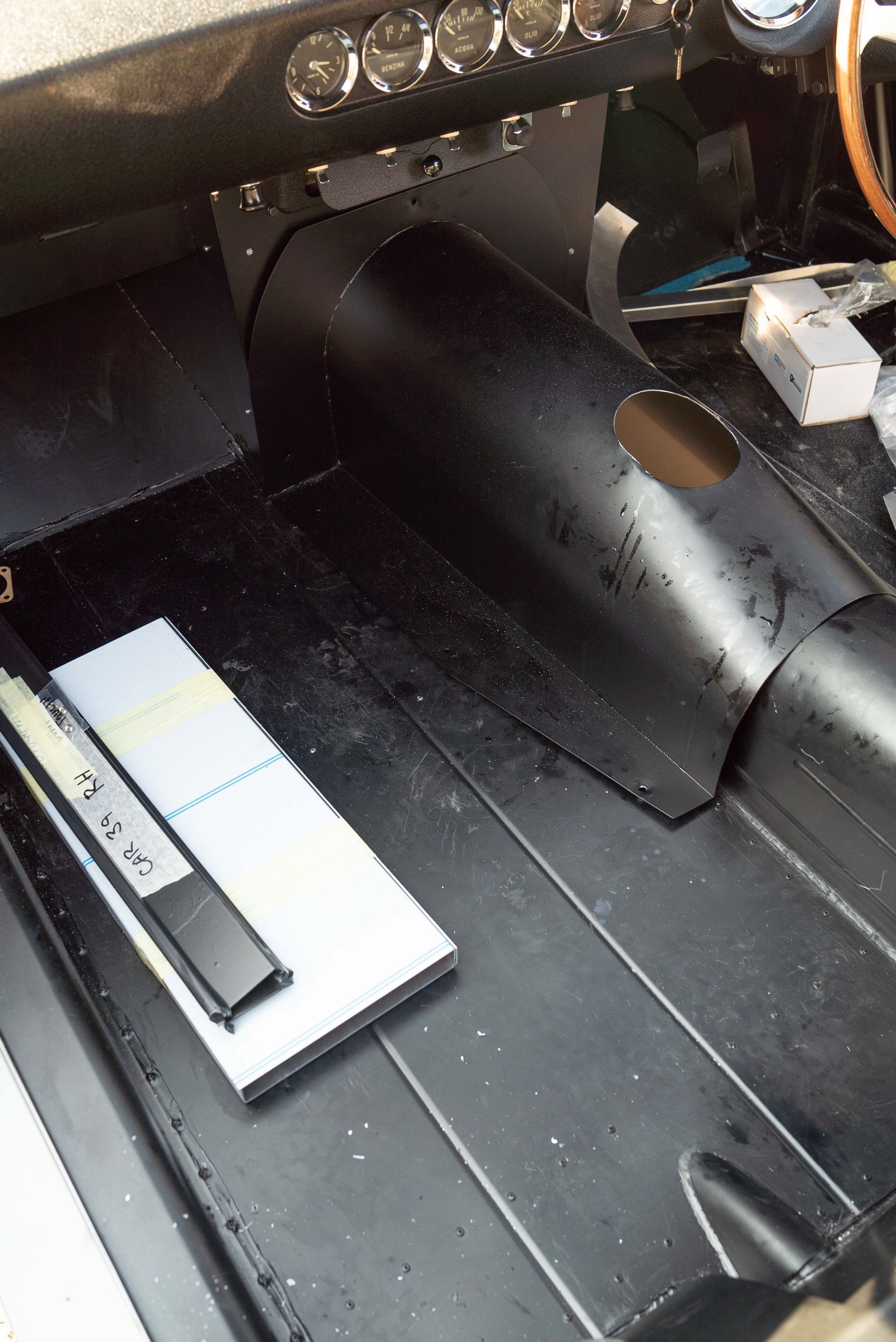 Because each of these Ferrari SWBs are hand built, this means that they are ever so slightly different from one to the next. Now this doesn't mean panels are centimetres off, its points of millimetres for some of the interior panels. We make everything here at d:class totally bespoke to the car, so one of the first steps is making sure all of these interior panels line up perfectly before being trimmed and installed.