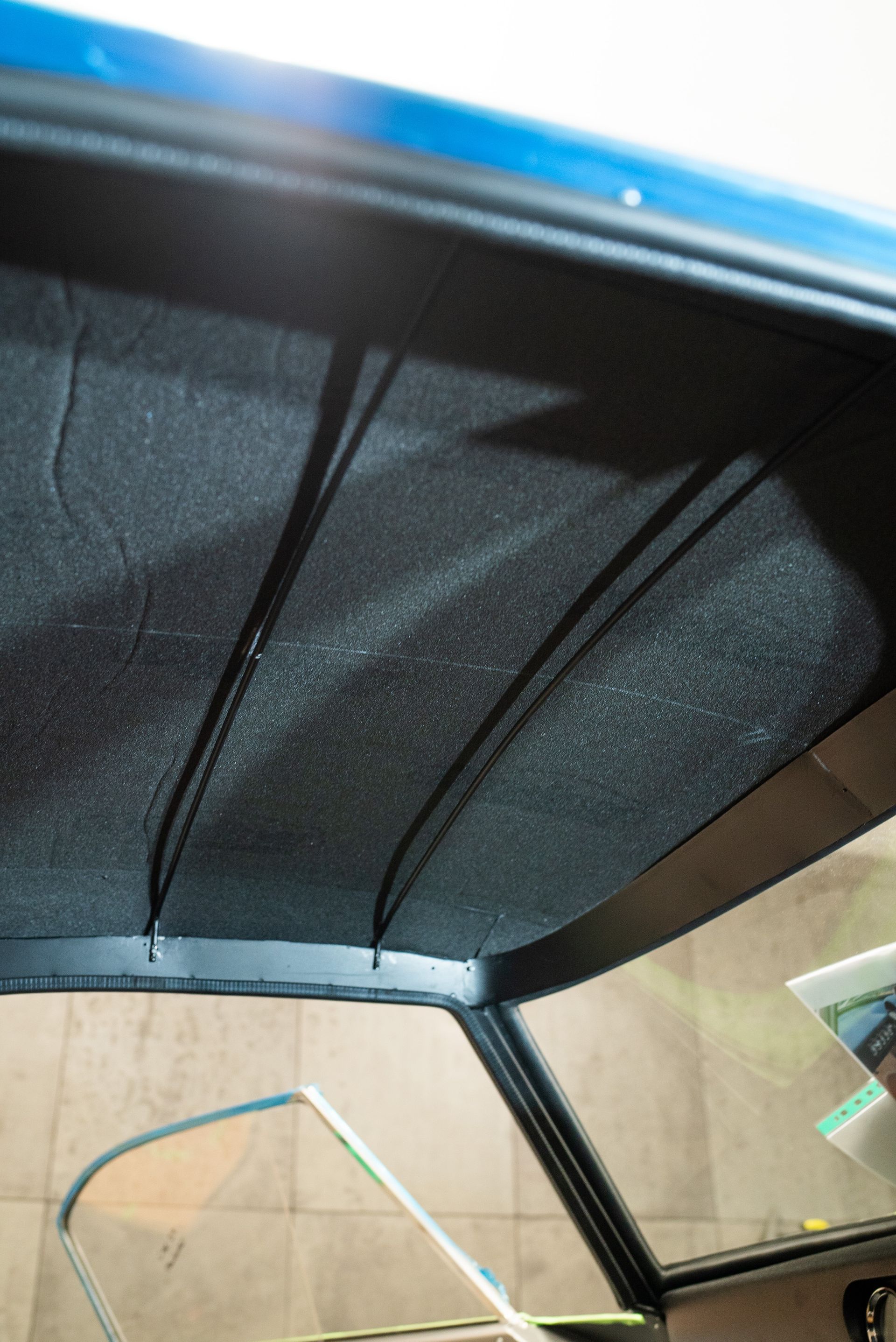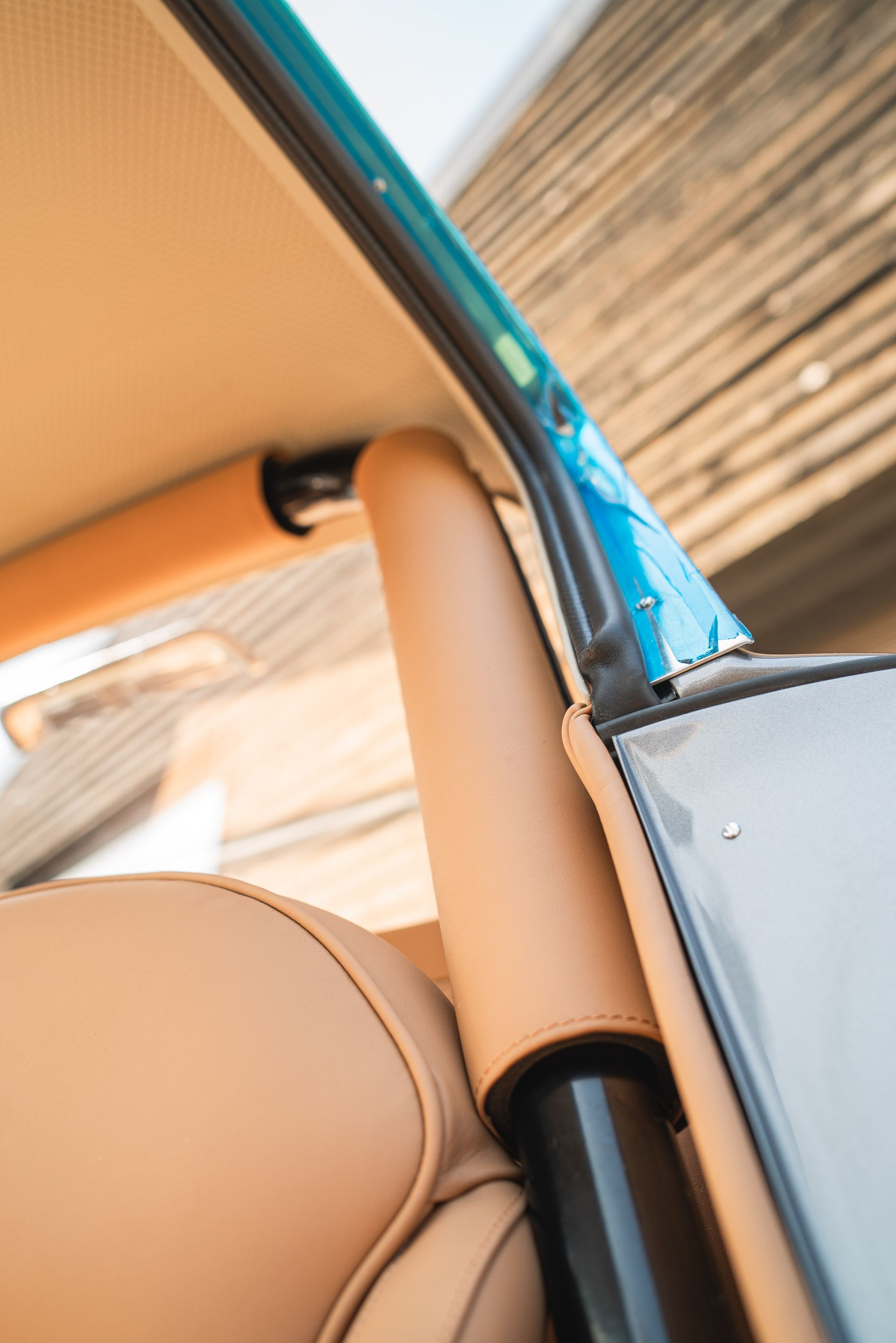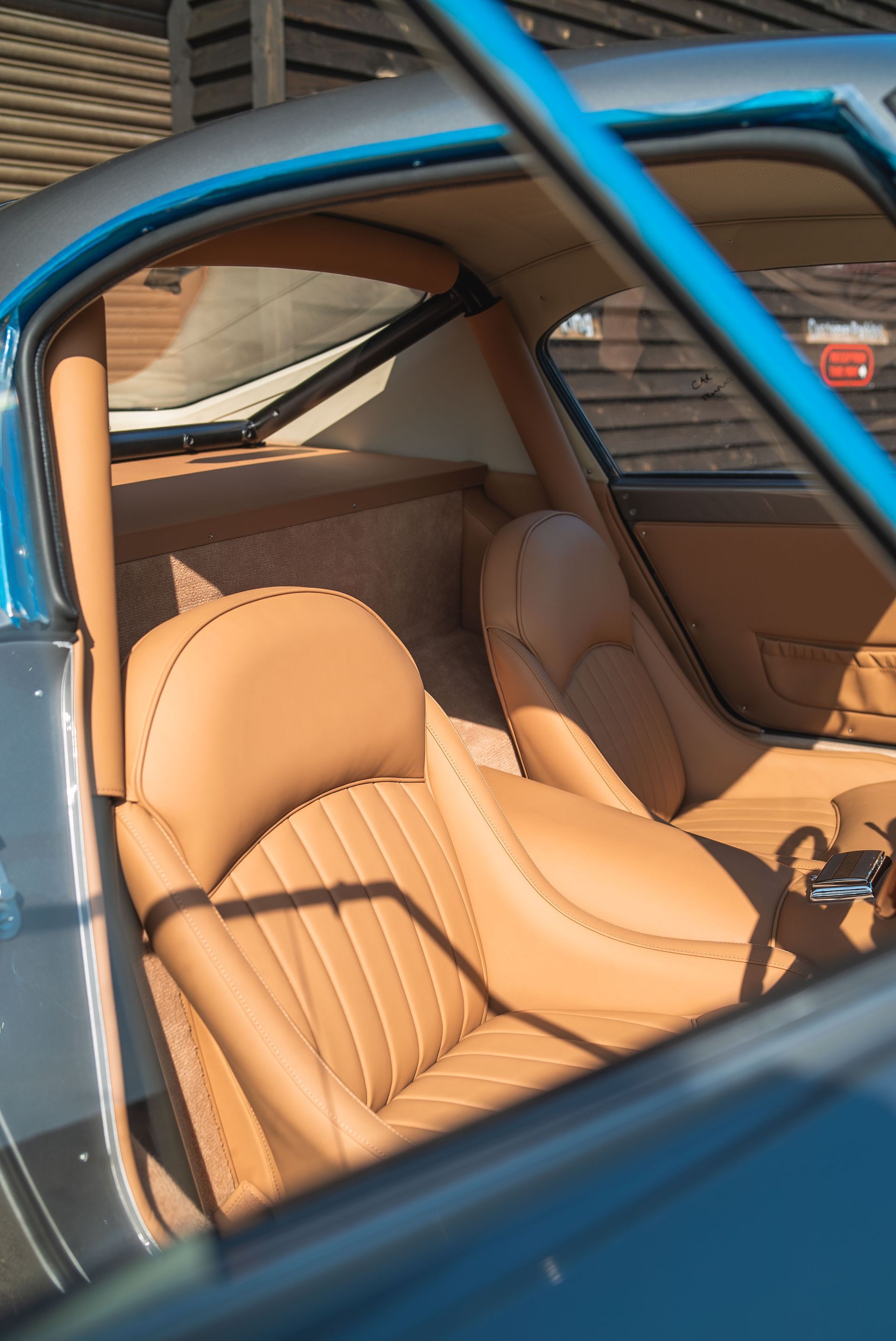 This build is the first that has required the roll cage to be trimmed. At the point of writing this blog, one other car had a roll cage but did not required trimming. Once again, the same tan leather has been used to match the interior with foam underneath to provide a little bit of comfort, if you were to bonk your head from some "passionate" driving.