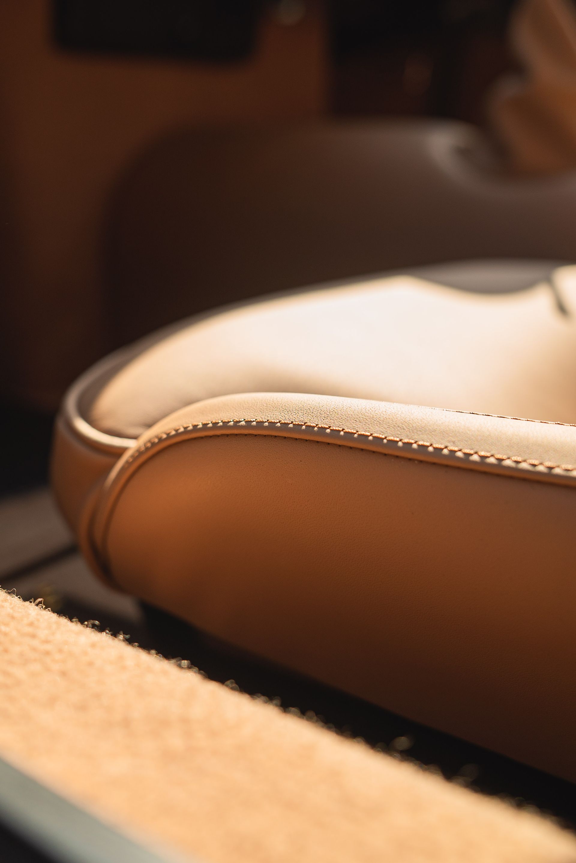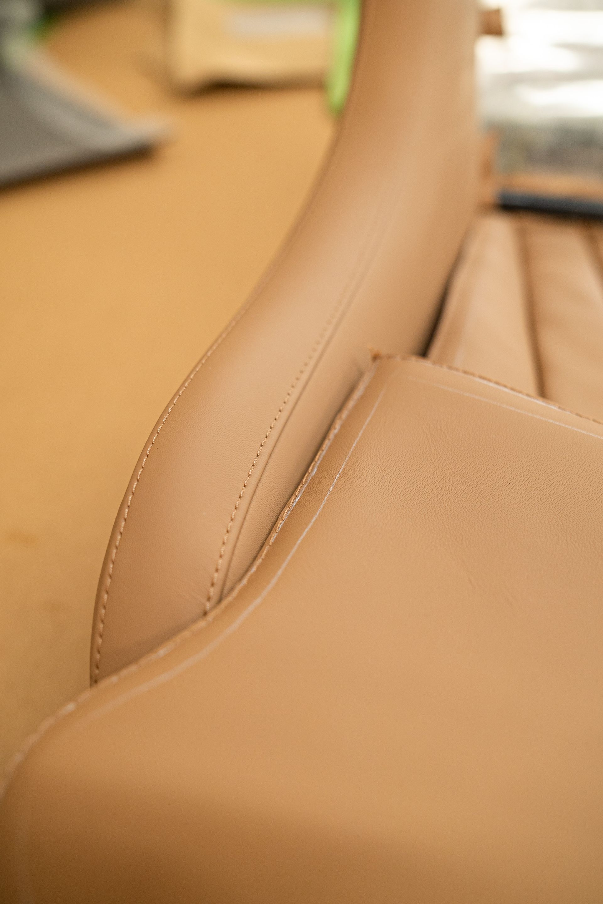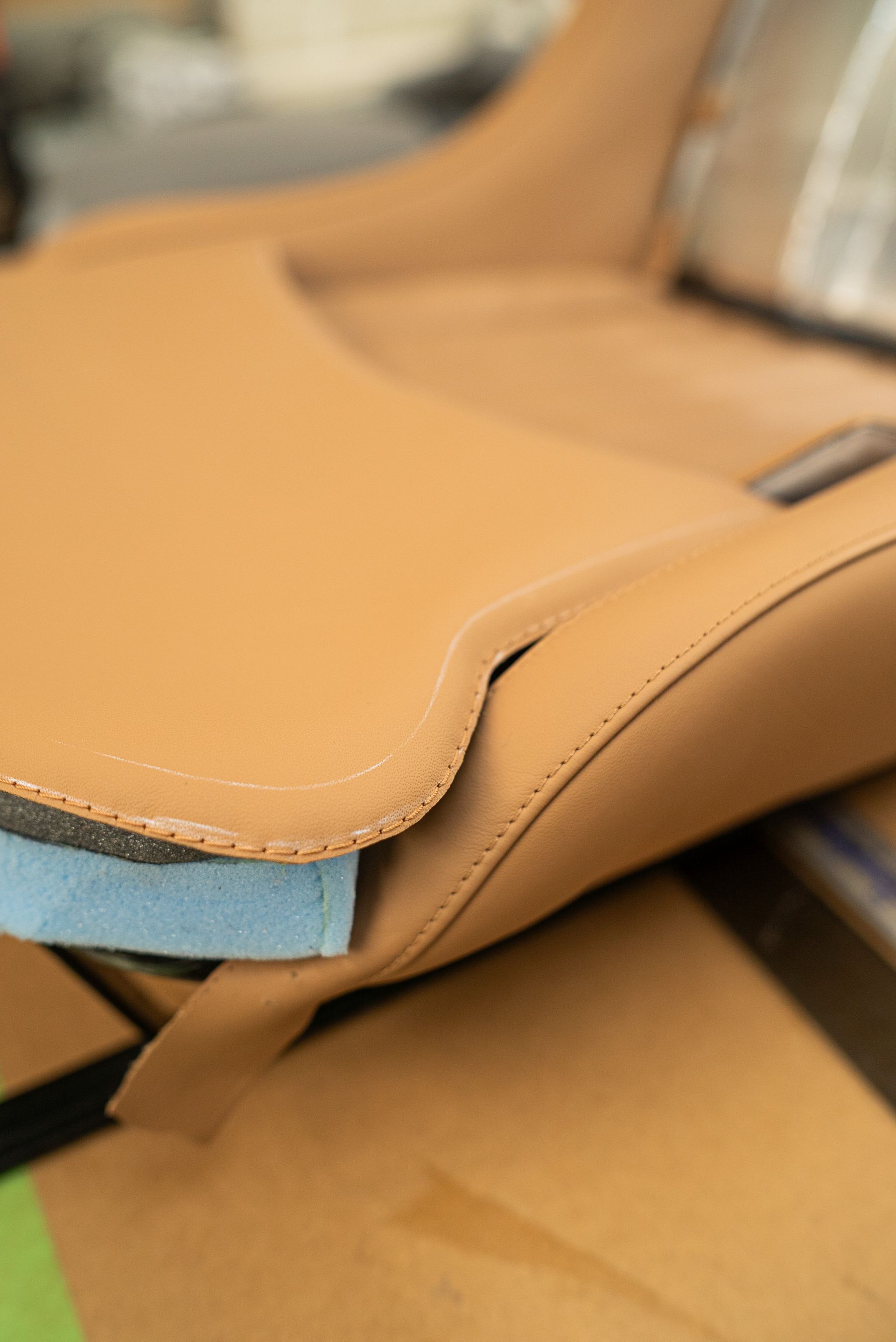 Tan nappa leather was selected for this project, much like the leather chosen for build No2, but in a slightly different shade. Custom foamed bases and bolsters were built up and moulded to accommodate the new leather.
