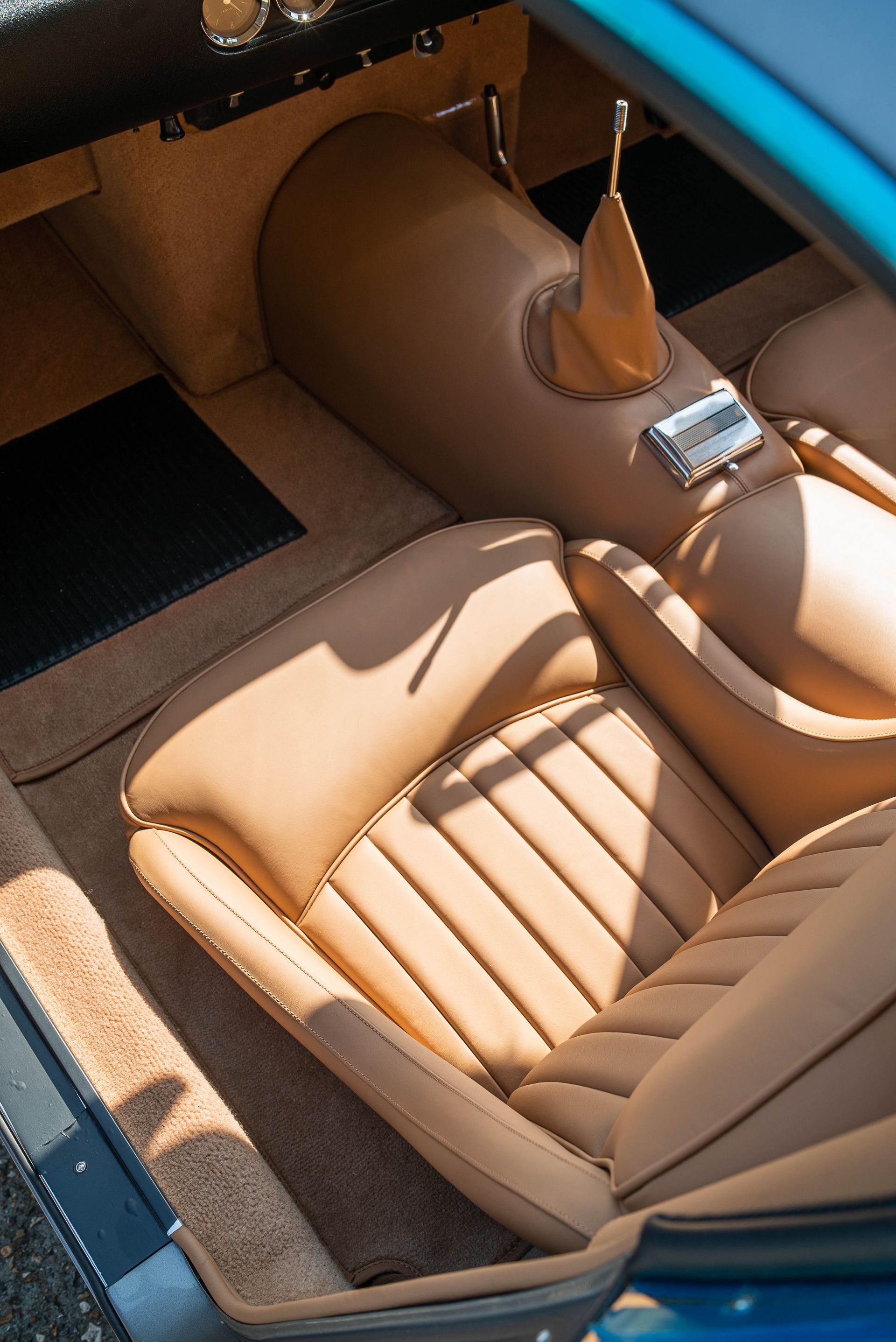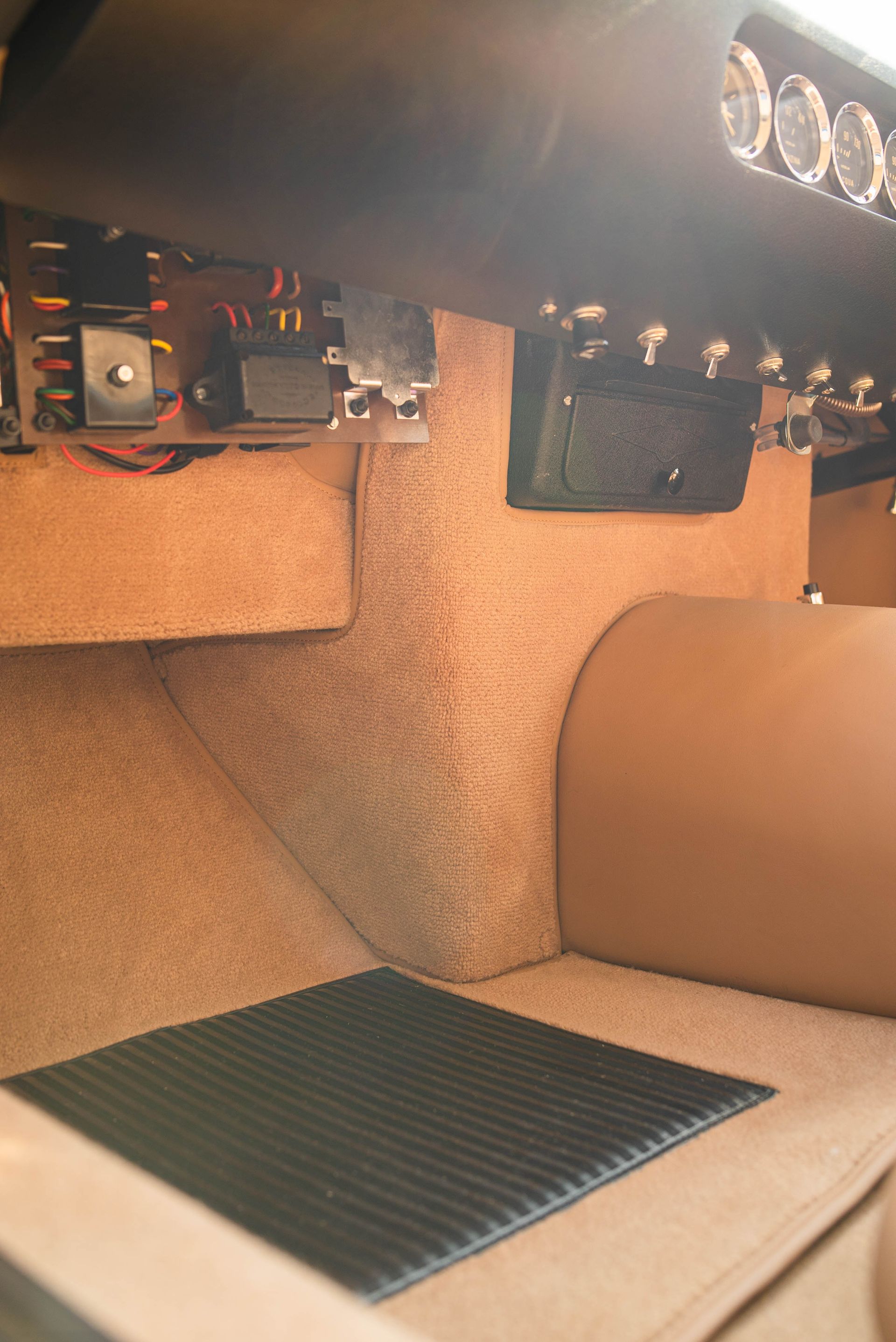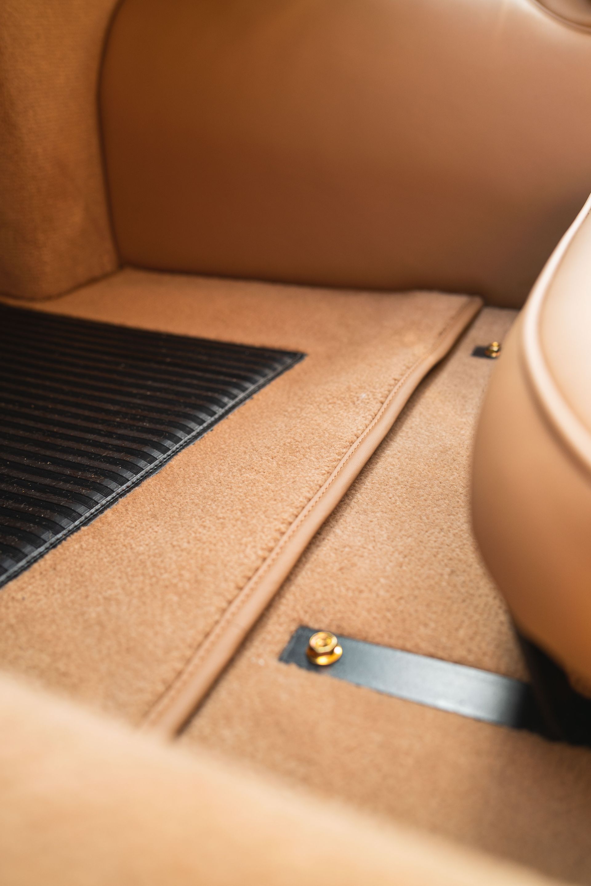 The previous 250 SWB had a carpet to match the colour of the car. This time around, the customer has selected the Wilton carpet to match the tan leather found on the door cards, seats and centre tunnel. We love how this ties all of the interior into one, being the same colour, it really gives this vehicles interior a luxurious finish.