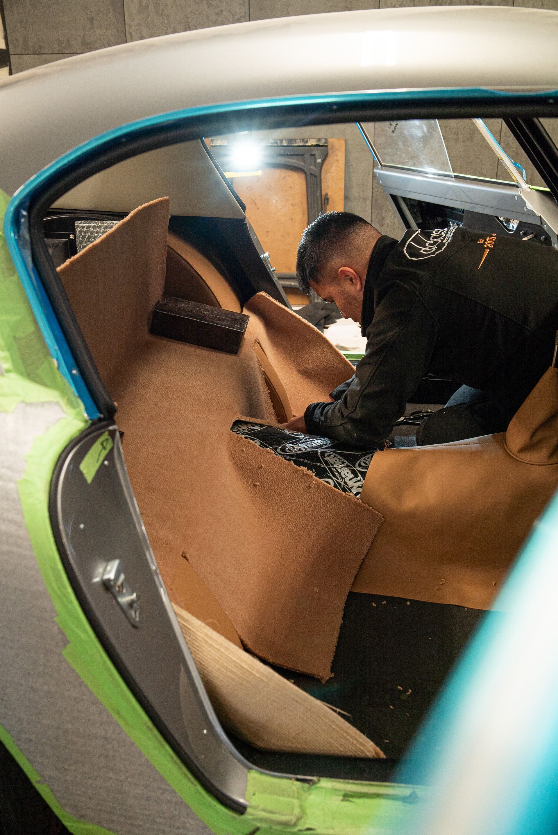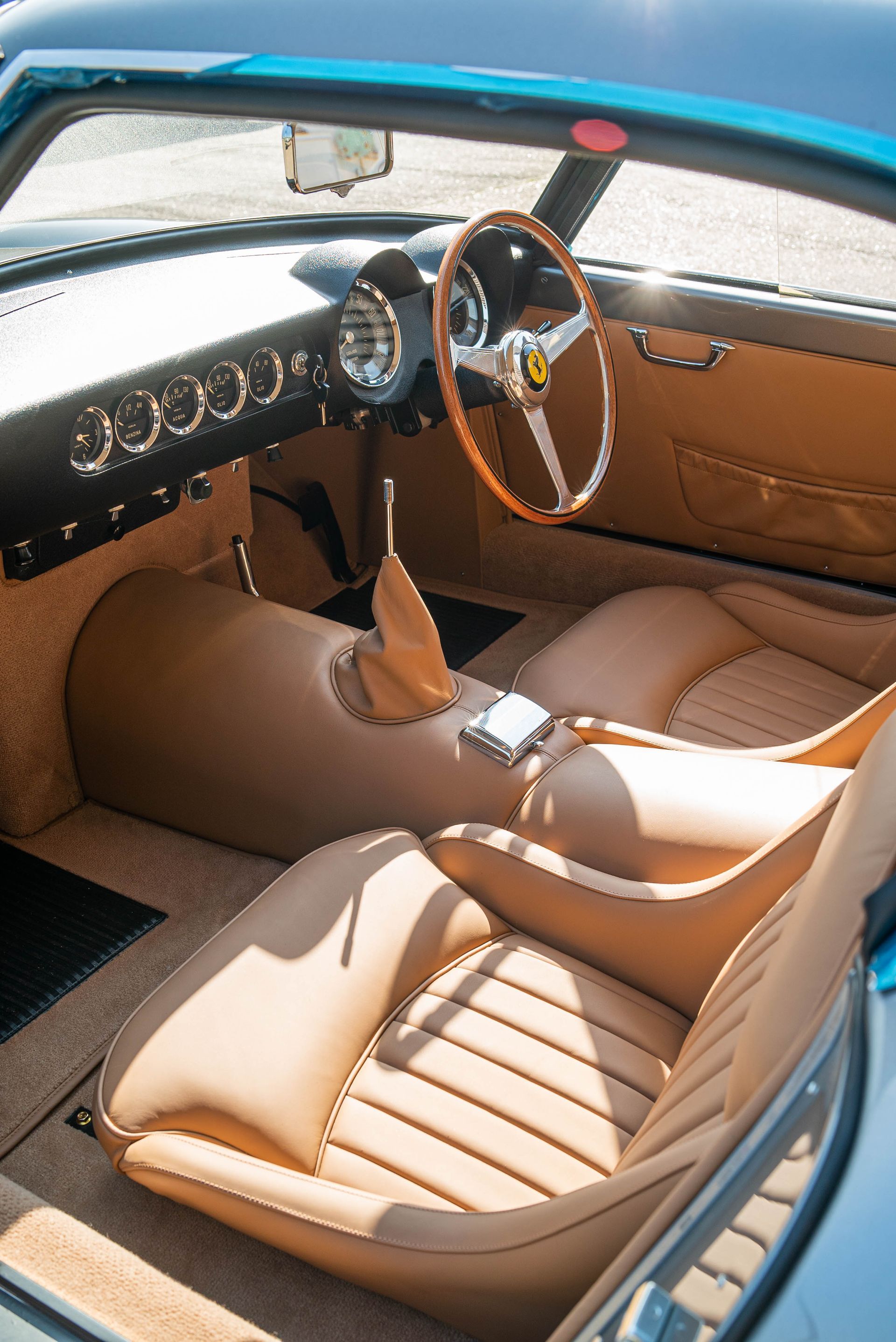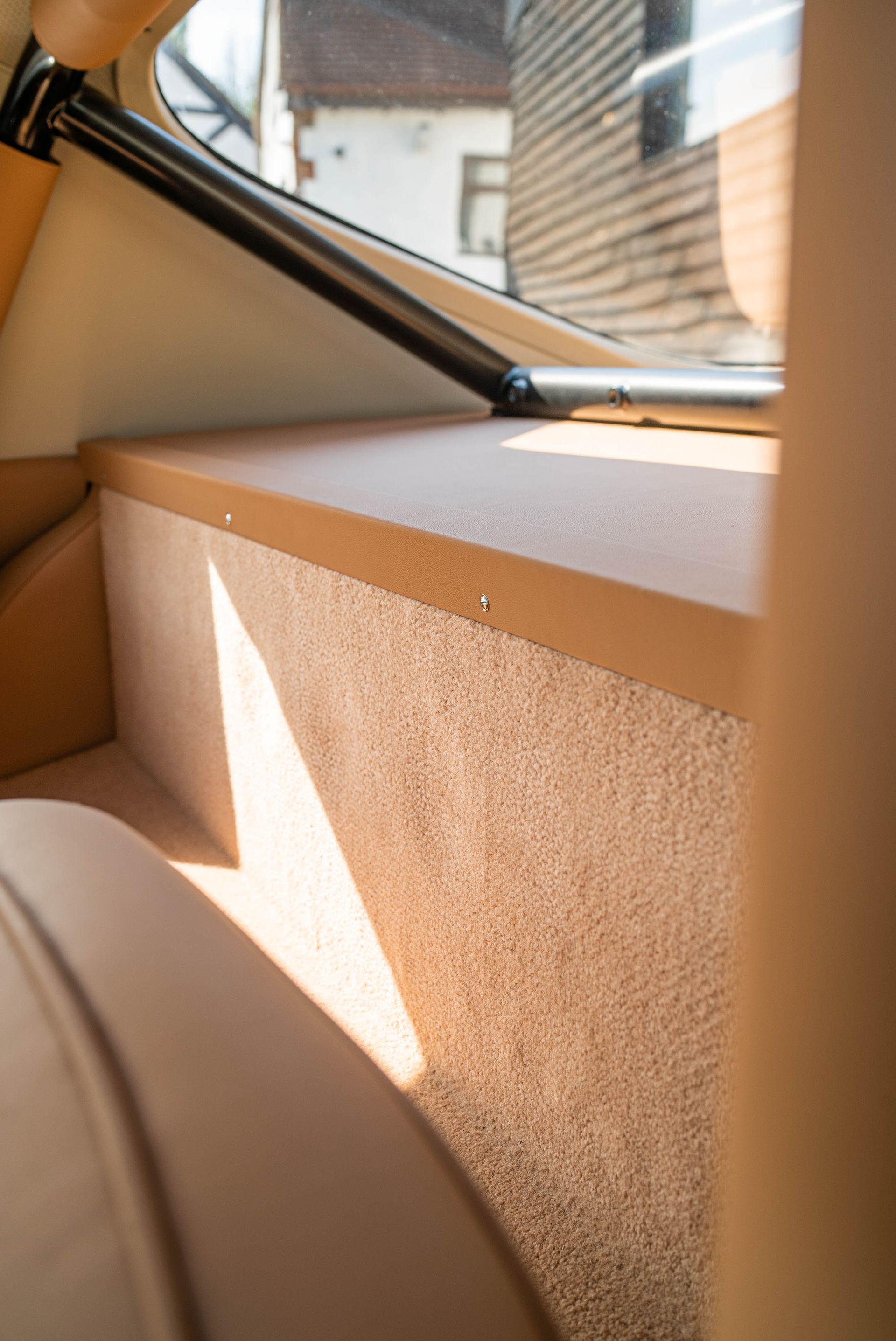 The previous 250 SWB had a carpet to match the colour of the car. This time around, the customer has selected the Wilton carpet to match the tan leather found on the door cards, seats and centre tunnel. We love how this ties all of the interior into one, being the same colour, it really gives this vehicles interior a luxurious finish.