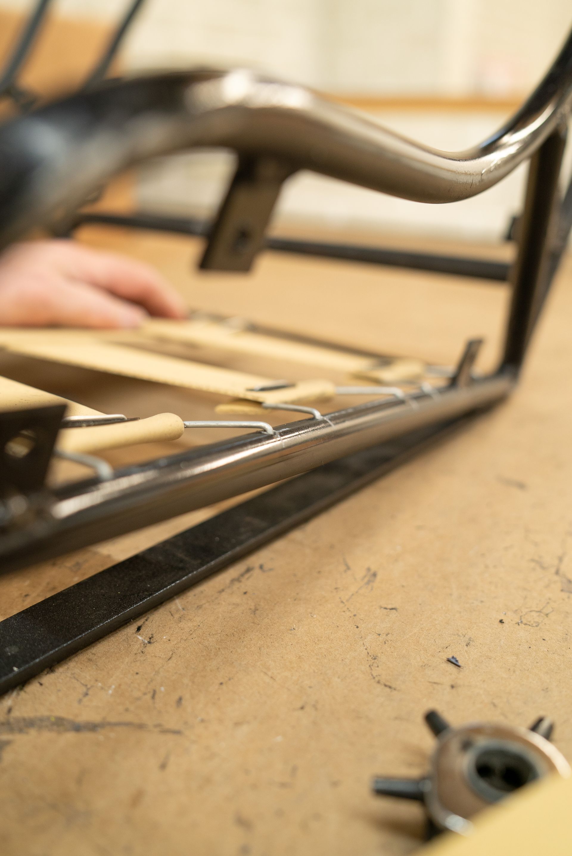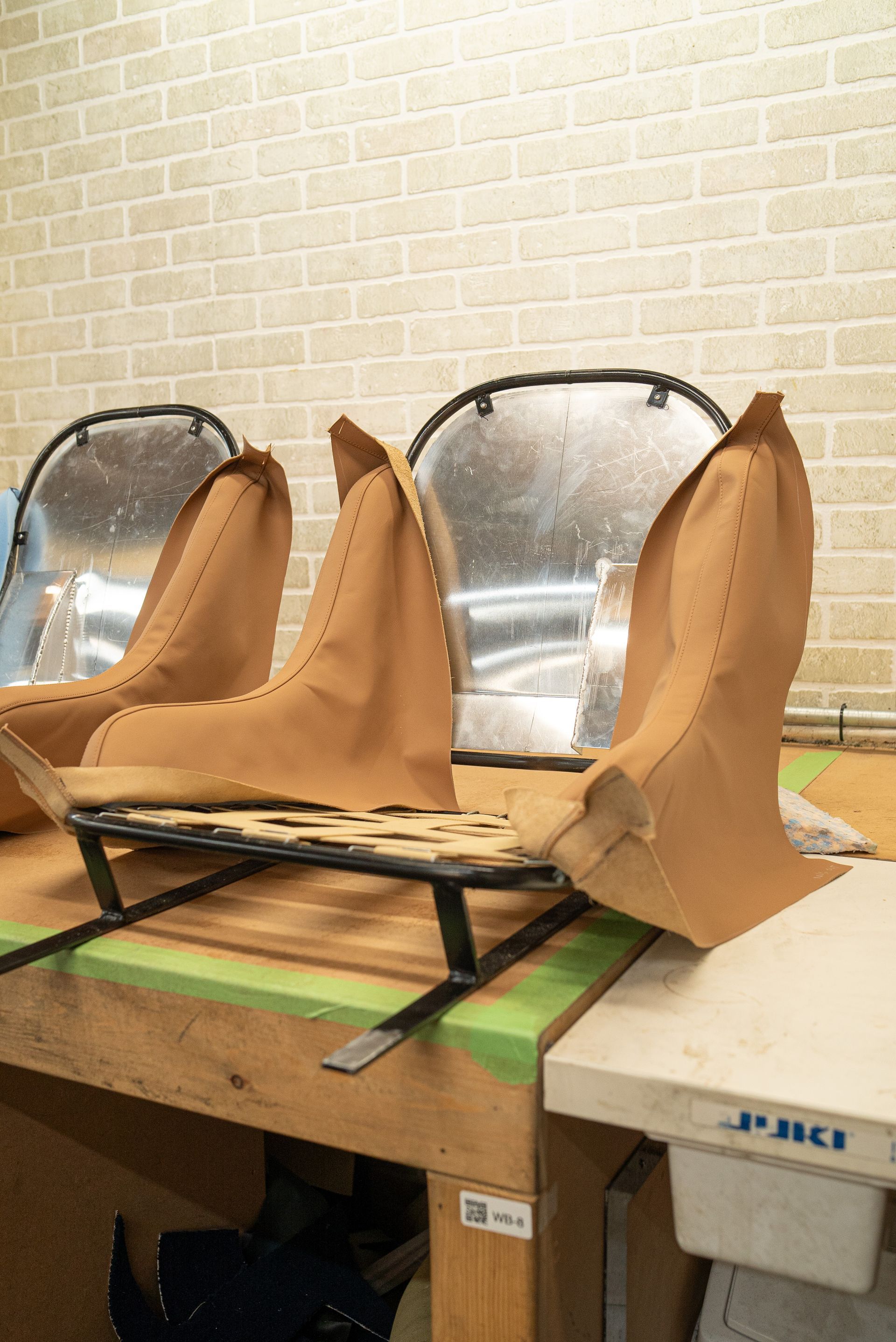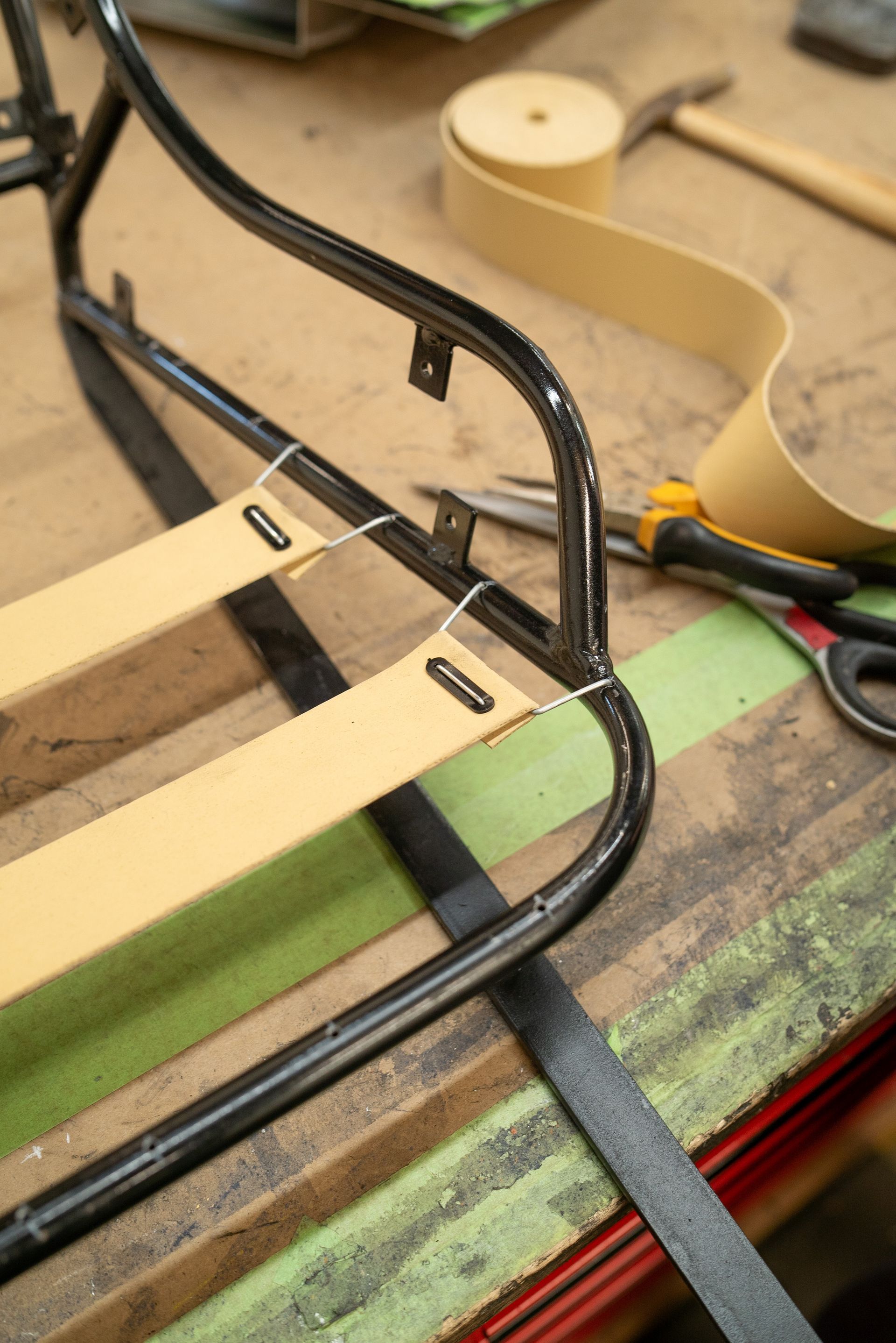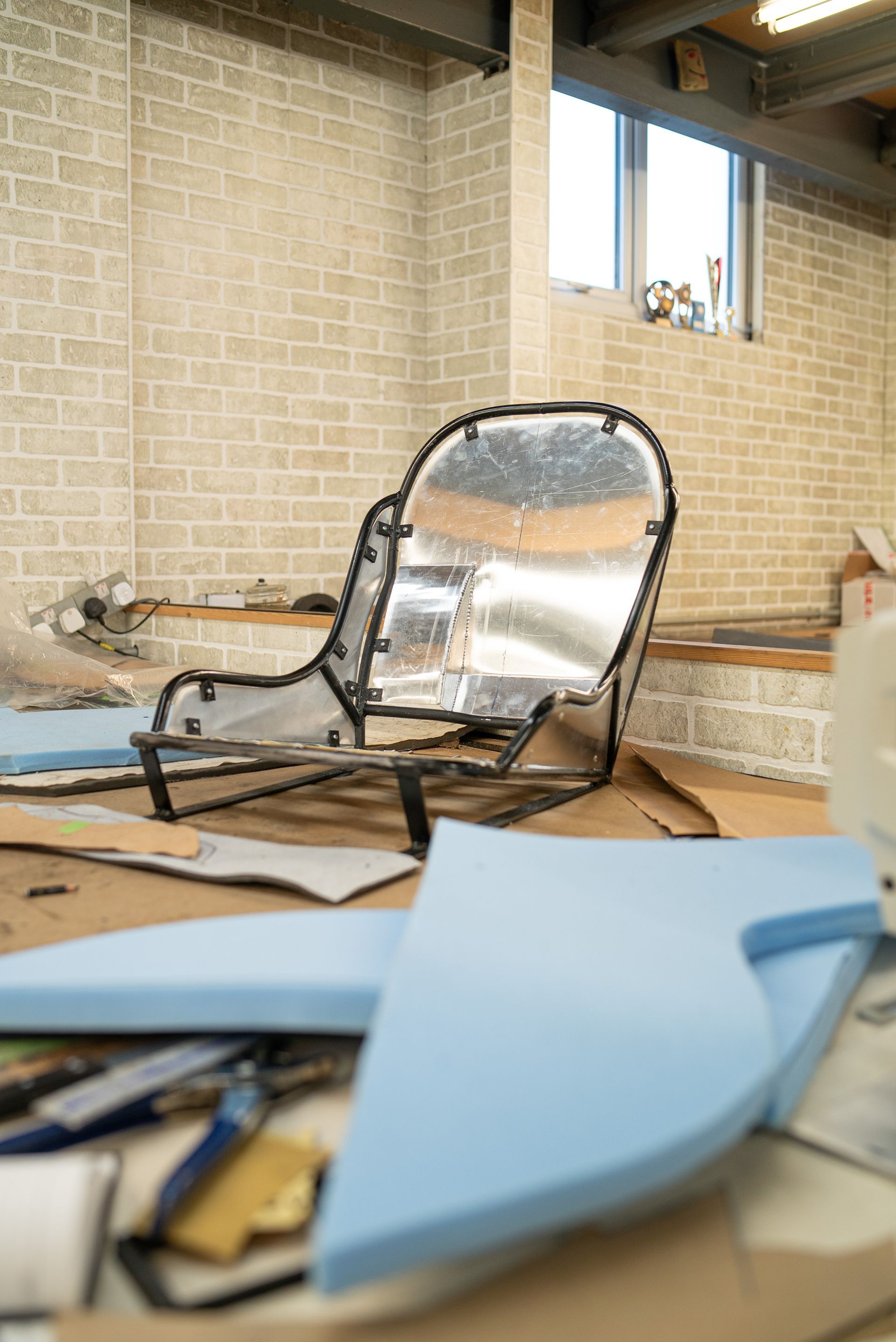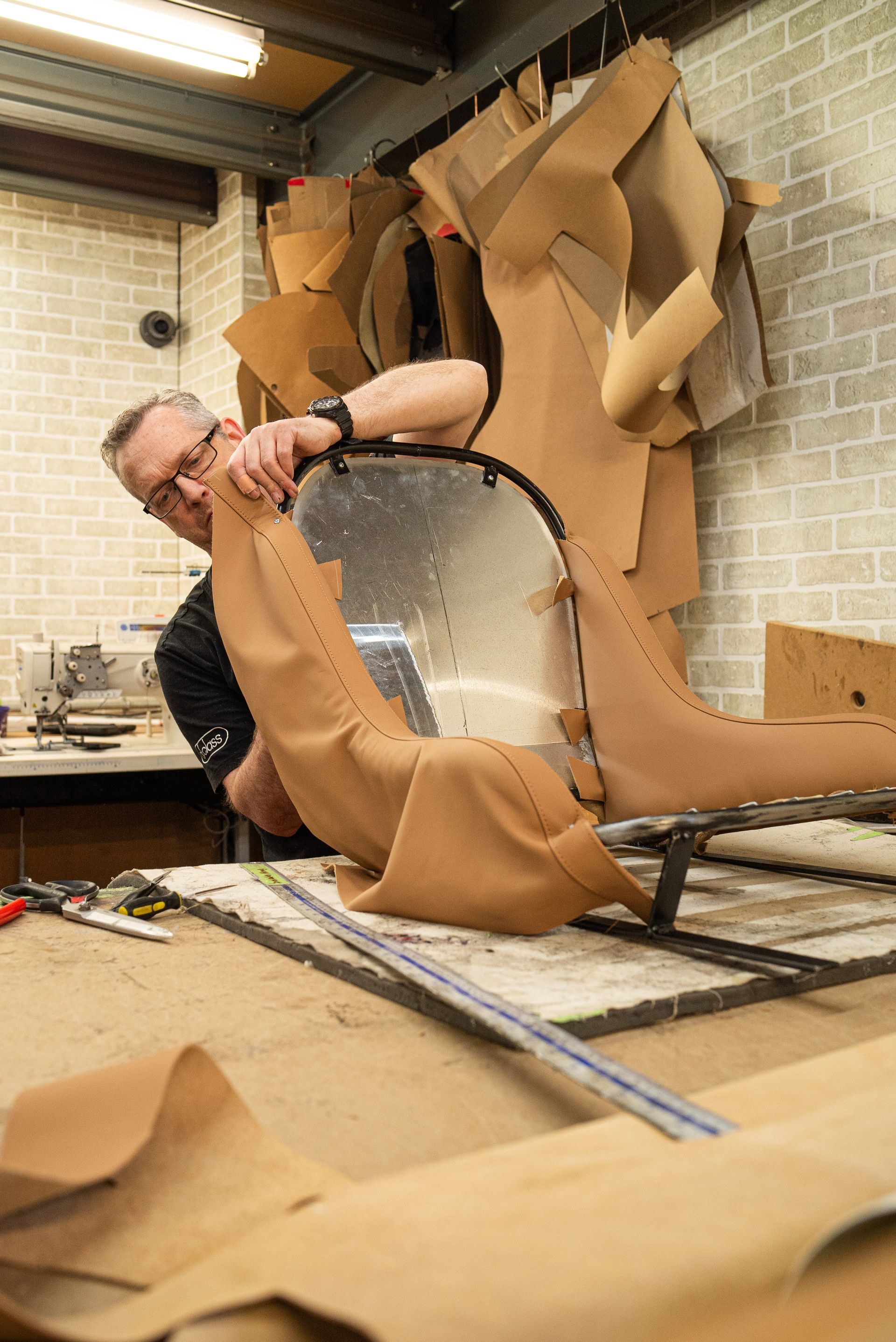 The seats are the most complex part of the project, as they are essentially metal frames when they arrive, which we then build up into a complete and trimmed pair of seats.