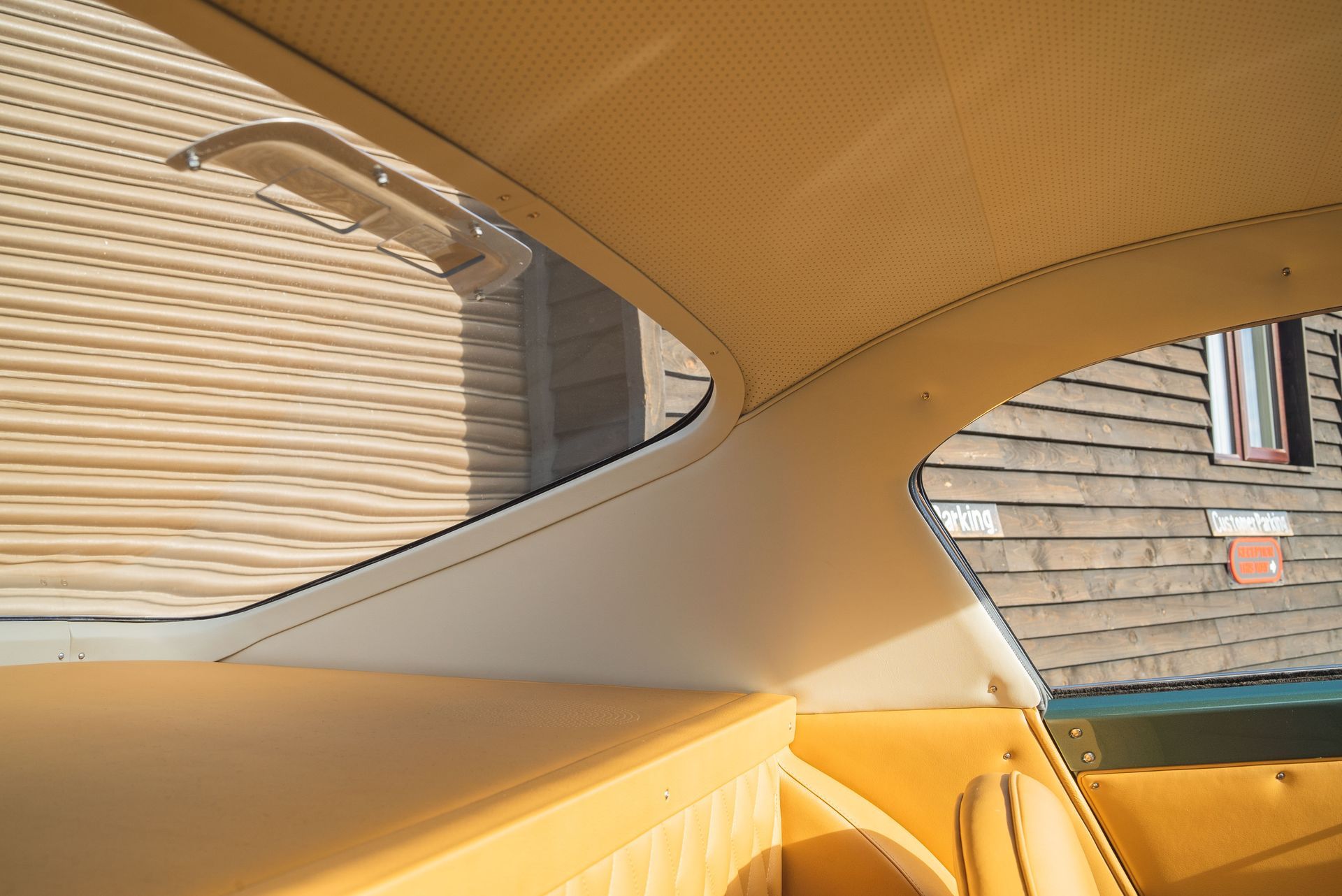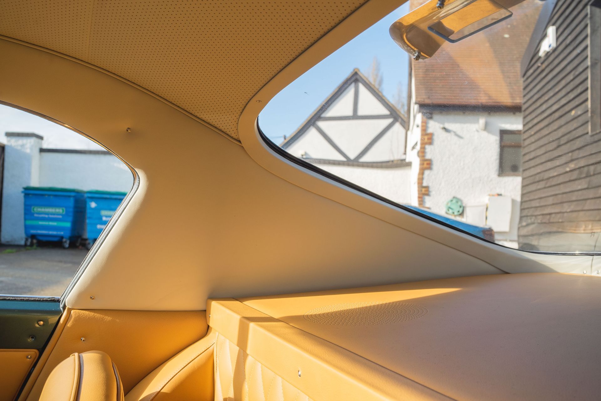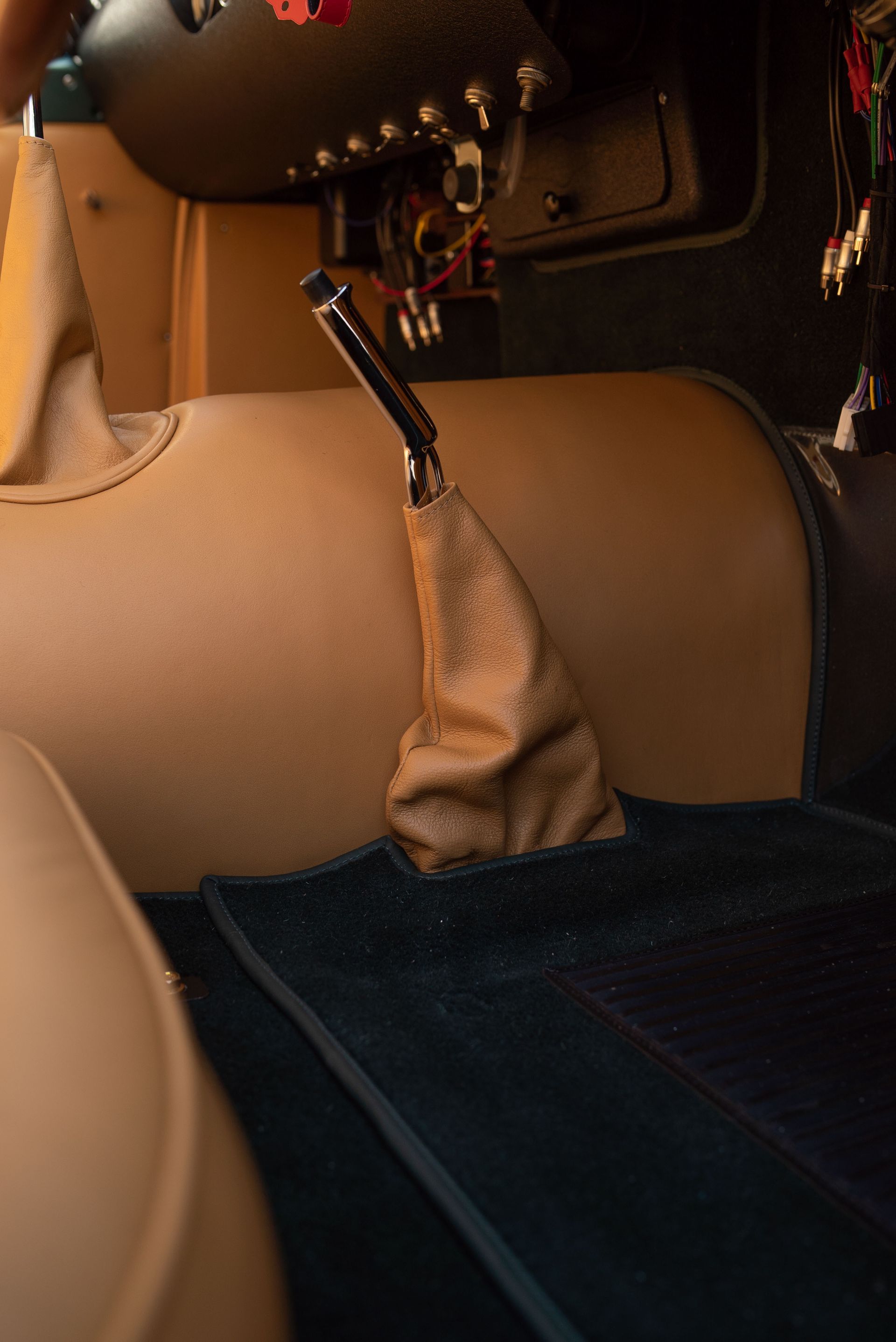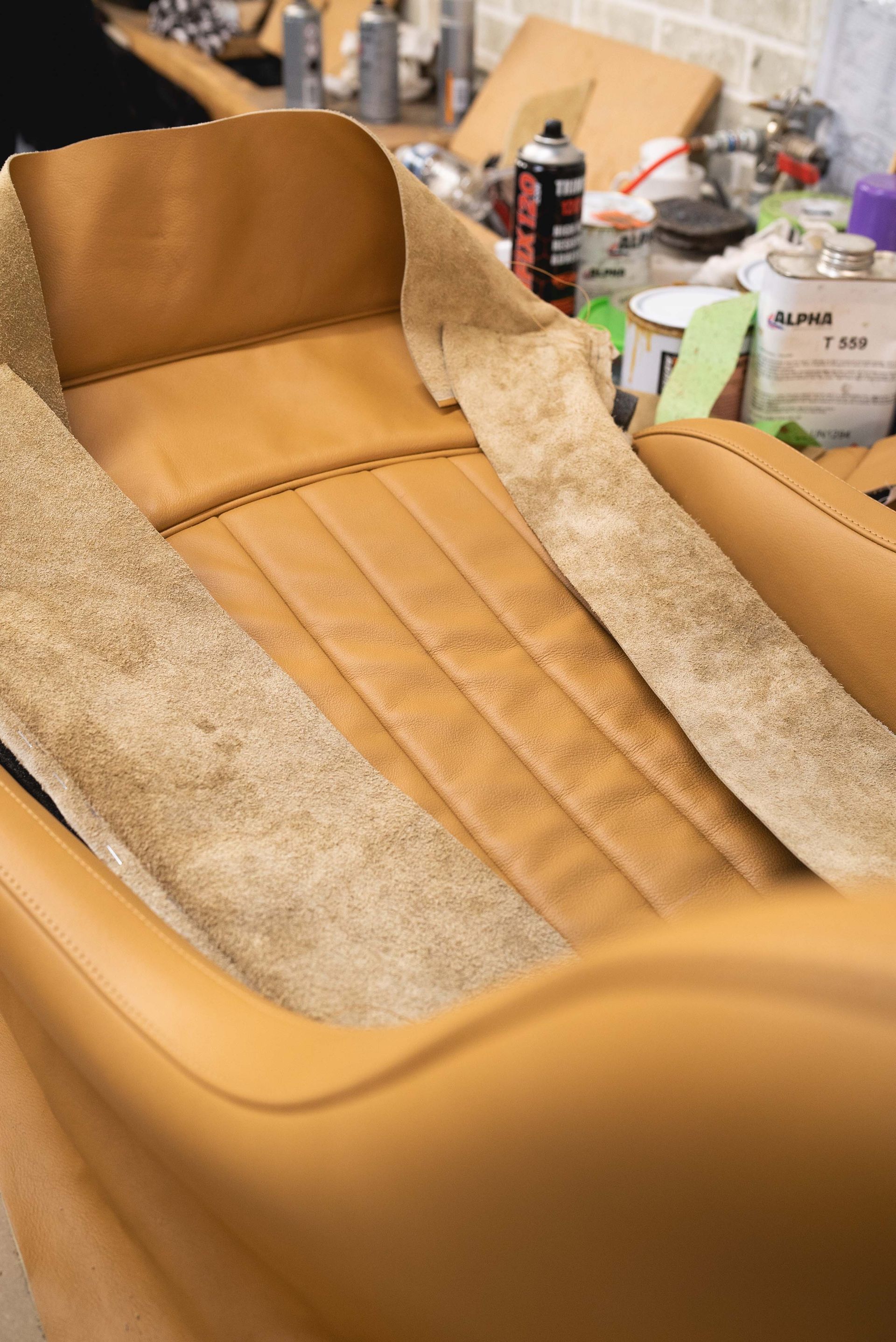 The seats are always the standout element of these retrims; they are once again completely custom and built by our trimmers, who have decades of experience. We liaised with our customer and collectively decided that Vaumol Luxan Fawn tan leather would be best for this retrim. The leather selected is made in the traditional way, where the leather is top-dyed rather than through-dyed. These seats feature custom panelling, custom foams, top and bottom fluting, finished off with edge piping.
