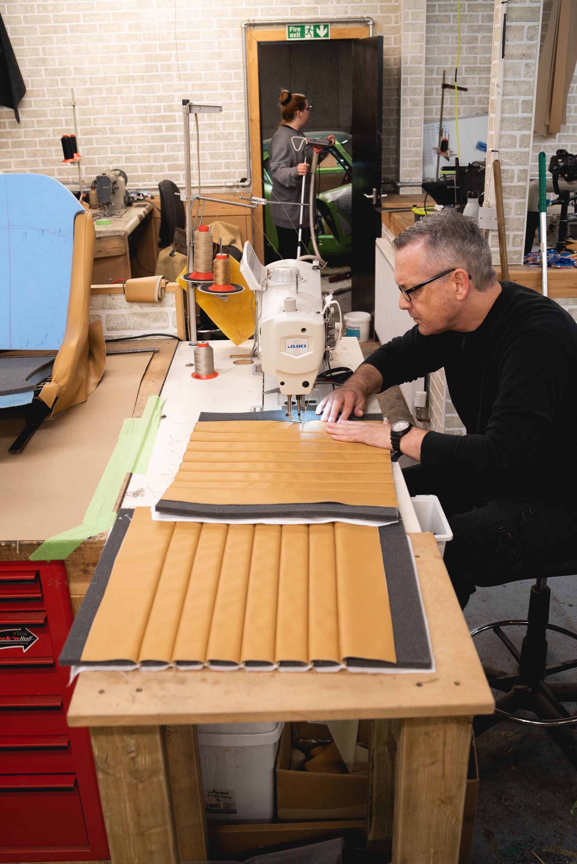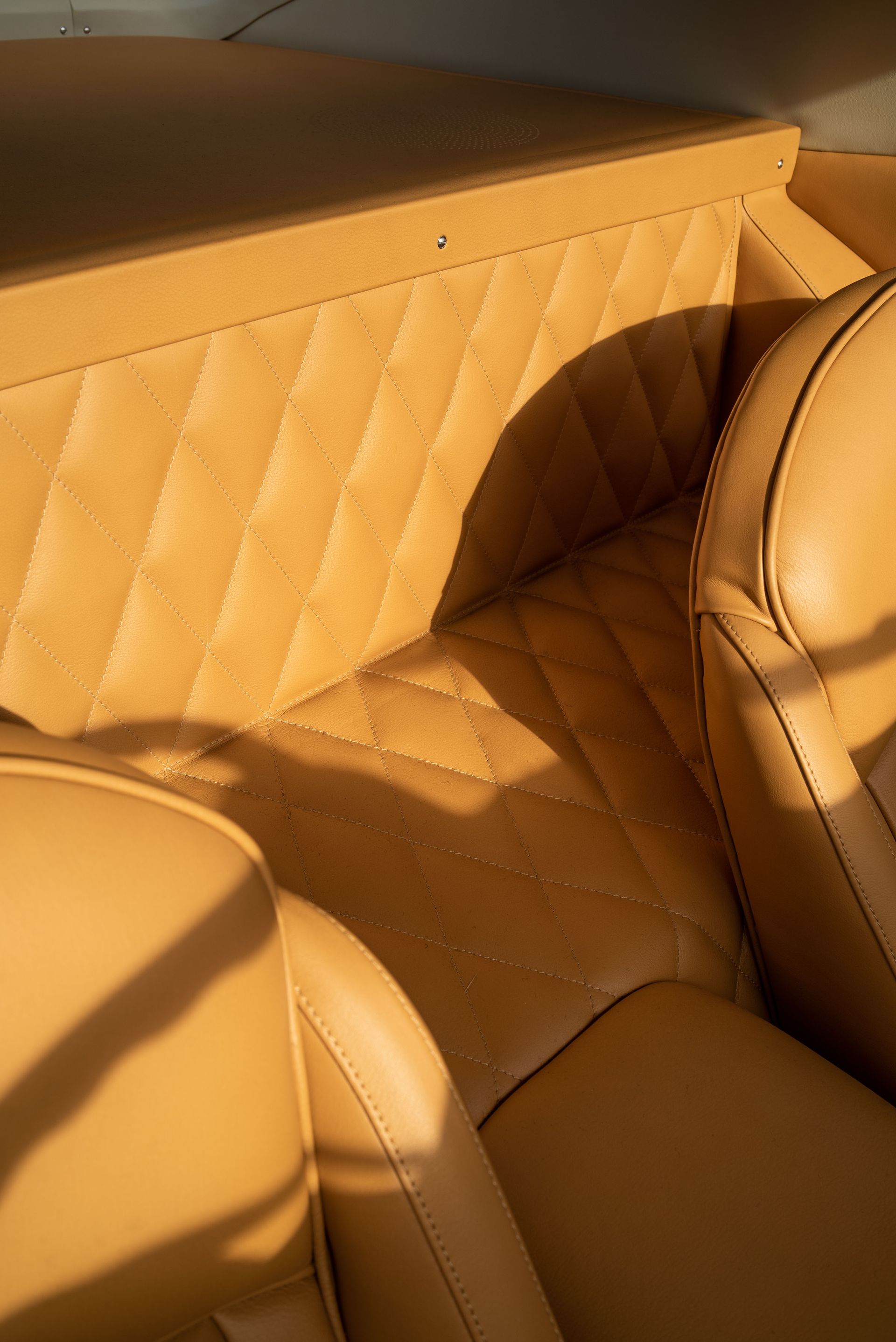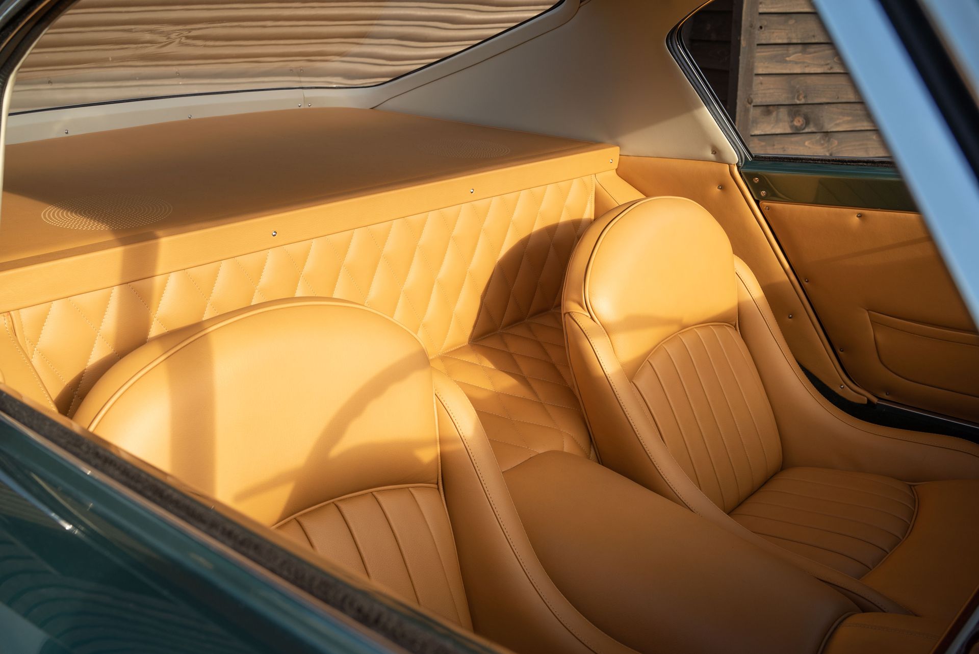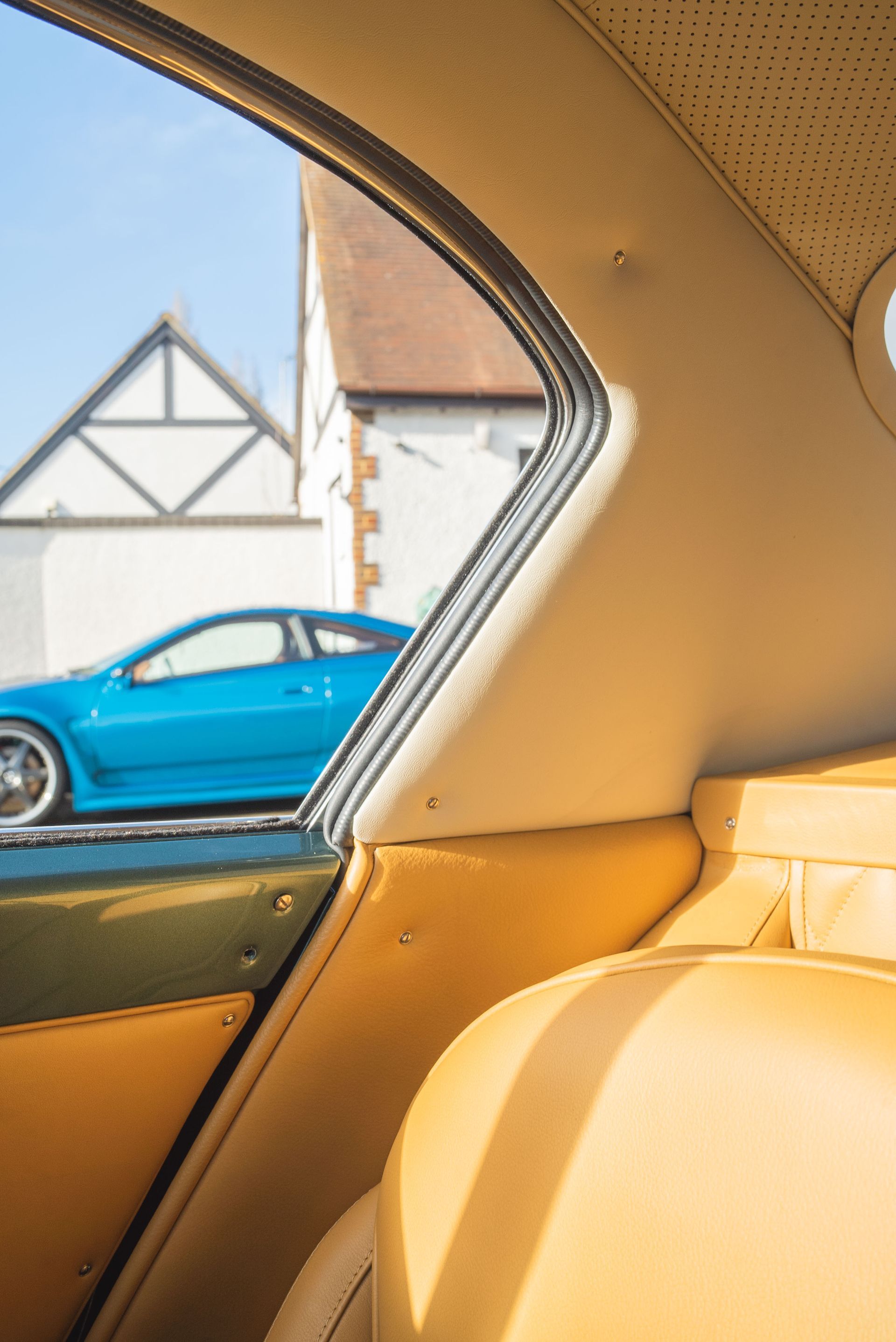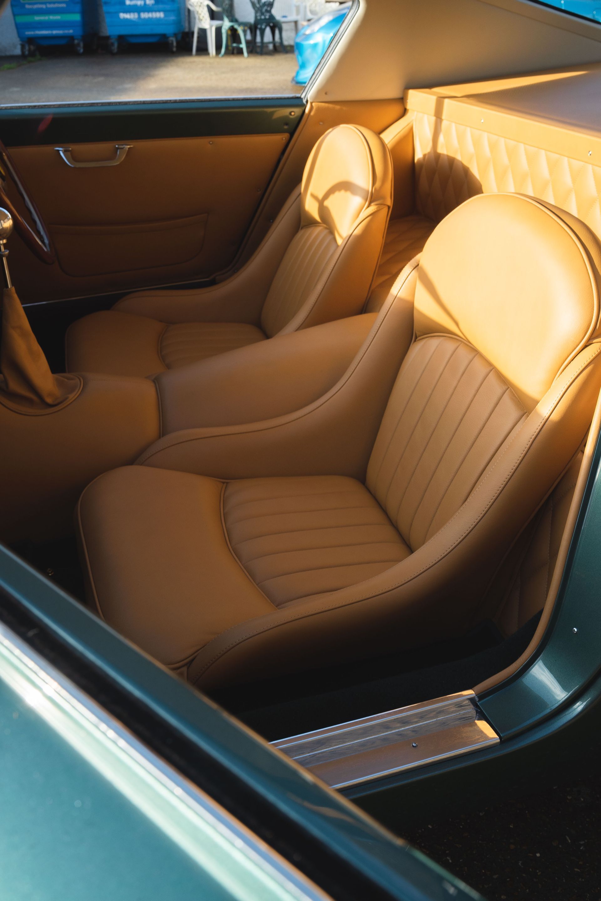 The seats are always the standout element of these retrims; they are once again completely custom and built by our trimmers, who have decades of experience. We liaised with our customer and collectively decided that Vaumol Luxan Fawn tan leather would be best for this retrim. The leather selected is made in the traditional way, where the leather is top-dyed rather than through-dyed. These seats feature custom panelling, custom foams, top and bottom fluting, finished off with edge piping.