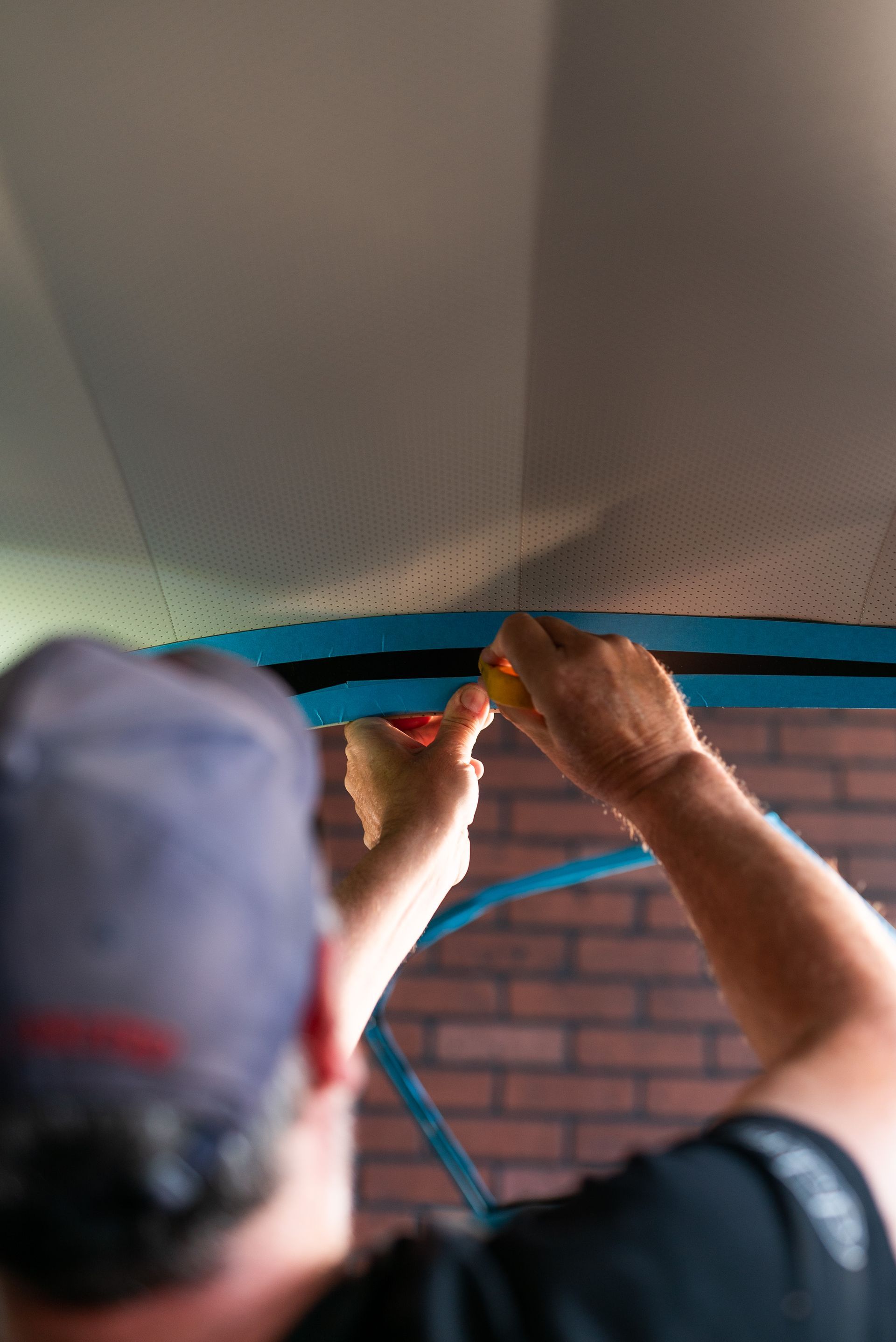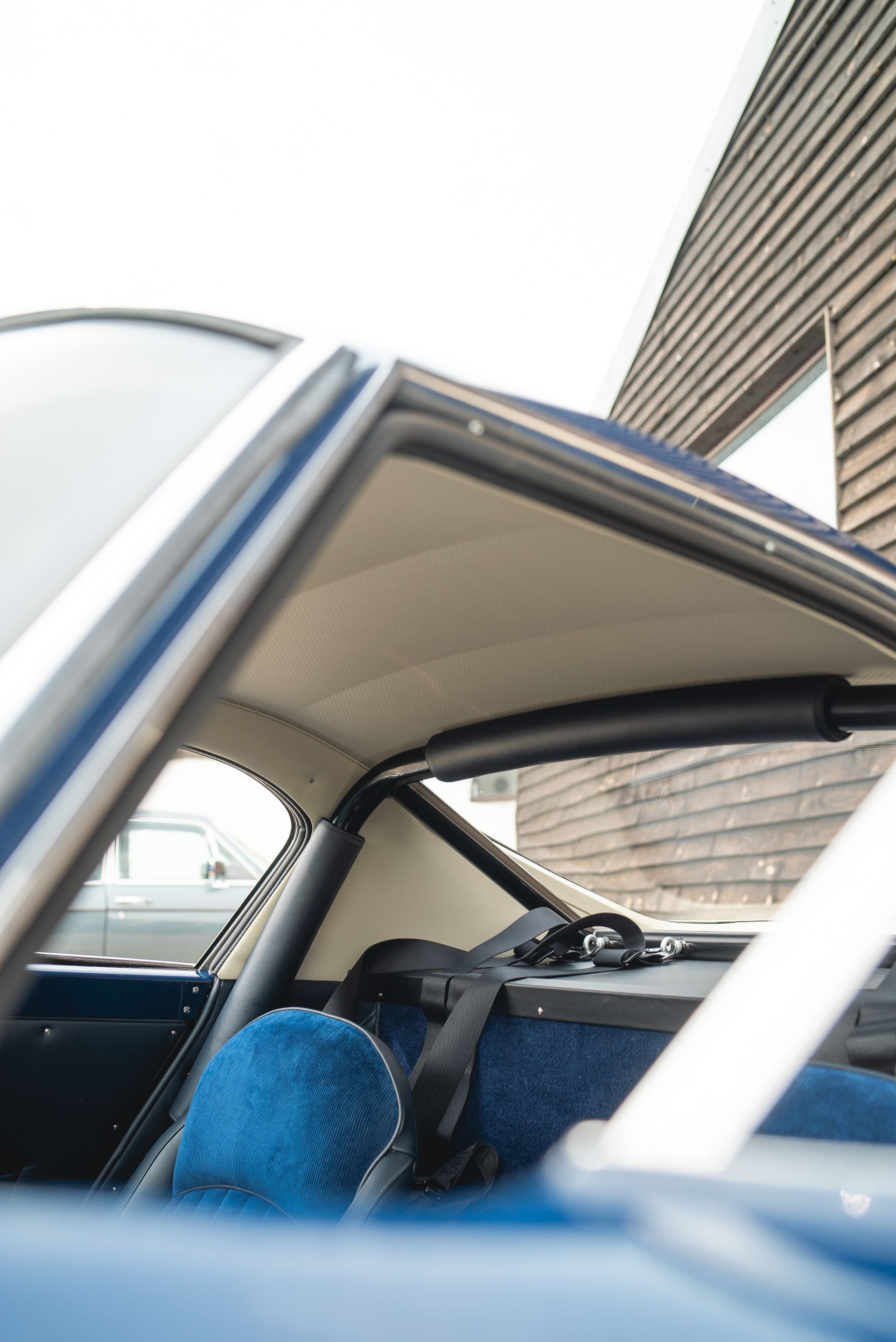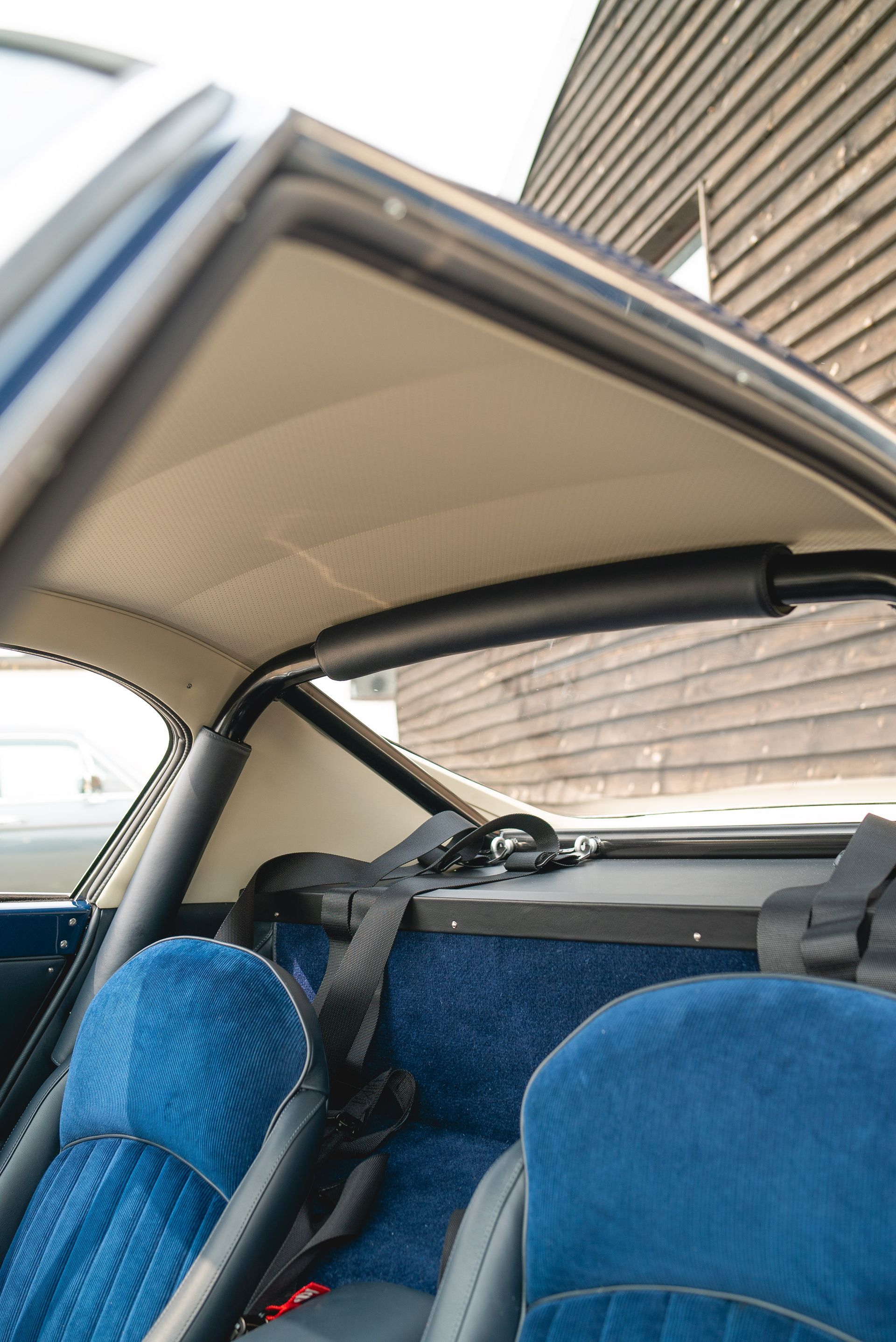 Once ready, custom-made metal rods are installed into the roof to enable the headlining to be fitted. The cantrails need to be adjusted to ensure a correct and snug fit, which are then removed, trimmed, and then reinstalled.