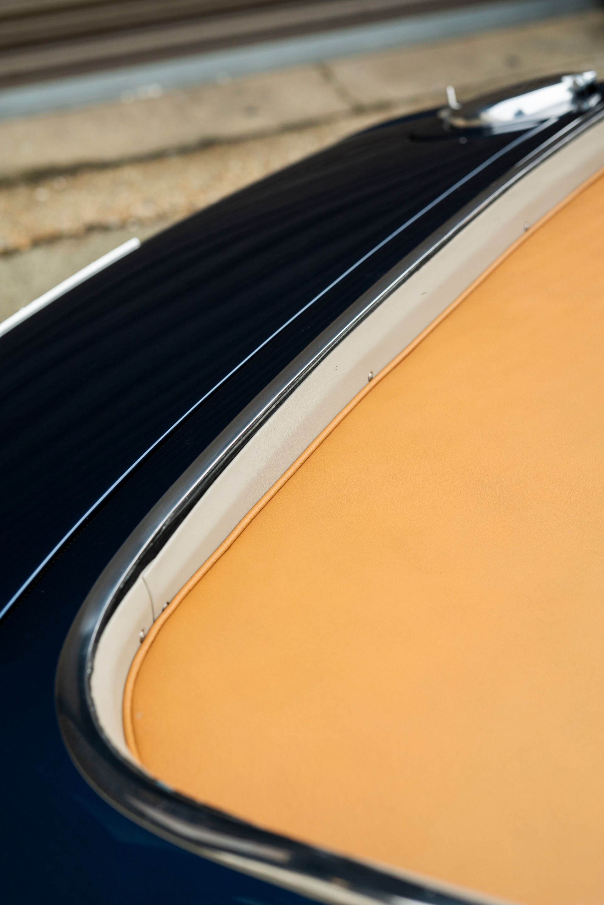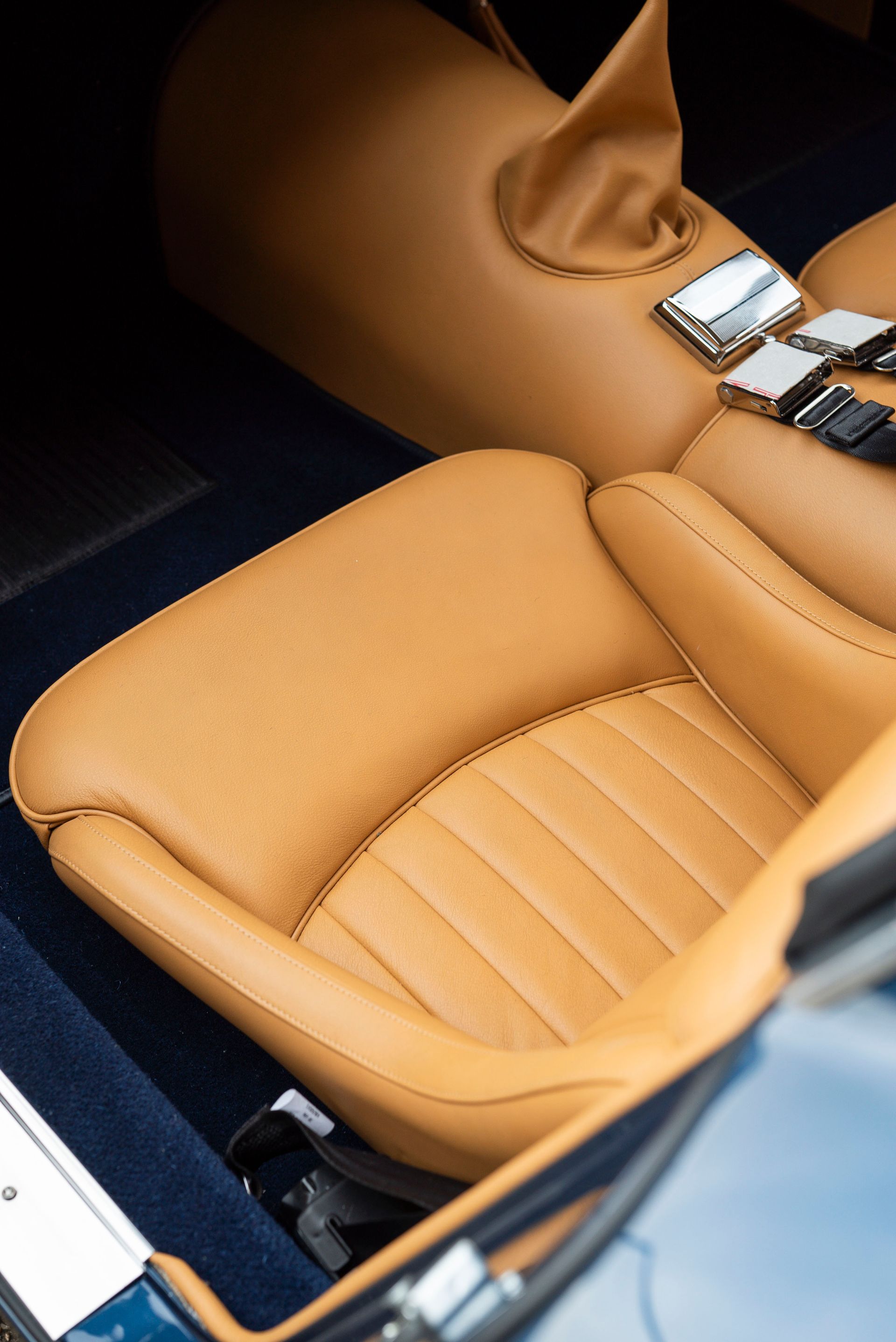 The interior for this Ferrari was a contrast of light and dark, with the customer requesting a navy Wilton carpet and Luxan Fawn Vaumol leather. This tan and navy mix is very popular in classic cars, especially older Ferrari's. Vaumol leather is known in our industry as one of, if not the, best leathers for this period of car. It is very plush and stretchy with a minimal grain that delivers a premium classic finish.