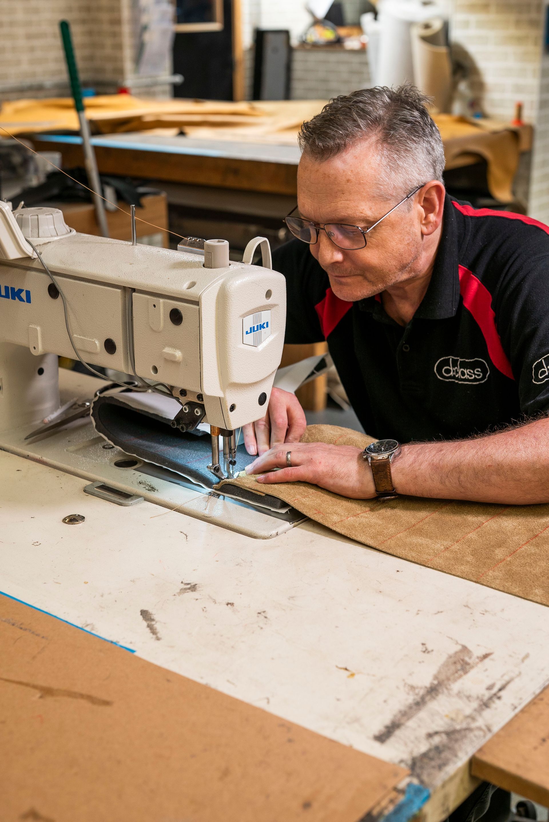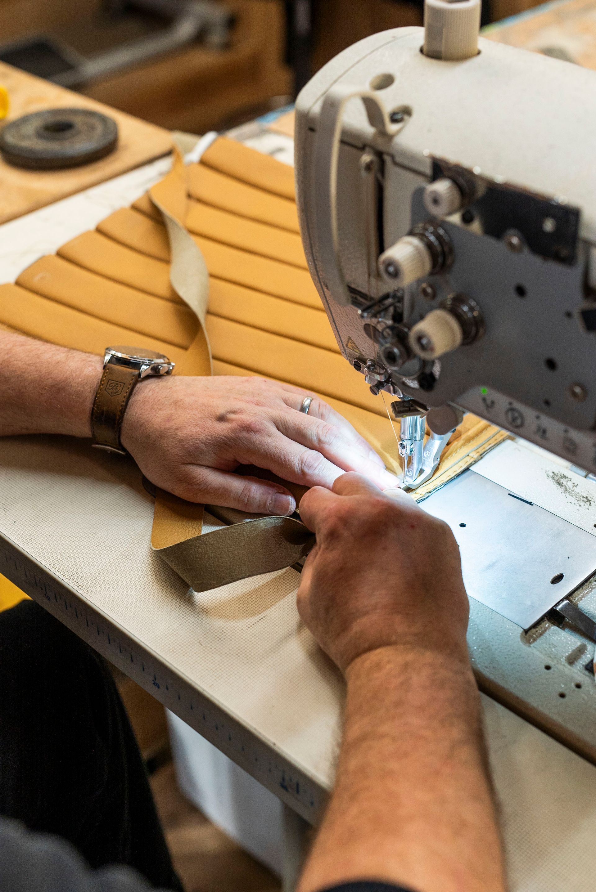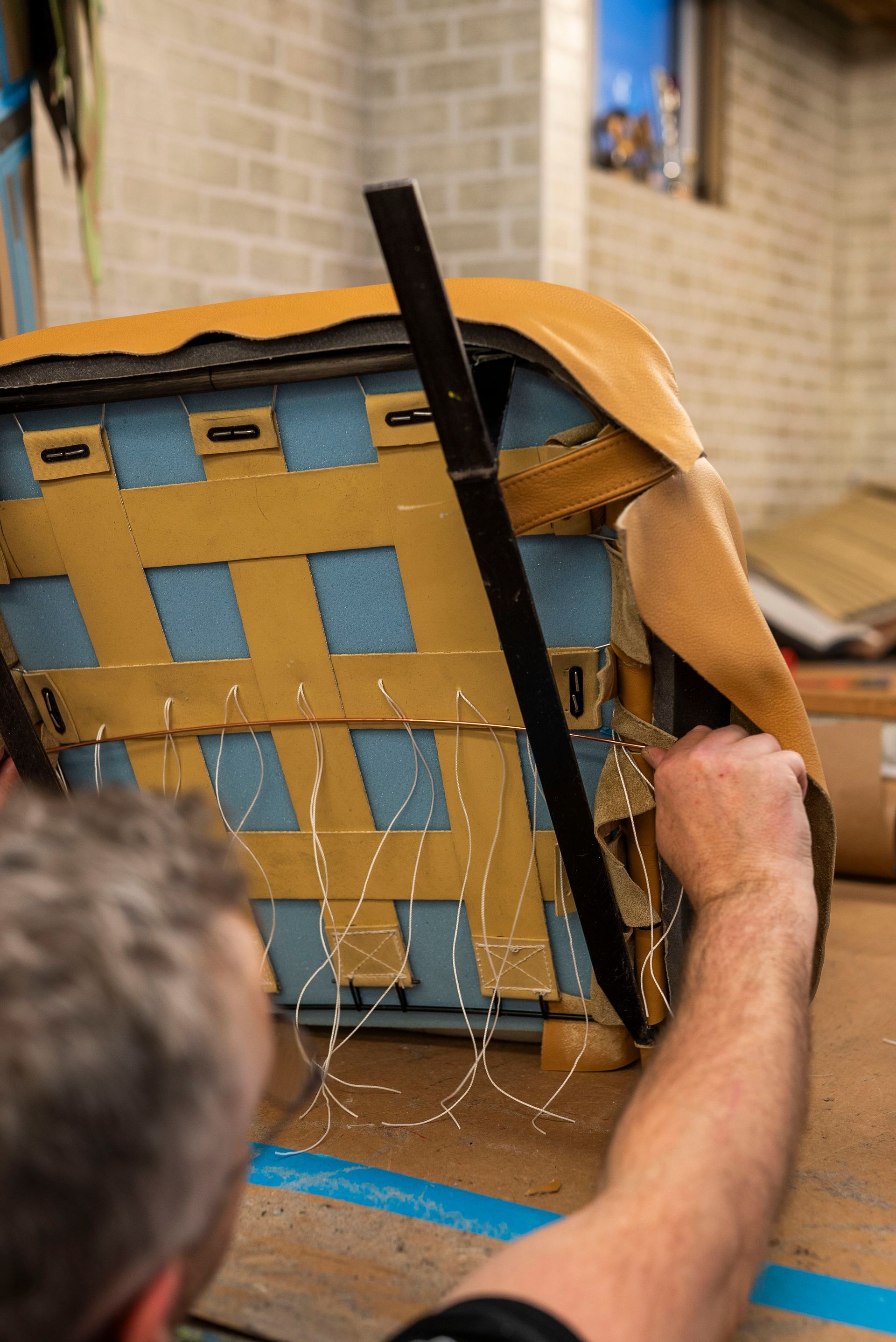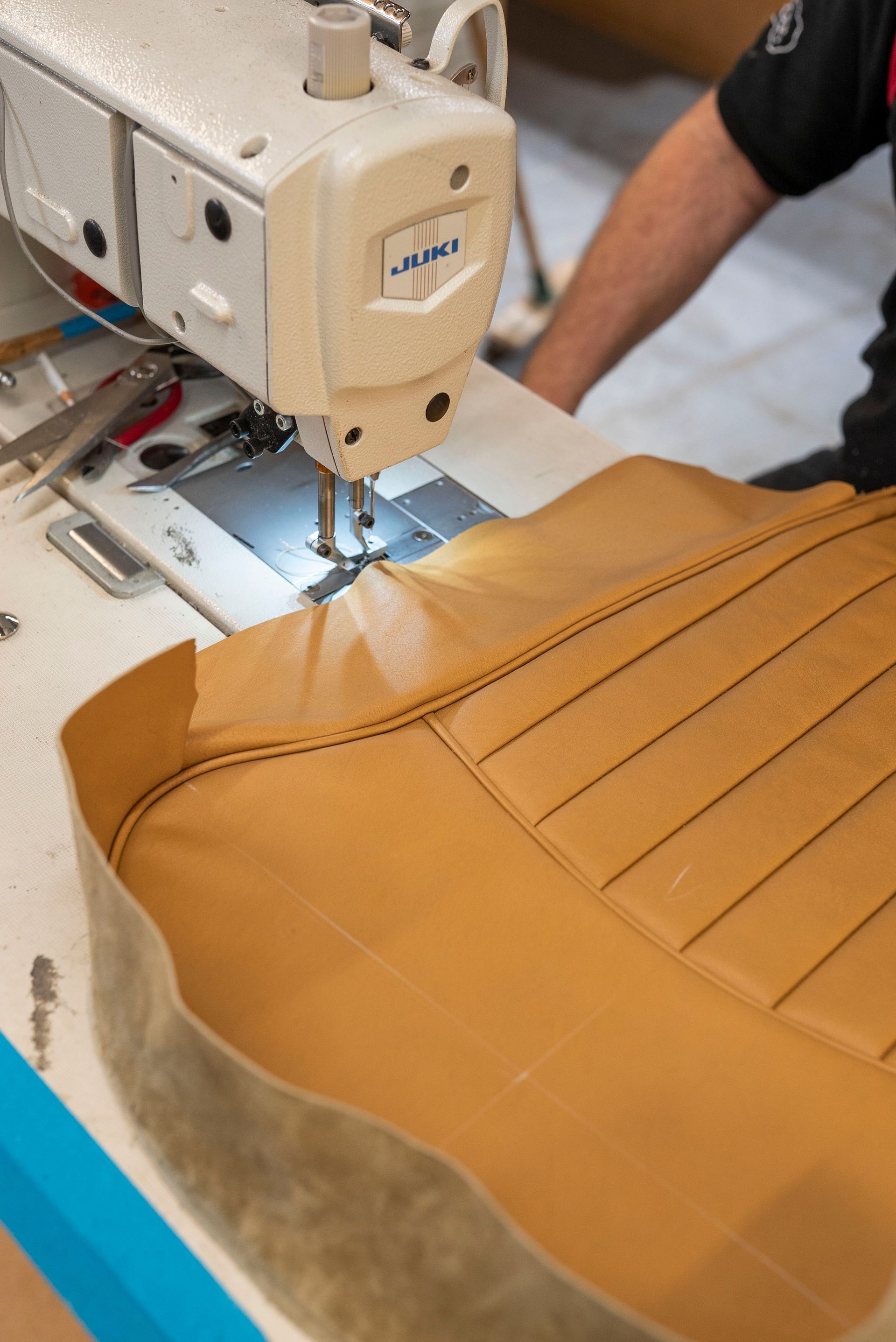 Once our trimmers have created the bespoke foams, it leads to the retrim. Precisely measured centre flutes are created with the previously mentioned fawn Vaumol leather. seat bolsters, top and bottom panels, all of which are finished off with some piping. These seats really do showcase what d:class stands for, hard work and top-quality retrims.