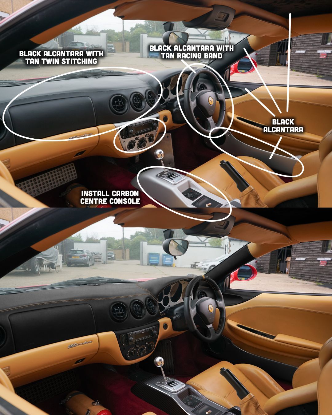 Our customer was very pleased with the results, and even requested images of the vehicle prior to it being collected. We loved working on this 360 Modena as it wasn't your usual like-for-like retrim, it was a breath of fresh air to work with someone who wanted their Ferrari to be how they wanted. There are plenty of clean examples of a 360 out in the world, and although it is satisfying as a business to improve one, it is also very fulfilling to know you've made someone's dream a reality.