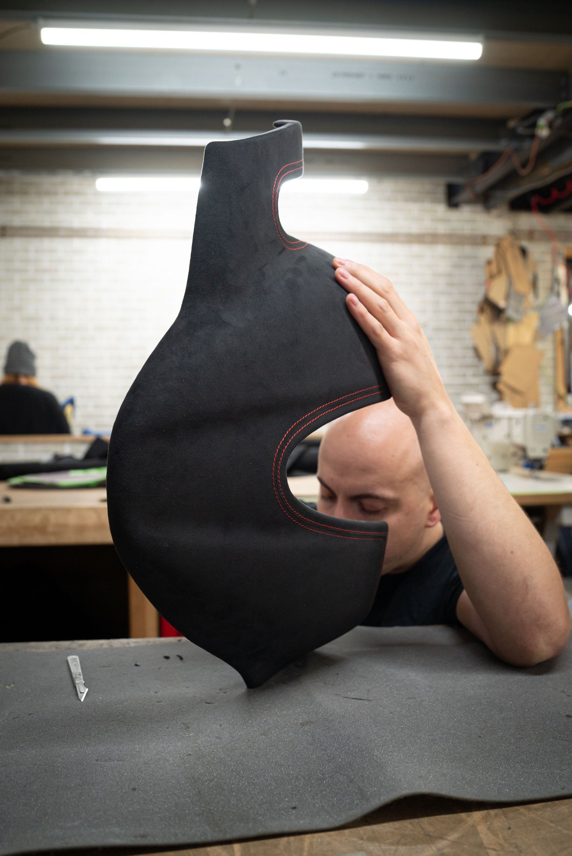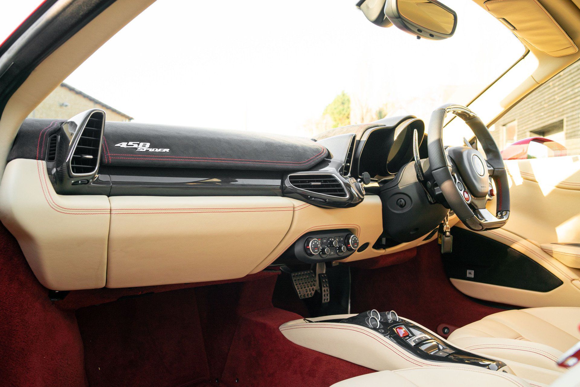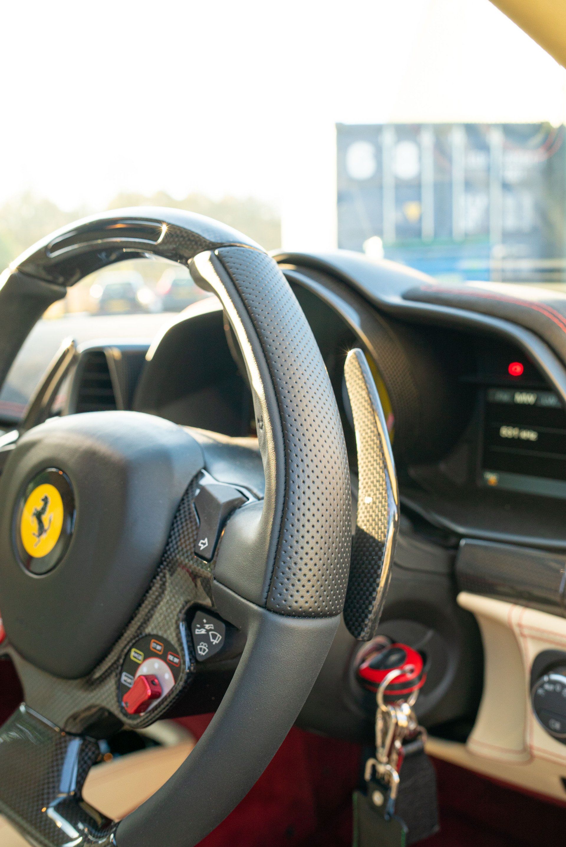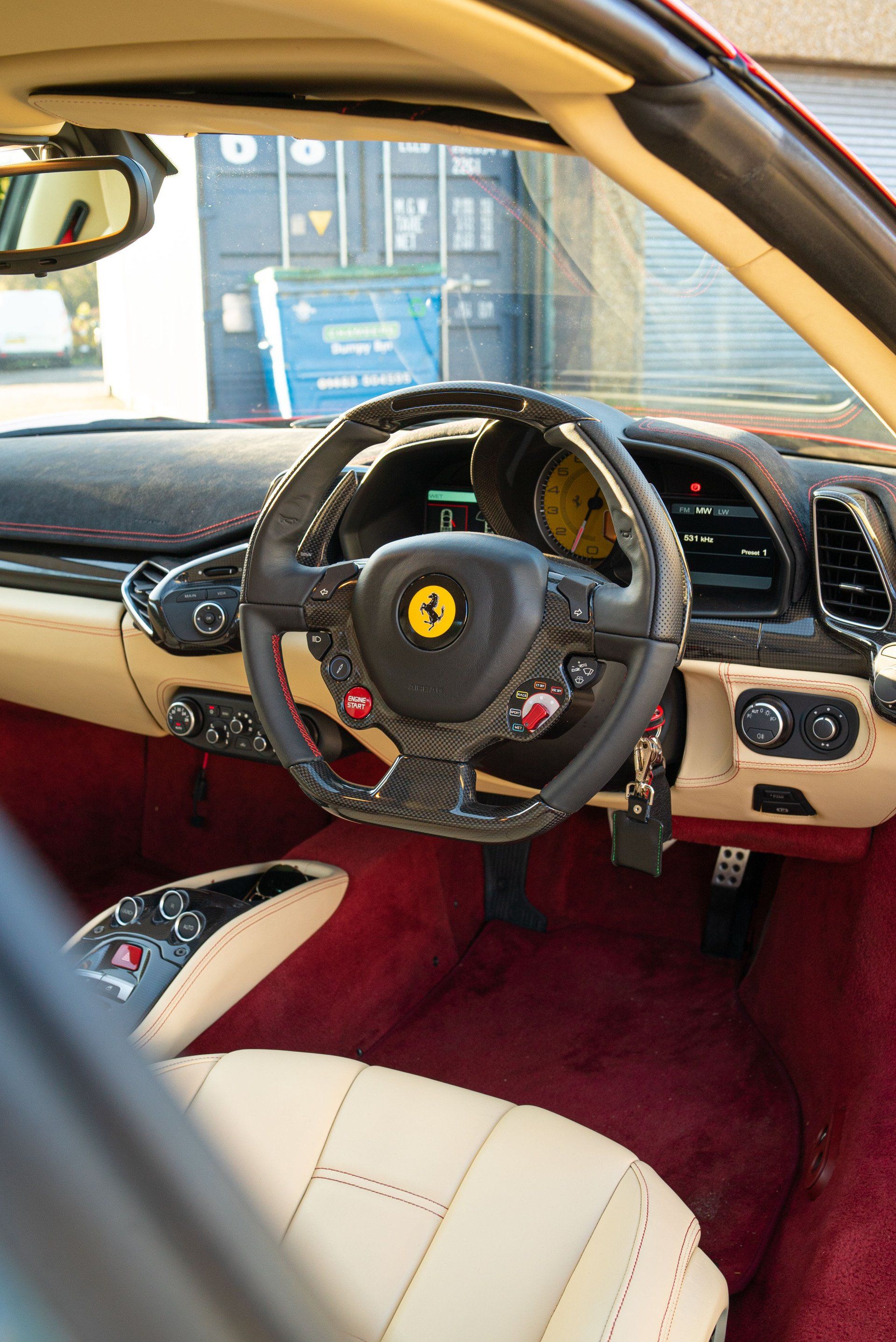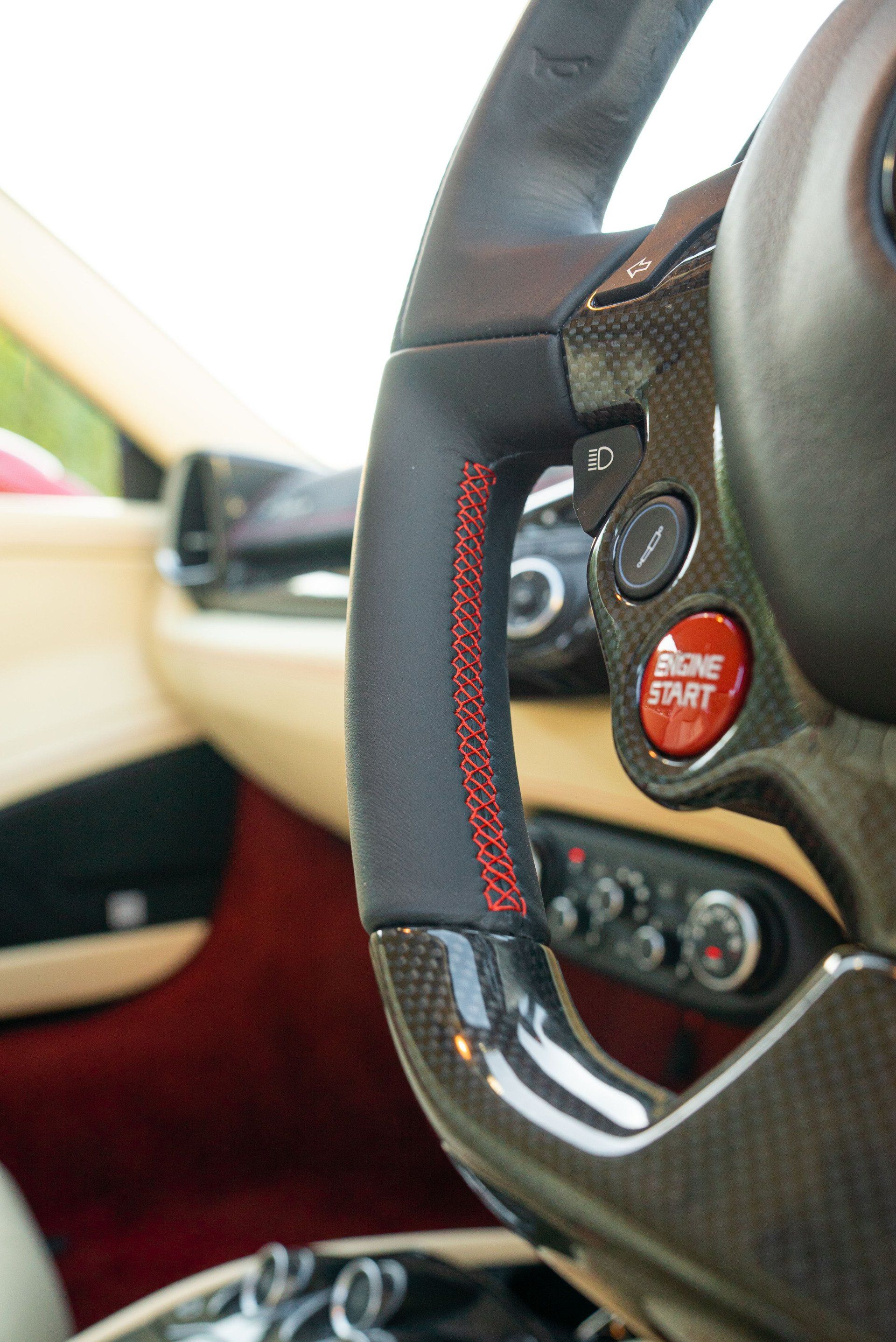 Today we have a Ferrari 458 Spider owned by @rw._.87 which received a new upper and lower dashboard retrim. We replaced the black leather dashboard top with black Alcantara with red stitching. The lower dash was retrimmed in Ferrari Crema nappa leather and red stitching to match the rest of the interior of the car. A steering wheel retrim to OEM spec with black nappa and debossed perforated leather finished the job off nicely.