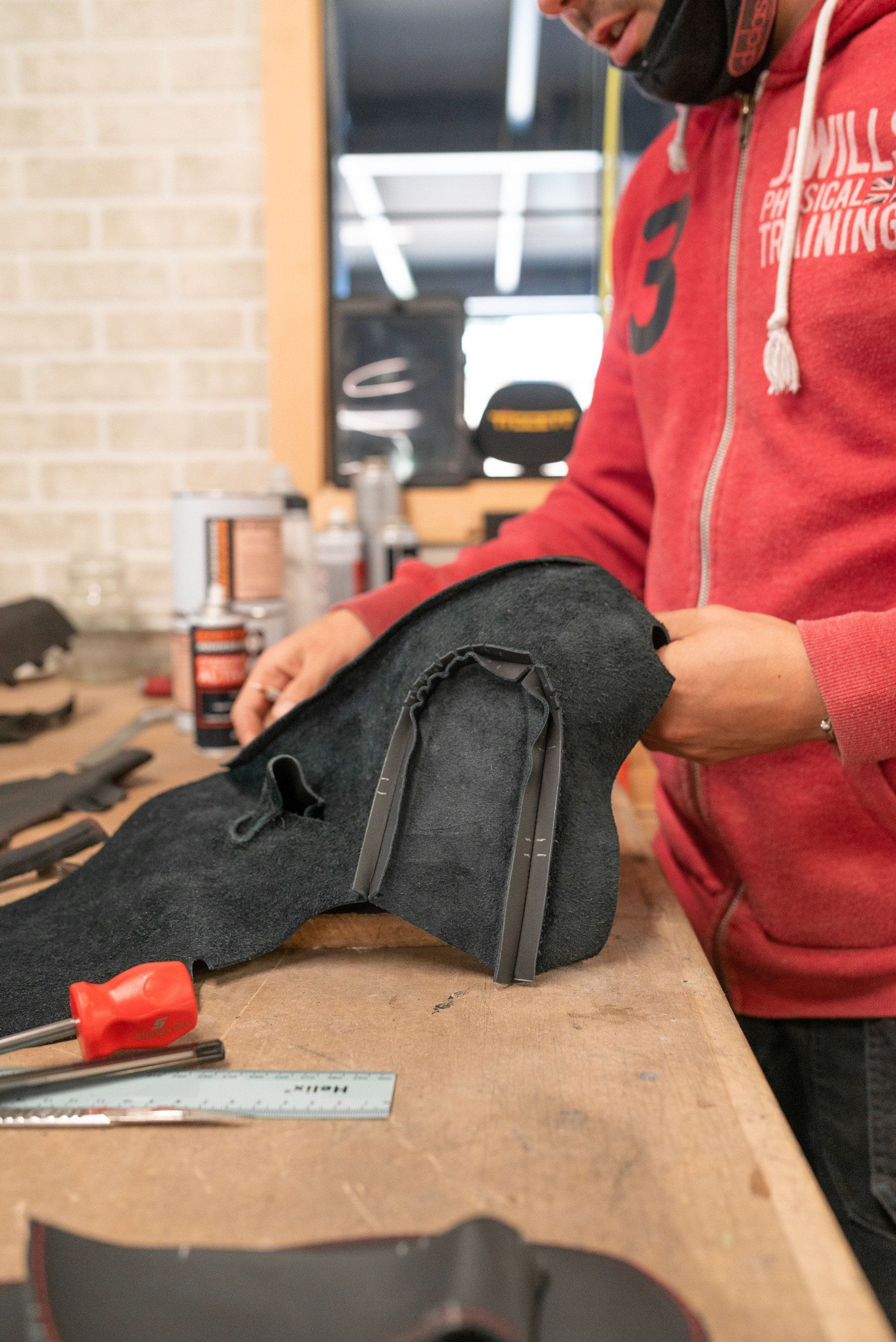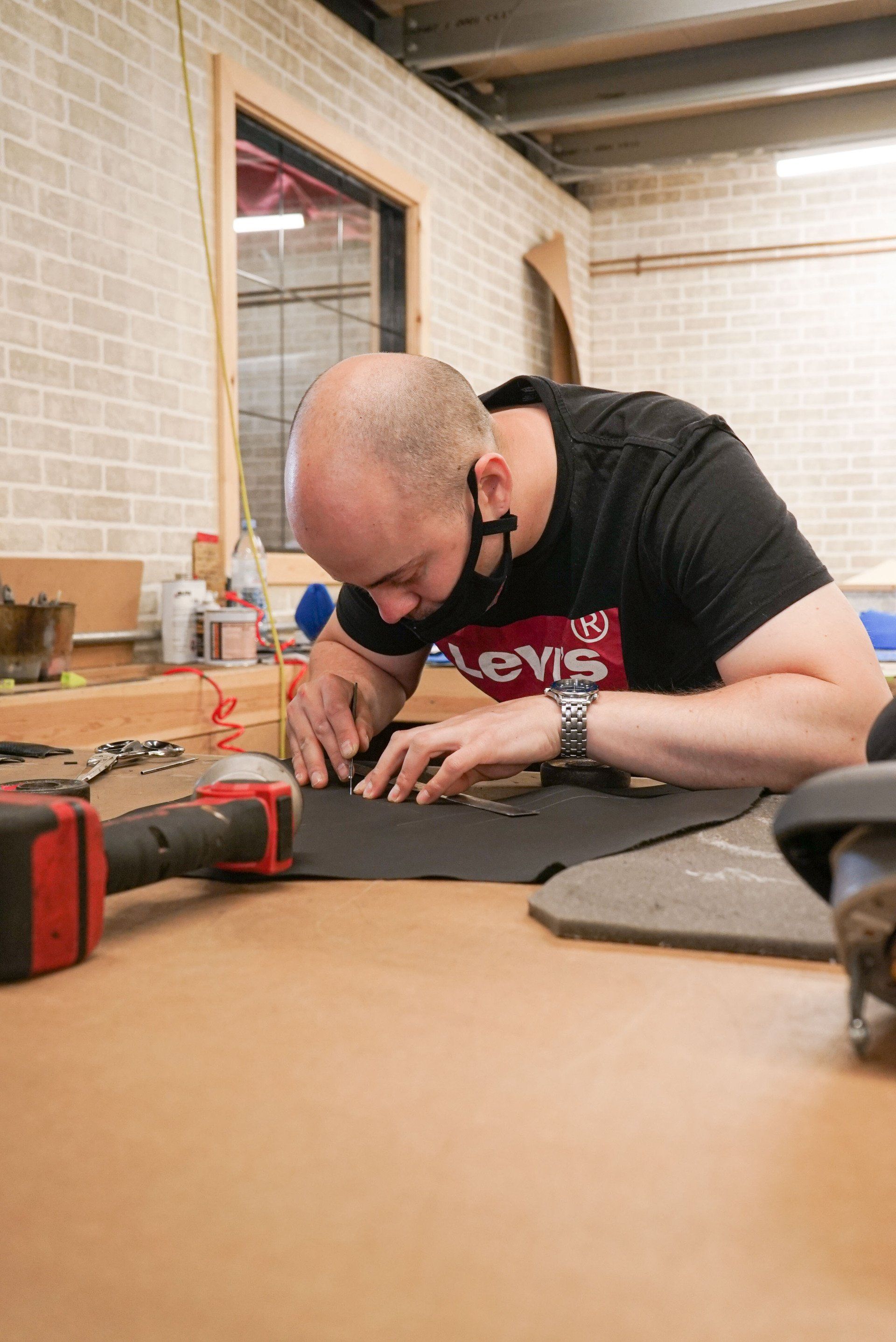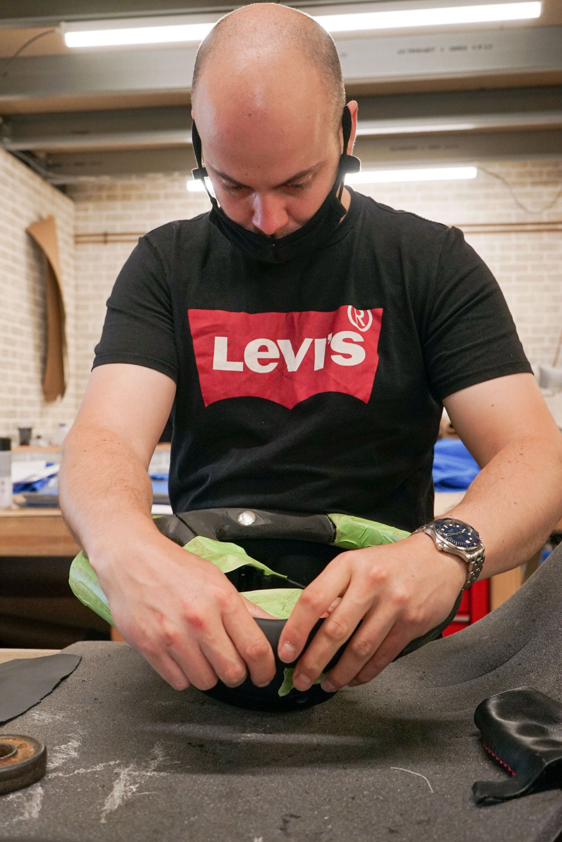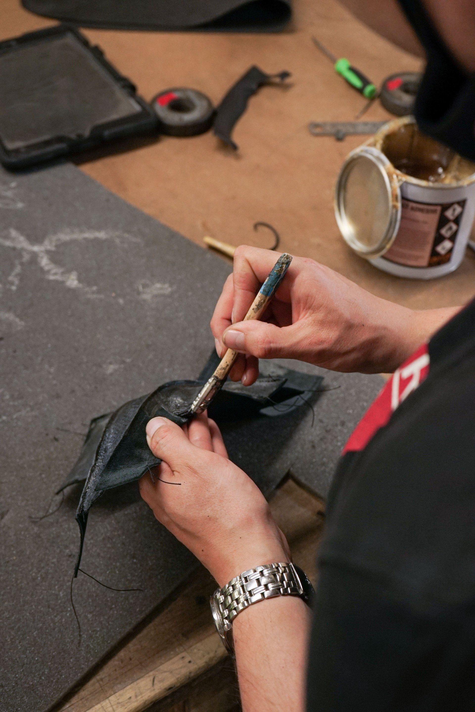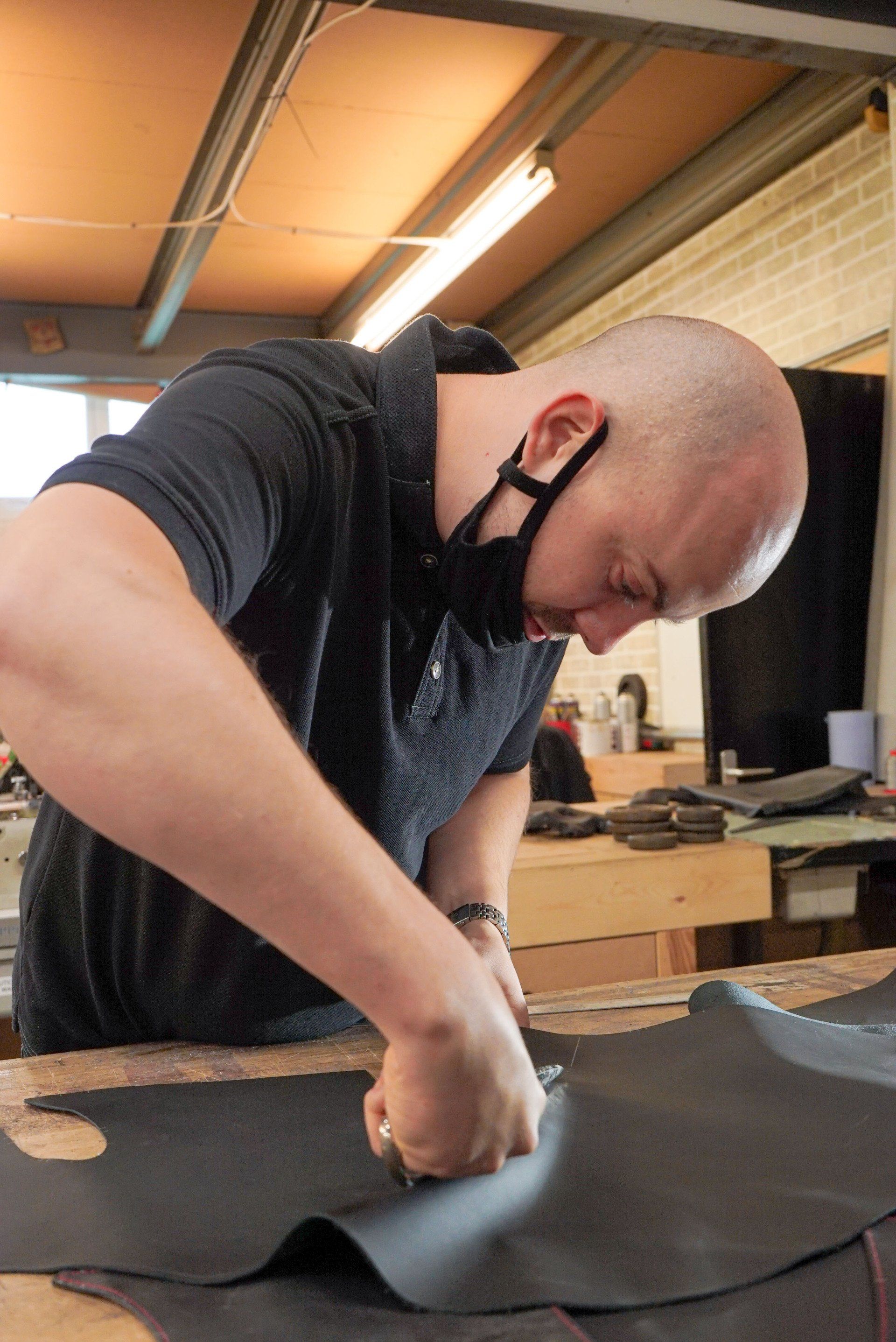 Ferrari 458 wheel retrim. Our customer requested for a stitch colour change from red to black on the steering wheel and dashboard pieces. New black nappa and perforated leather has been used for this wheel to match the OEM specifications from Ferrari. As mentioned we have also retrimmed the leather dashboard pieces and changed the stitching to black. finally, we replaced the silver interior plastic trim pieces with carbon fibre trims supplied by the customer. This customer has a stunning Ferrari collection, some of which are already booked in for future work with us.