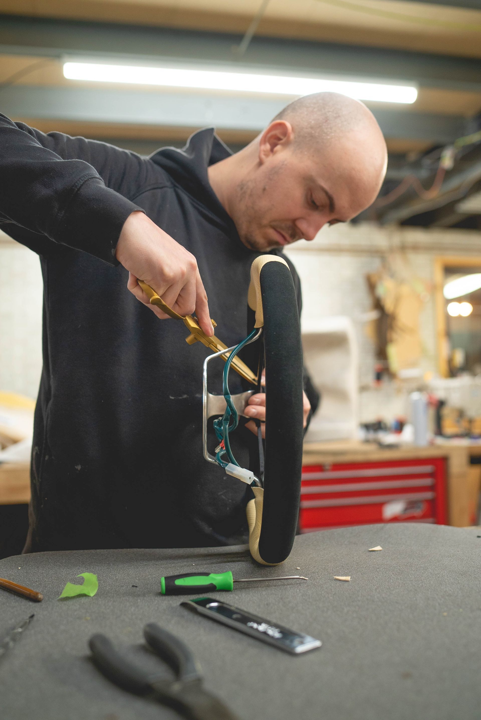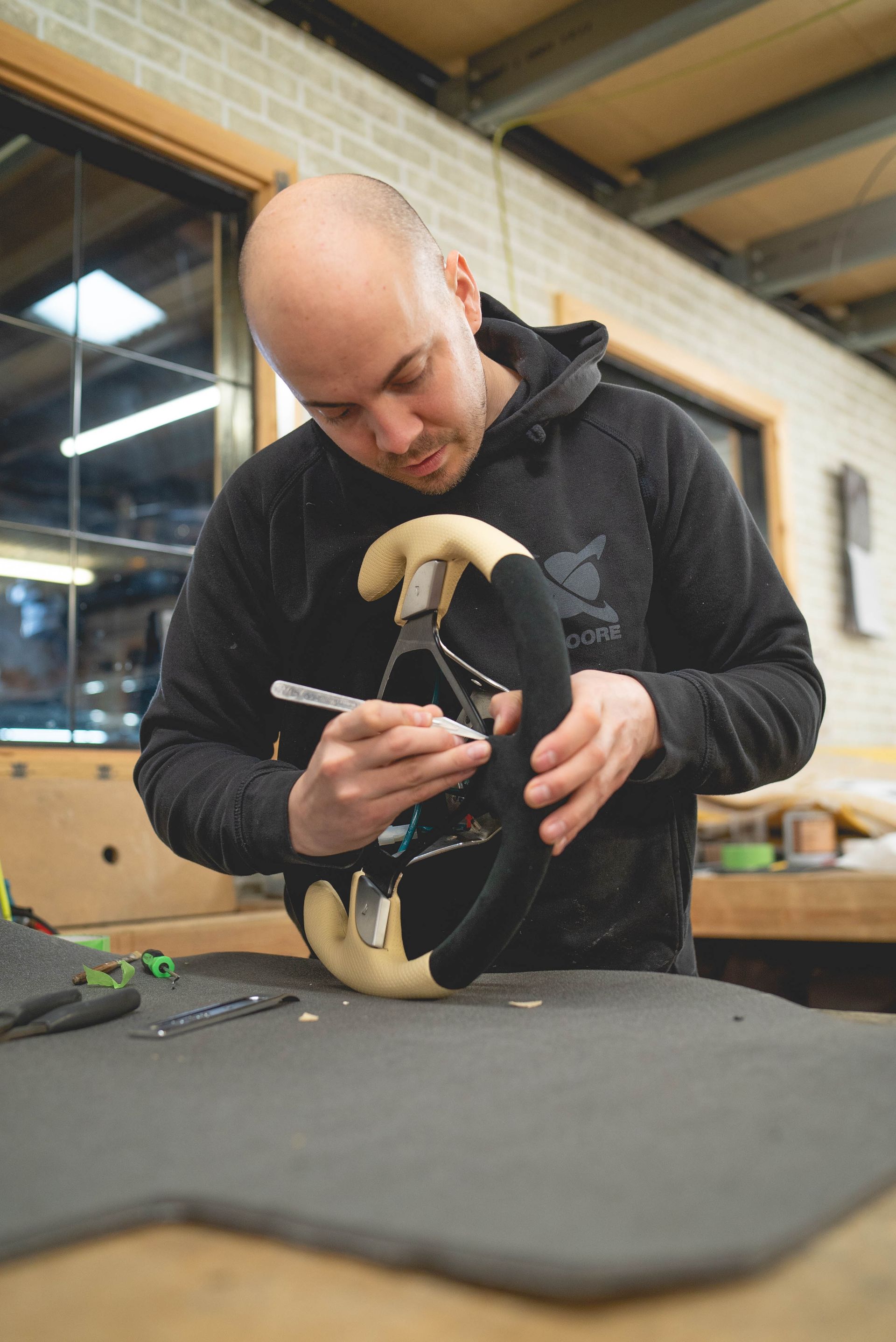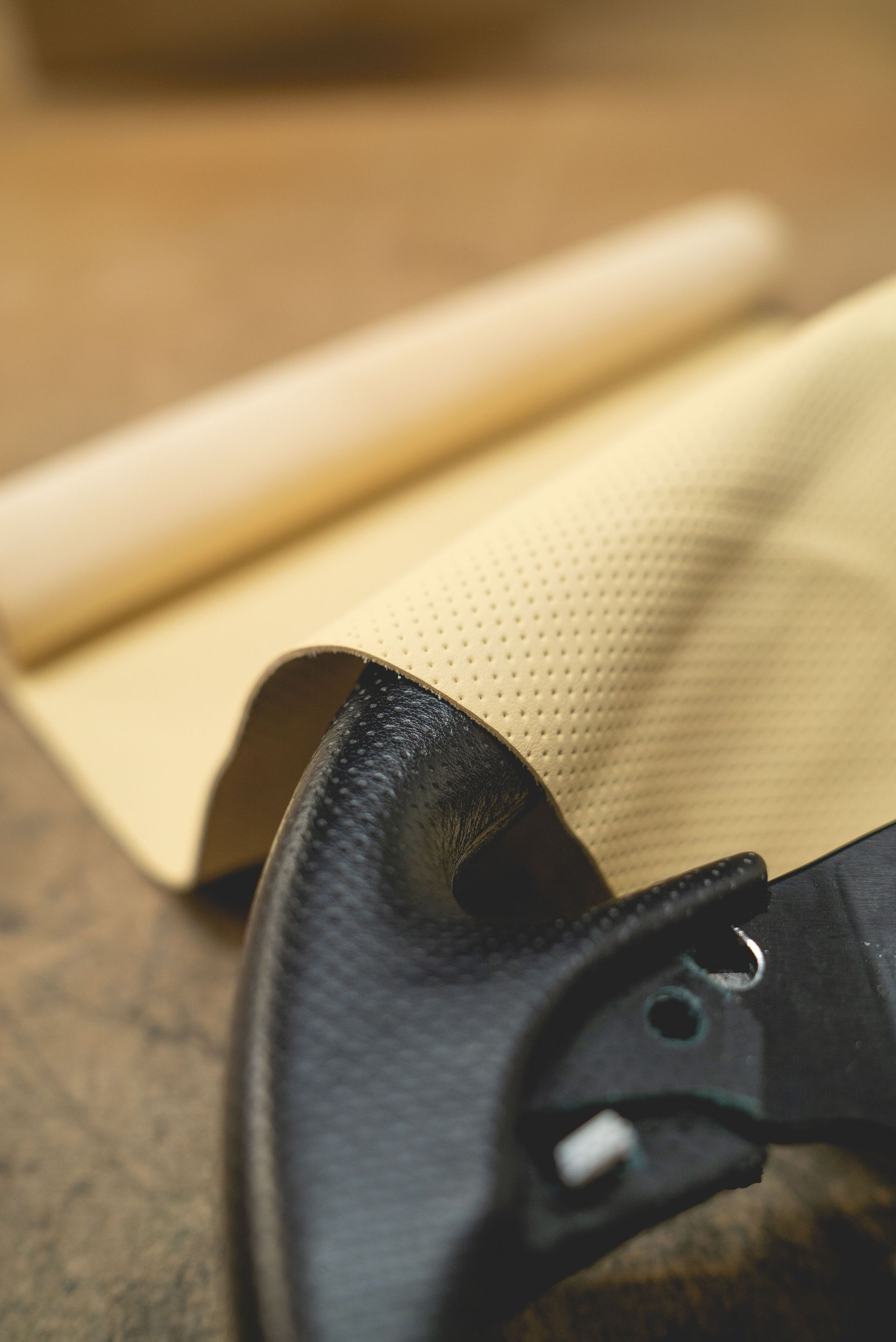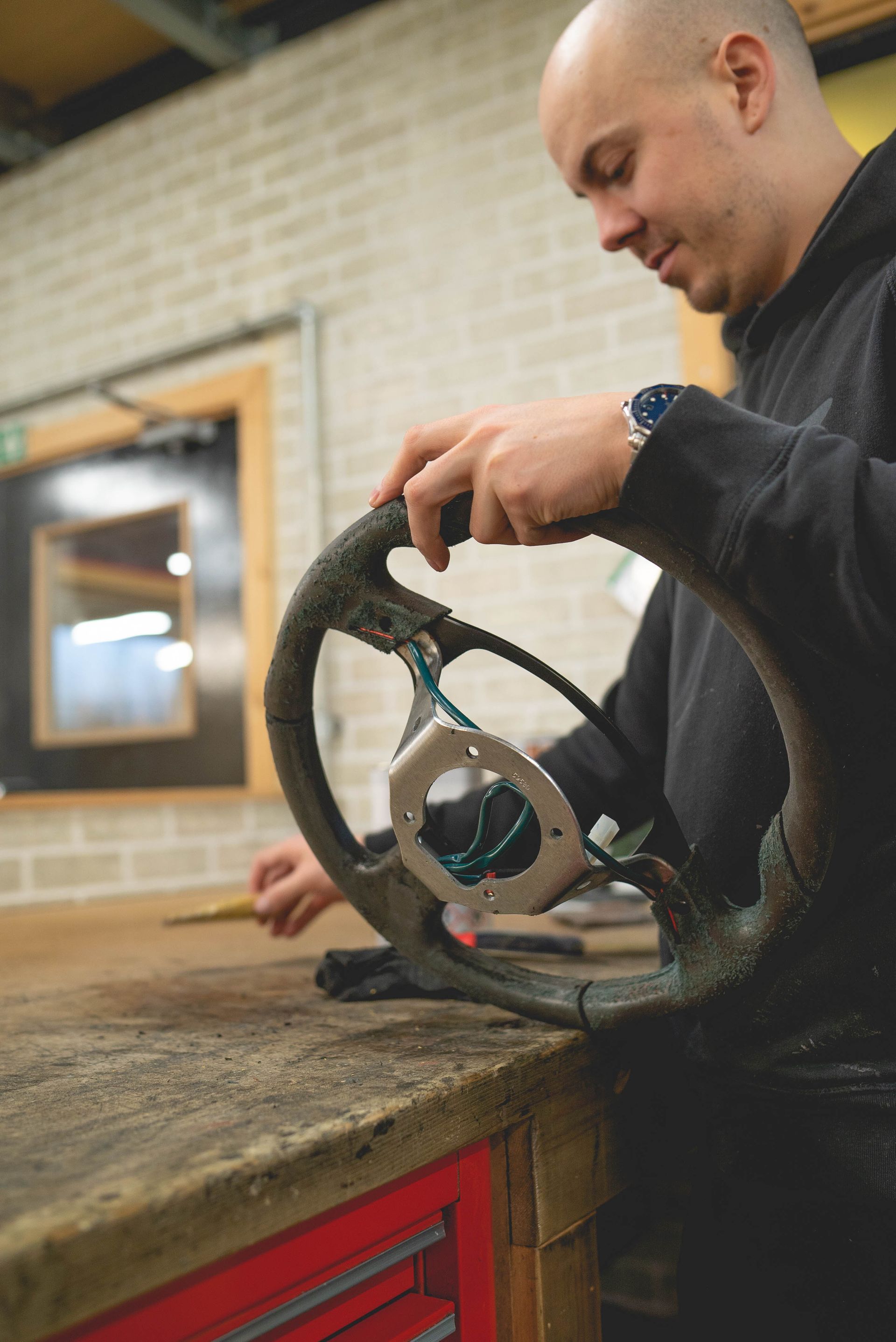 Wheel Wednesday this week with a lovely Ferrari 575 steering wheel retrim. The black leather has been swapped out with a mixture of crema nappa perforated leather and black Alcantara trimmed to OEM spec with black cross hand stitching. The airbag/horn push has also been retrimmed with crema nappa leather with "airbag" debossing.