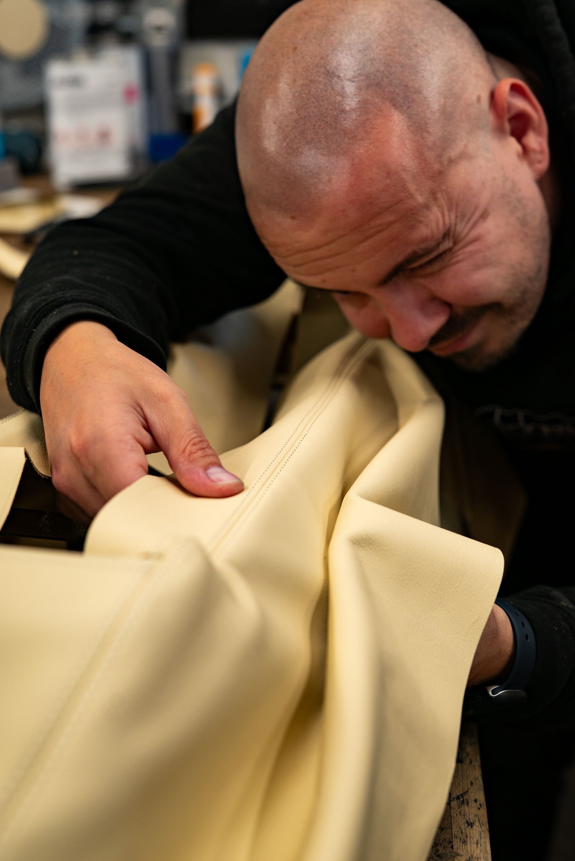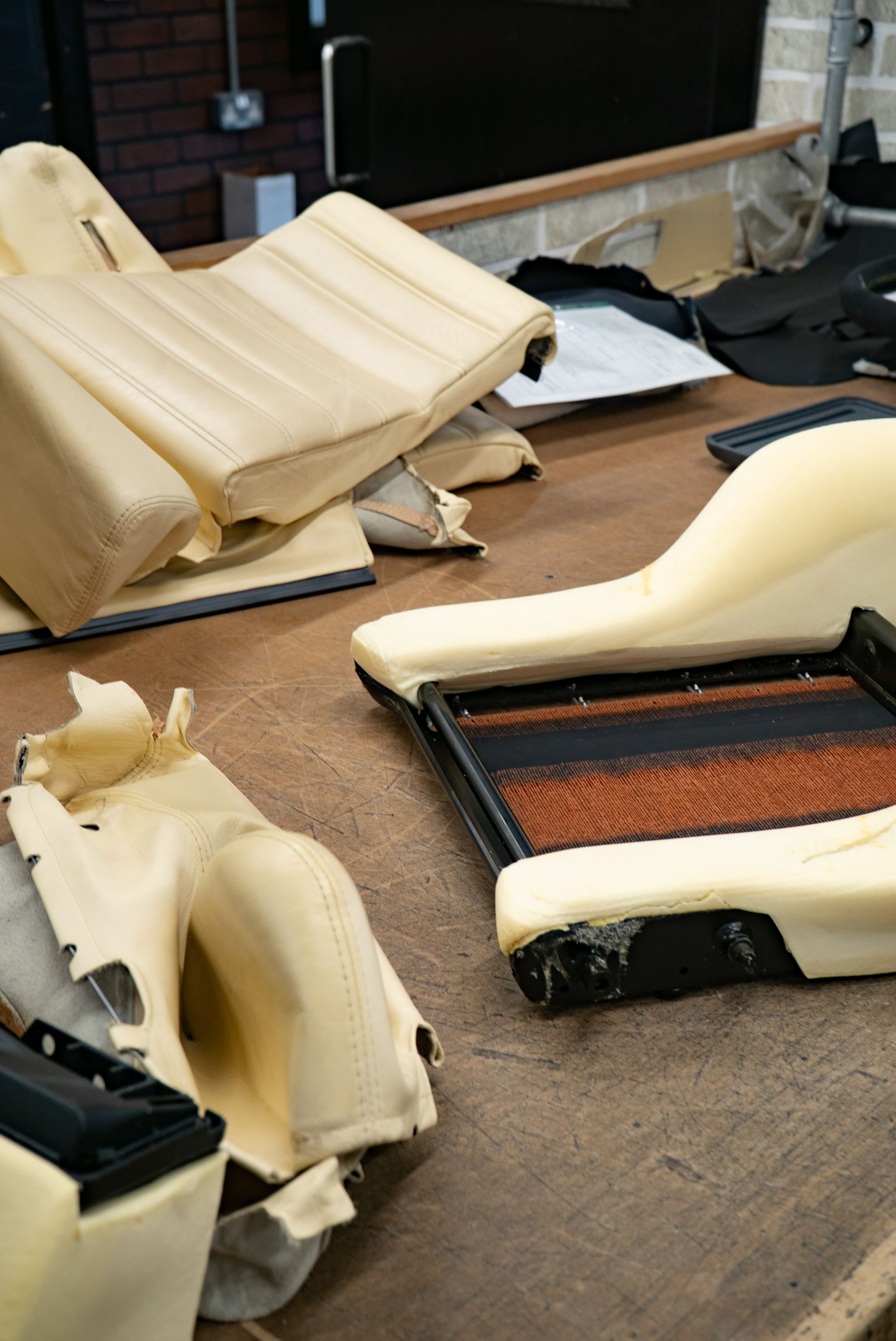 Returning to the F355 Berlinetta, we reupholstered the interior using Ferrari’s original Crema Nappa leather with matching stitching, both sourced directly from our own d:class autoshop. The dashboard top and door handle sections were finished in contrasting black Nappa leather, adding a subtle touch of elegance. As for the carpets and floor mats, they were left untouched; after a thorough clean, we advised the customer that a retrim wasn’t necessary. They were in such remarkable condition, it was genuinely impressive. The radio and dashboard vents were sent off to be restored, as with older Ferraris, the plastic peel and go very sticky. These will be returned to the customer when ready.