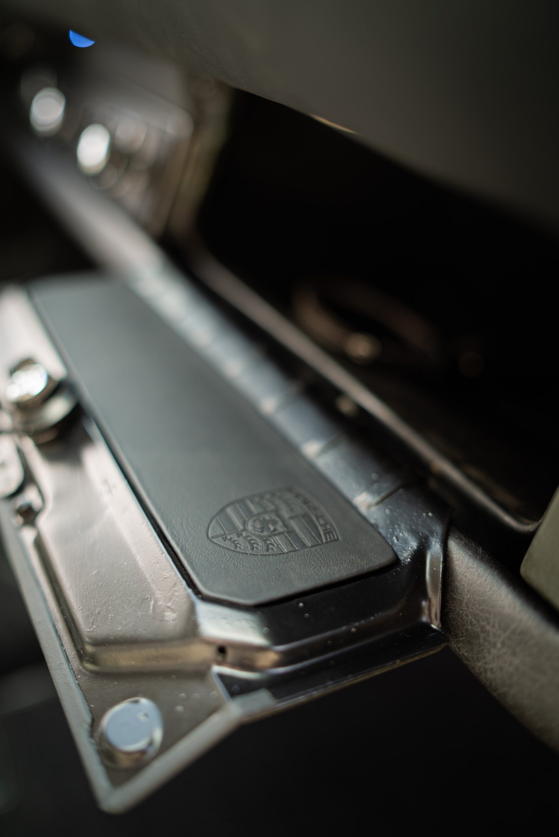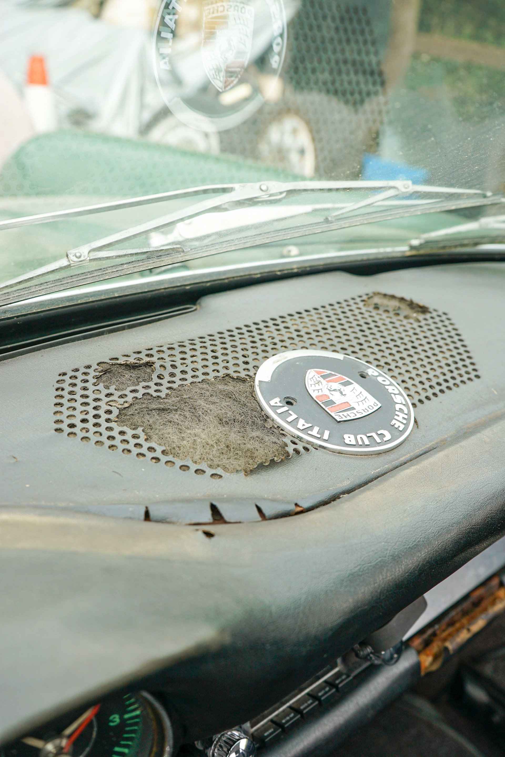 We wanted to showcase our skills and resources where possible, so for the dashboard we set about recreating the perforated shape found on the old dashboard. For this recreation we used our CNC Stitching and Perforation machine. Firstly, we had to take measurements of the original shape, then recreate this on a design programme to scale. Next, we tested a variety of perforation hole sizes until we found one that suited best. As a little sprinkle of additional detail, we left out punching some of the holes to show '912' into the dashboard. Lastly, we found a new home for the "Porsche Club Italia" emblem in the passenger corner. We have sunken this into dashboard to look more purposeful.