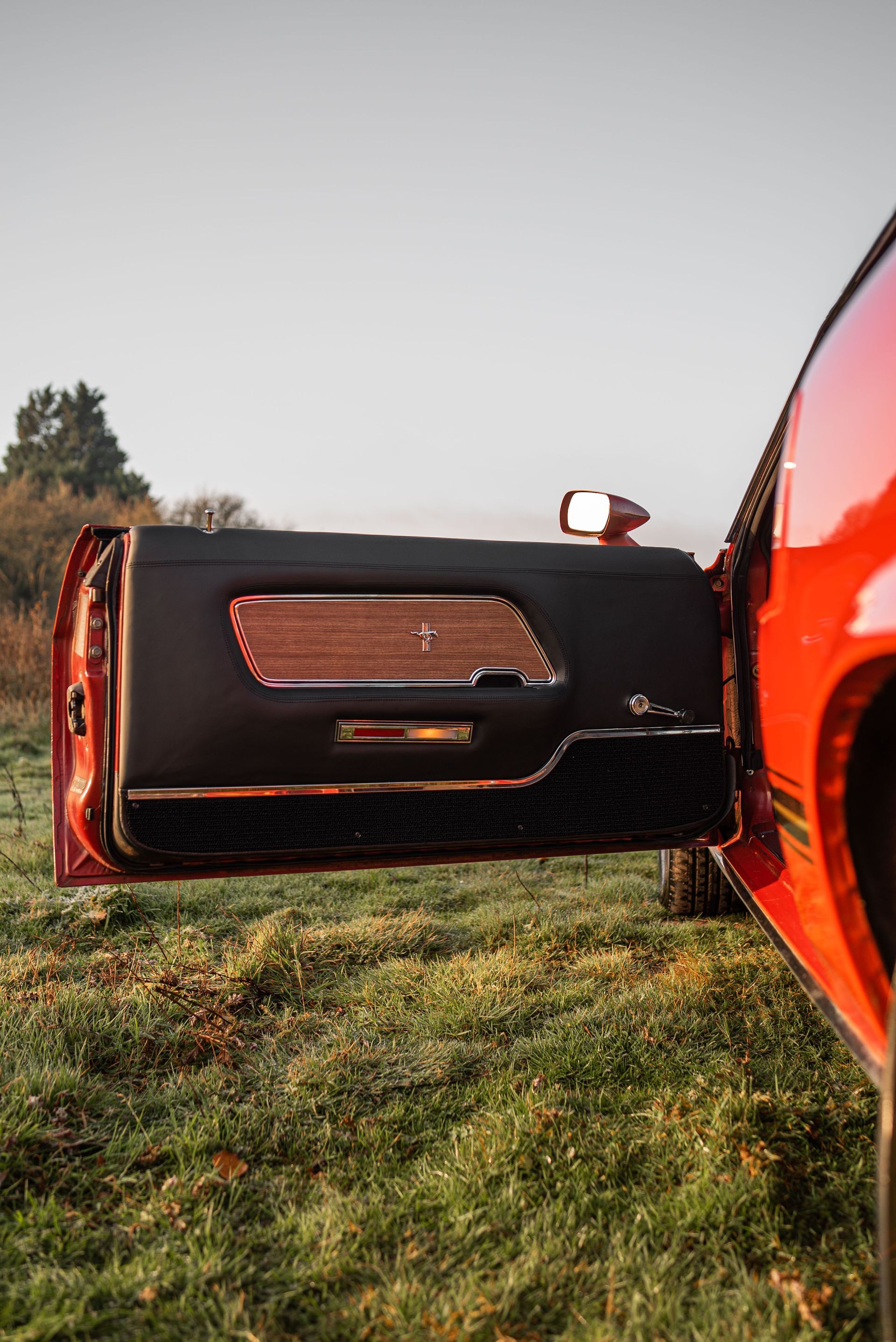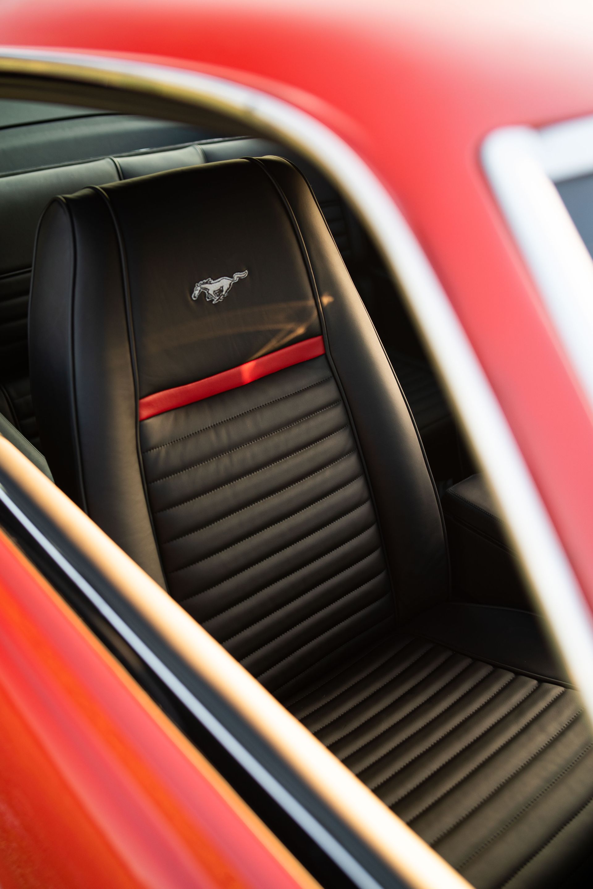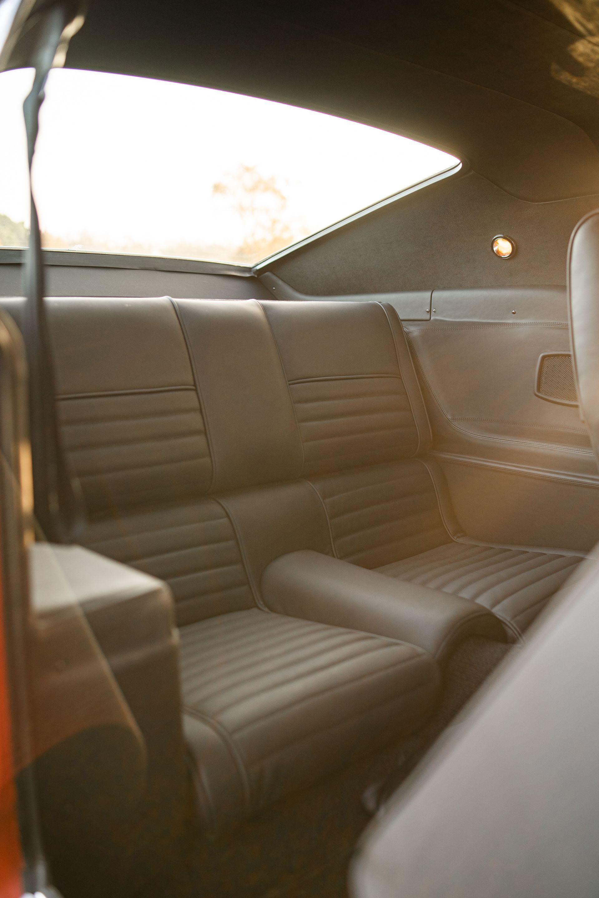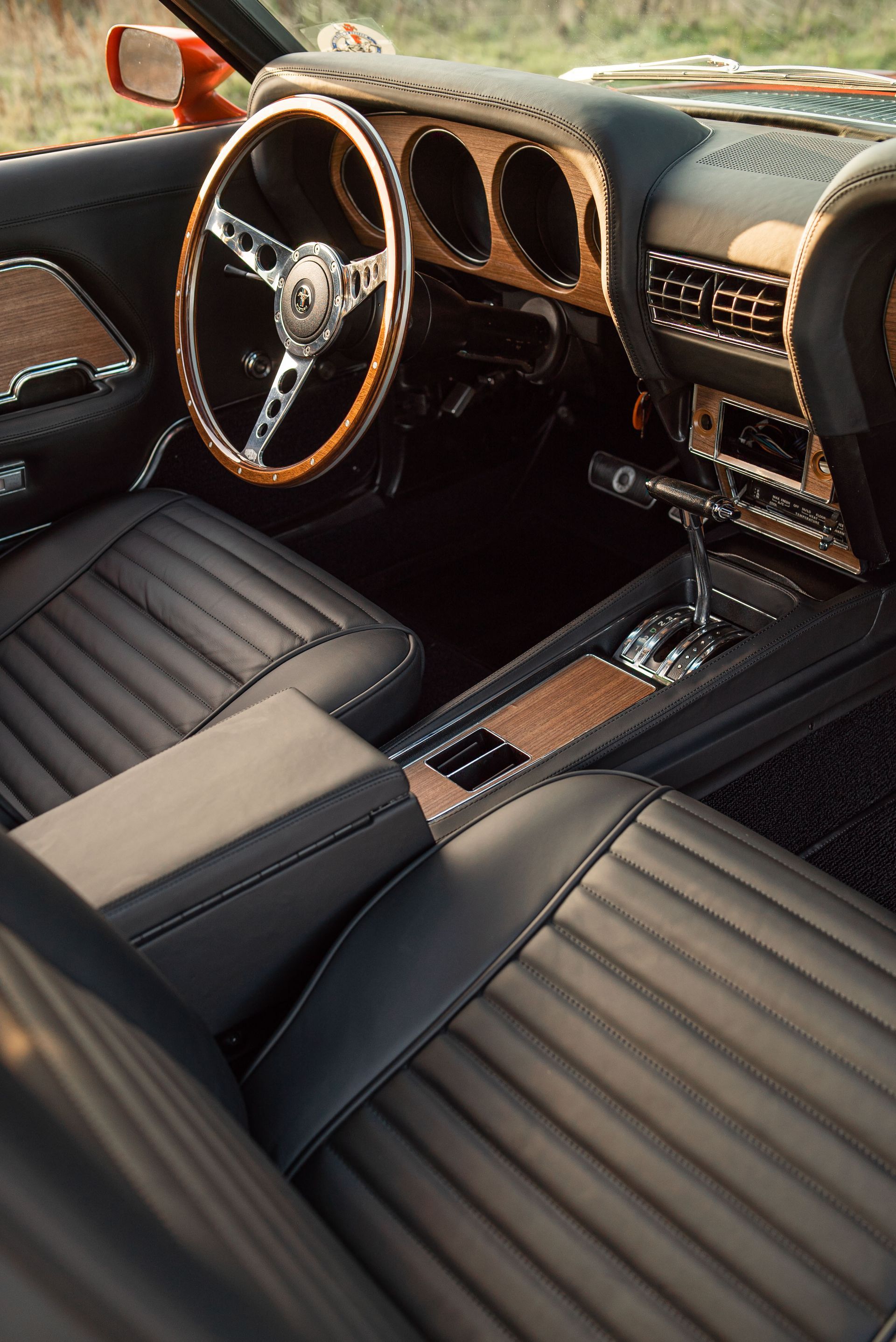 Ford Mustang Mach 1 1969 survivor for you all today with a full interior retrim. This vehicle came to d:class with the interior in pieces but has now left looking entirely different. Black nappa leather seats with a mustang embroidery and Mach 1 red leather stripe. Brand new black twinloop carpet with black vinyl binding. The dashboard has been retrimmed with the same black nappa leather with twin black stitching. This was the same for the rear quarters and doorcards. The plastic woods have been replaced with a modern solution, vinyl wood style wrapping