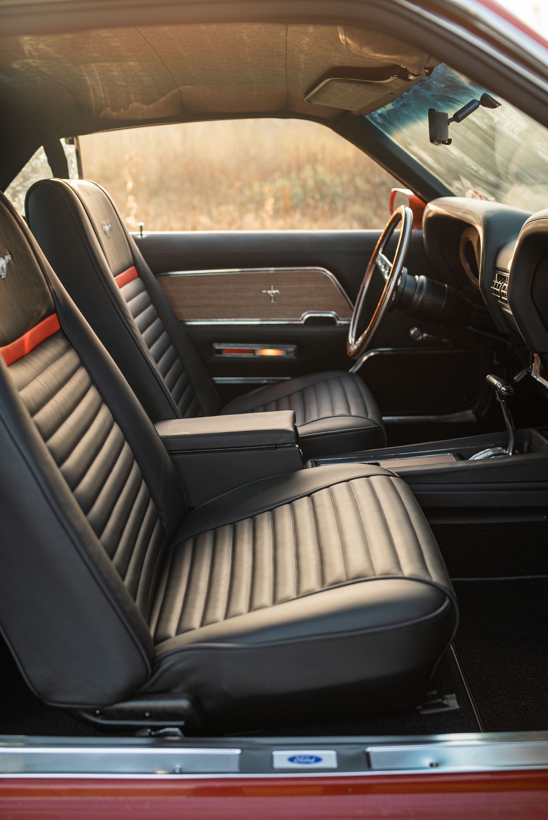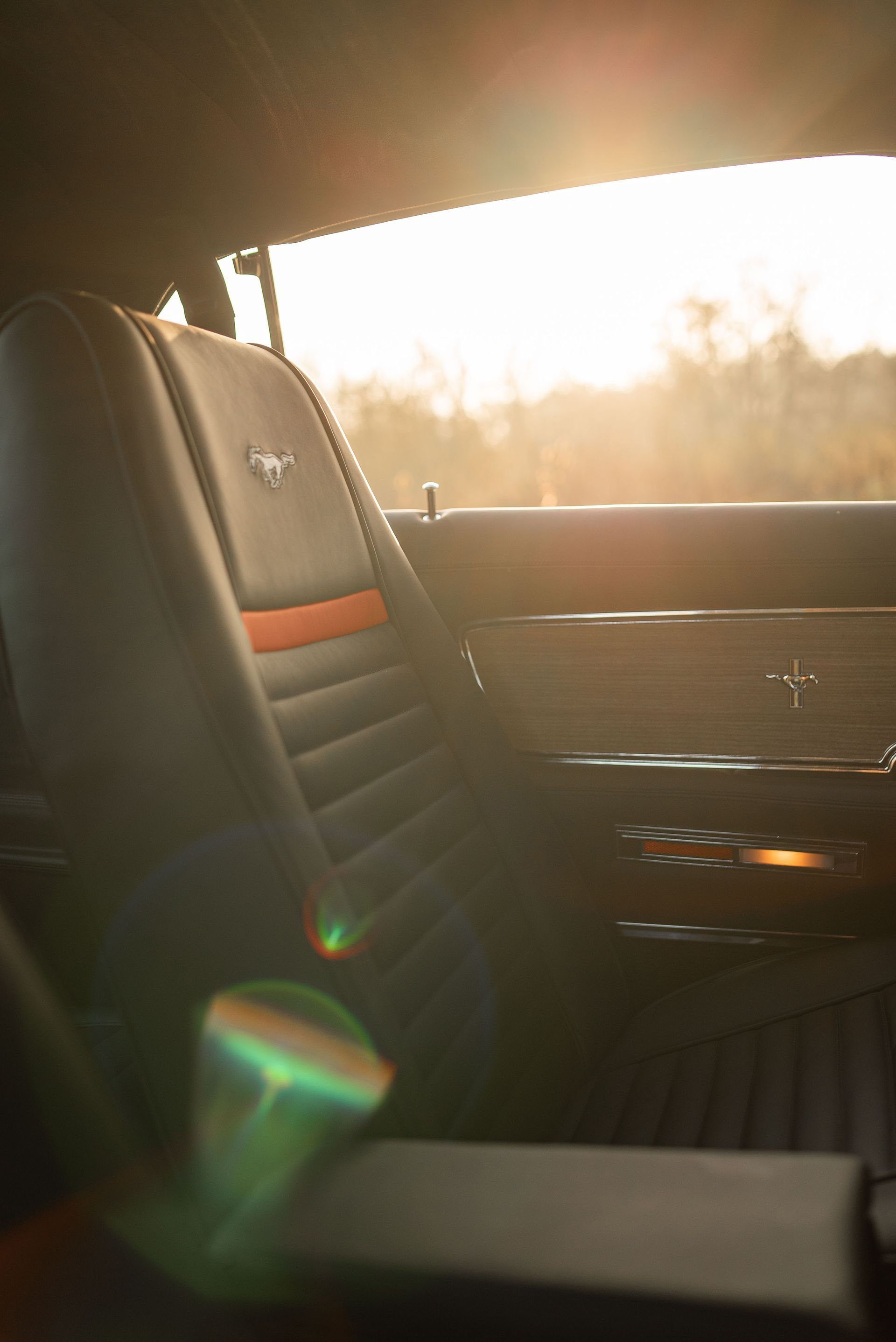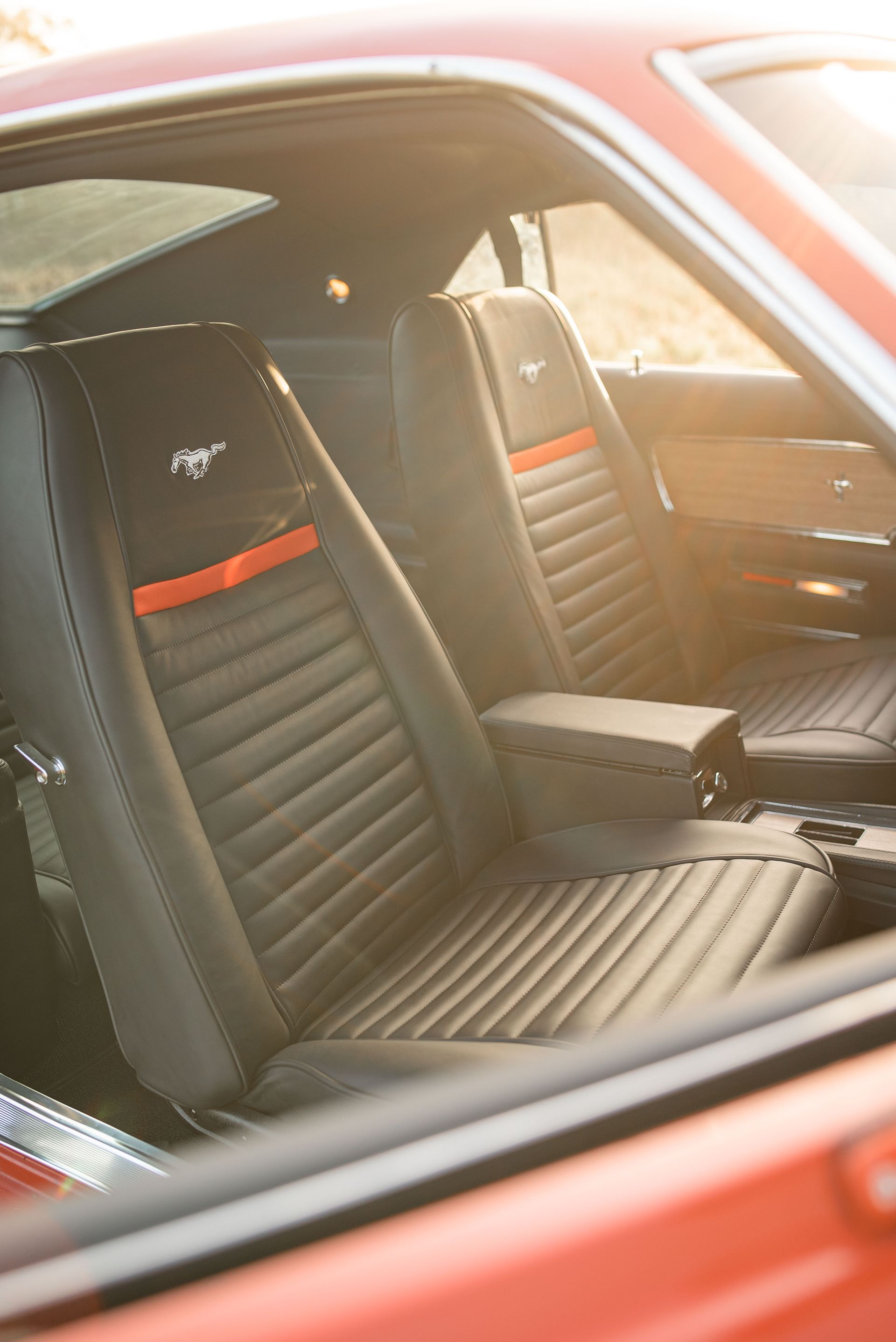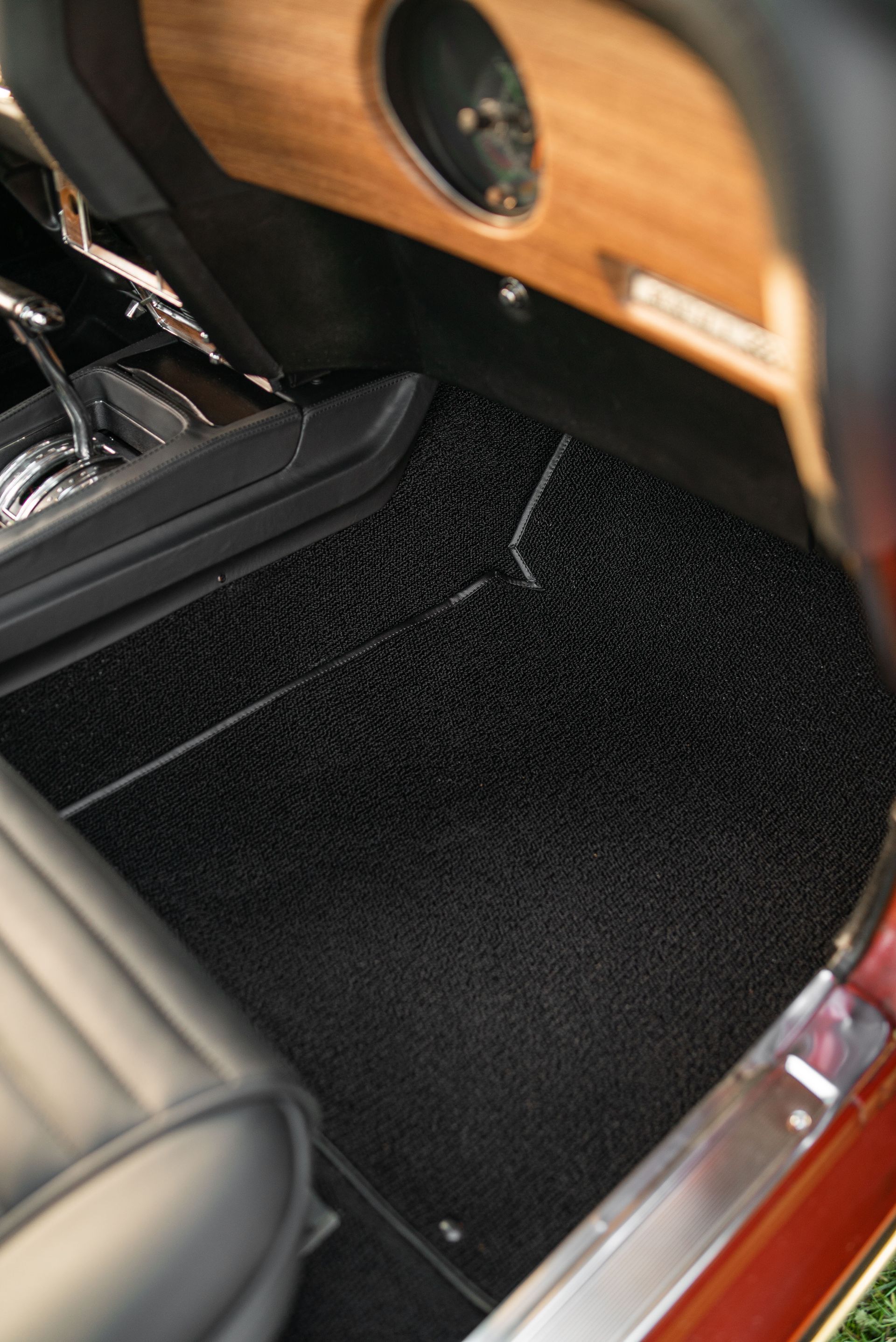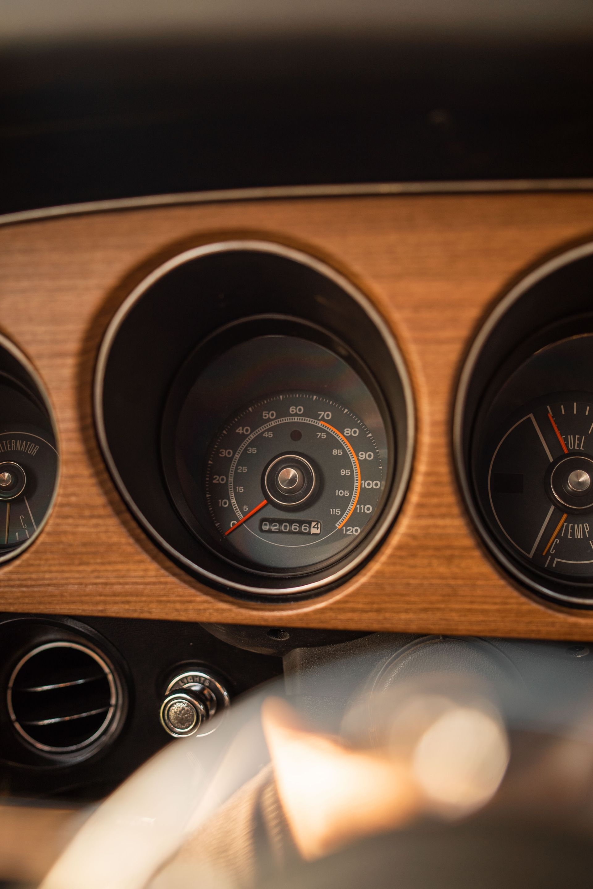Ford Mustang Mach 1 1969 survivor for you all today with a full interior retrim. This vehicle came to d:class with the interior in pieces but has now left looking entirely different. Black nappa leather seats with a mustang embroidery and Mach 1 red leather stripe. Brand new black twinloop carpet with black vinyl binding. The dashboard has been retrimmed with the same black nappa leather with twin black stitching. This was the same for the rear quarters and doorcards. The plastic woods have been replaced with a modern solution, vinyl wood style wrapping