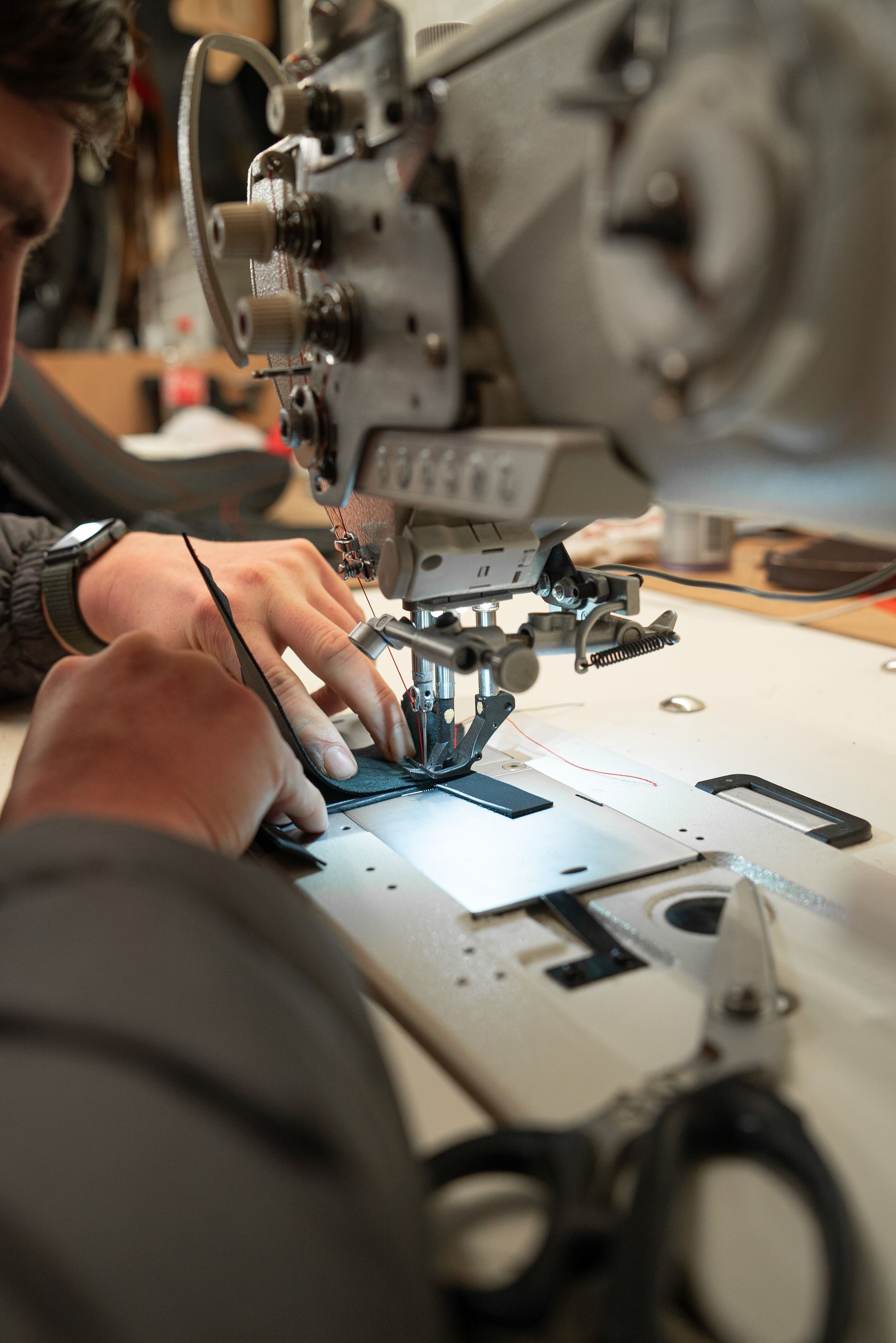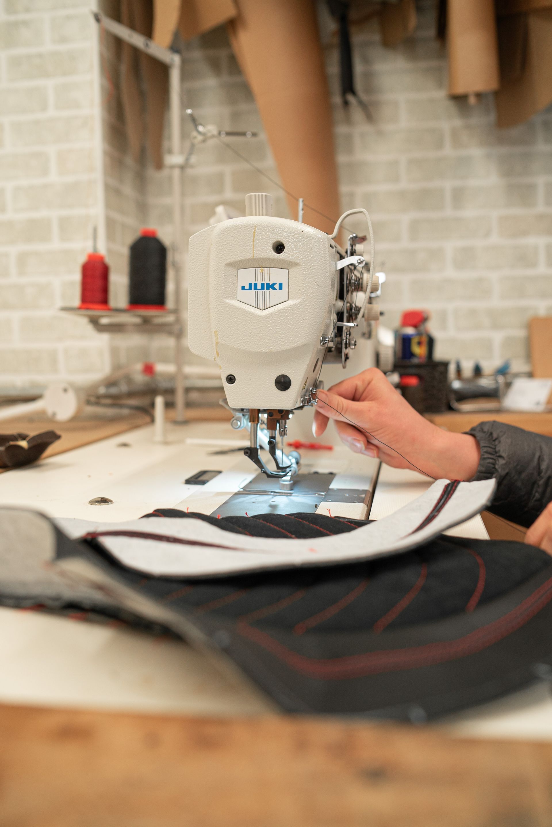 A quick discussion took place to decide on a design, and we came up with this pattern, which we are nicknaming 'Horizon'. A bold twin stitch was also placed along the side, leading into the second cushion to help further connect all three pieces.