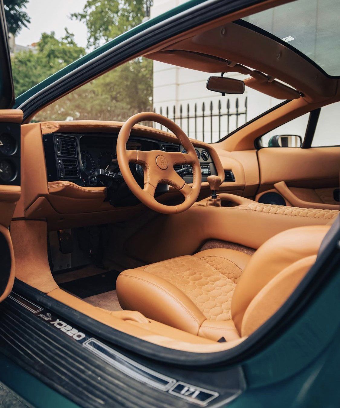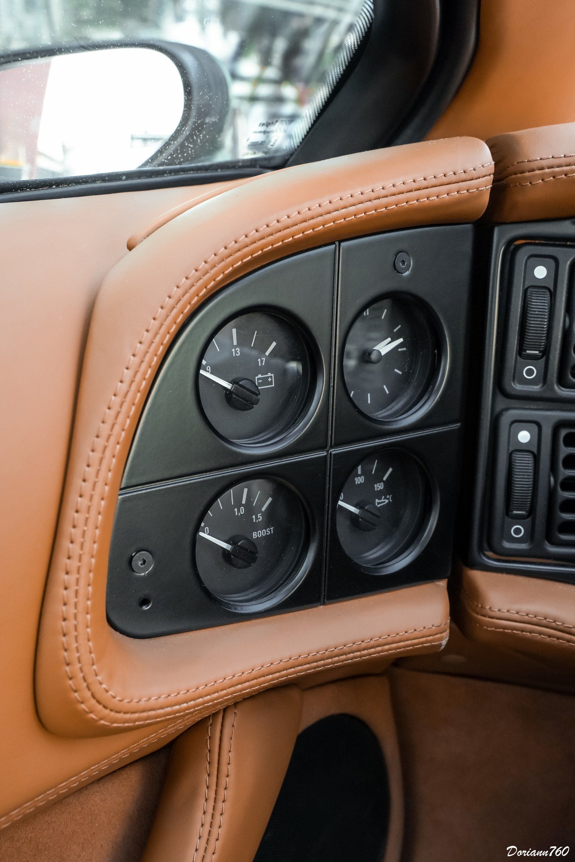 This example is not totally standard, given away by the huge rear wing and the lack of concealed headlights. Keen-eyed viewers will spot that it is a Le Mans body kit, just lacking a racing livery. Now for the best part, an unbiased opinion of course, the interior. Tan nappa leather fused with matching tan Dinamica create the perfect blend with the cars green paint.