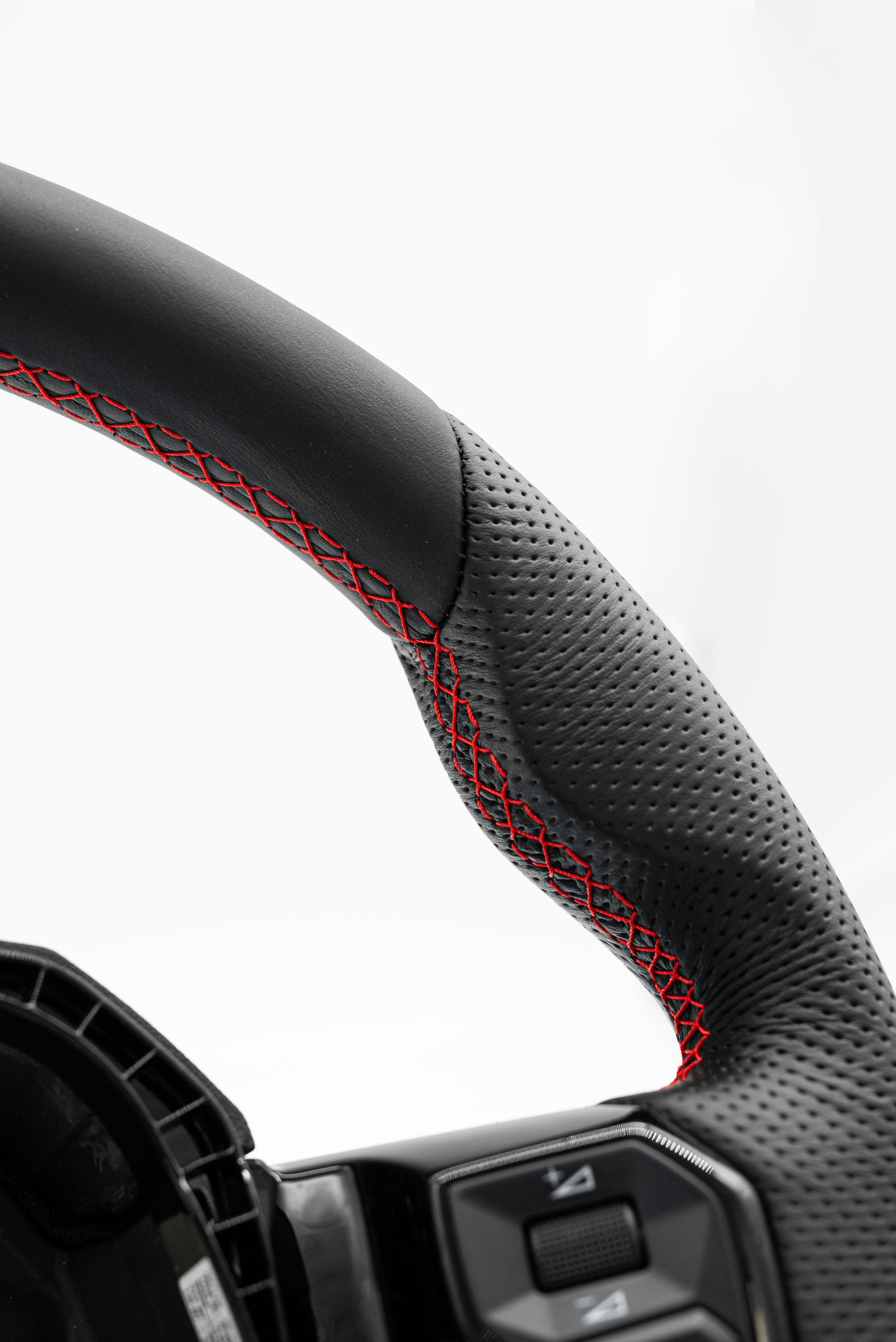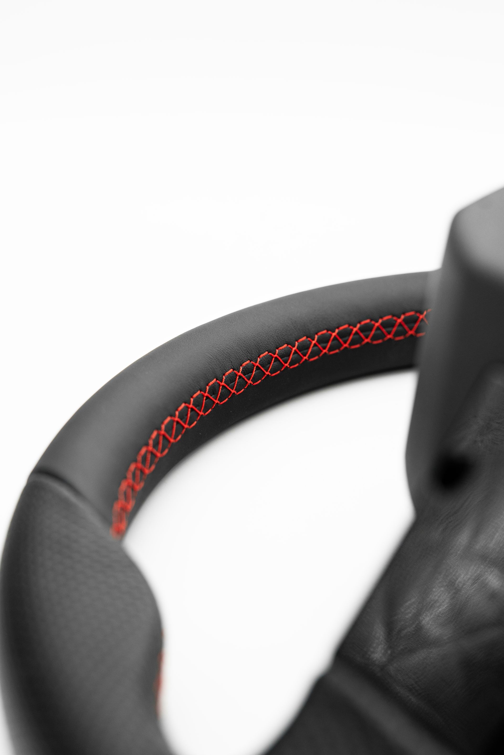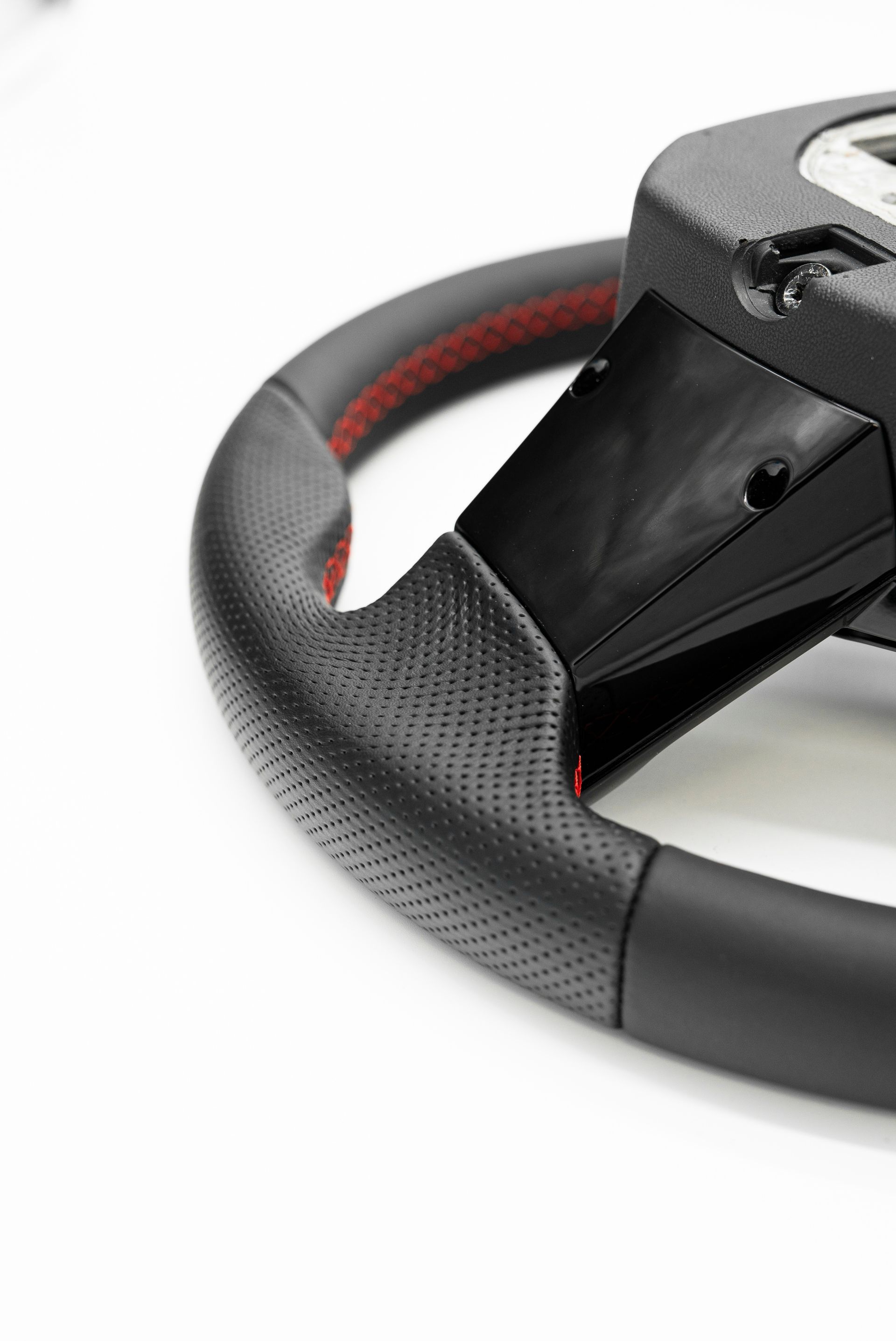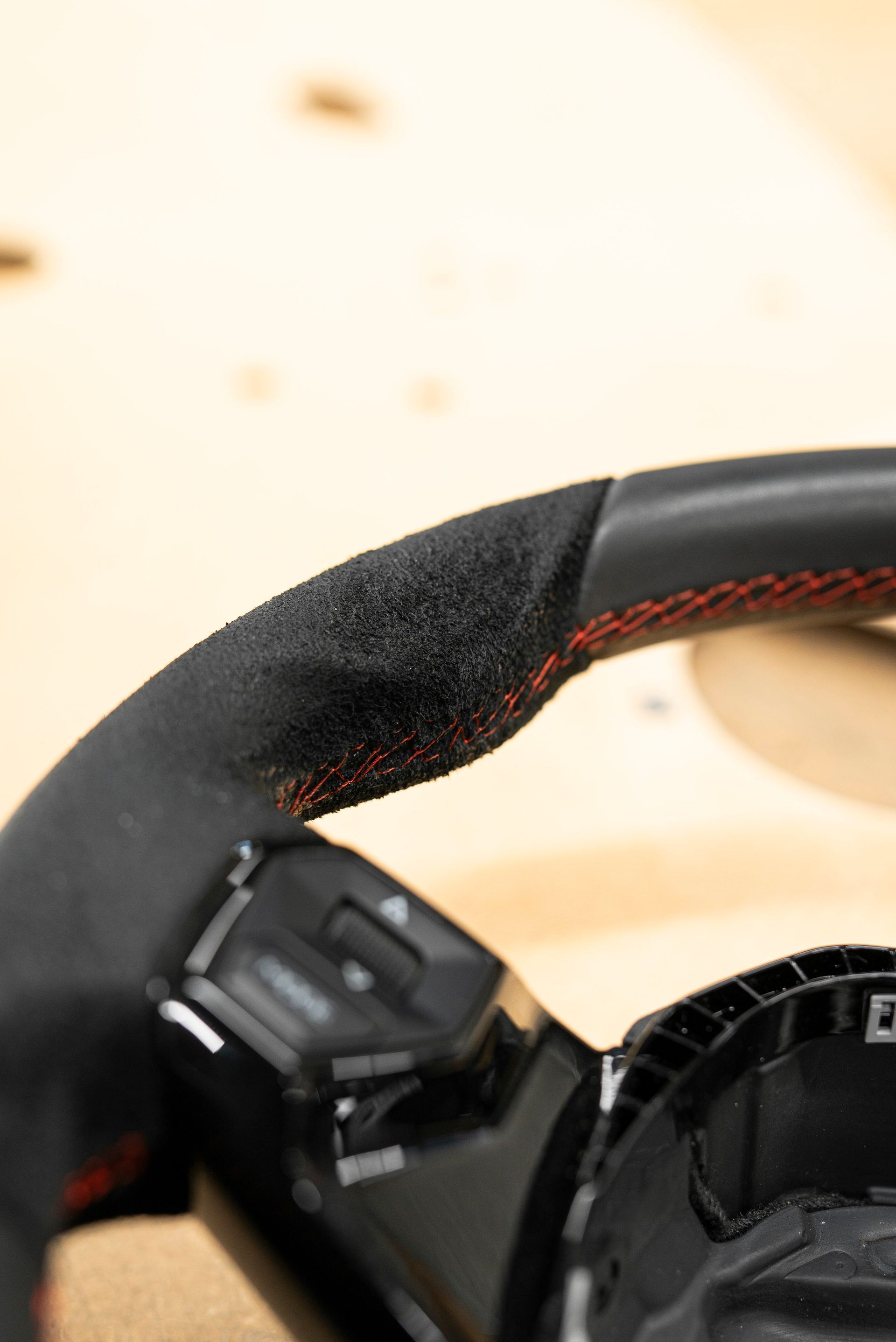 The OEM wheel came to us with worn and clumpy Alcantara which needed fixing. Our customer requested an OEM+ retrim, and for it to look better than the original.