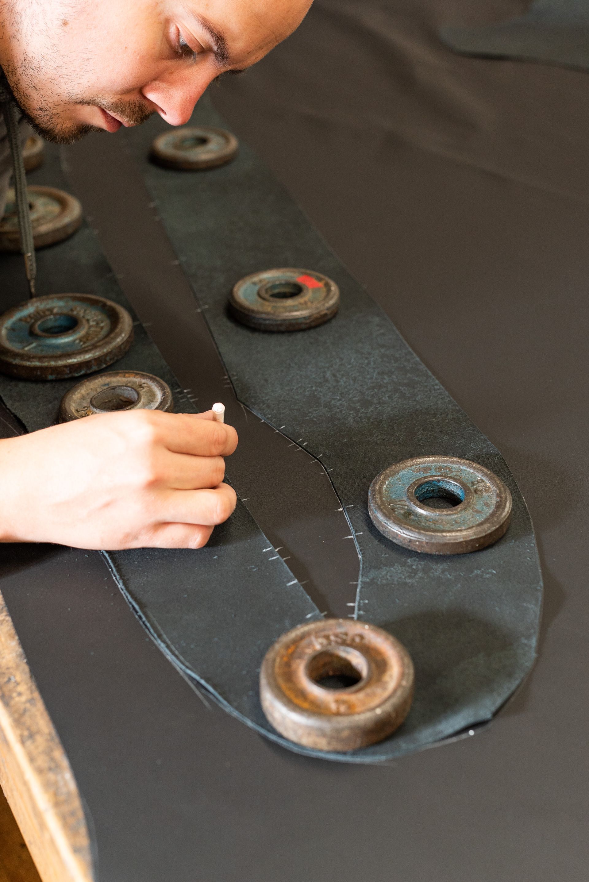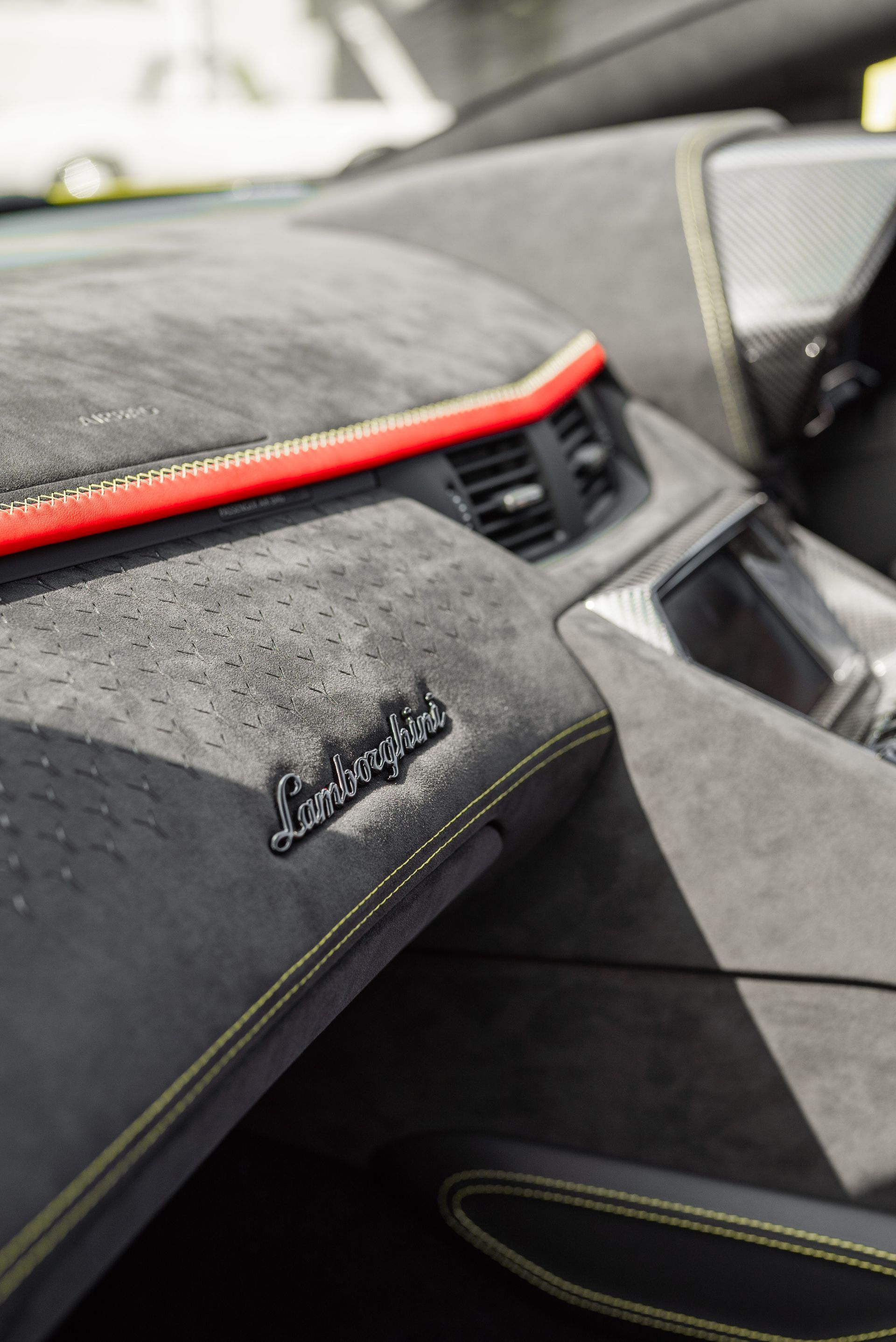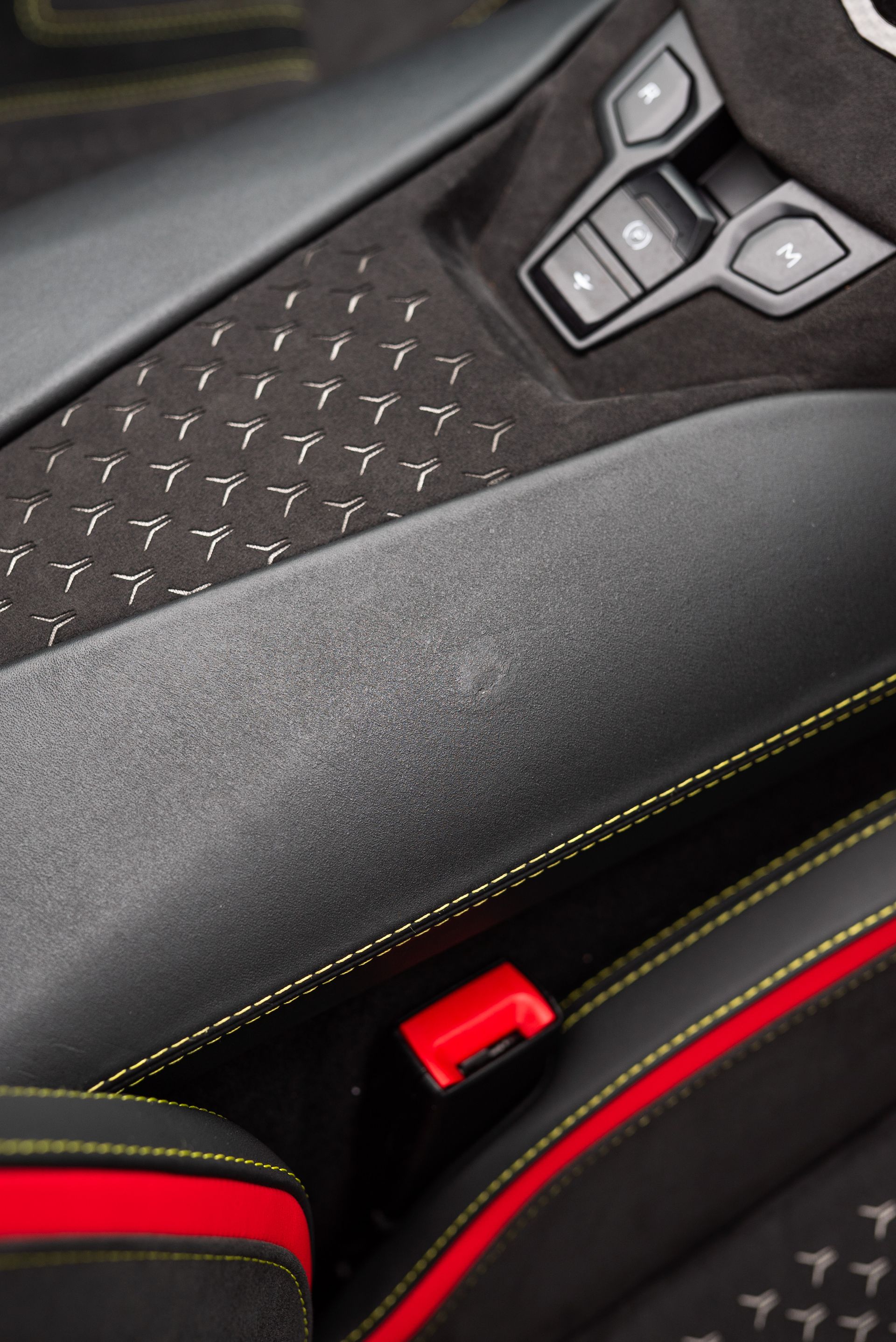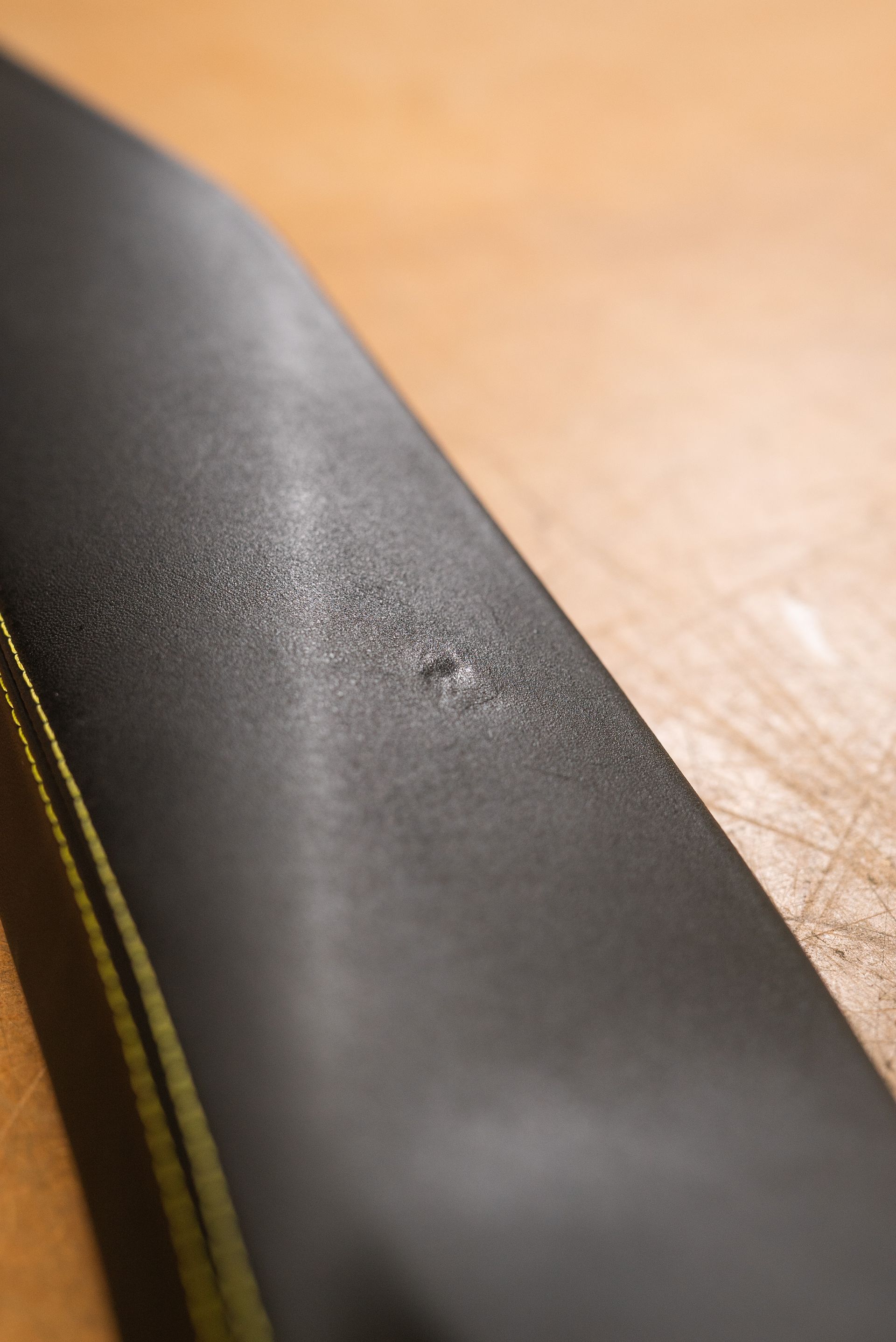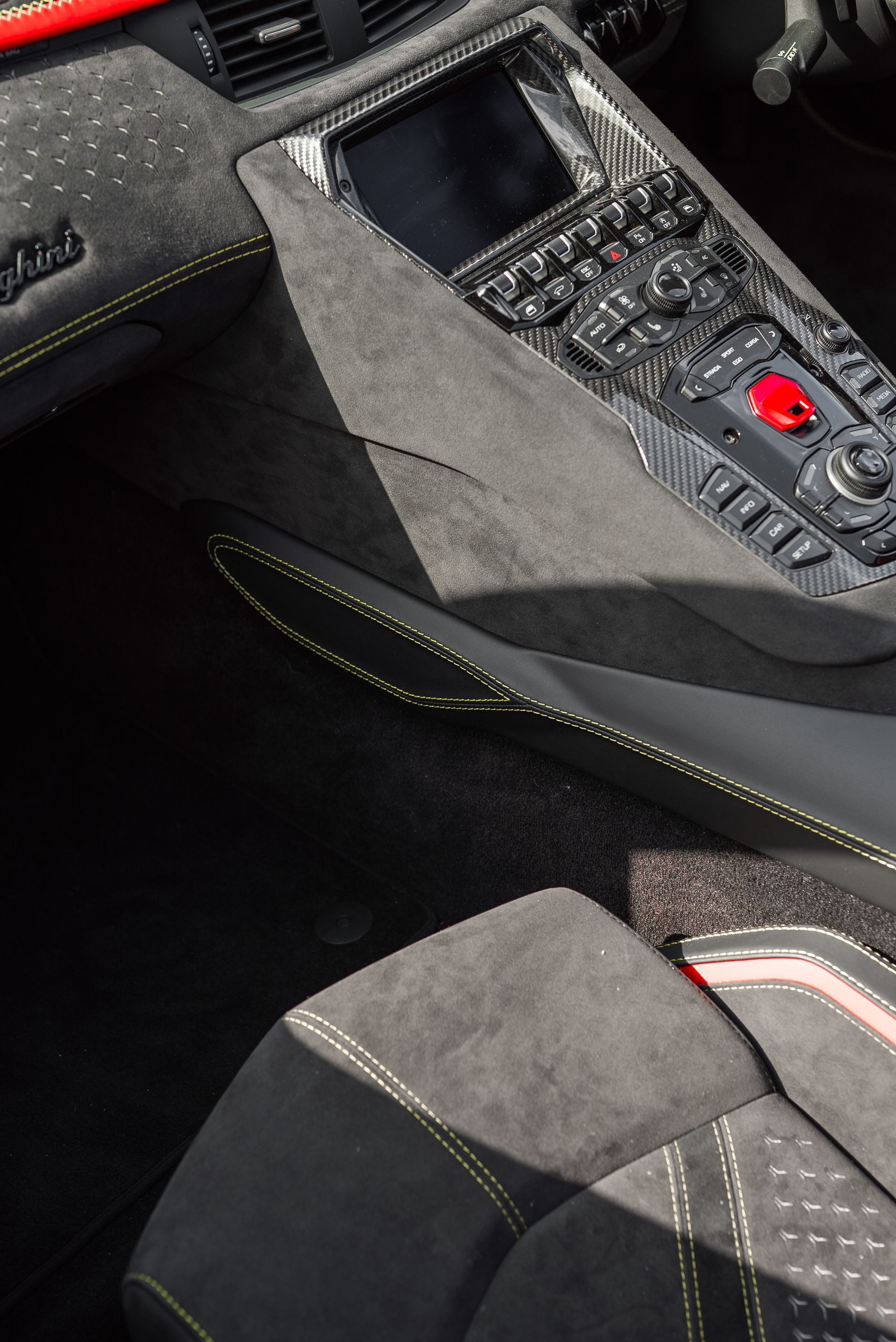 Now, for why this was with us. With the Aventador Roadsters, the roof comes away manually and is then stored in the "frunk". Unfortunately, a previous owner dropped this roof panel and damaged the centre console underneath. There has been an attempt to repair this previously, but tissue paper, filler and then painted leather are not long term fixes. So, the new customer got in contact with us, and was booked in for an OEM like for like retrim.