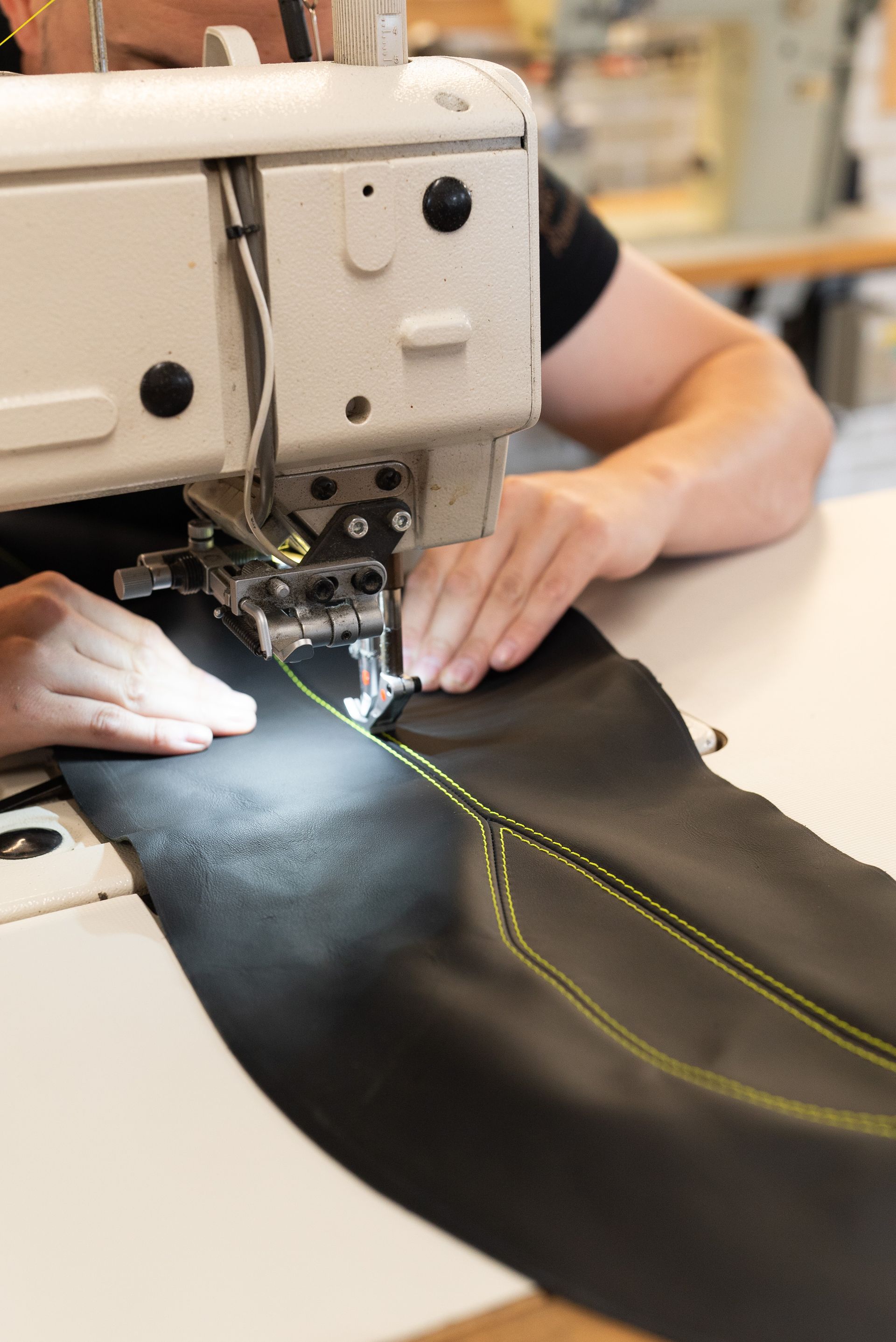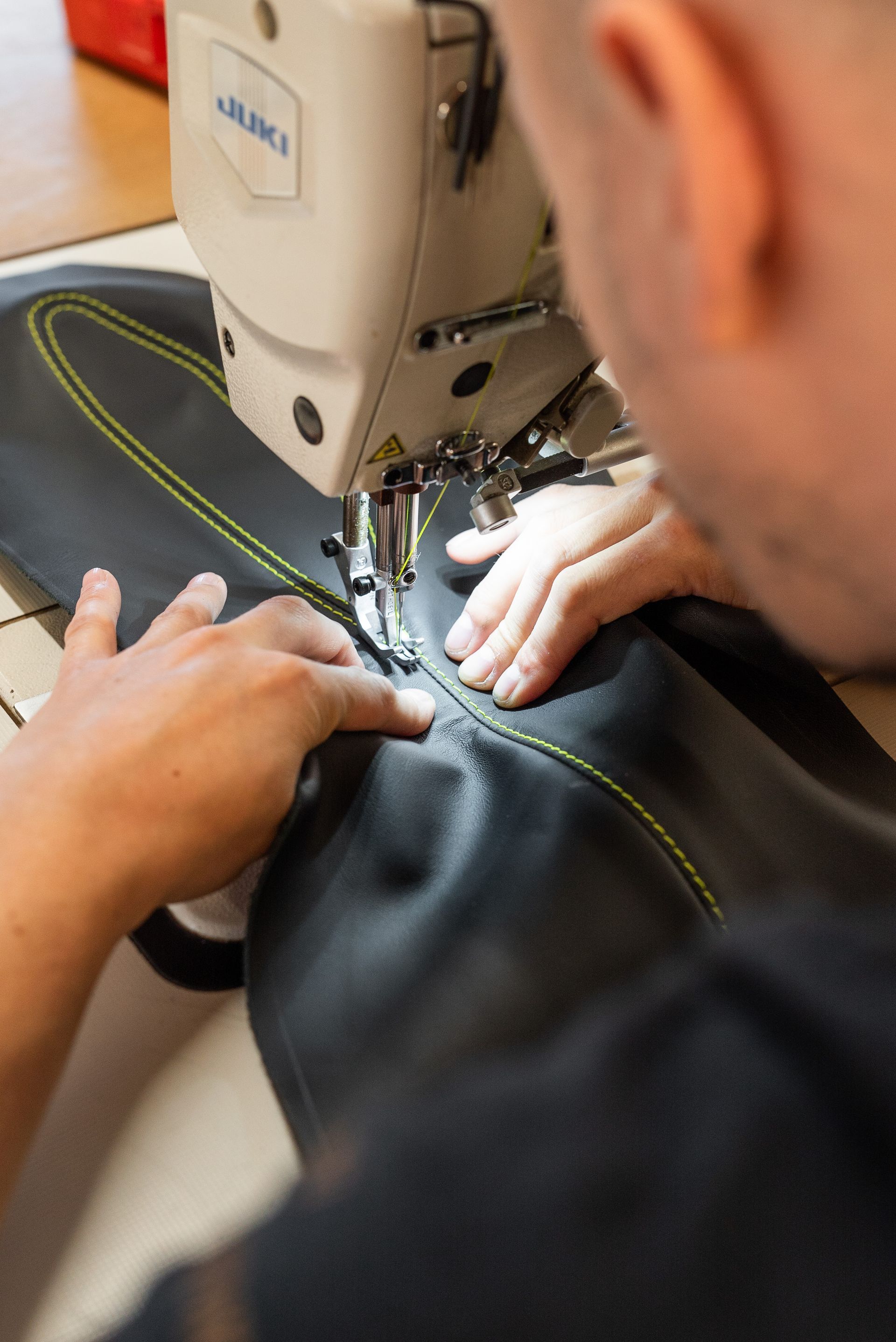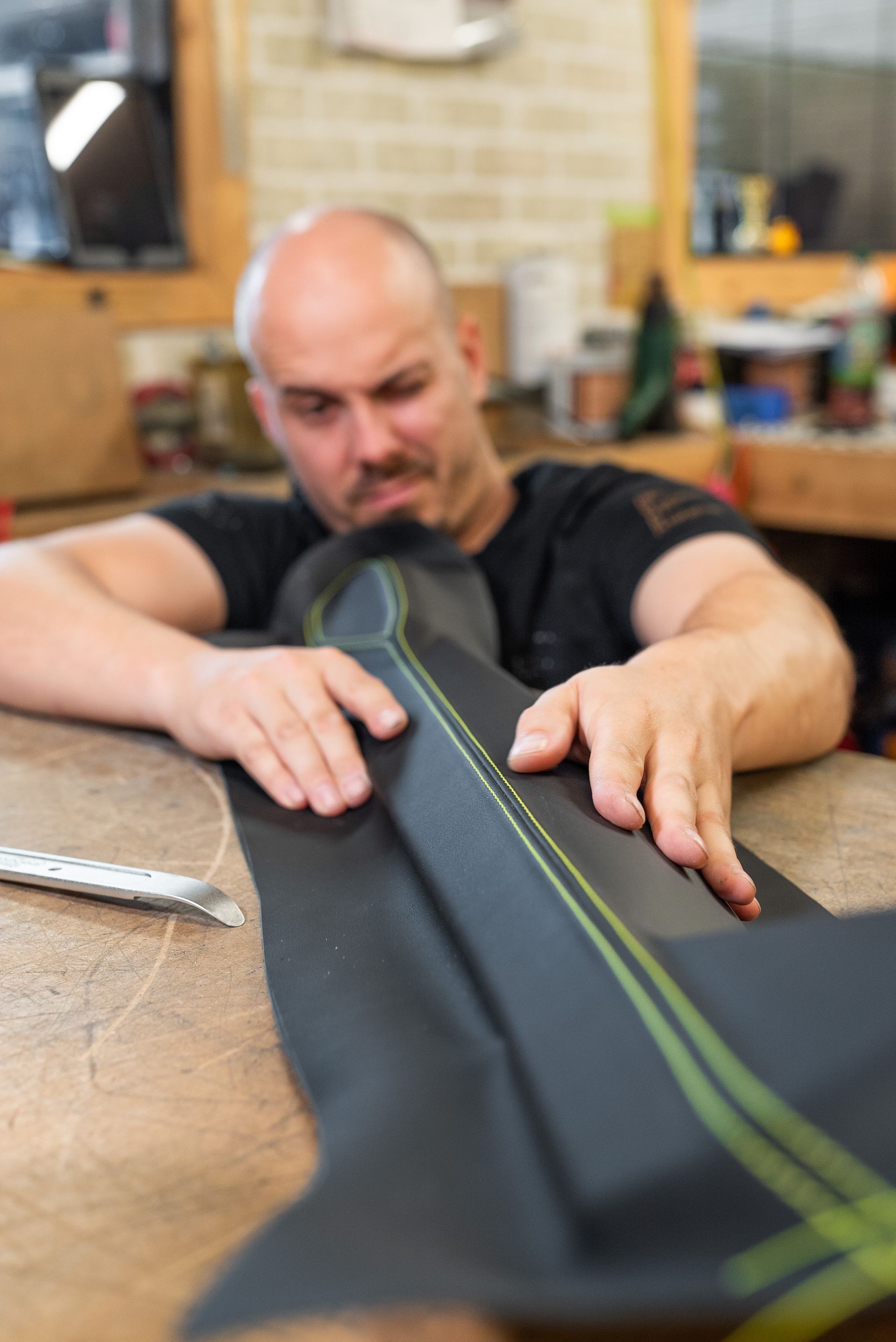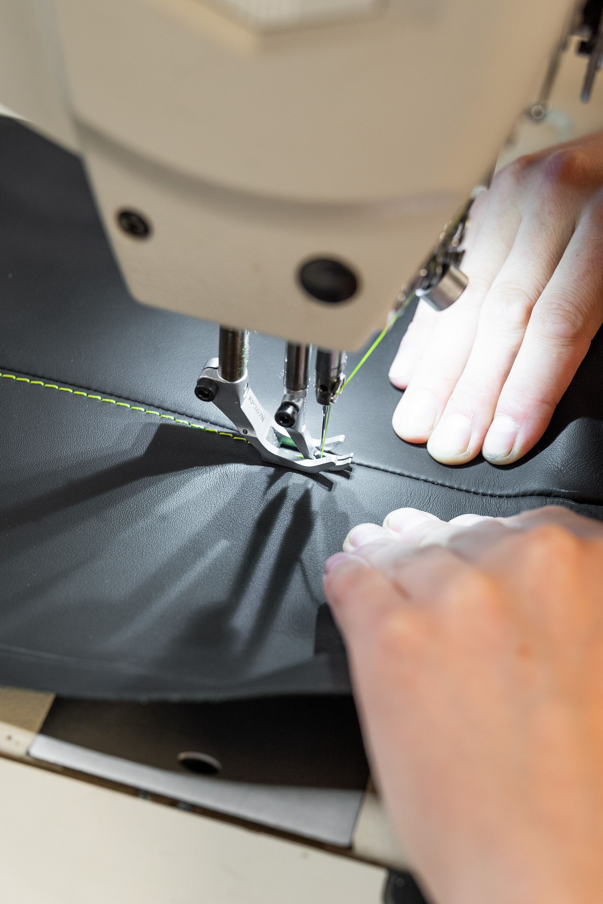 We stock Serafil Amann automotive threads in our own store, so a thread matching the Verde Scandal green was selected. Be sure to check out our store at dclassautoshop.co.uk where you can buy threads just like this one for your own projects. A twin stitch, which then splits, decorates these panels, creating a very cool and unique finish to the already outrageous interior.