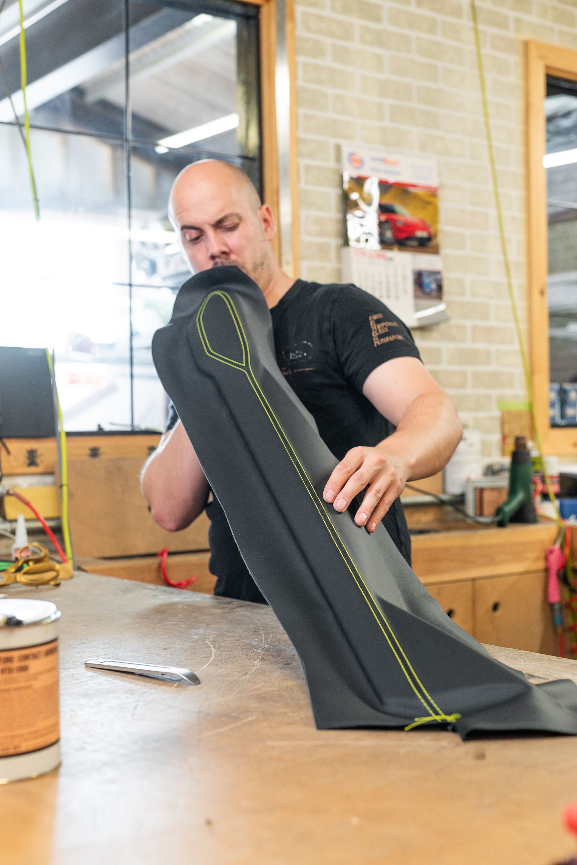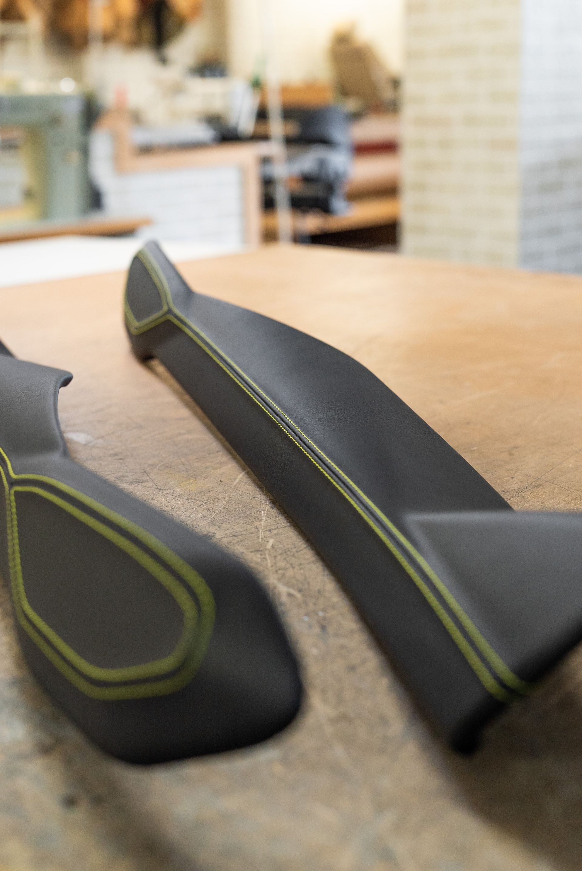 As stated above, our customer desired a like-for-like retrim, so that is exactly what was achieved. We've used OEM black nappa leather for a uniform finish with the rest of the interior. Due to the damaged plastic panels needing repairs, the old foams were also removed and replaced.