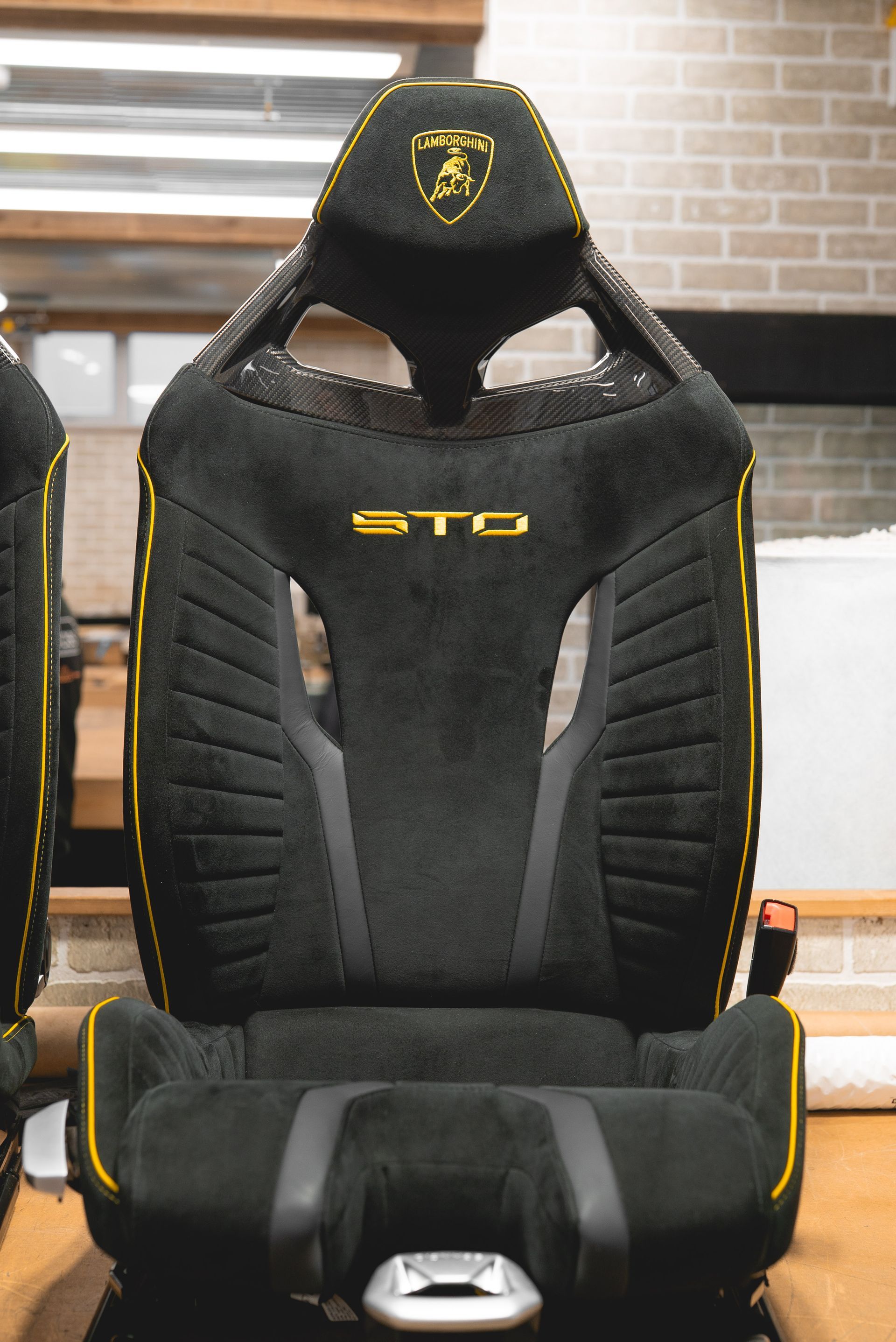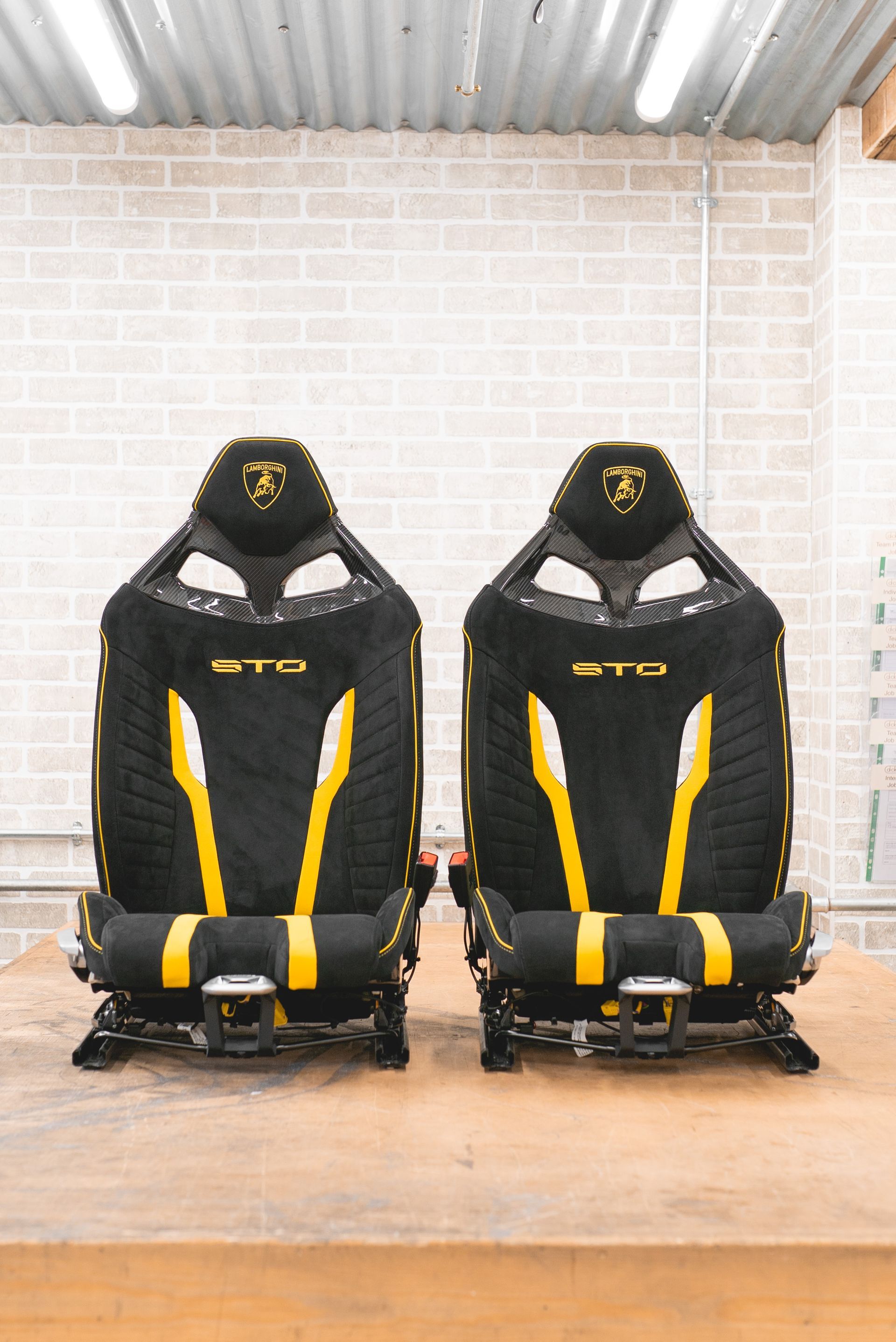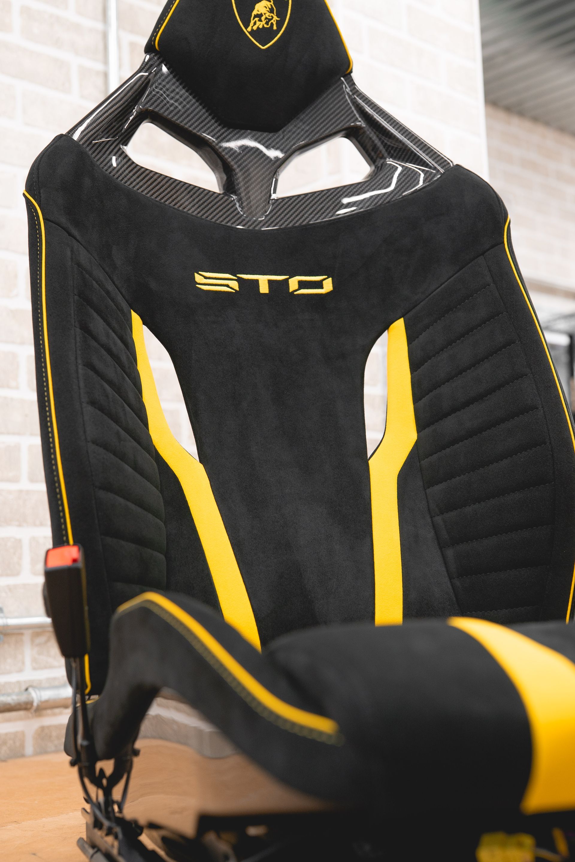 A new customer of ours got in touch via our website for an OEM+ seat retrim for their Lamborghini Huracan STO. The original seats come as standard with stripes up the middle of the seats in black leather. We were requested to change these for a more suitable yellow Alcantara to match the OEM piping and embroidery. Some hours later and we have a much improved set of seats which definitely look more Lamborghini-esque. Another happy customer.
