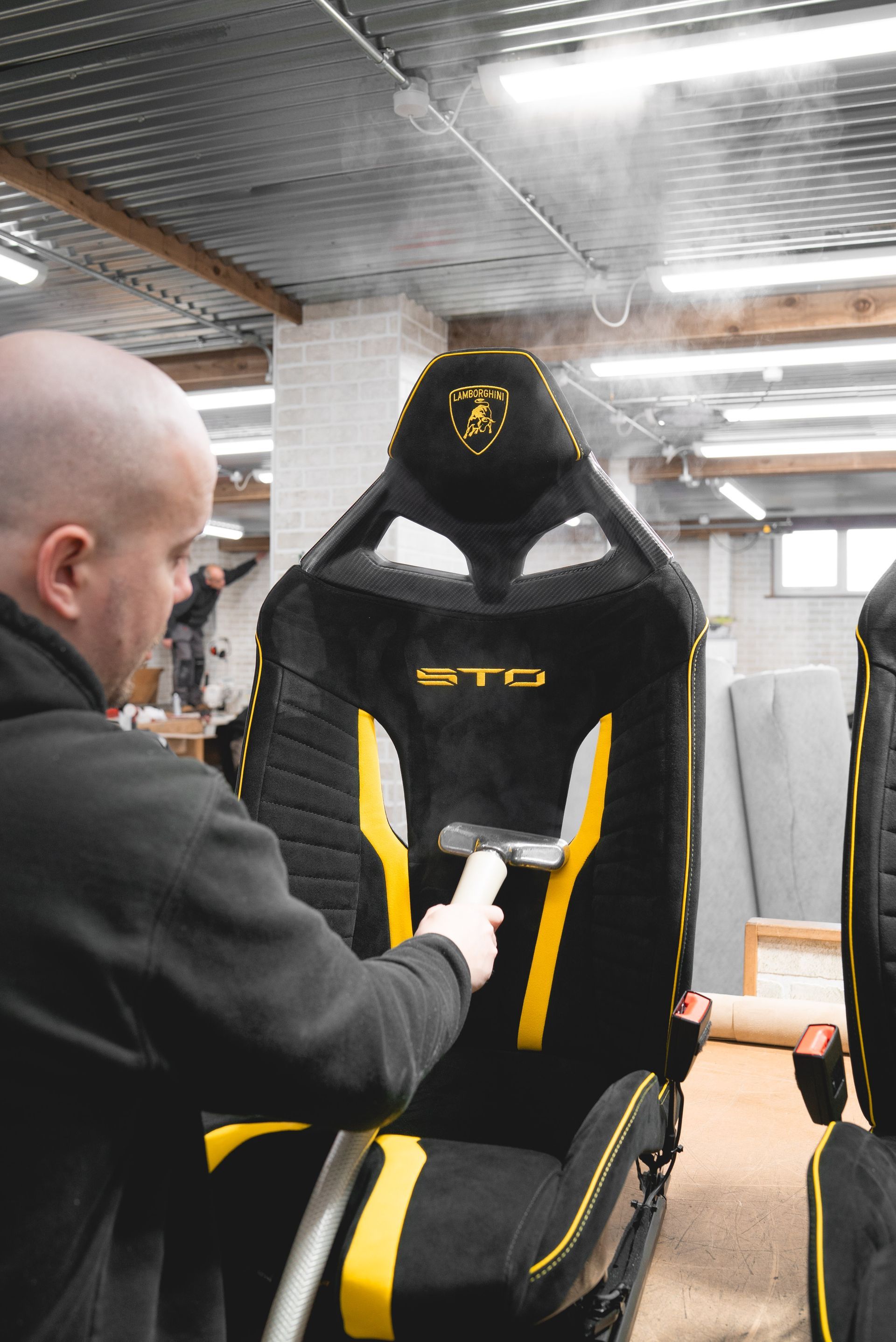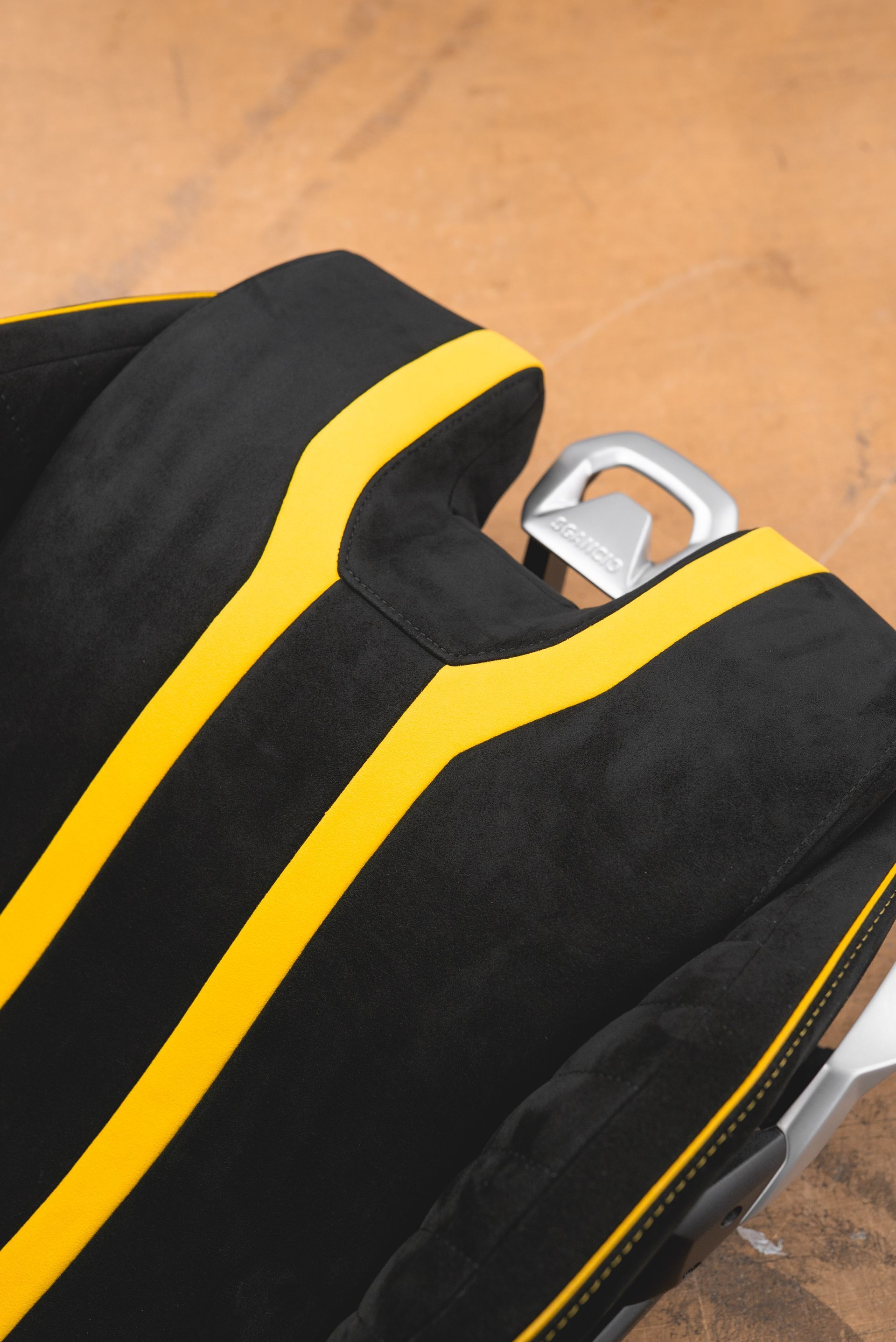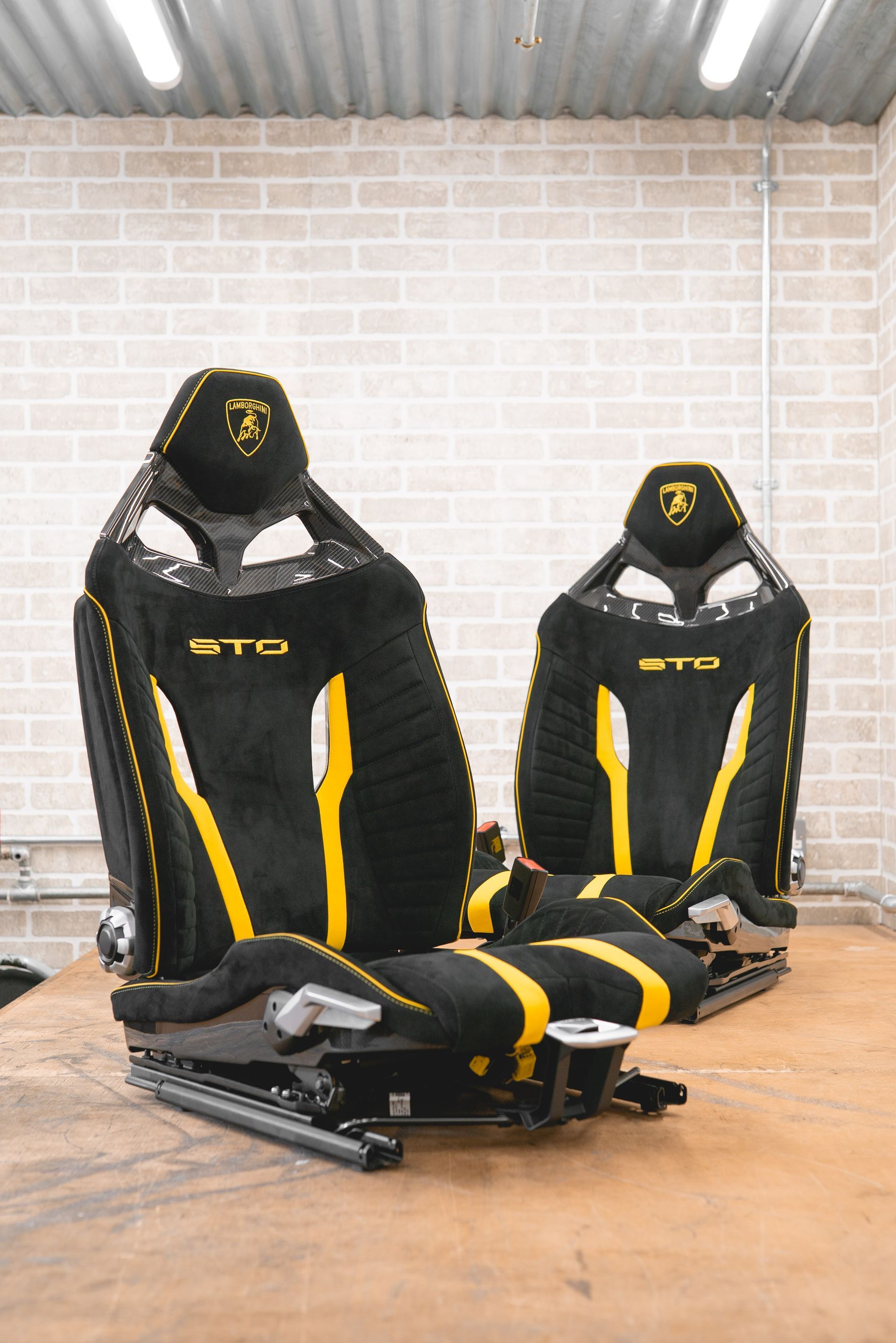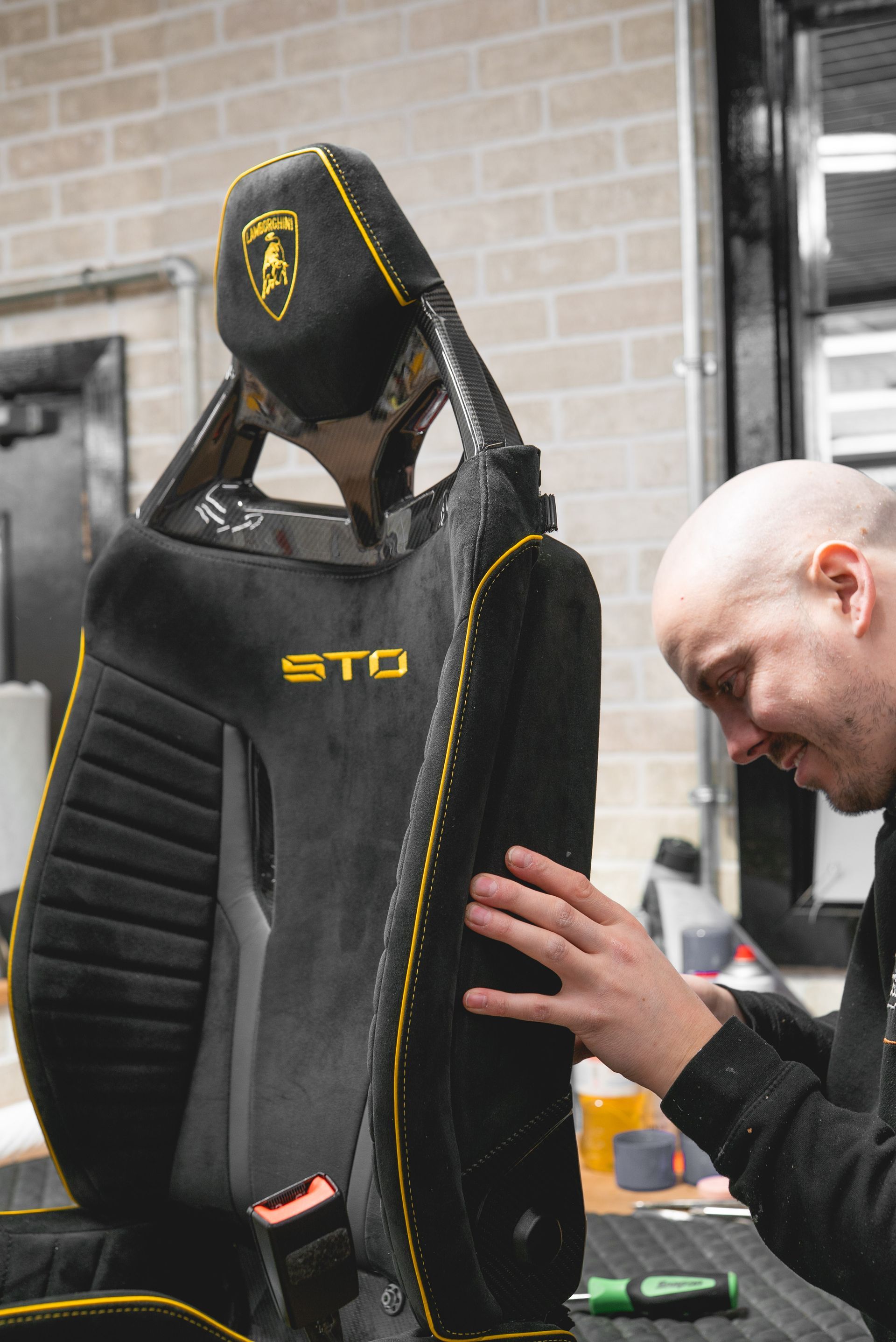 A new customer of ours got in touch via our website for an OEM+ seat retrim for their Lamborghini Huracan STO. The original seats come as standard with stripes up the middle of the seats in black leather. We were requested to change these for a more suitable yellow Alcantara to match the OEM piping and embroidery. Some hours later and we have a much improved set of seats which definitely look more Lamborghini-esque. Another happy customer.