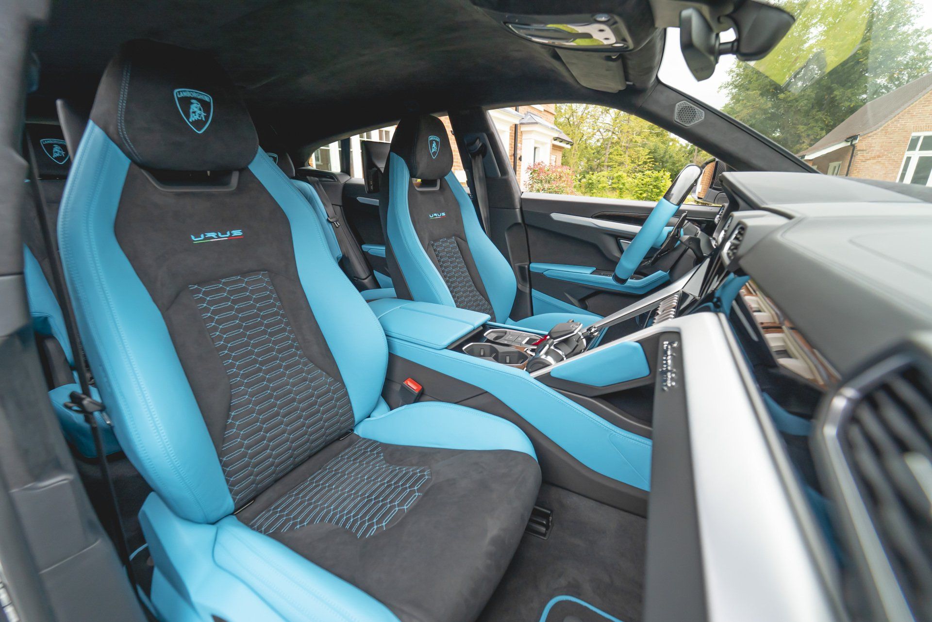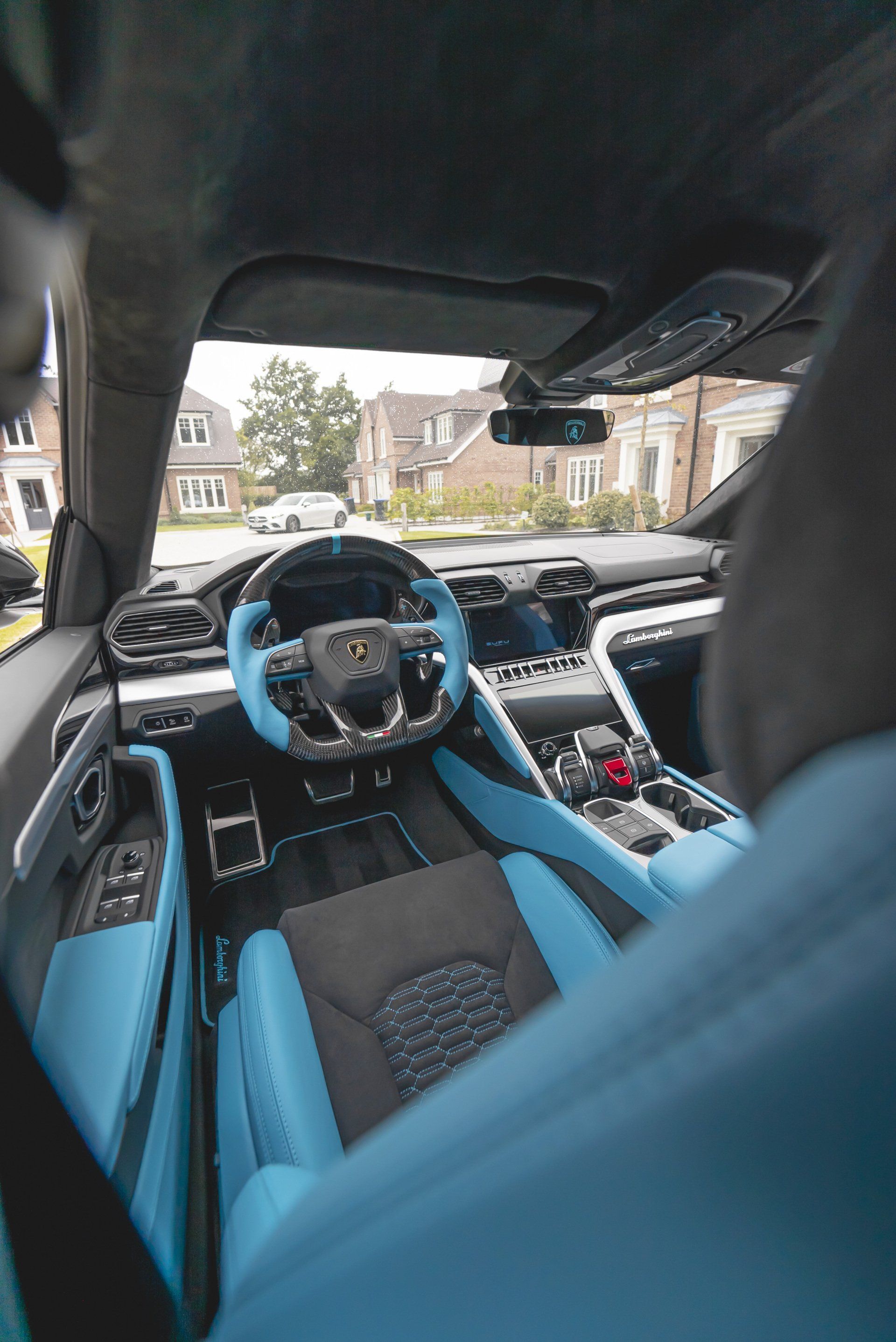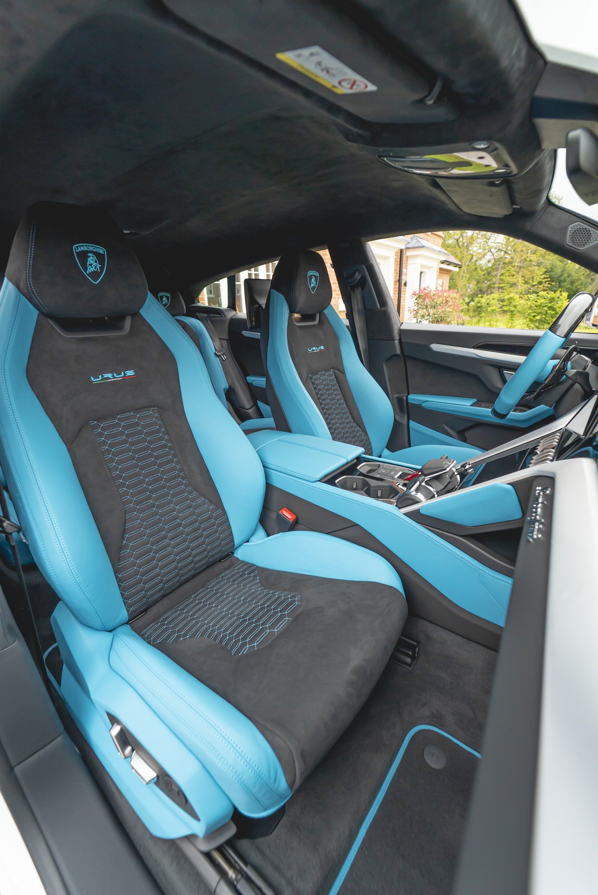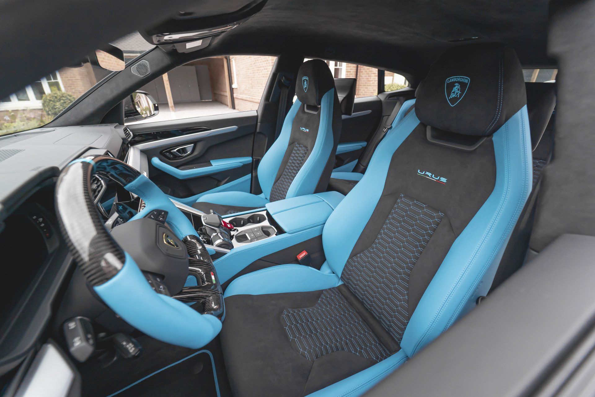 This brand new Urus came to us, working with one of our great customers @mr.o.j.a for a part interior retrim including front and rear seats, door card panels, overmats, centre console and more. The original black leather has been replaced with turquoise calf nappa and graphite Alcantara with matching turquoise stitching. @d:class autostitch created the seat centres with our OEM design services.