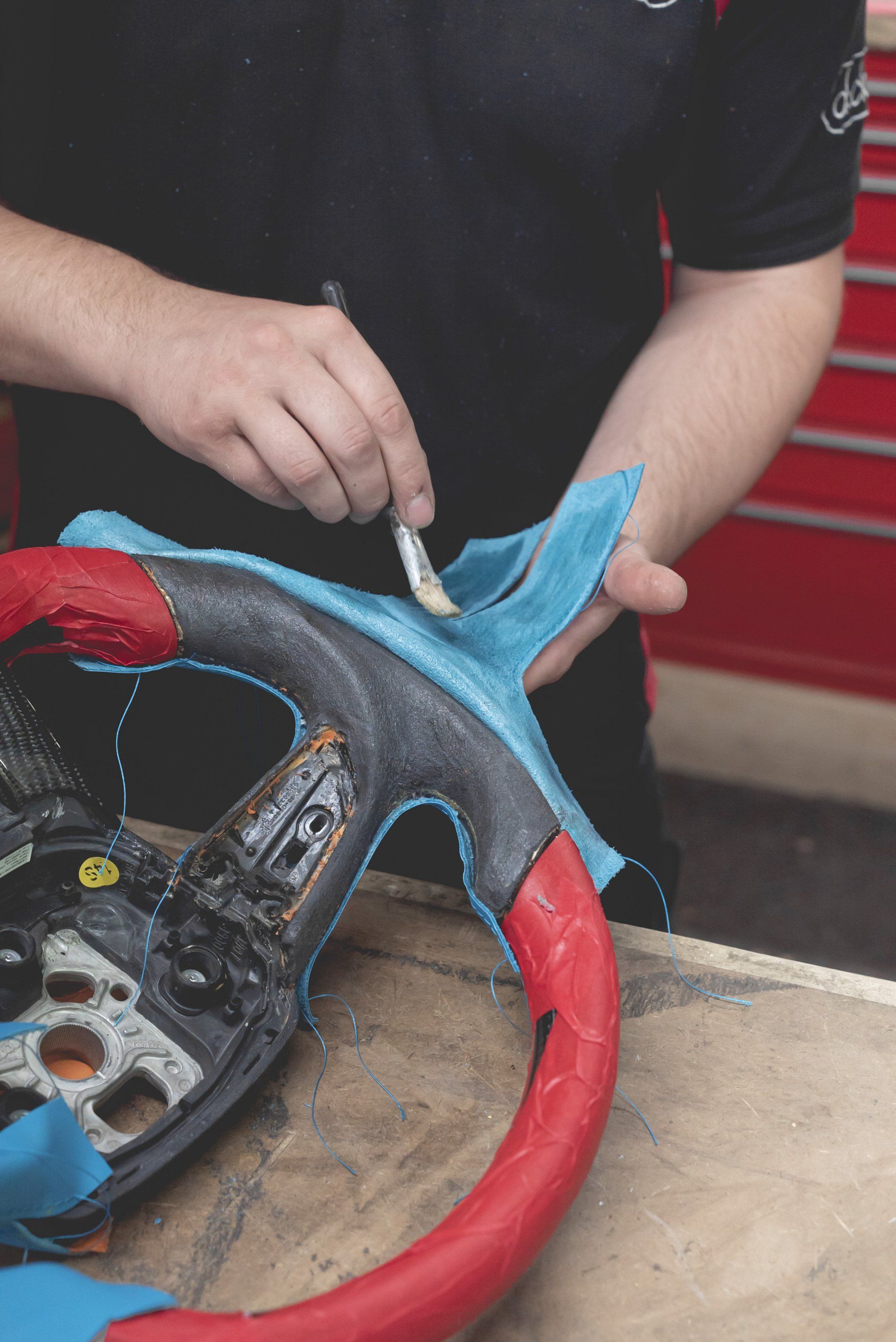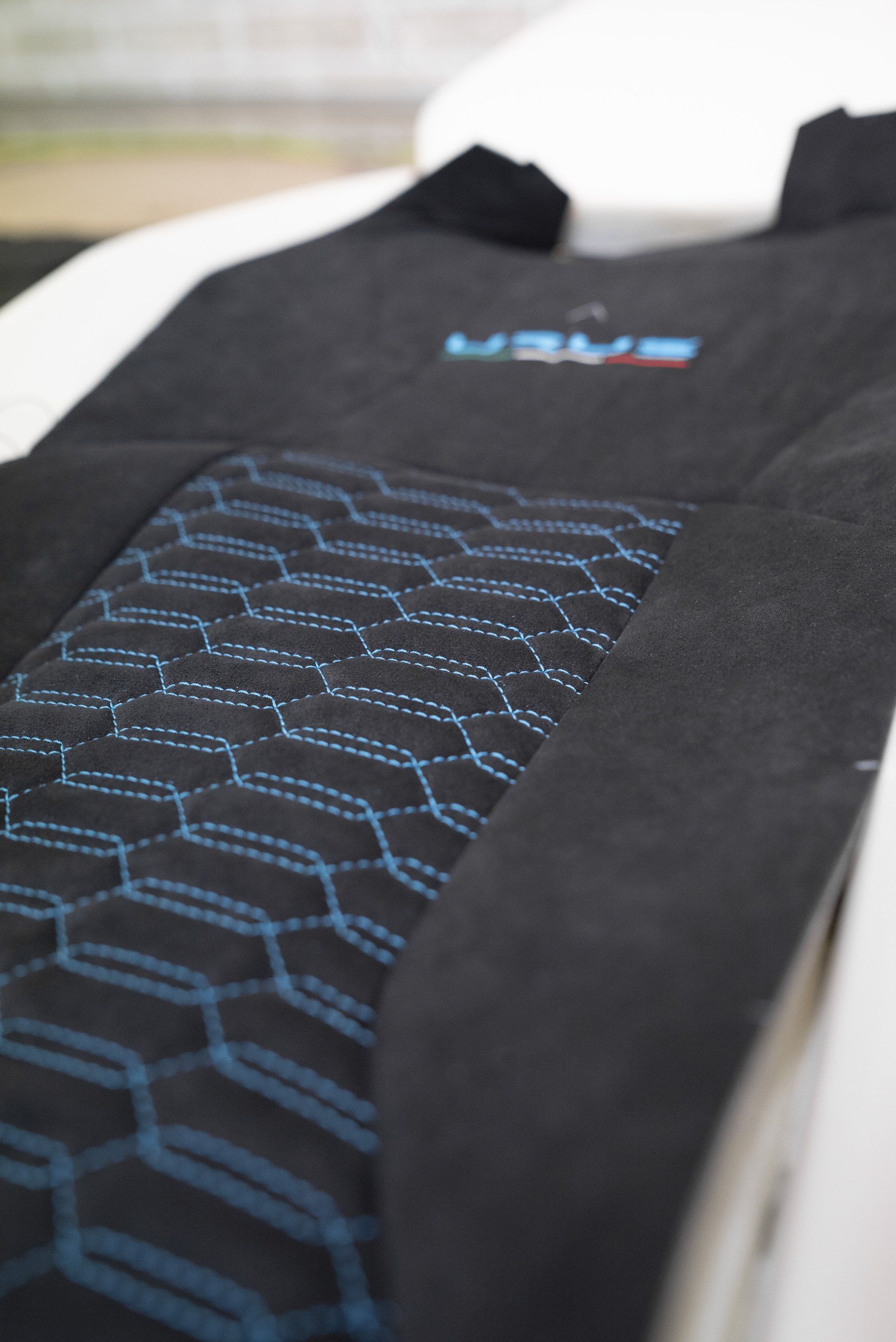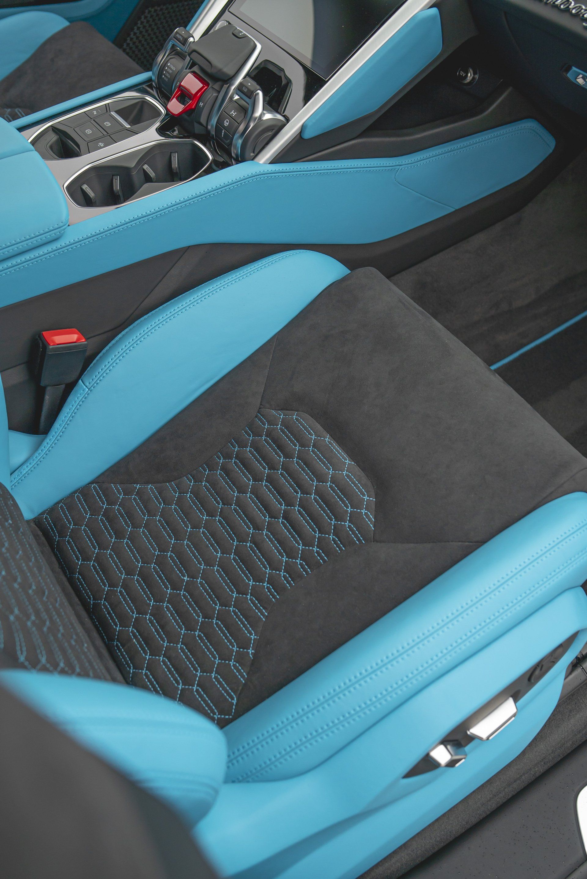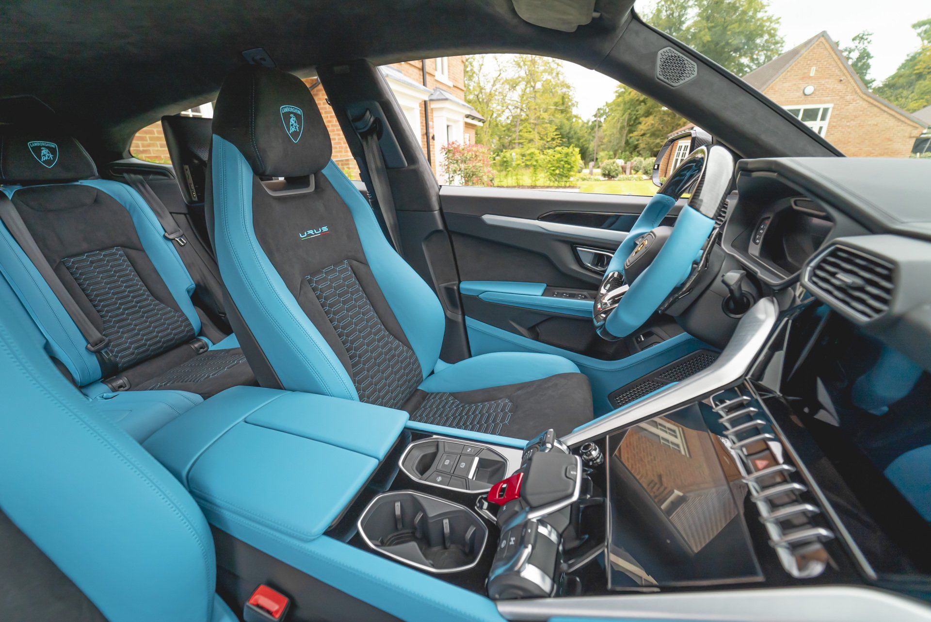 This brand new Urus came to us, working with one of our great customers @mr.o.j.a for a part interior retrim including front and rear seats, door card panels, overmats, centre console and more. The original black leather has been replaced with turquoise calf nappa and graphite Alcantara with matching turquoise stitching. @d:class autostitch created the seat centres with our OEM design services.