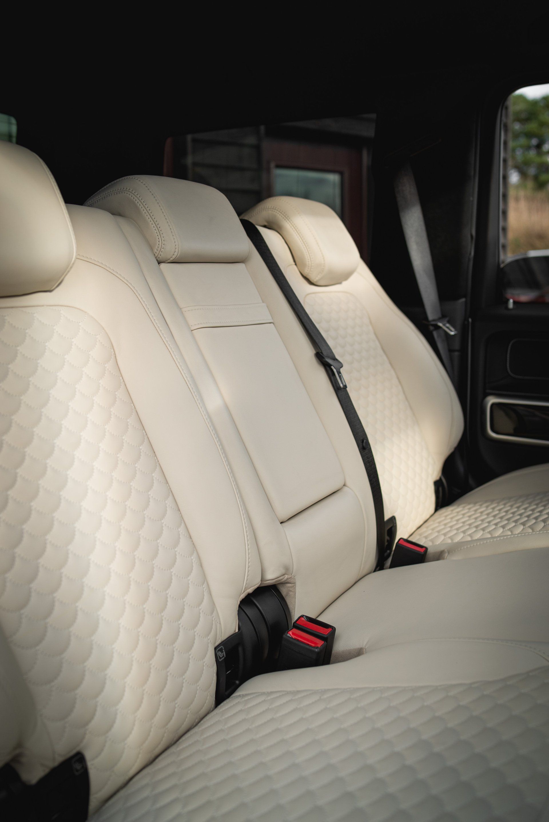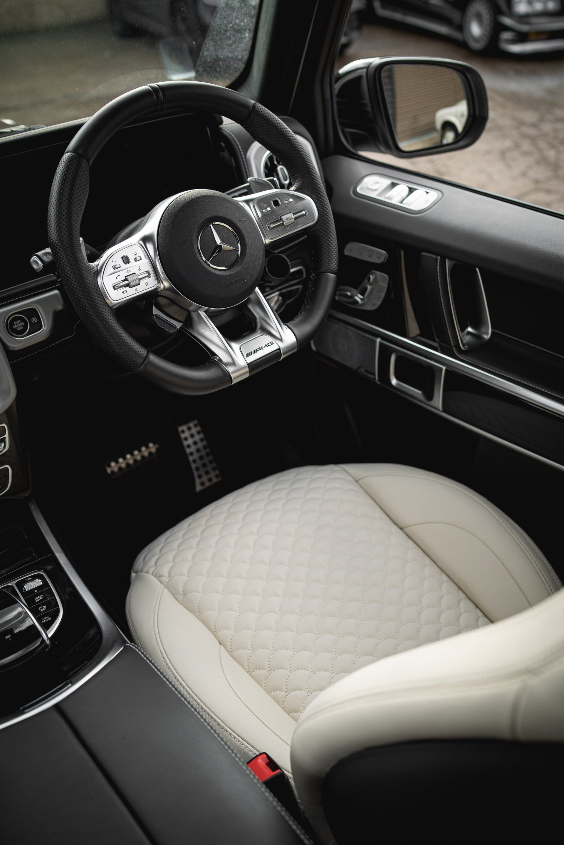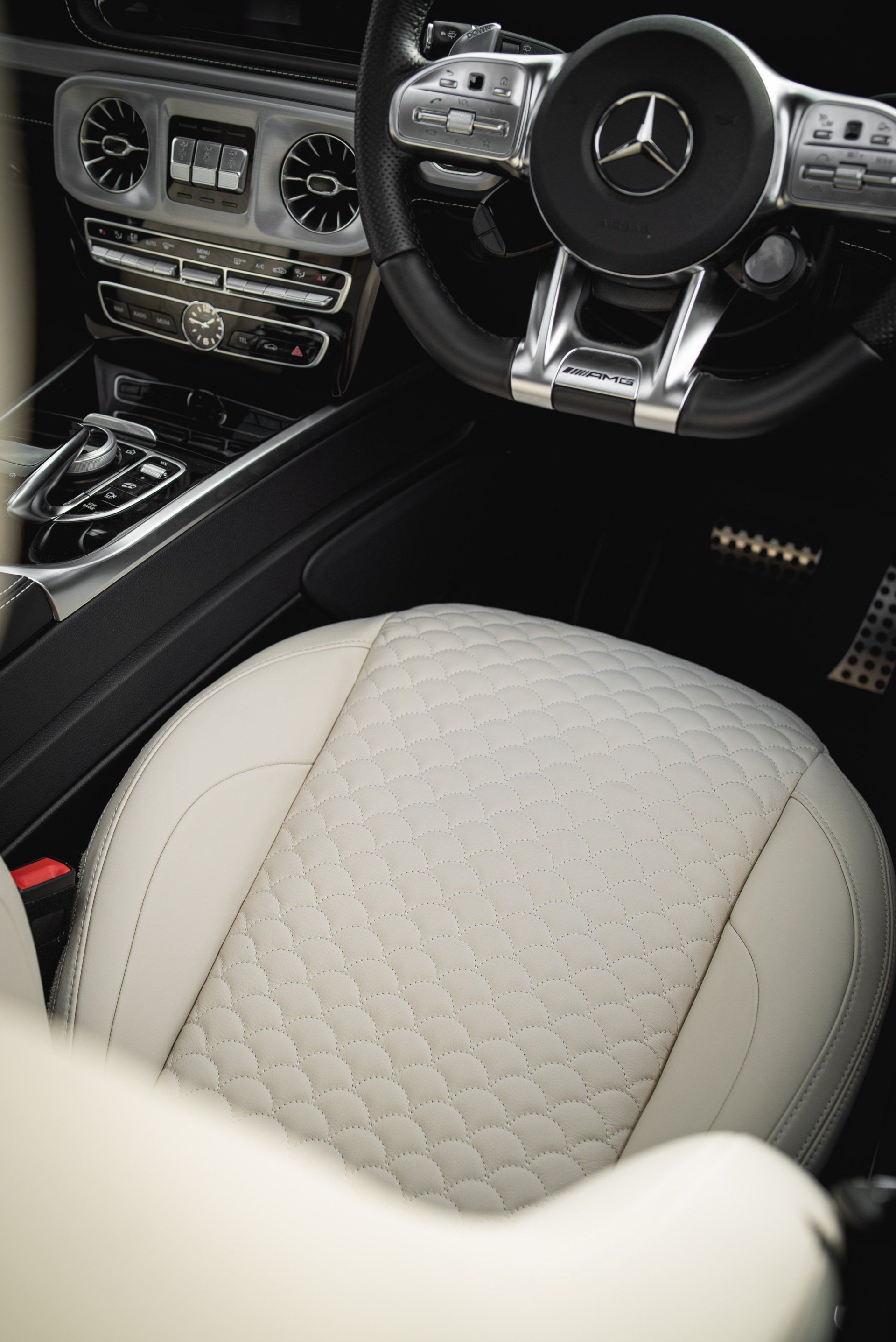 It is not everyday you see a Brabus edition Mercedes-Benz G-Class on the road, aka "G-Wagen", and this one received a bit of attention during it's time here at d:class HQ. Our customer brought their vehicle to us requesting the factory black nappa leather to be retrimmed with ivory nappa leather. The perforated centres were dropped and replaced with AMG inspired stitching, created by our sister company d:class autostitch on our very fancy CNC stitching and perforating machine.