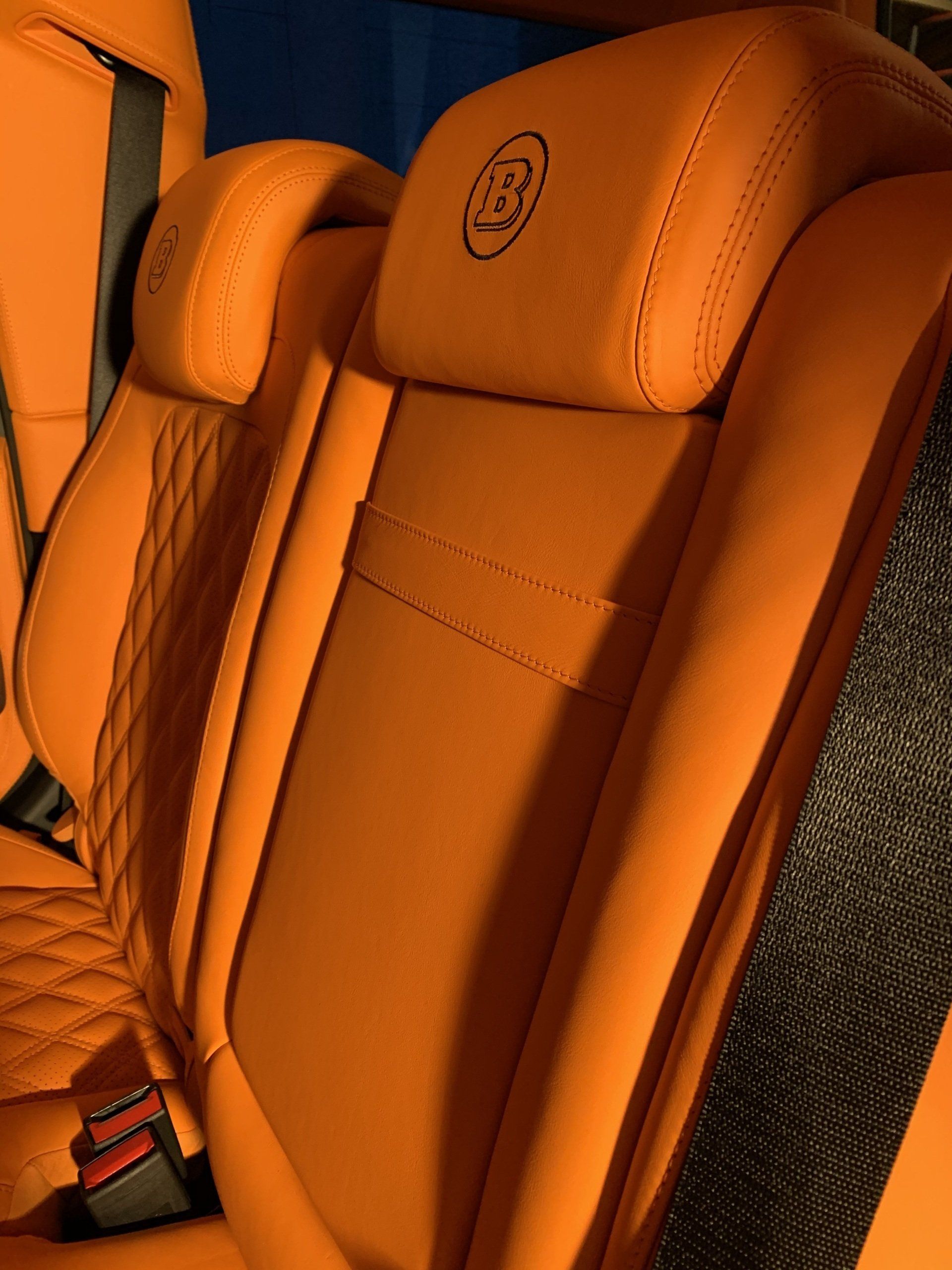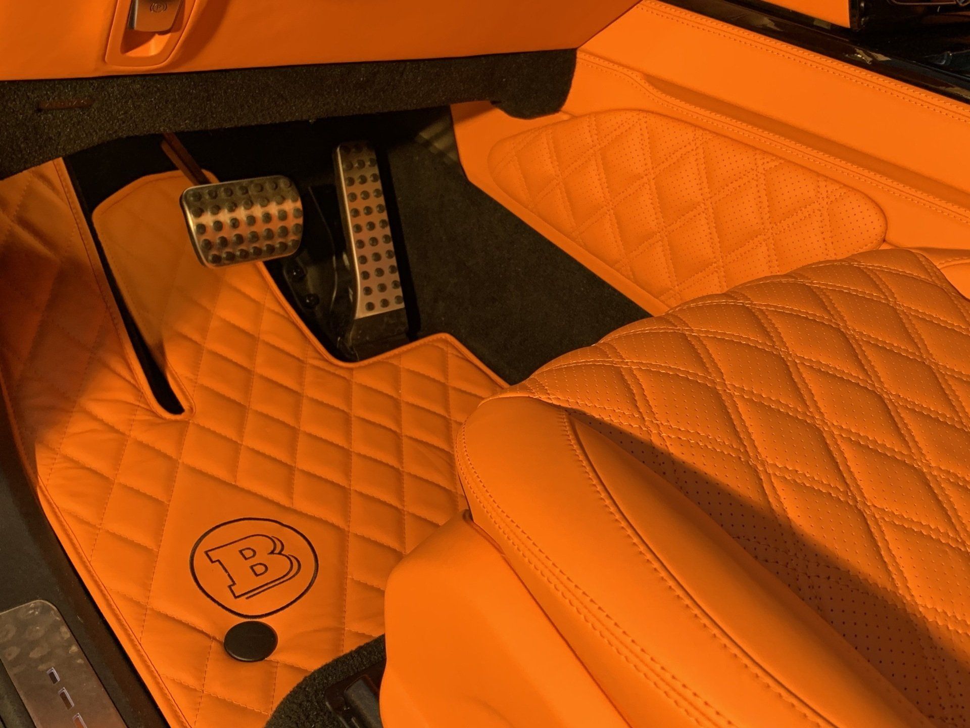 Starting off with the seats, both front and rear seats have been retrimmed in orange Autocalf nappa leather and perforated centres with twin diamond quilting. Matching orange thread has been used for the stitching. Keeping to the quilting theme, the headliner has a huge centre panel with the same design. The rest of the headliner and pillars are again smothered in orange nappa leather. Centre armrest, dashboard, under dashboard, floor mats and even grab handles have all been retrimmed.