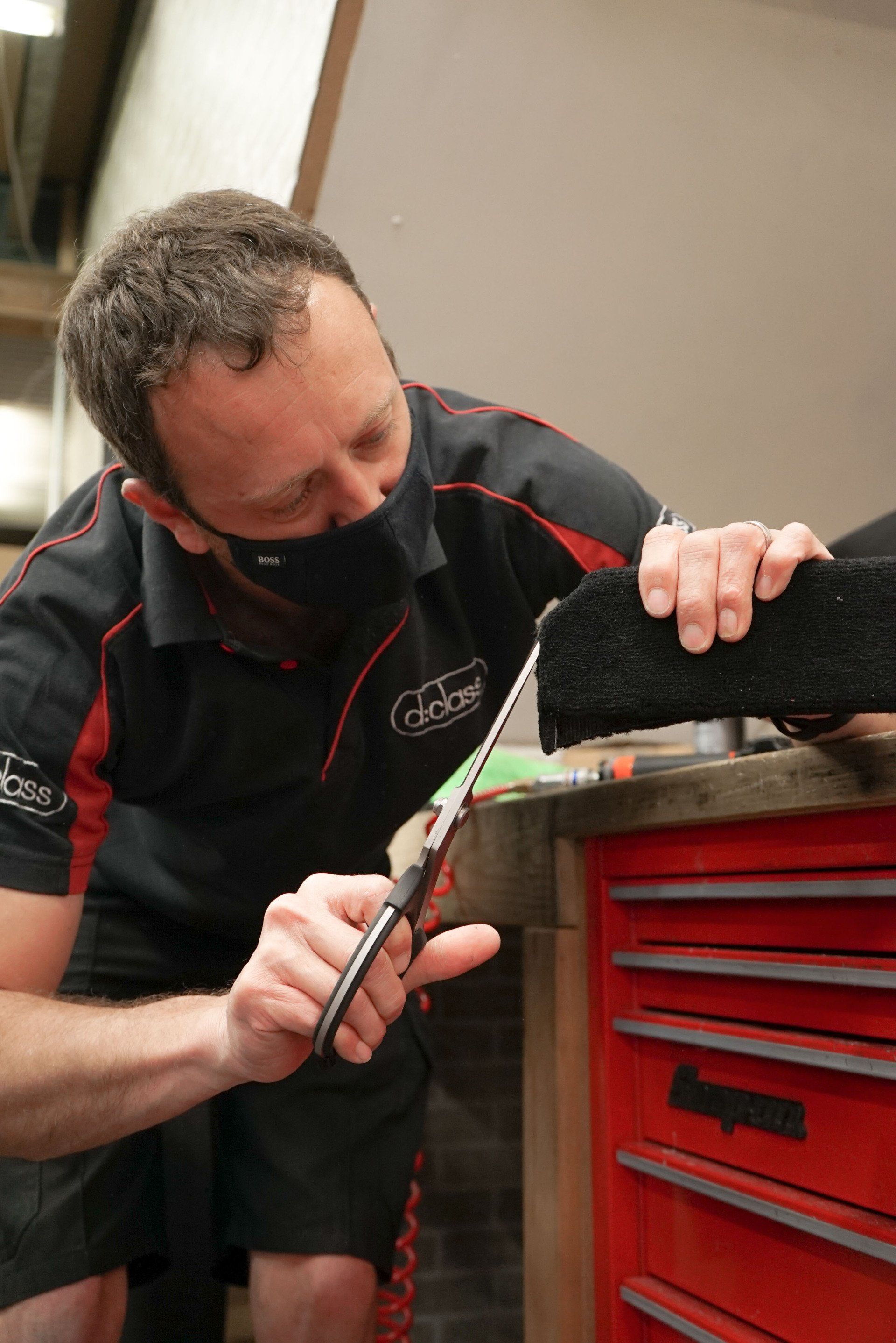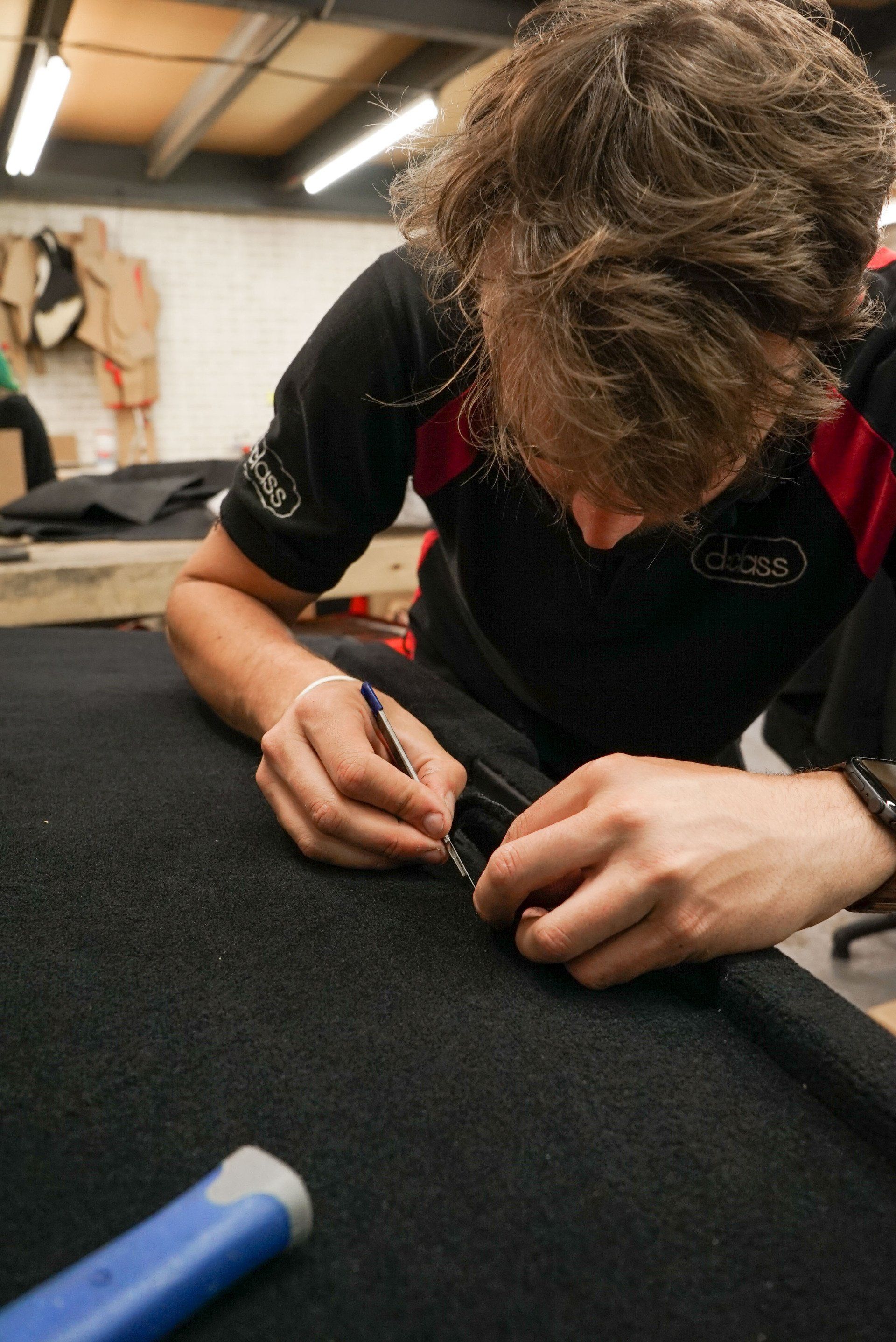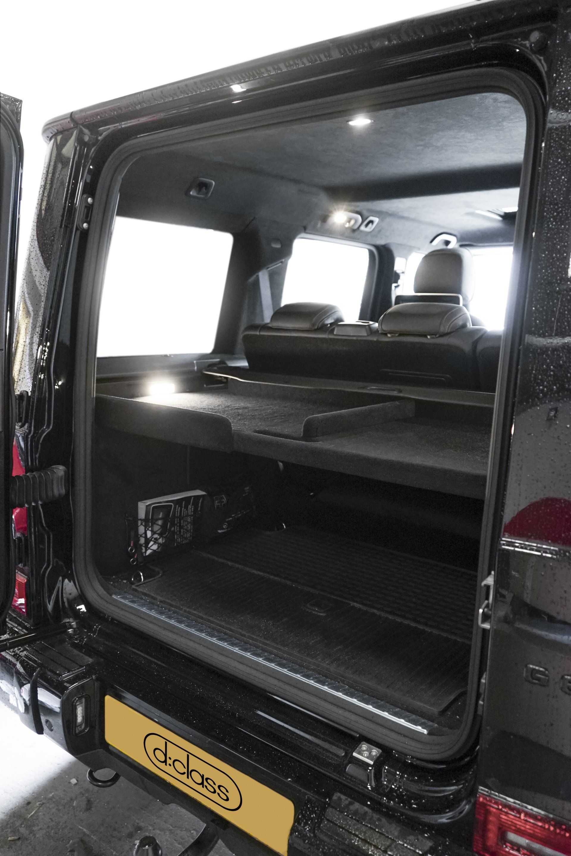 It is not always full retrims and restorations here at d:class, sometimes it's about making totally unique and bespoke items. Today for example we have this Mercedes-Benz G Wagon, the customer wanted a durable and sturdy parcel shelf to double as a safe place to situate their dog carry case. We took measurement of the carry case dimensions and fabricated this piece from scratch to ensure no wiggle room. Rear passenger seats are no obstructed and still function as they should.