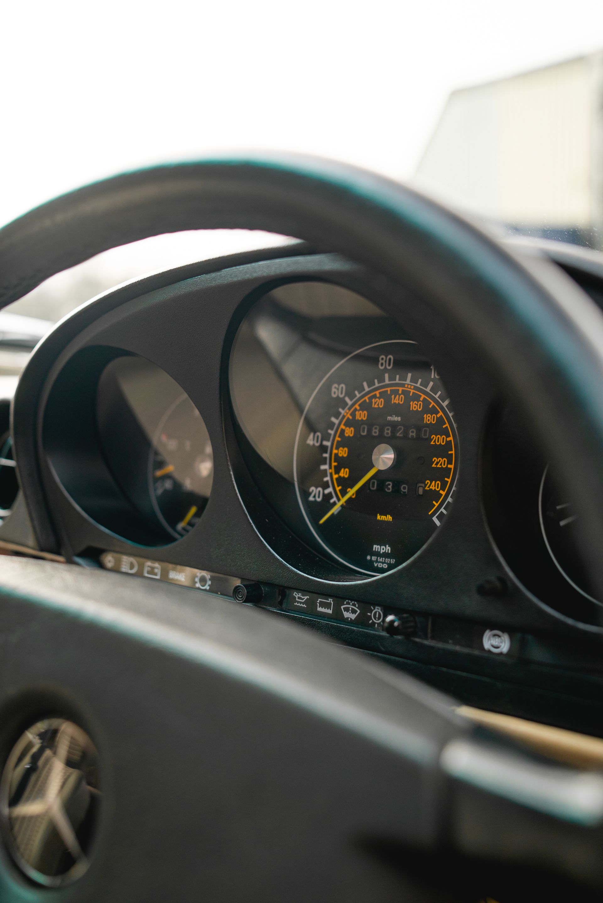 Another previous d:class project to come back to through our gates is this outstanding example of a Mercedes-Benz R107. This vehicle is about as concourse as it gets, winning multiple awards over the years. Our customer lives quite far away and arranged to pop by, so we gave the vehicle a mini photoshoot. d:class had the pleasure of fitting a new hood to this R107 6 years ago and as you can see, it still looks brand new. Our customer takes the utmost care of his cars, and this is a testament to that. The interior is entirely original, and as Mercedes-Benz specialists, we were fascinated by it.