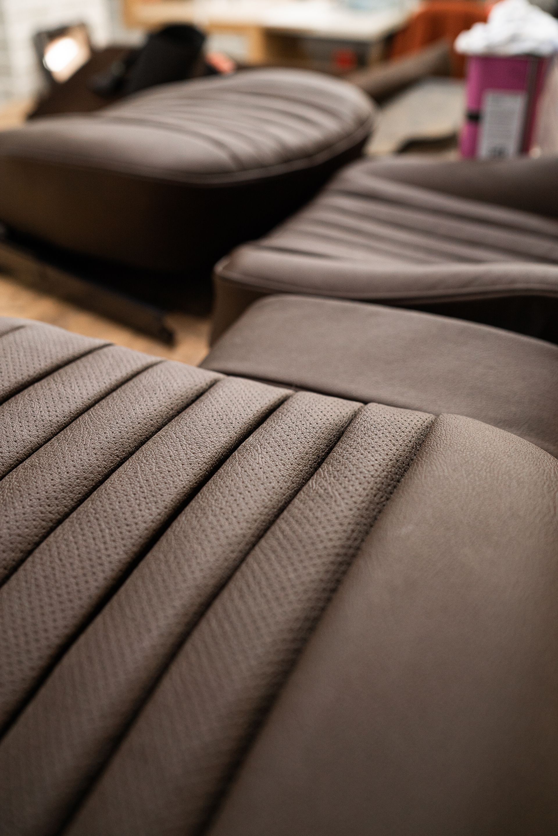 Following the customer's selection of the preferred material, we assign our extremely skilled staff the tasks of disassembling the seats, creating new patterns from scratch, sewing them all together, adding new foams to the seat centre flutes, fitting the covers, and meticulously reinstalling the seats into the vehicle.
