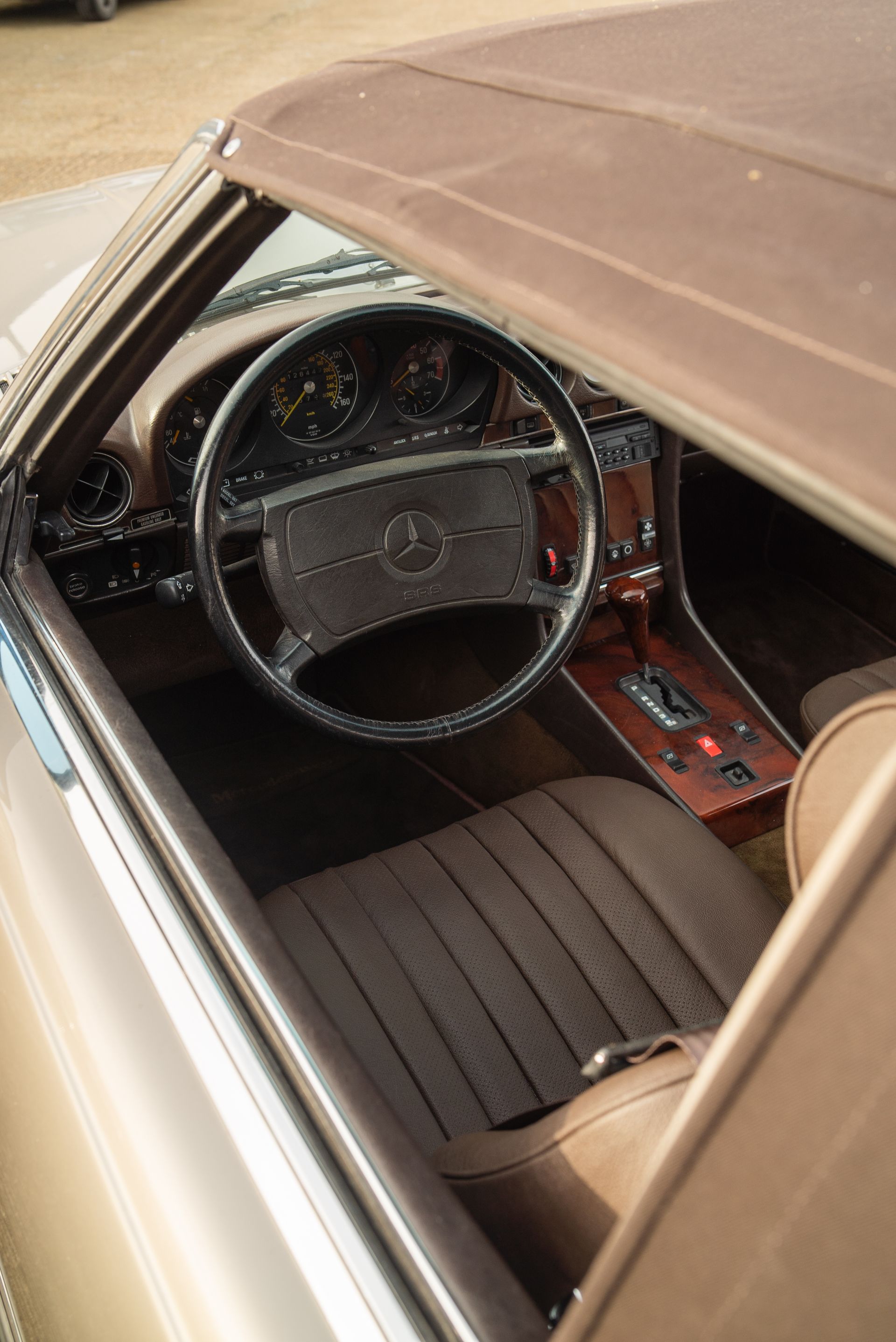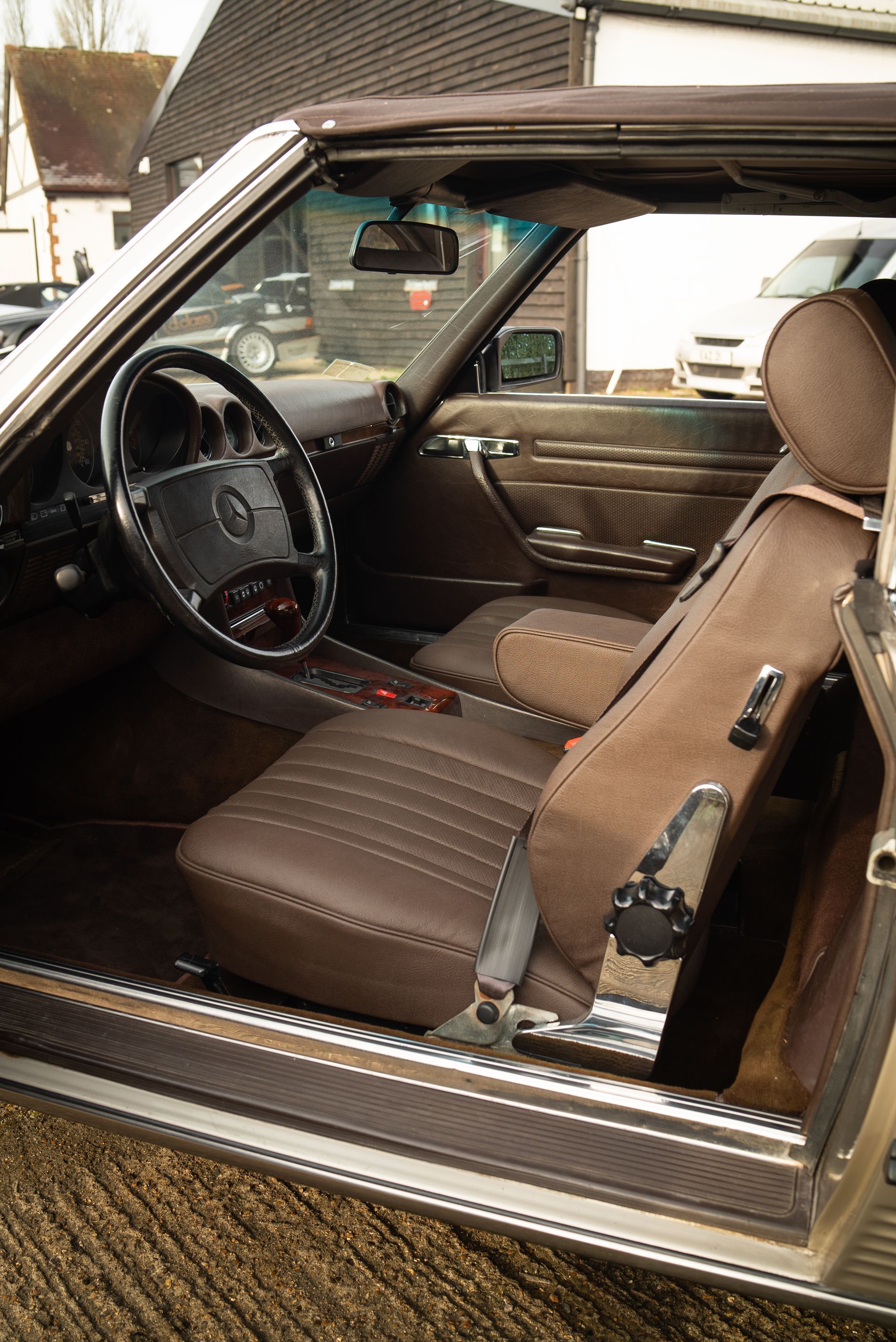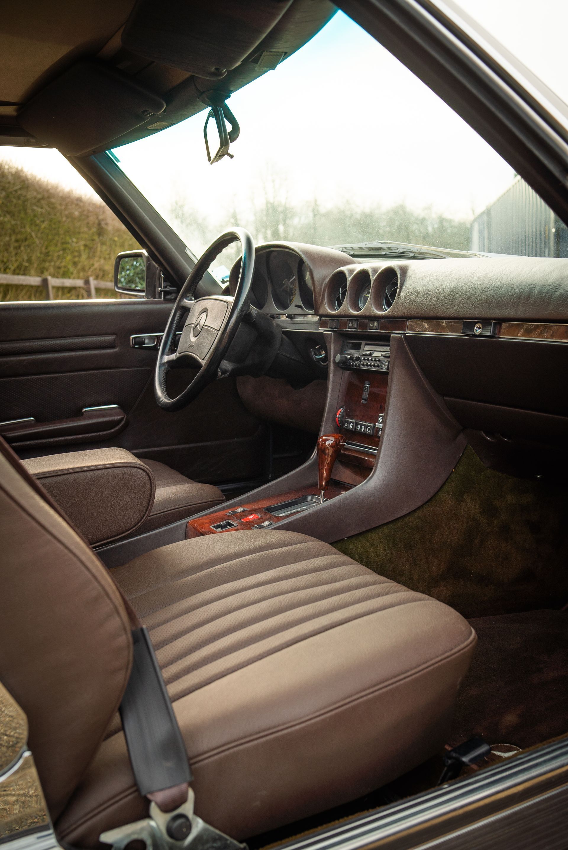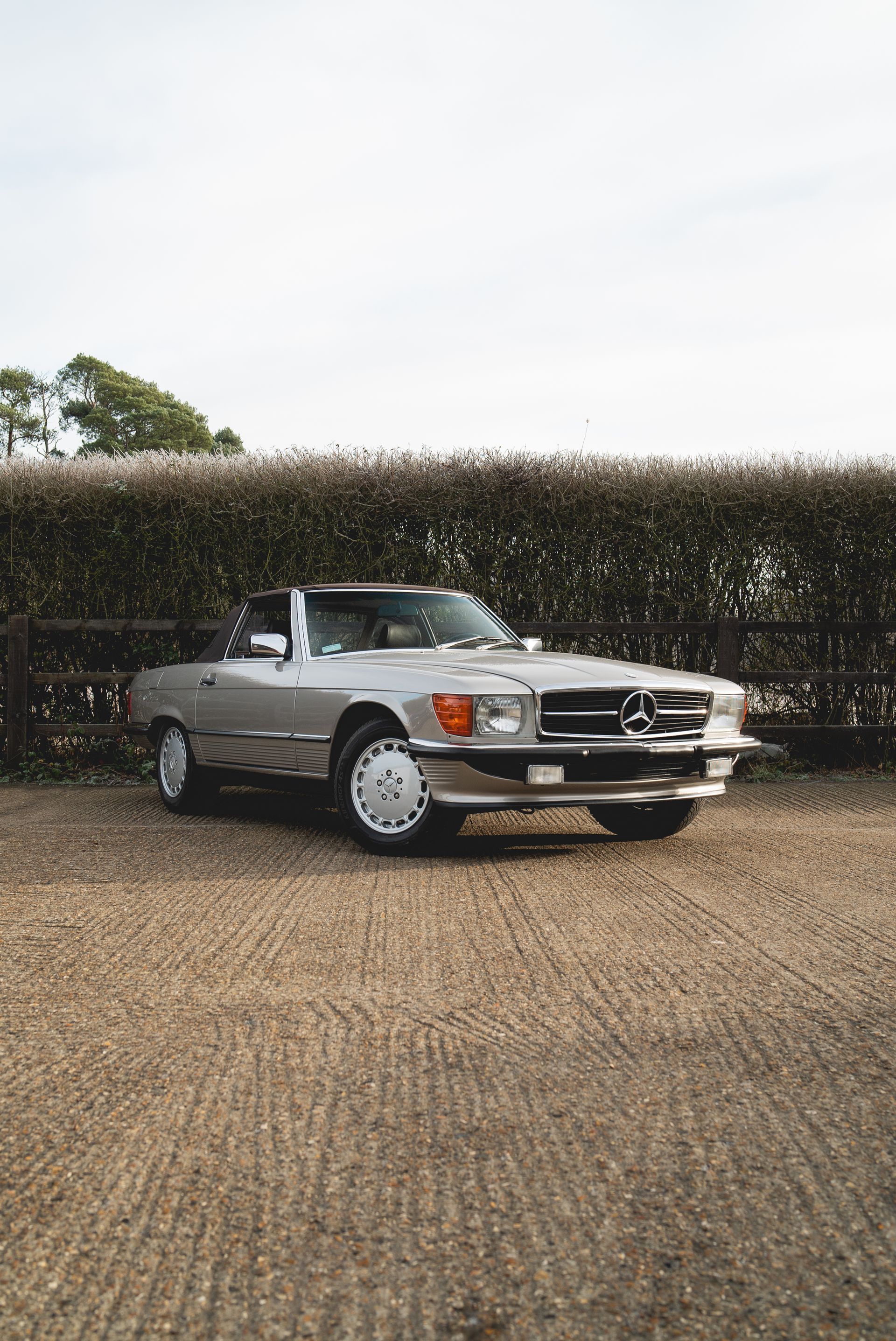 This Mercedes-Benz R107 was originally from the USA, but has been brought over to the UK, had the headlights replaced, and recently received a fresh respray.