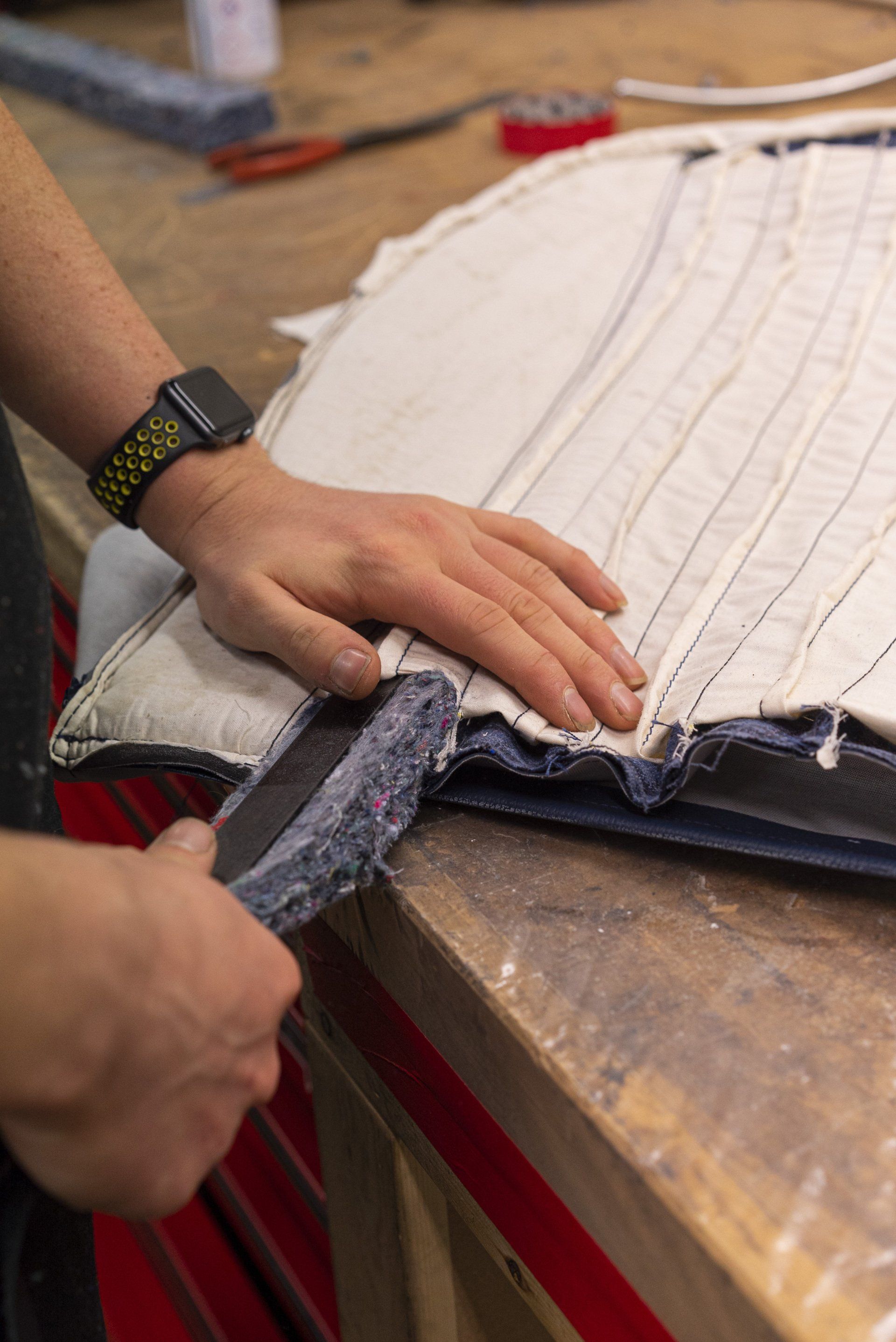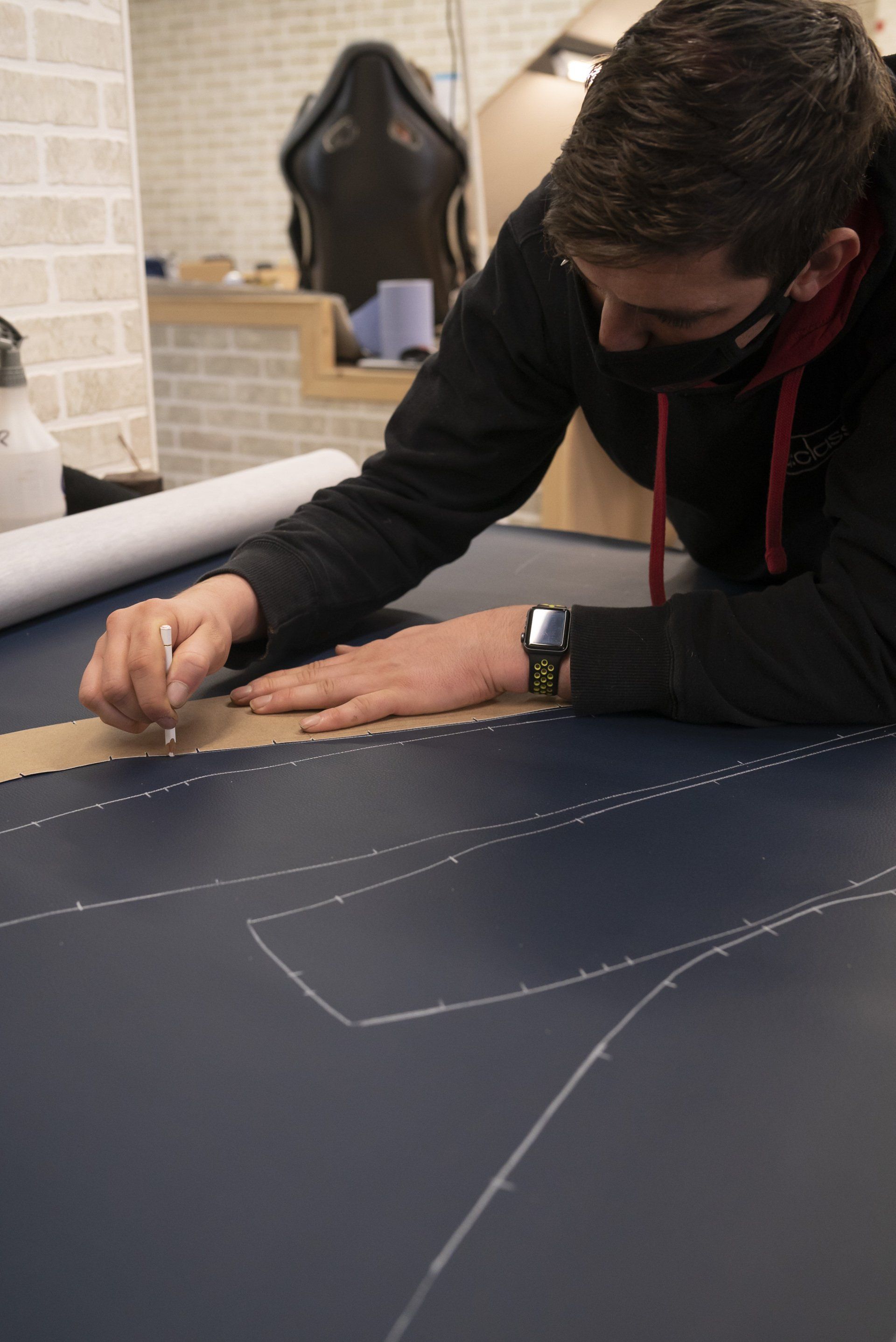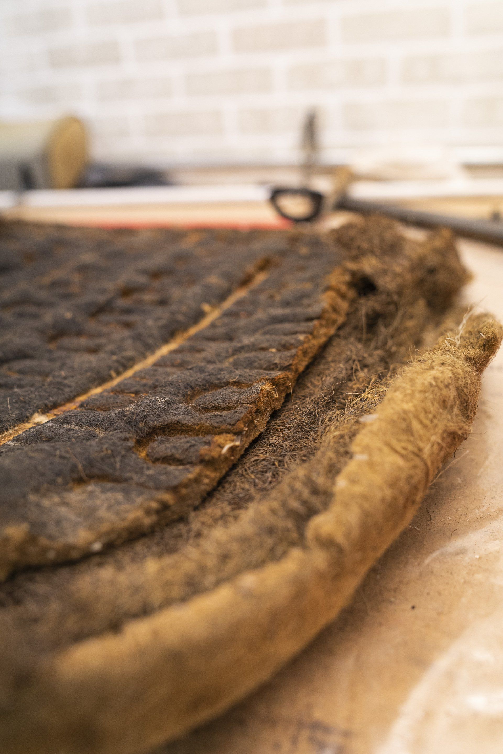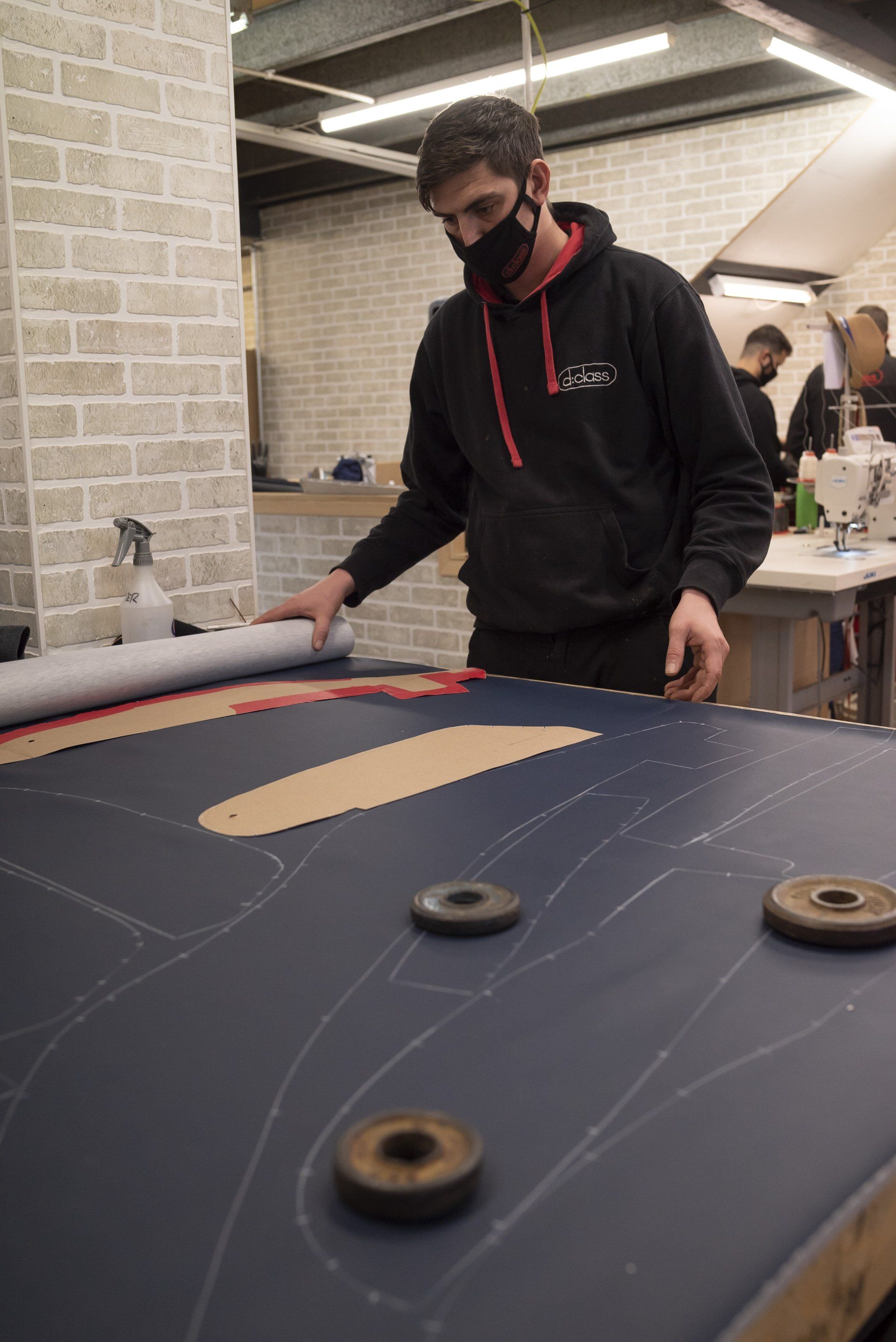 A set of Mercedes-Benz R107 seats and door cards. As you can see by the photographs these seats were in desperate need of a retrim. Mismatching vinyl, collapsed seat foams, rusty seat frames and warped door cards are some of the reasons why this vehicle received some d:class treatment. Blue Karo sports check supplied by @dclassautoshop.