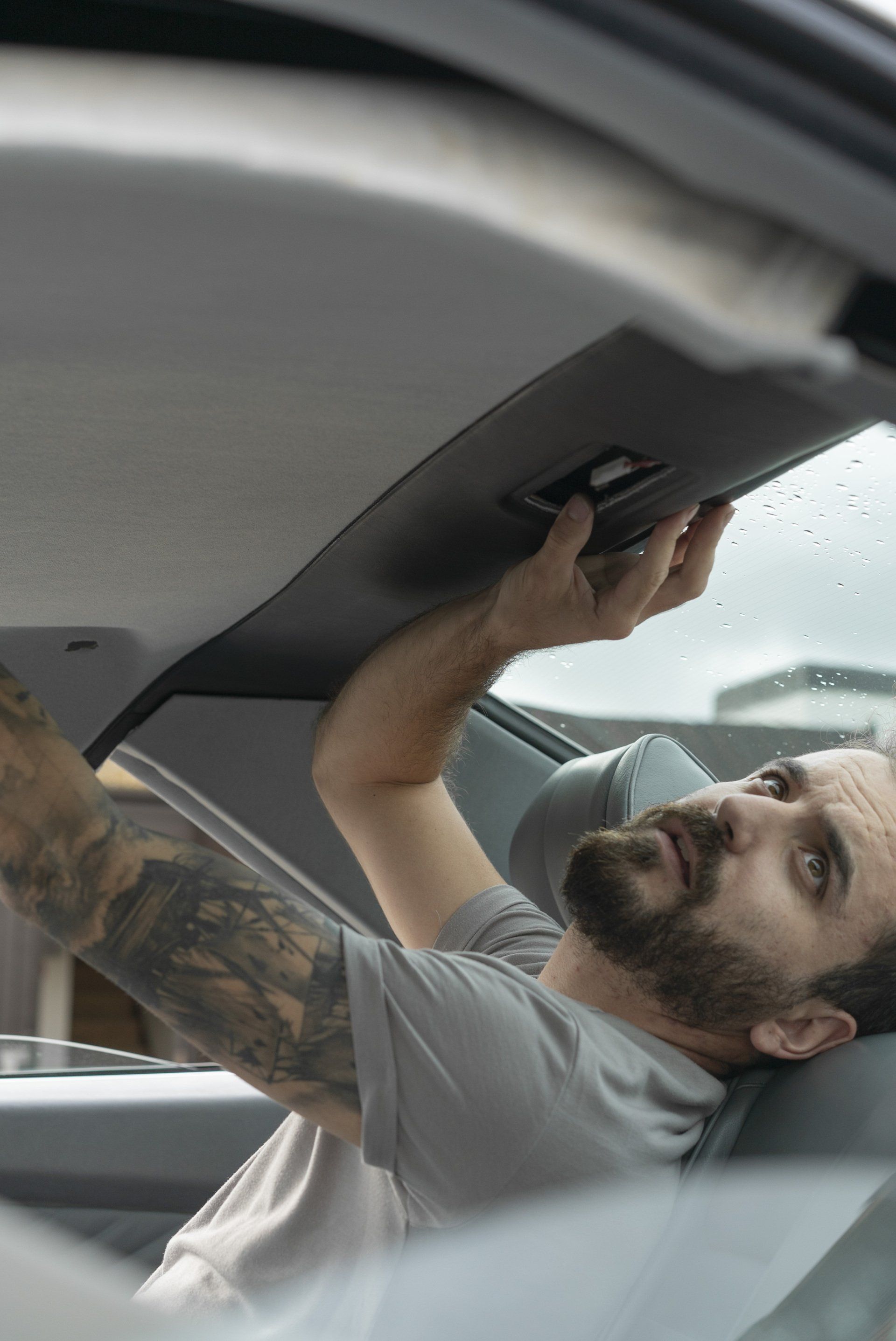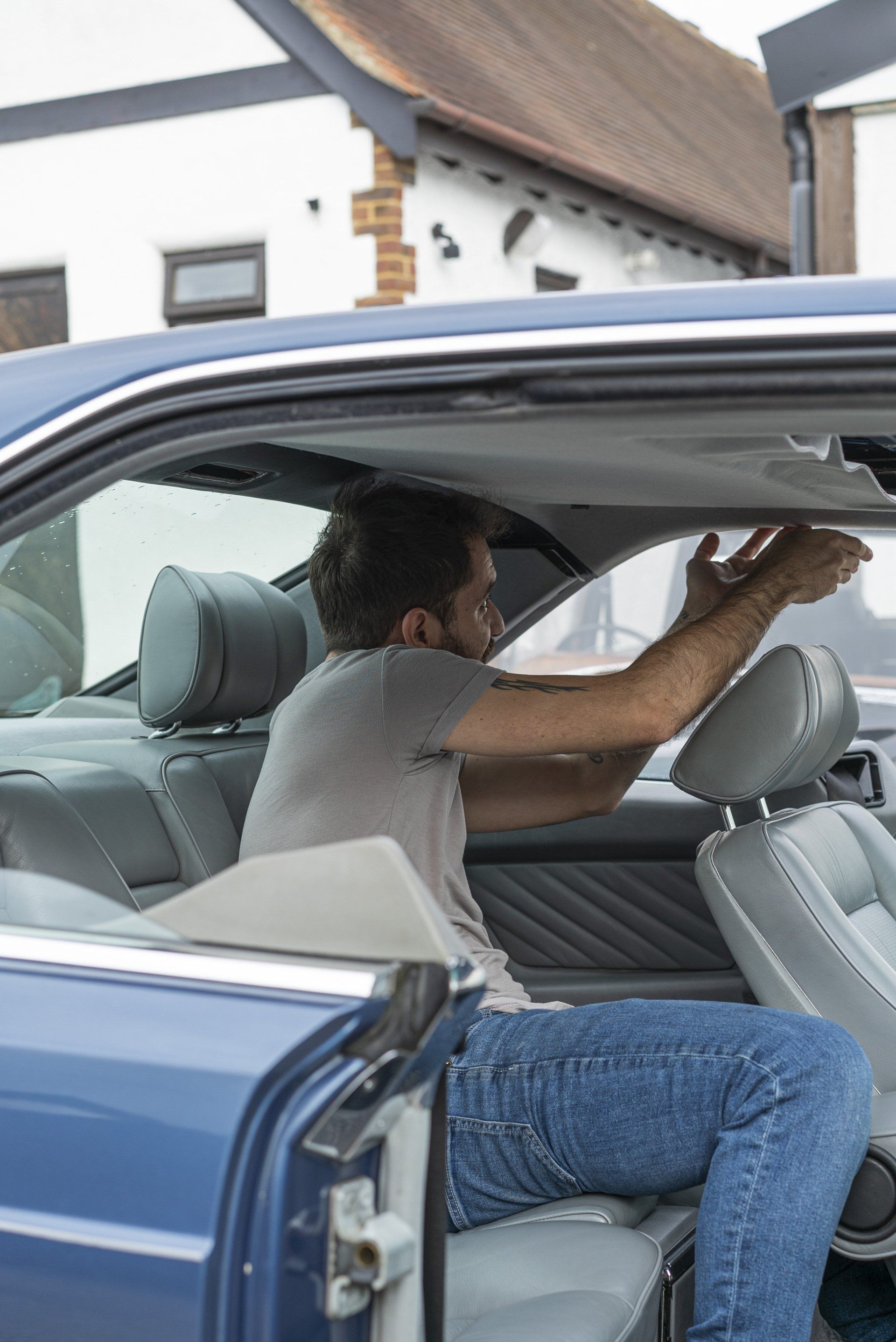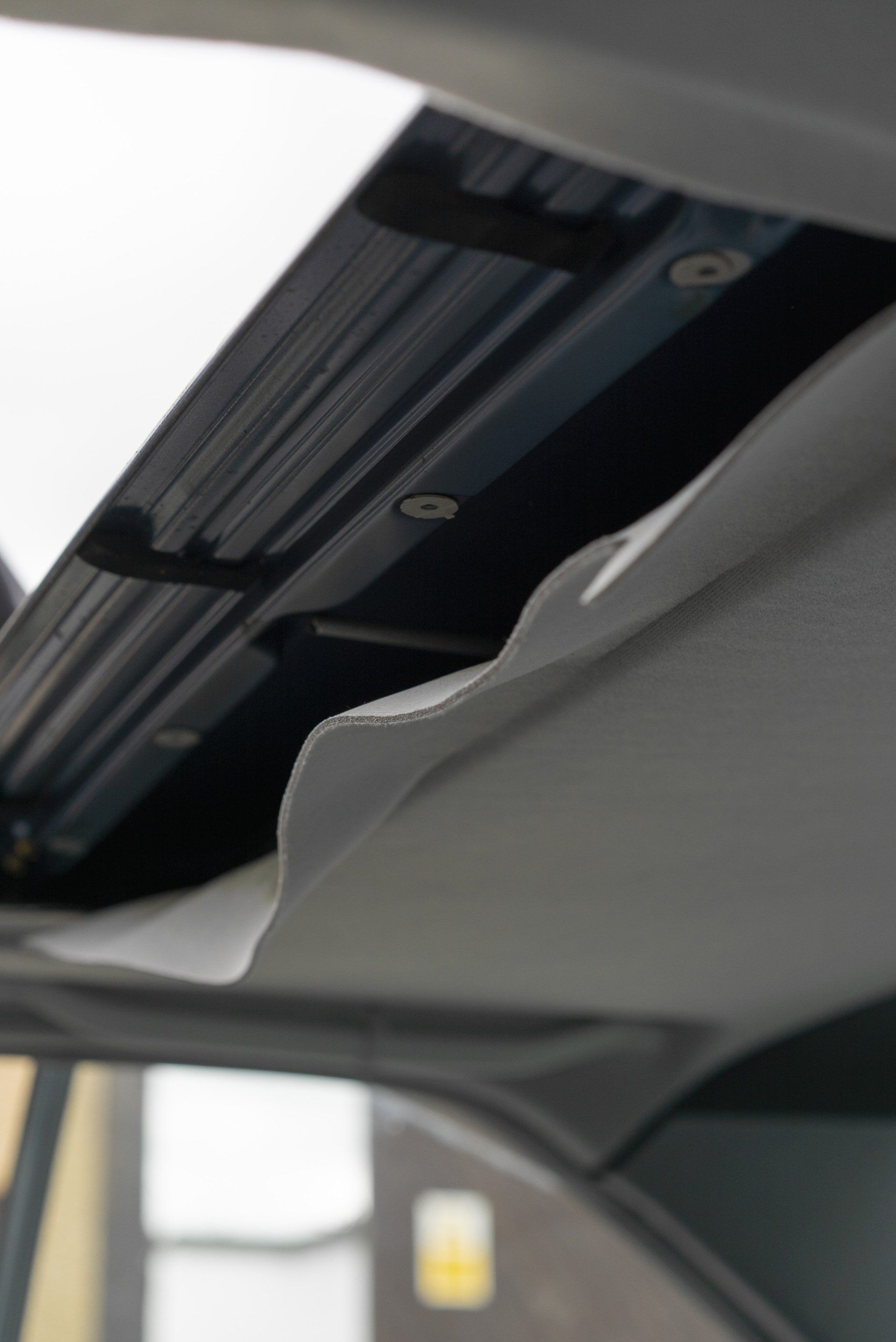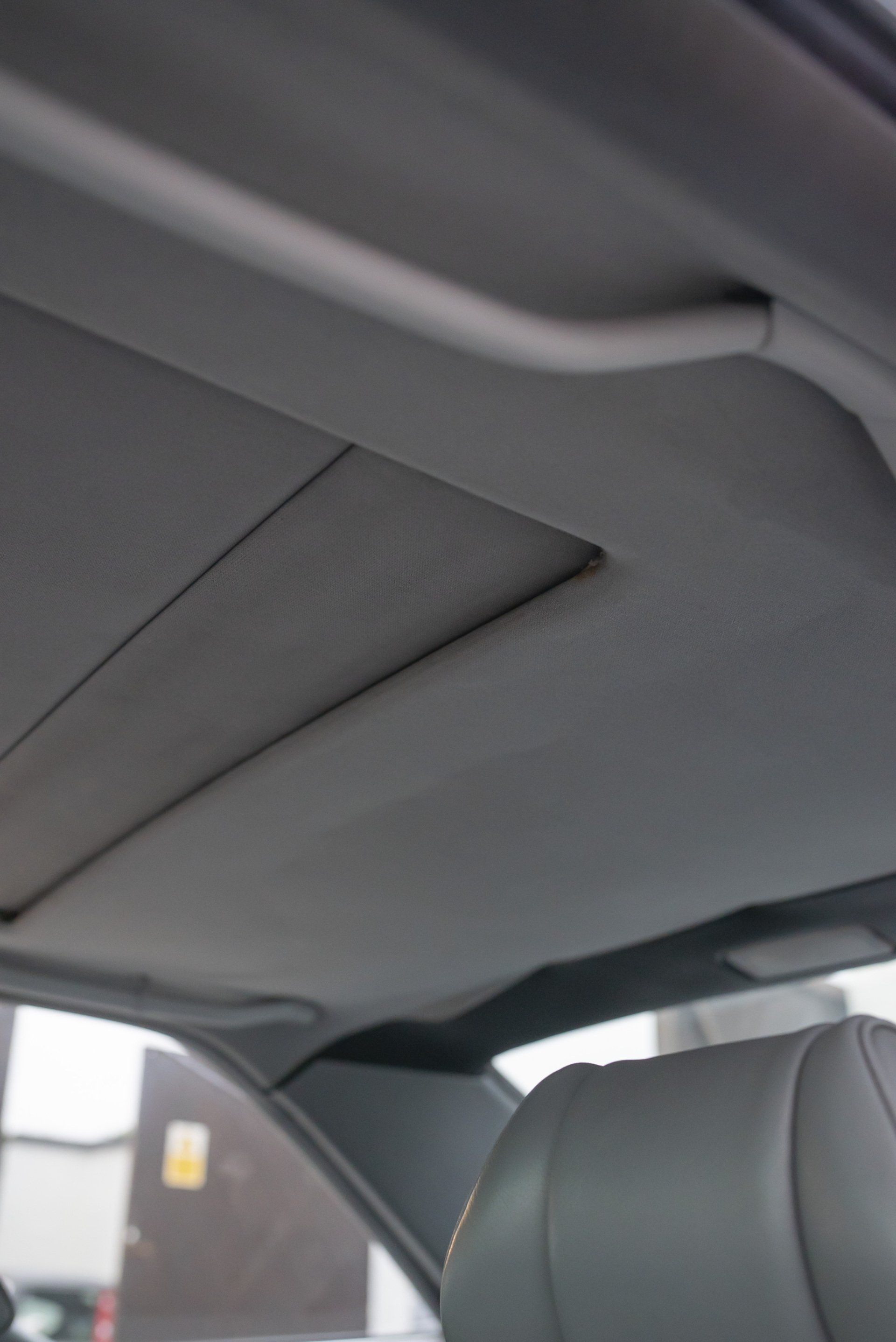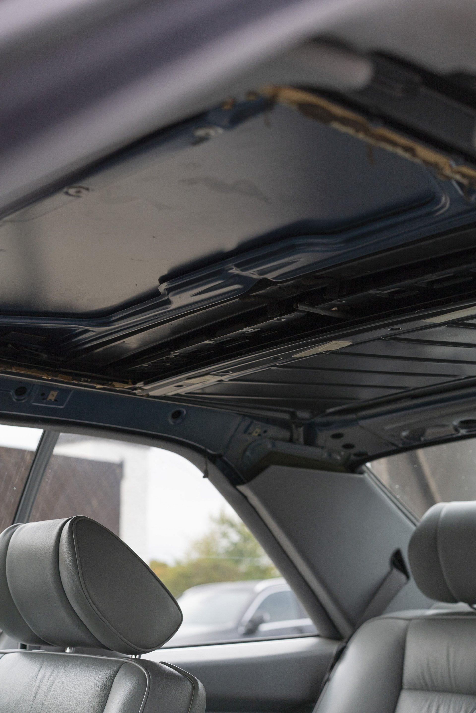 Mercedes SEC 420 Coupe which had it's headlining and sunroof panels retrimmed after they began to sag. Brand new headlining cloth matching the original Mercedes specification.