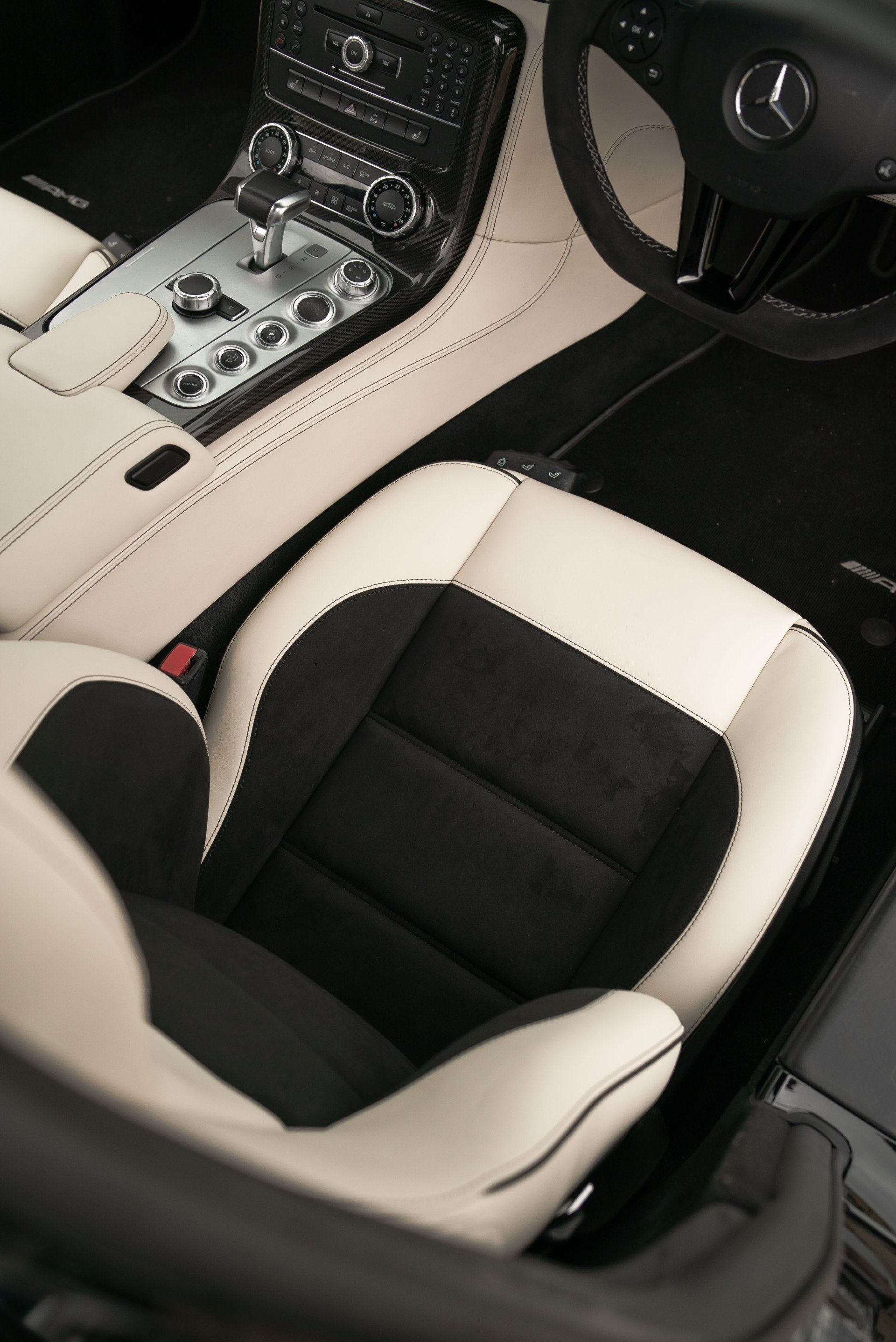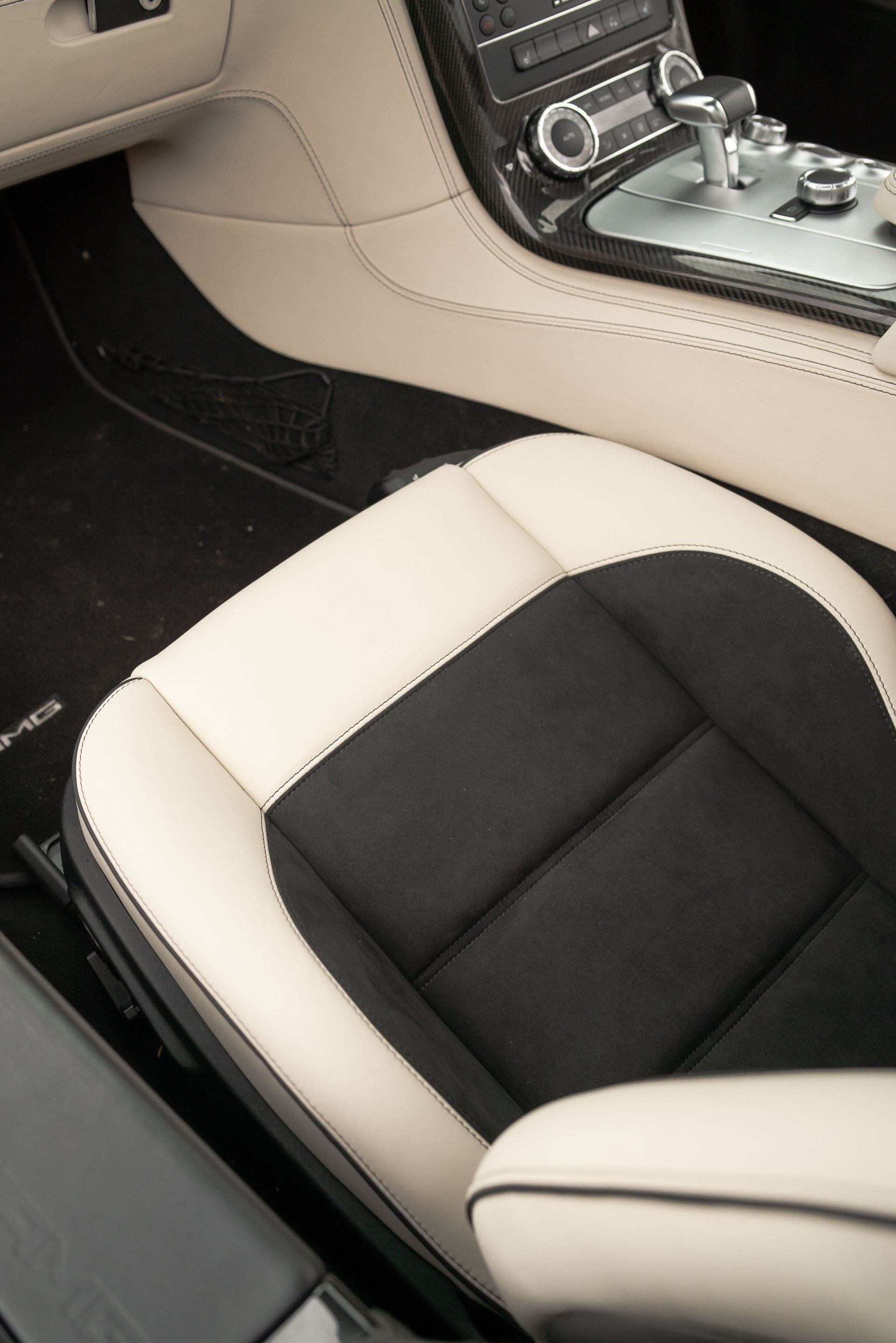 The Mercedes-Benz SLS is fast becoming a future classic, even compared to modern Mercedes-Benz styling, this car still holds its own and looks incredible. The vehicle has come to d:class for a seat retrim as the Porcelain leather seats have become worn and had previously been connolised. Per the customer's request, we retrimmed the seat centres in black Alcantara and kept the rest OEM but in fresh leather.
