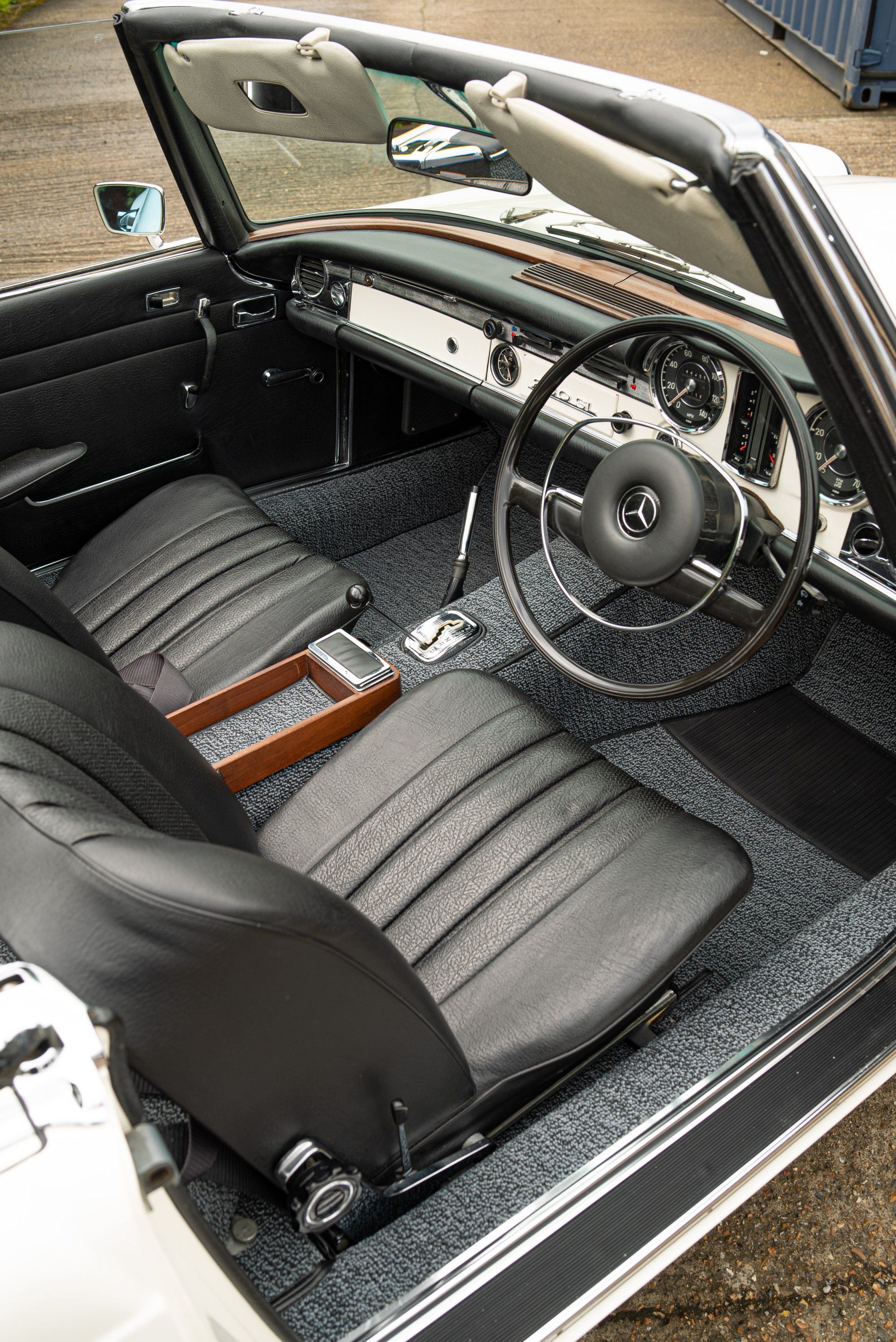 This lovely example of a W113 came to d:class for a carpet retrim as the original carpet had become worn and deteriorated. We have replaced the original carpet with a grey twin loop and black vinyl binding to fit in with the rest of the interior. Additionally, the back of the seats have been trimmed also as these are carpeted from the factory. Last but not least, the interior metal trim has been polished up as these had begun pitting from their age. The rest of the interior is surprisingly in very good condition and did not require any further work.