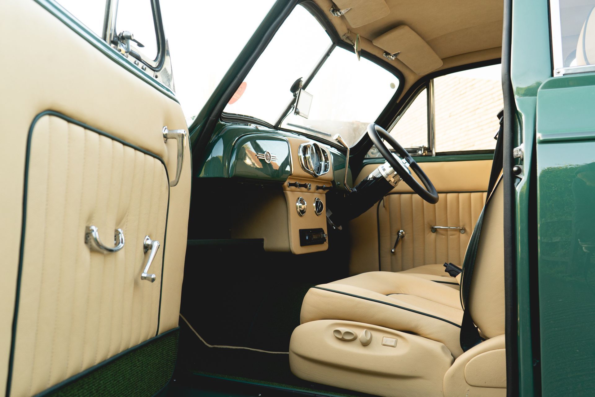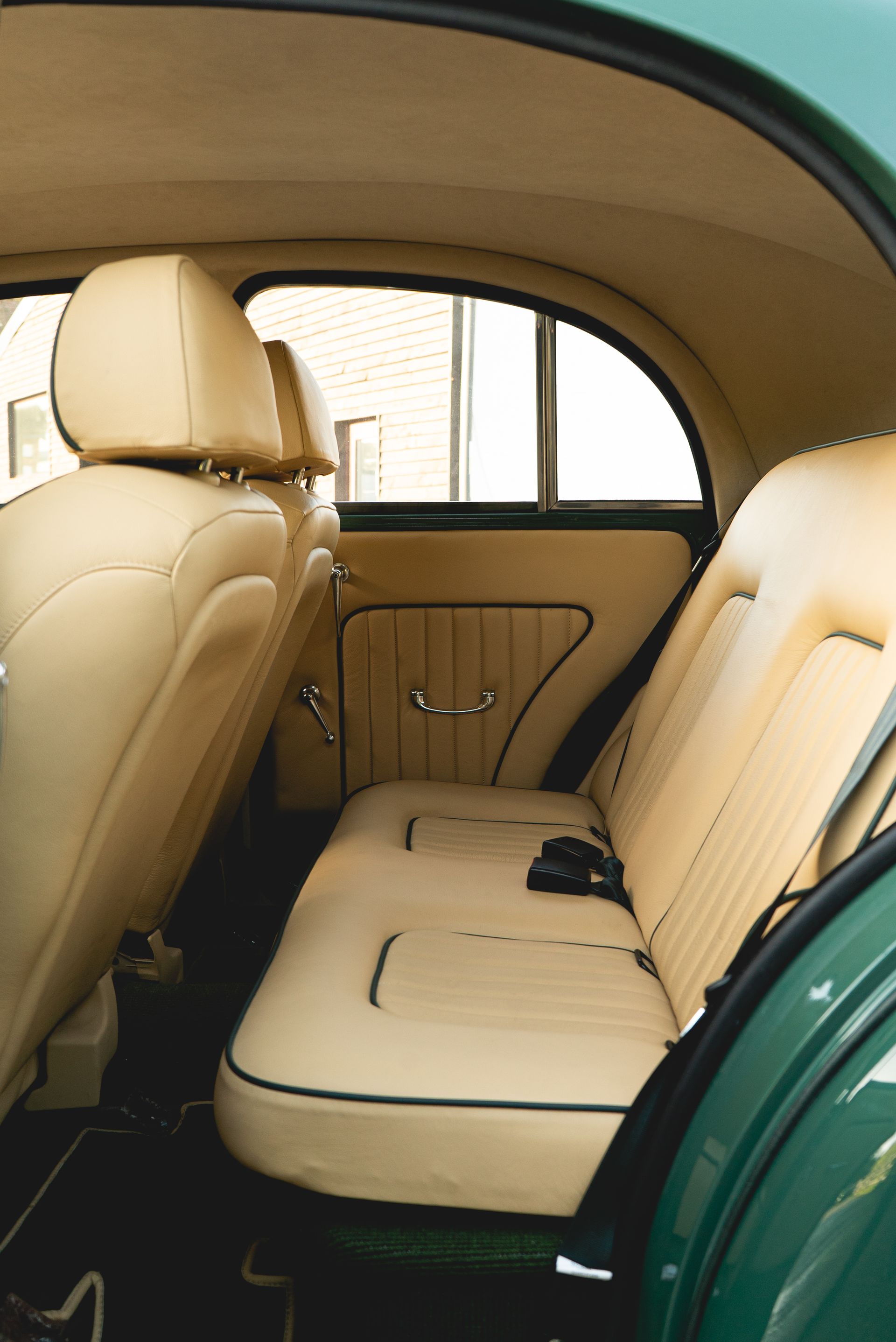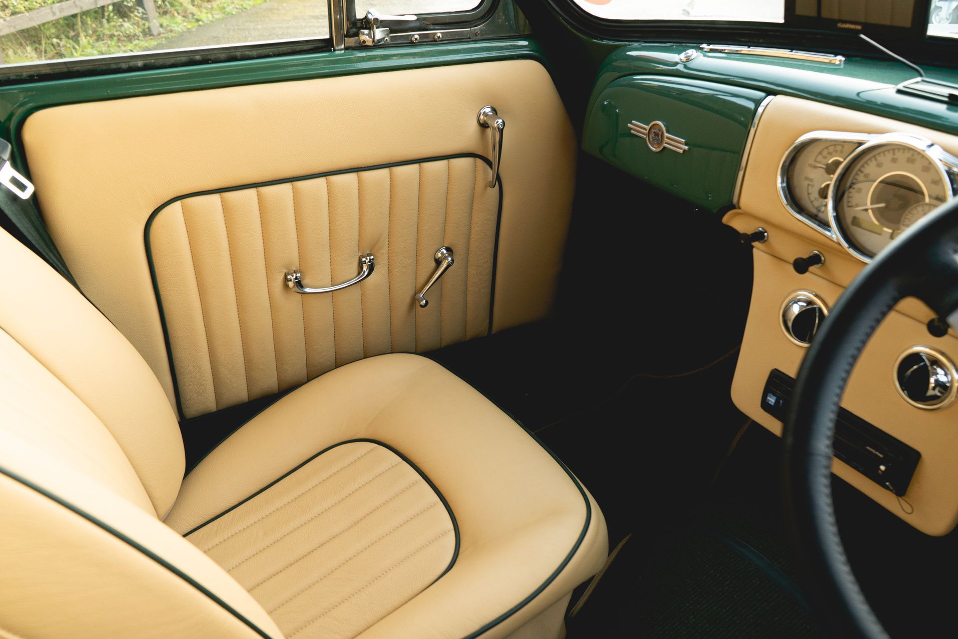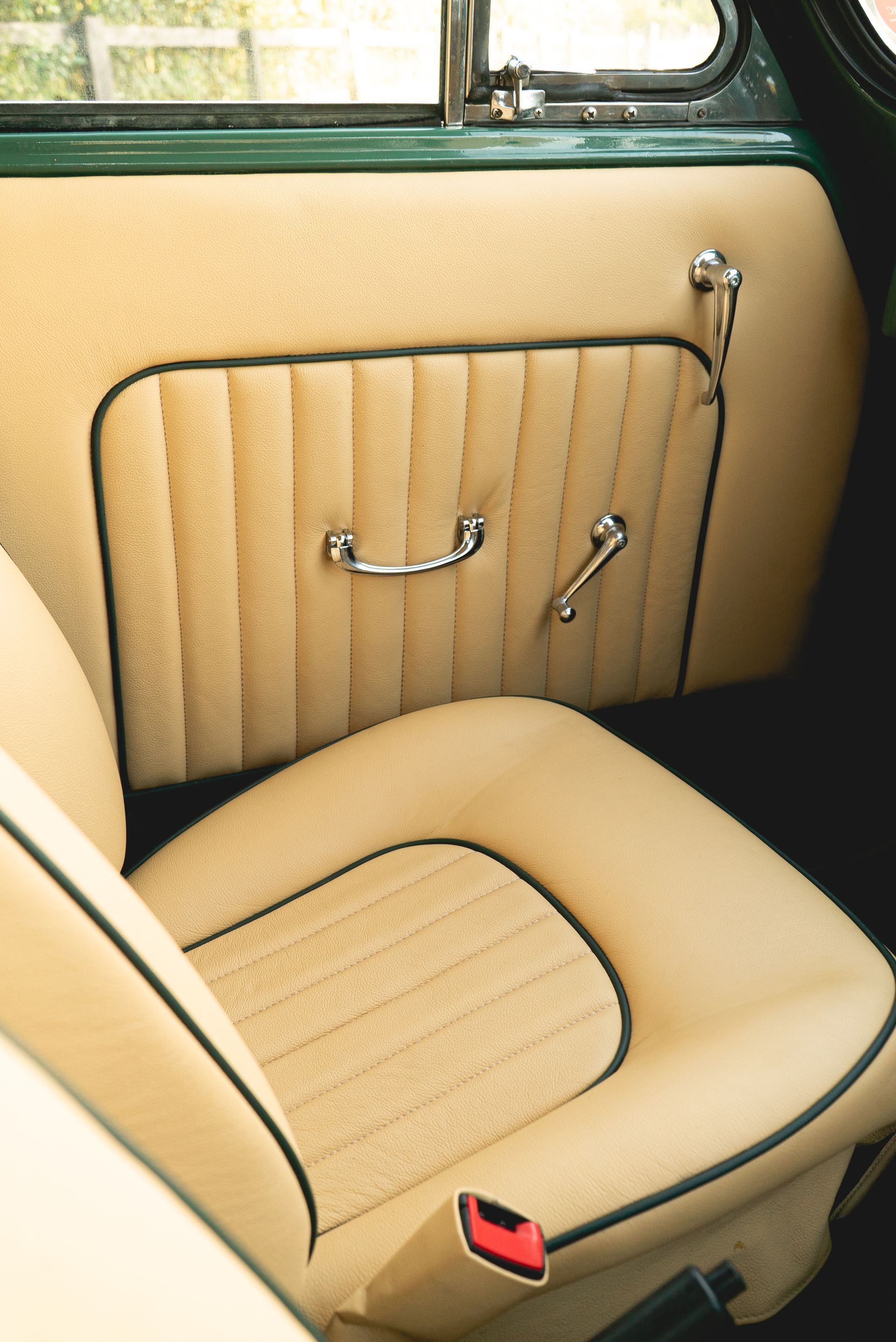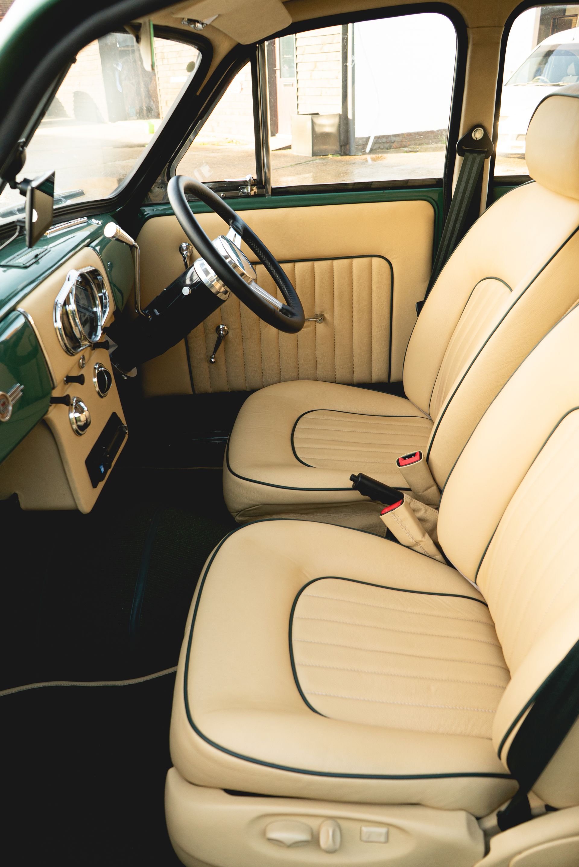 The door cards were also styled to match with the seats, with matching leather, pleated centres, and green piping, this was achieved to great effect. Grab handles, window winders and side mirror adjustment levers were also refurbished and polished up nicely.